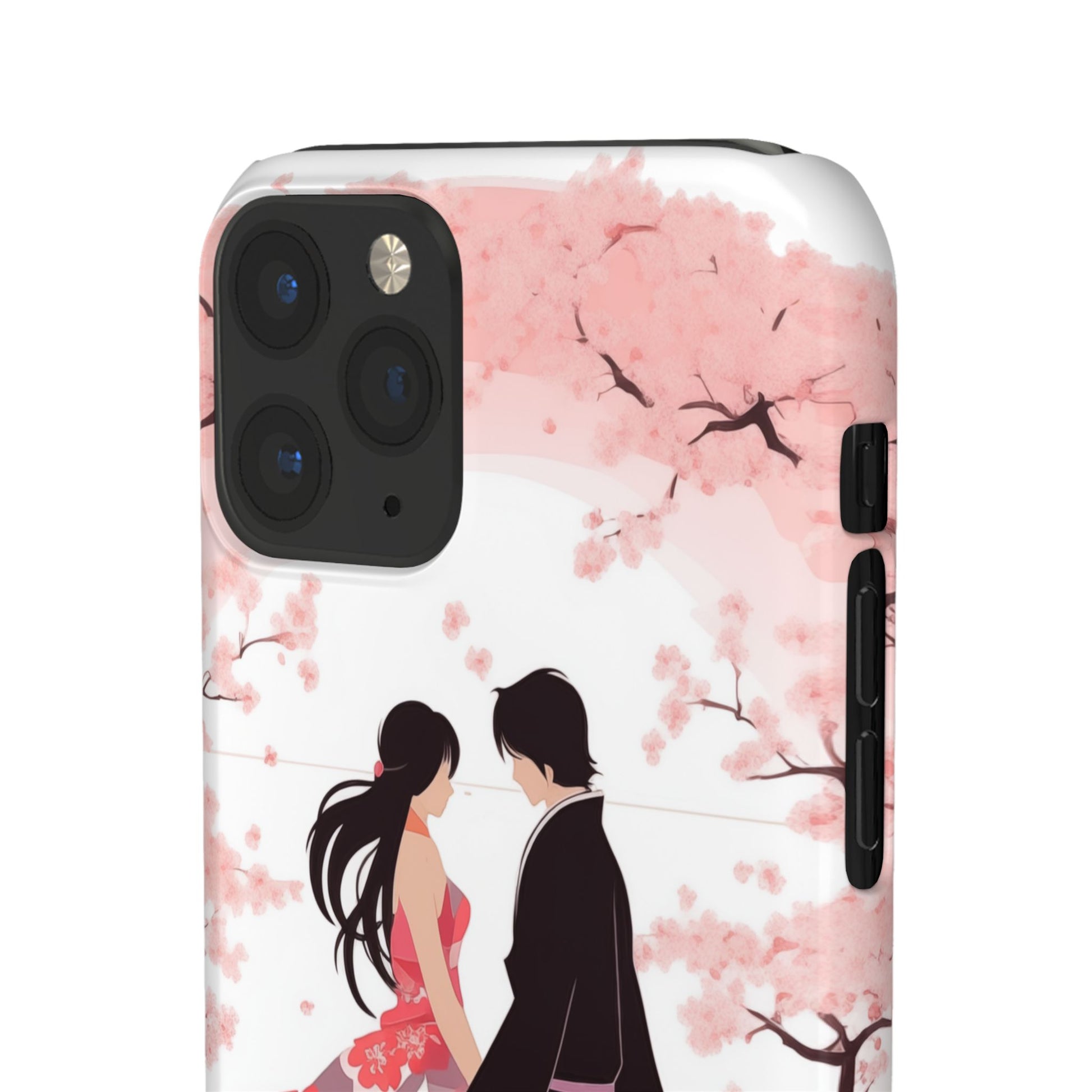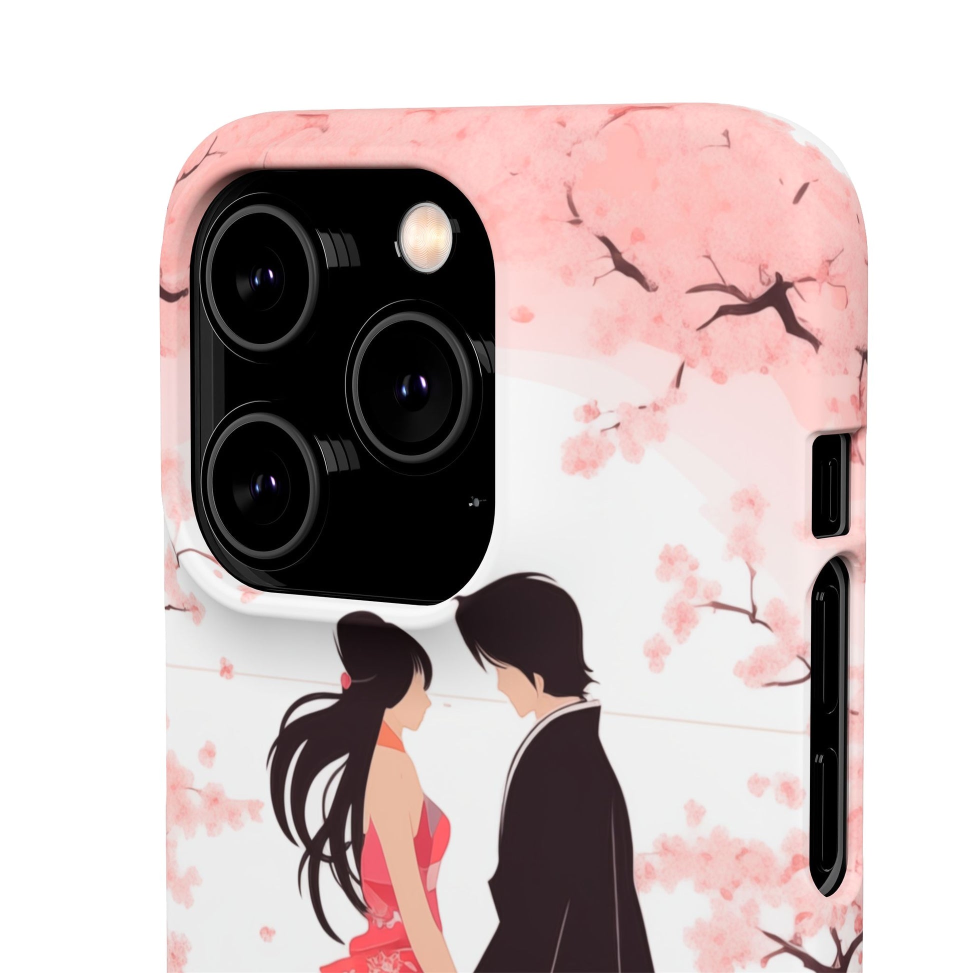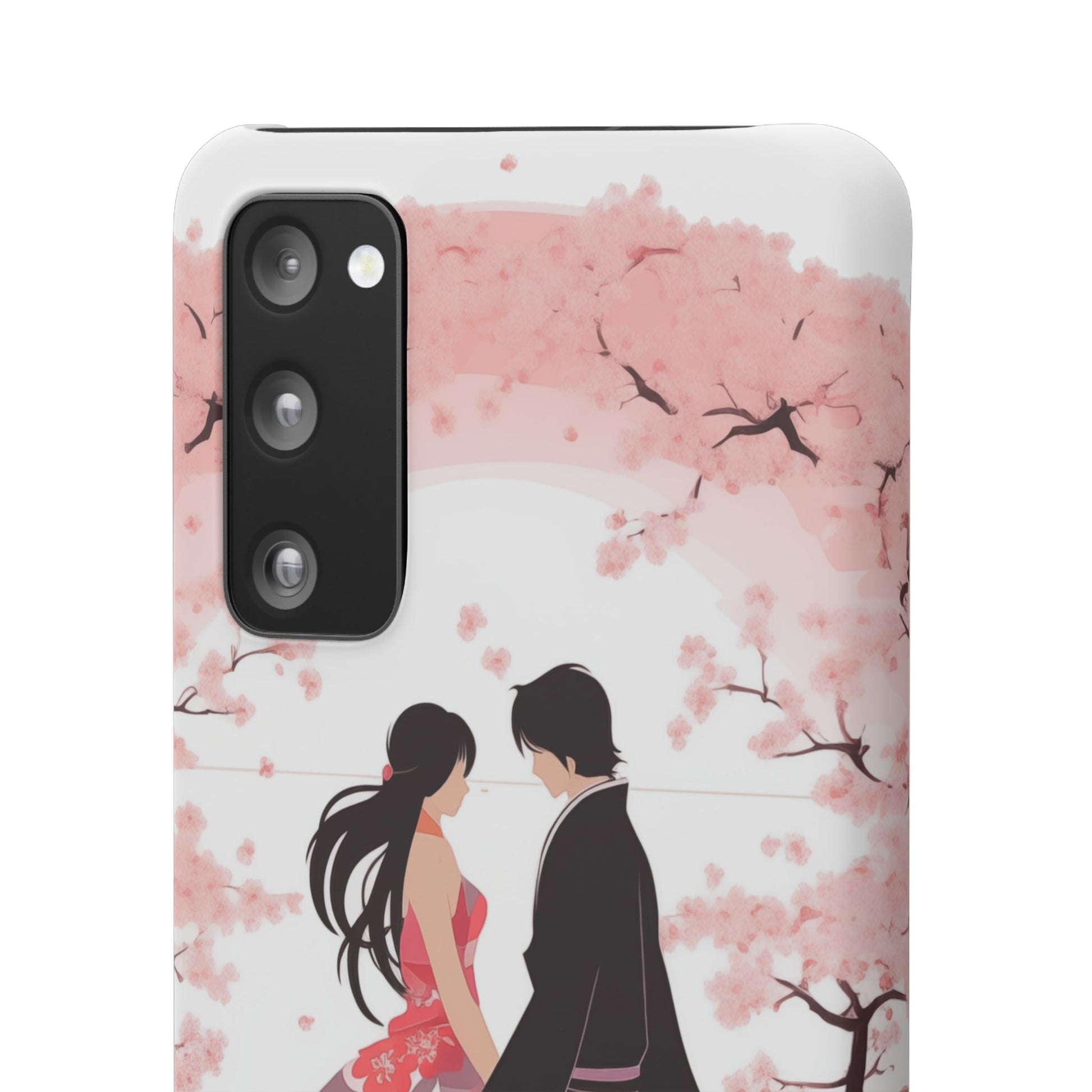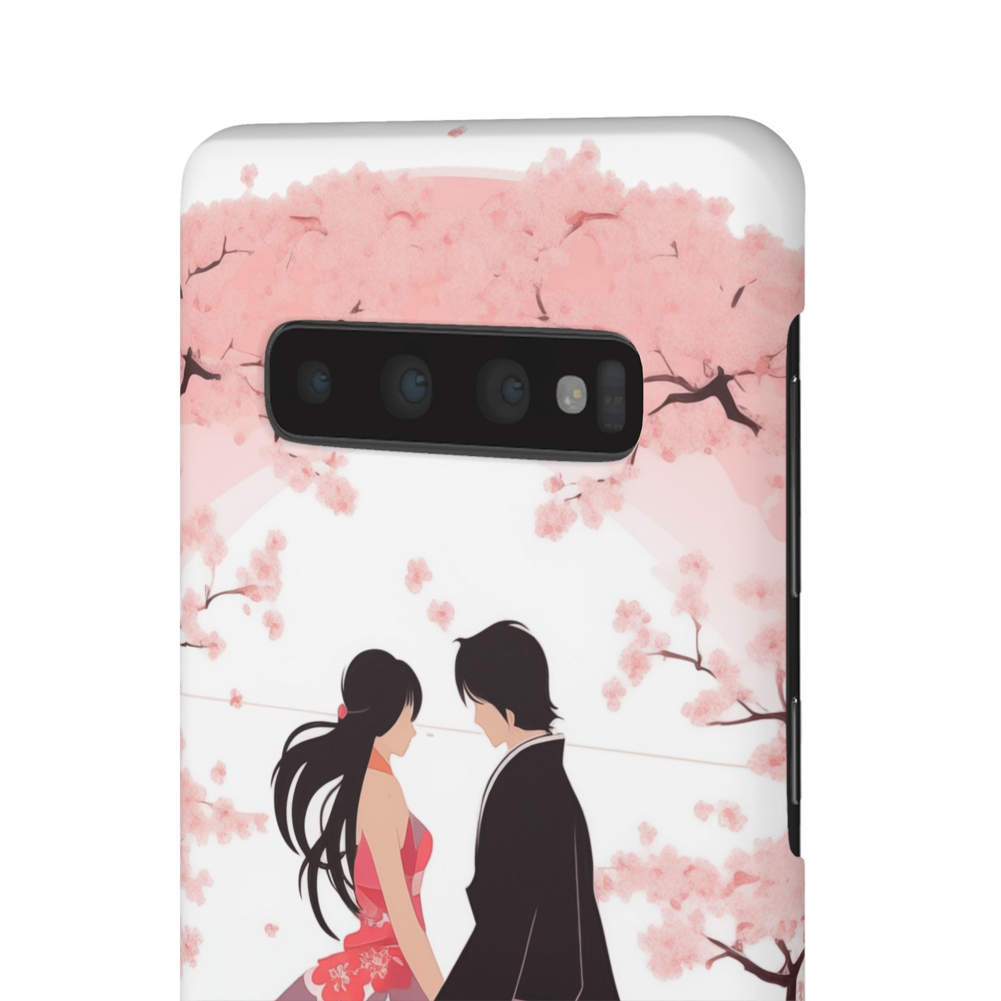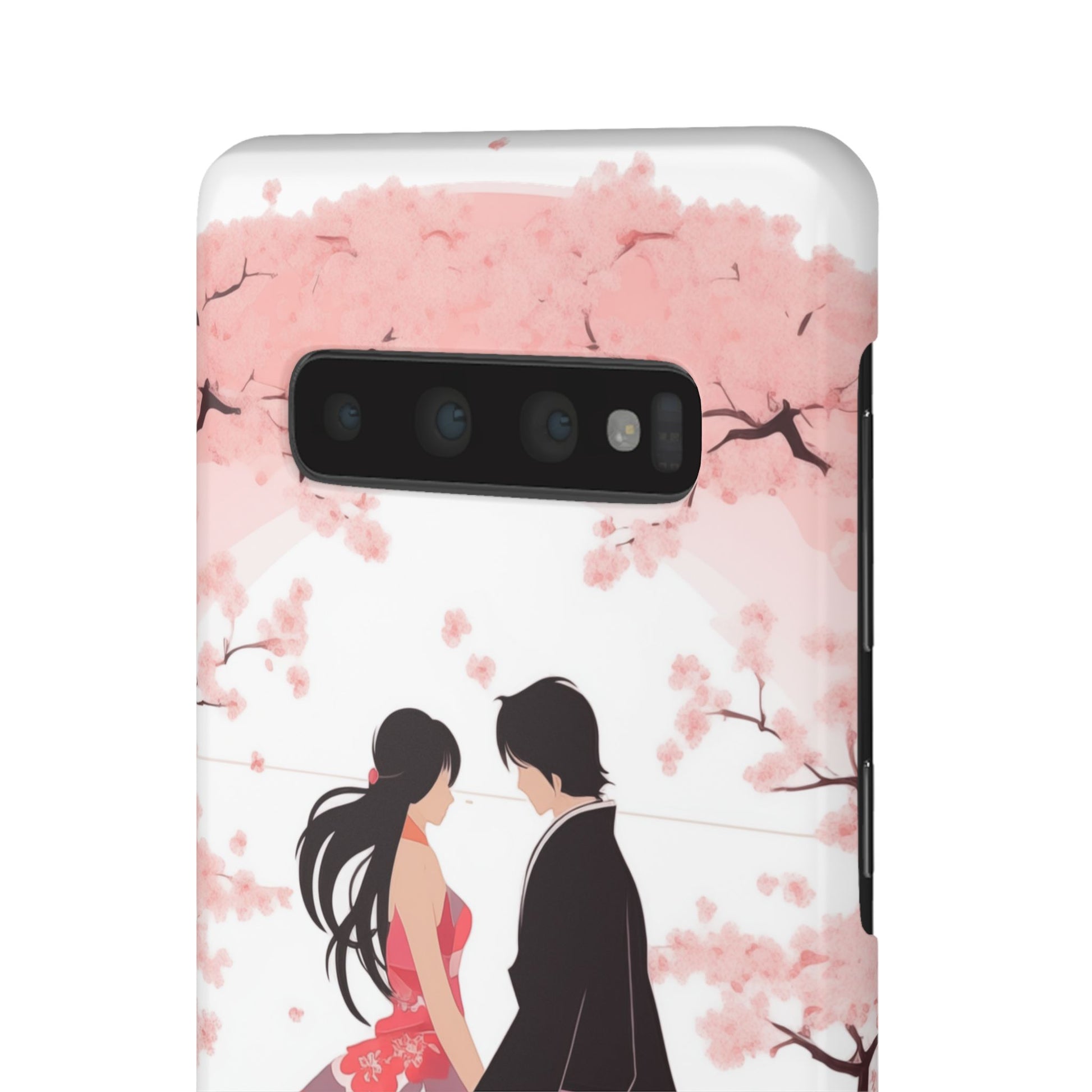 Immerse in the romantic elegance of Japan with our 'Japanese Blossom Love Phone Case', a Valentine's Day special. This exquisite case features a beautifully illustrated cute couple in Japanese-style, tenderly placed under blossoming cherry trees. The vibrant and detailed artwork brings the magic of cherry blossoms, or 'sakura', to your phone, symbolizing love and renewal. Designed to protect your device while adding a touch of artistic charm, this case combines functionality with beauty. Its durable material ensures your phone stays safe from daily wear and tear, while the slim profile maintains its sleek appearance. Perfect for those who appreciate the delicate allure of Japanese aesthetics and the spirit of Valentine's Day, this phone case is a wonderful blend of kawaii culture and timeless romance."
