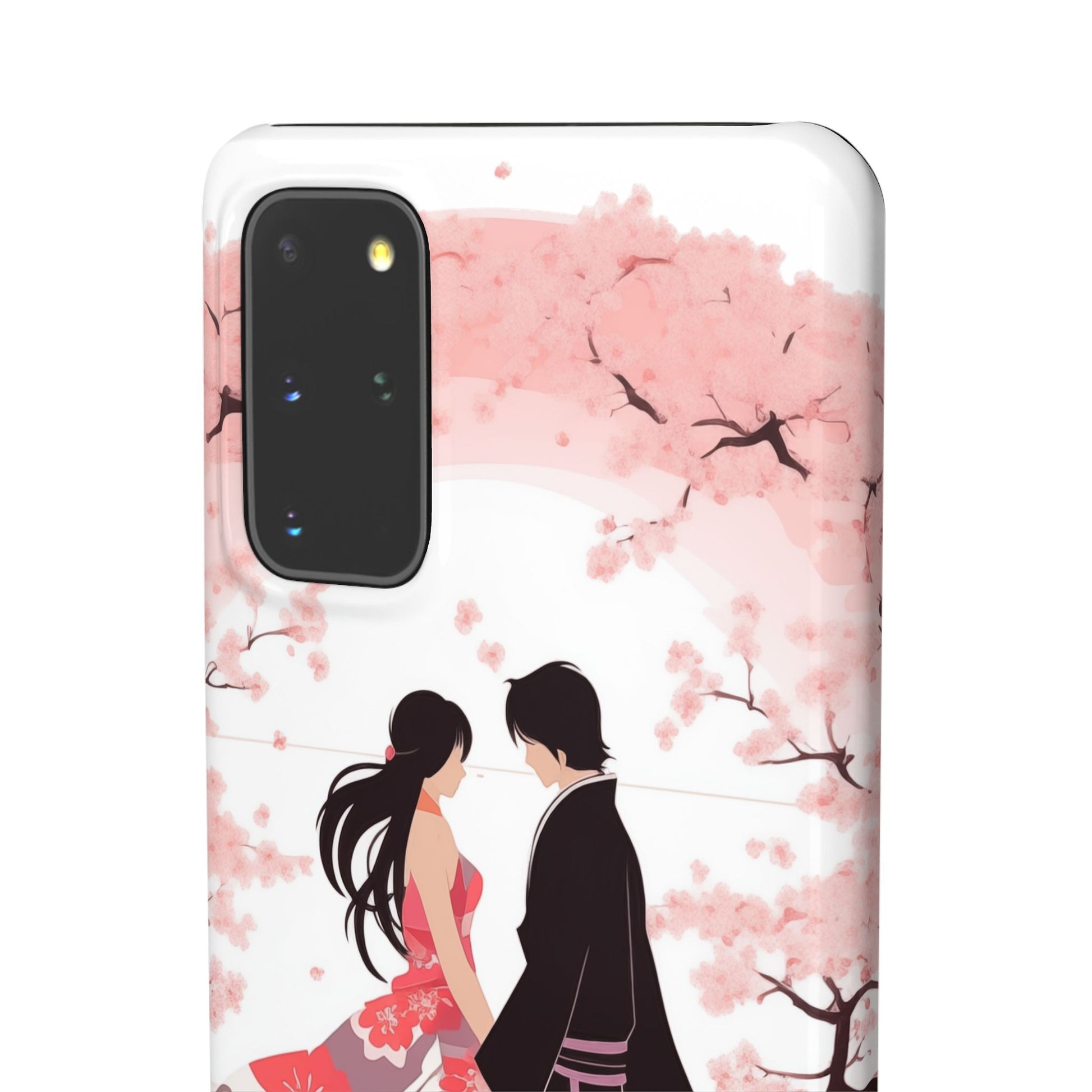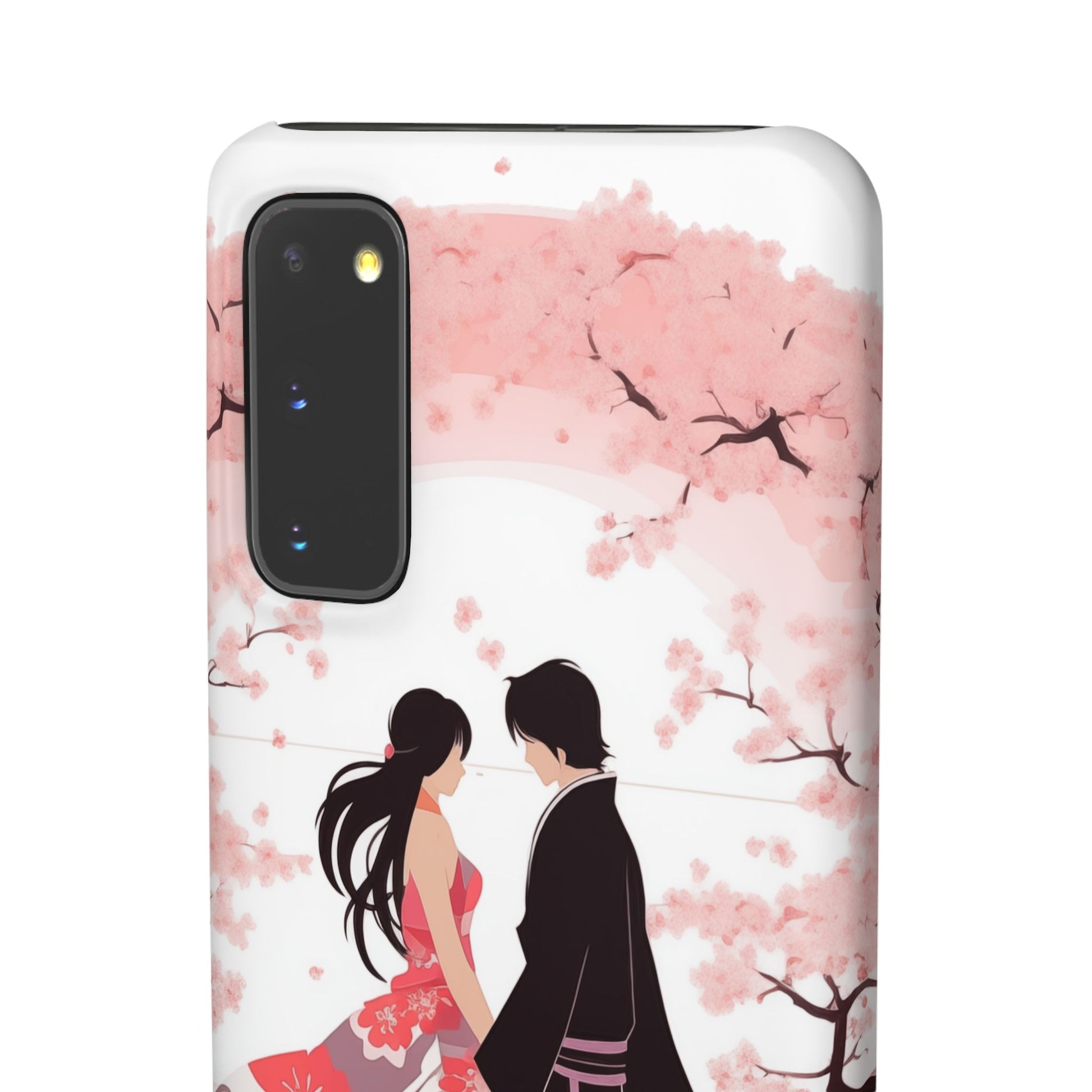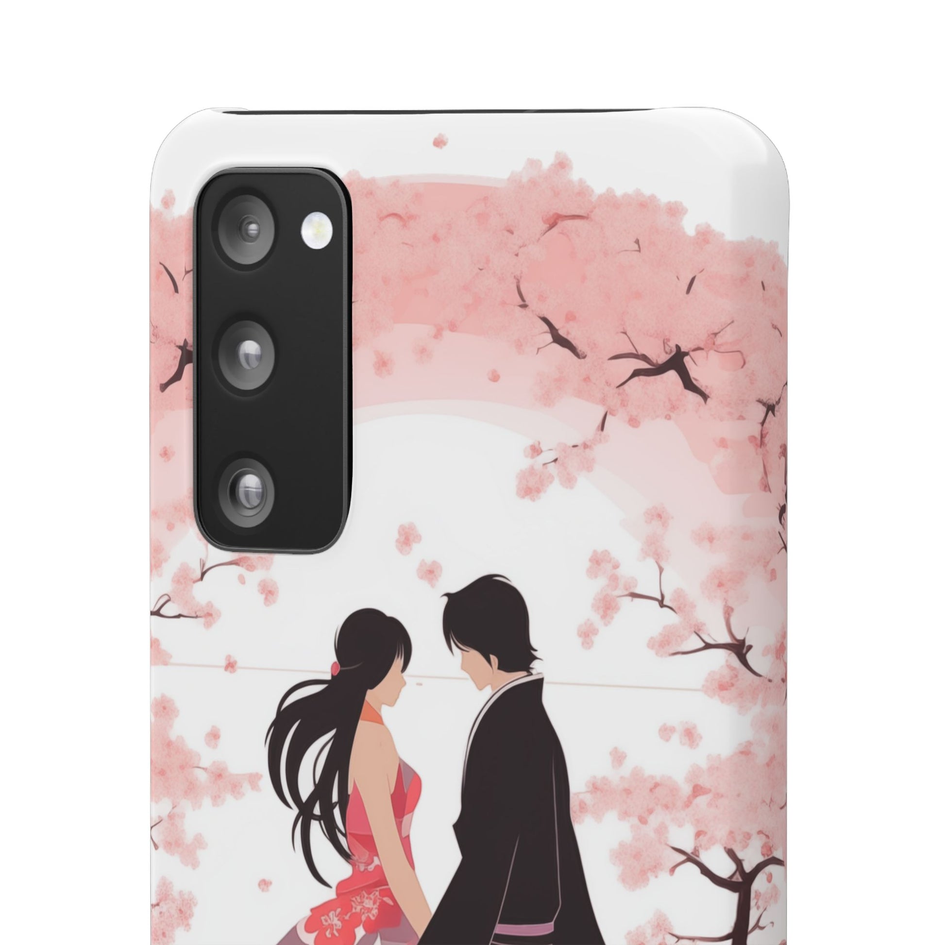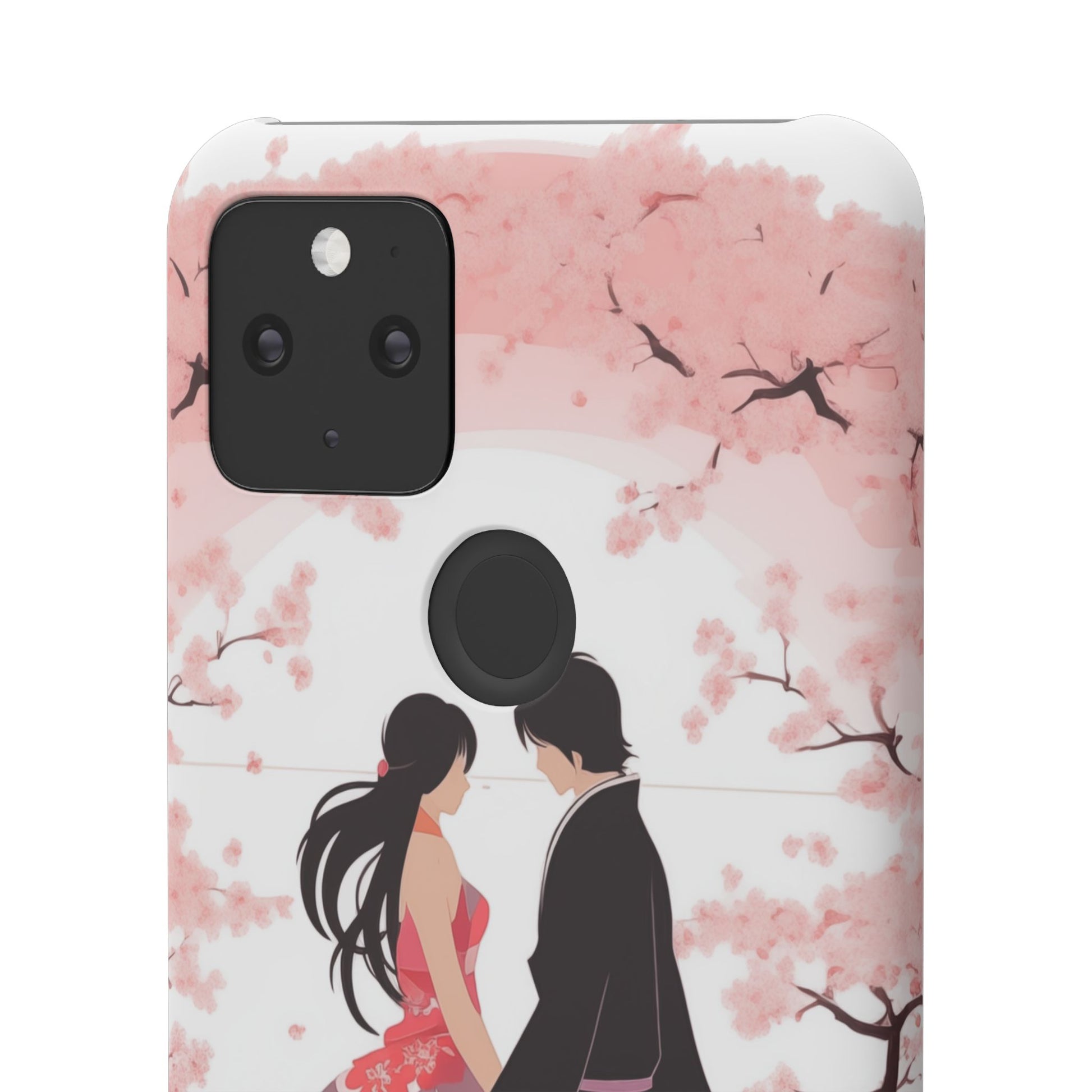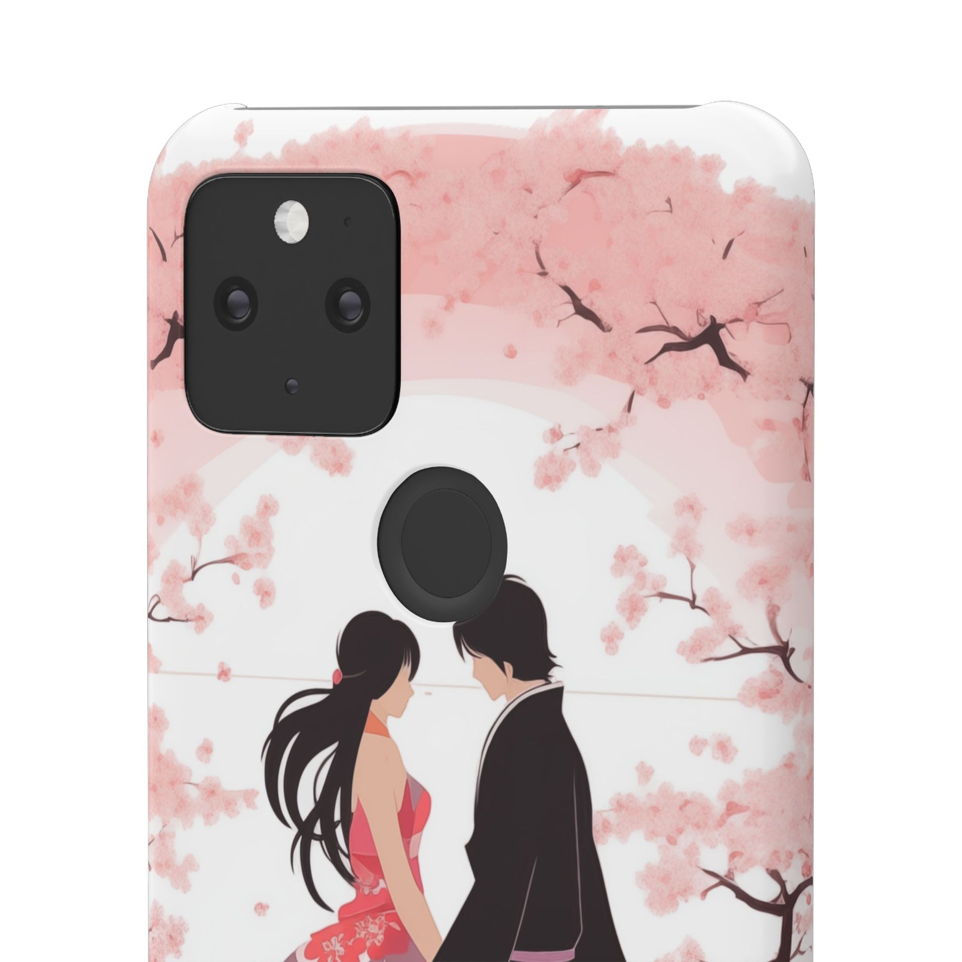 Immerse in the romantic elegance of Japan with our 'Japanese Blossom Love Phone Case', a Valentine's Day special. This exquisite case features a beautifully illustrated cute couple in Japanese-style, tenderly placed under blossoming cherry trees. The vibrant and detailed artwork brings the magic of cherry blossoms, or 'sakura', to your phone, symbolizing love and renewal. Designed to protect your device while adding a touch of artistic charm, this case combines functionality with beauty. Its durable material ensures your phone stays safe from daily wear and tear, while the slim profile maintains its sleek appearance. Perfect for those who appreciate the delicate allure of Japanese aesthetics and the spirit of Valentine's Day, this phone case is a wonderful blend of kawaii culture and timeless romance."