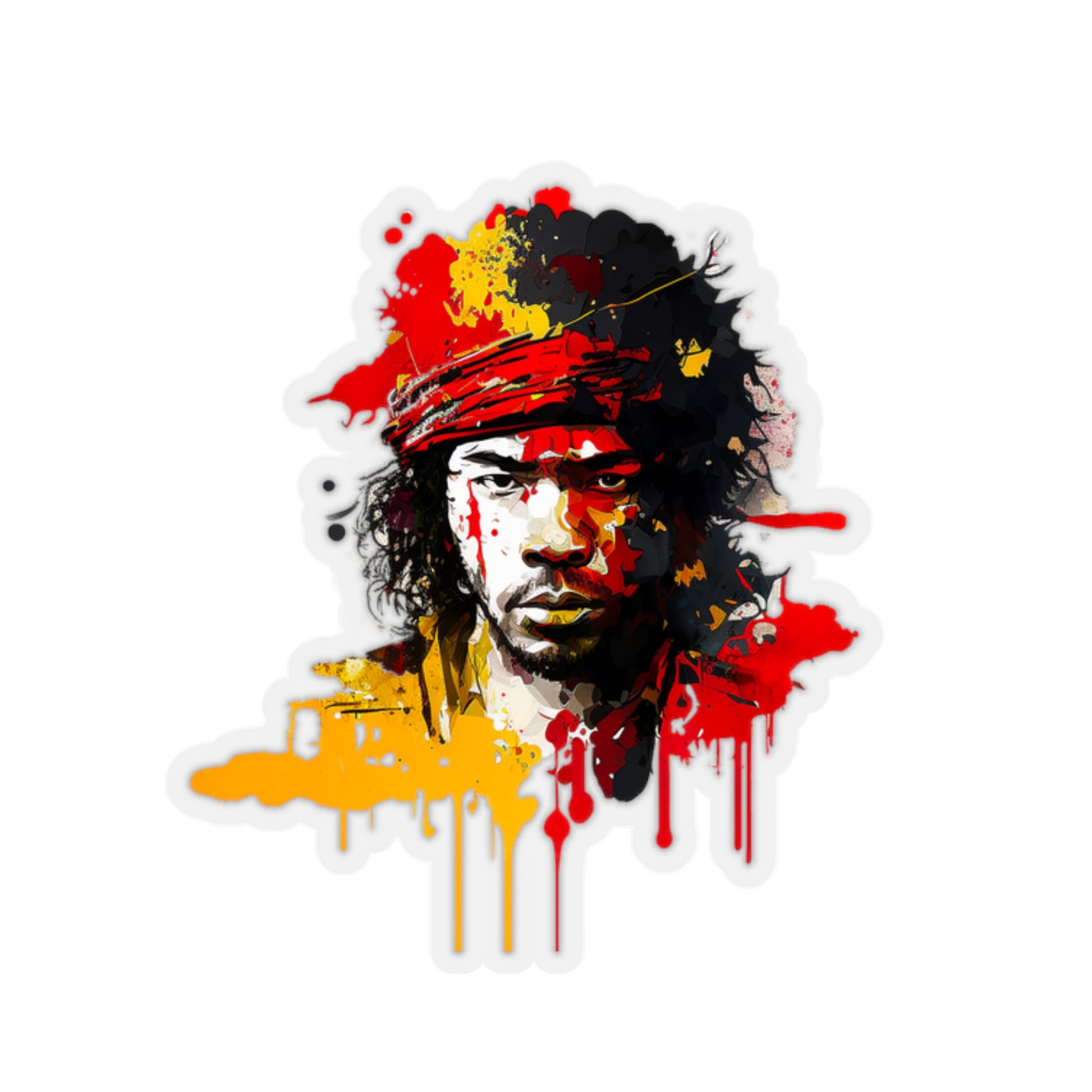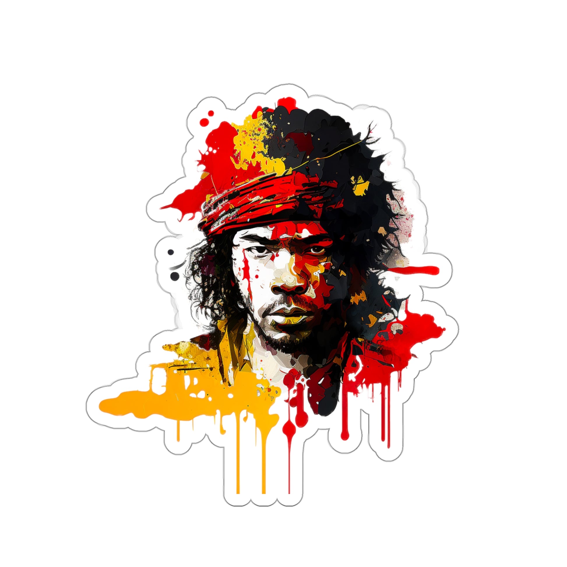 Keywords: Jimi Hendrix sticker, music sticker, watercolor style sticker, Macbook sticker, smartphone sticker, artistic sticker, high-quality sticker.