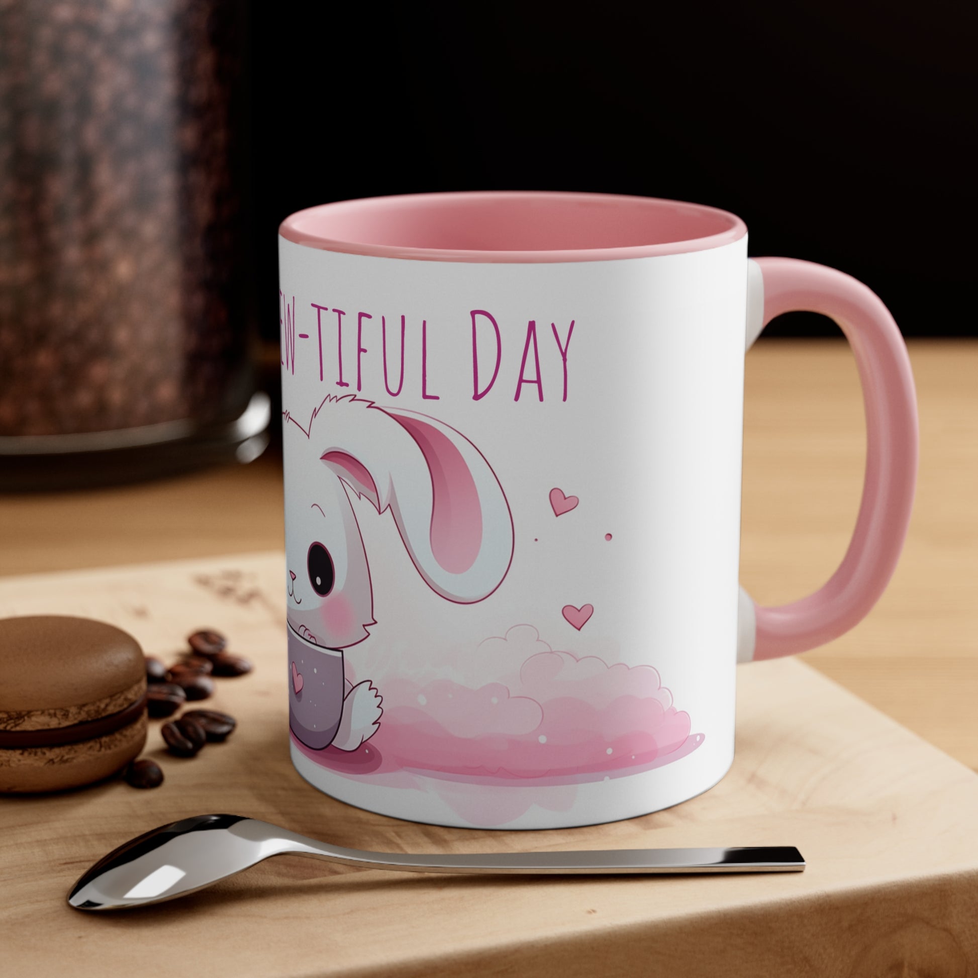 Kawaii Bunny Coffee Mug : "Hoppy Brew-tiful Day"
