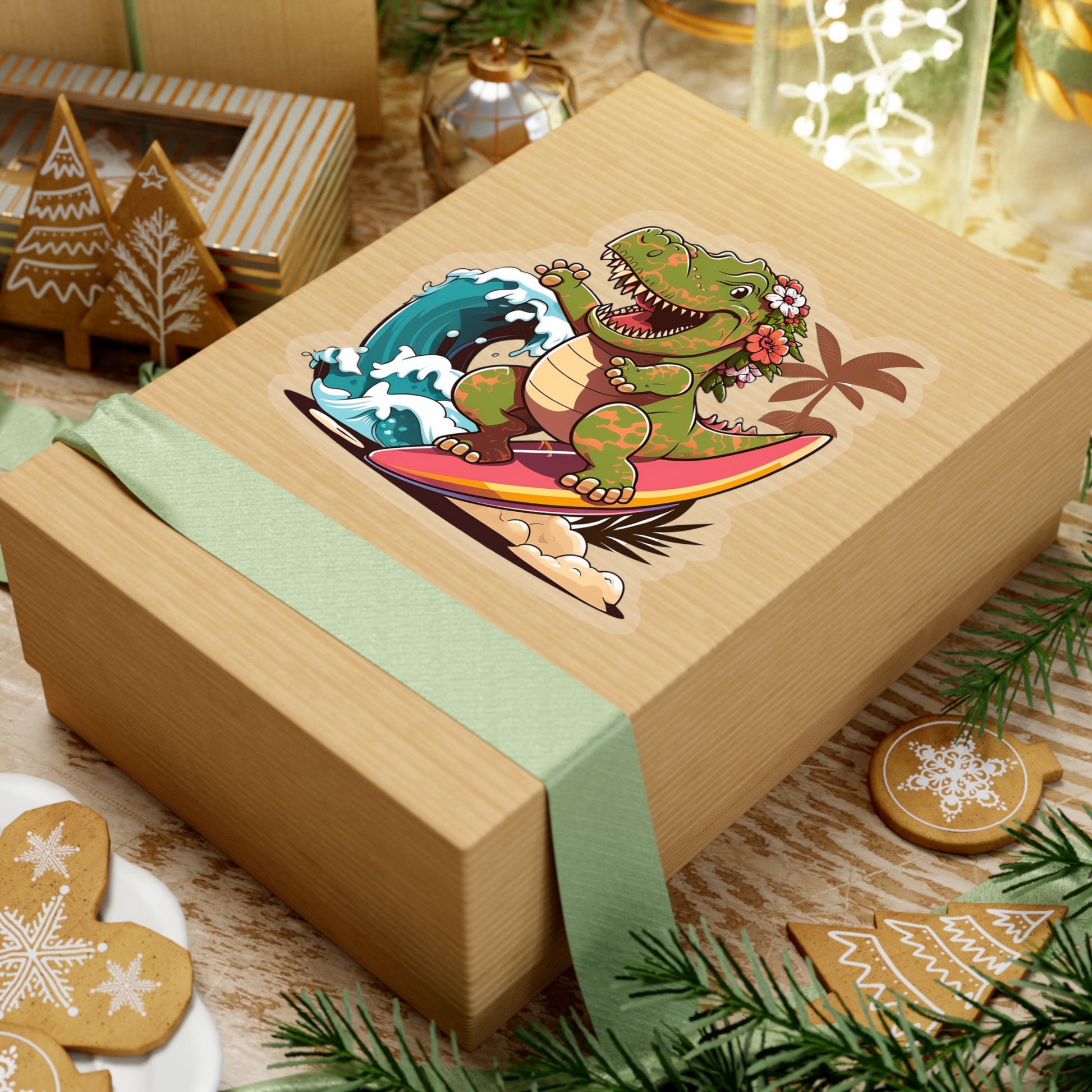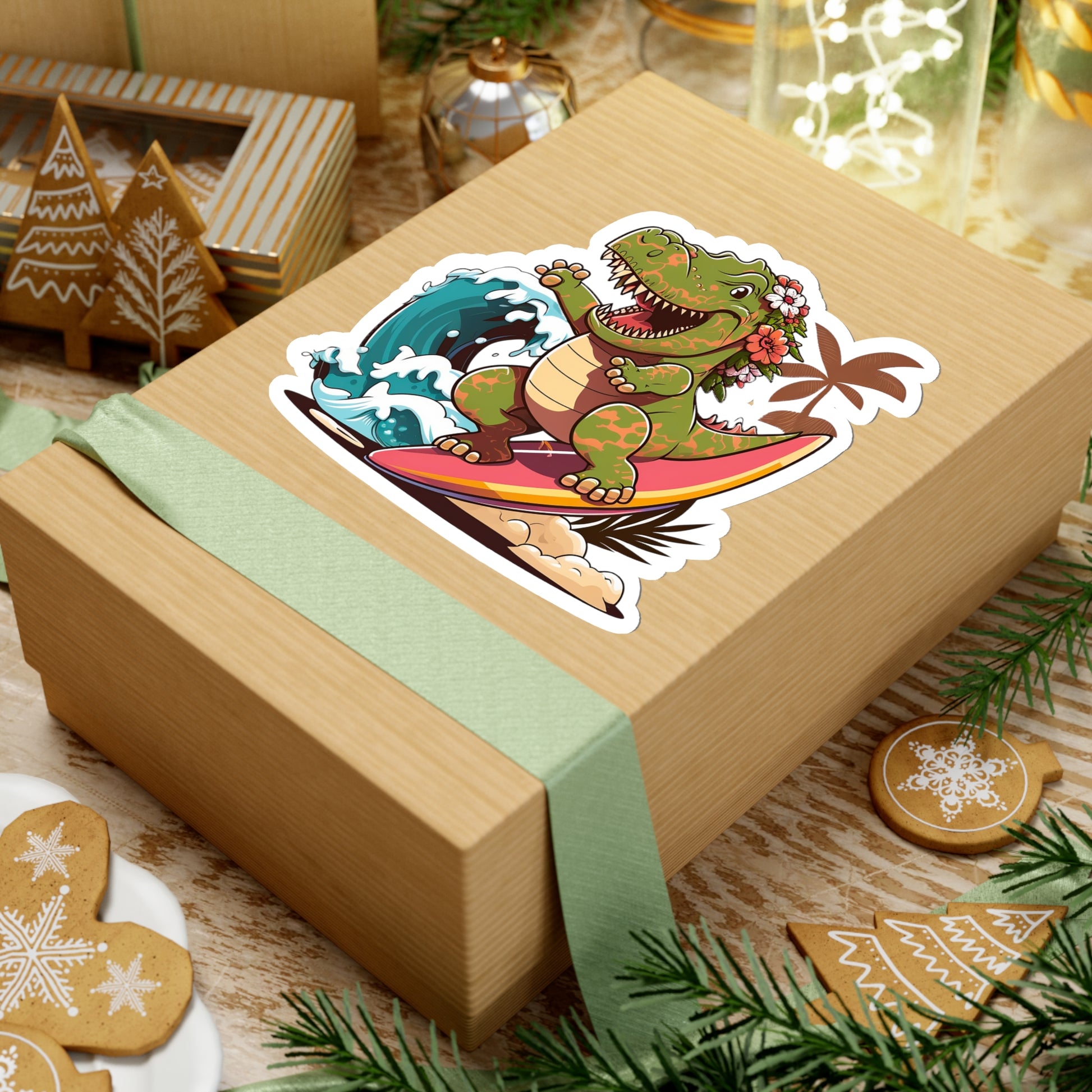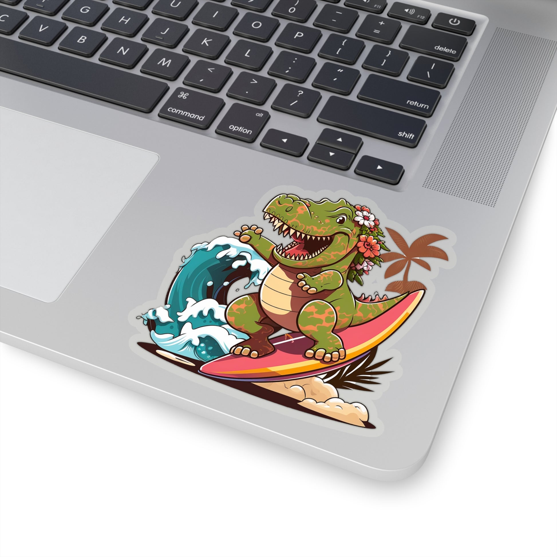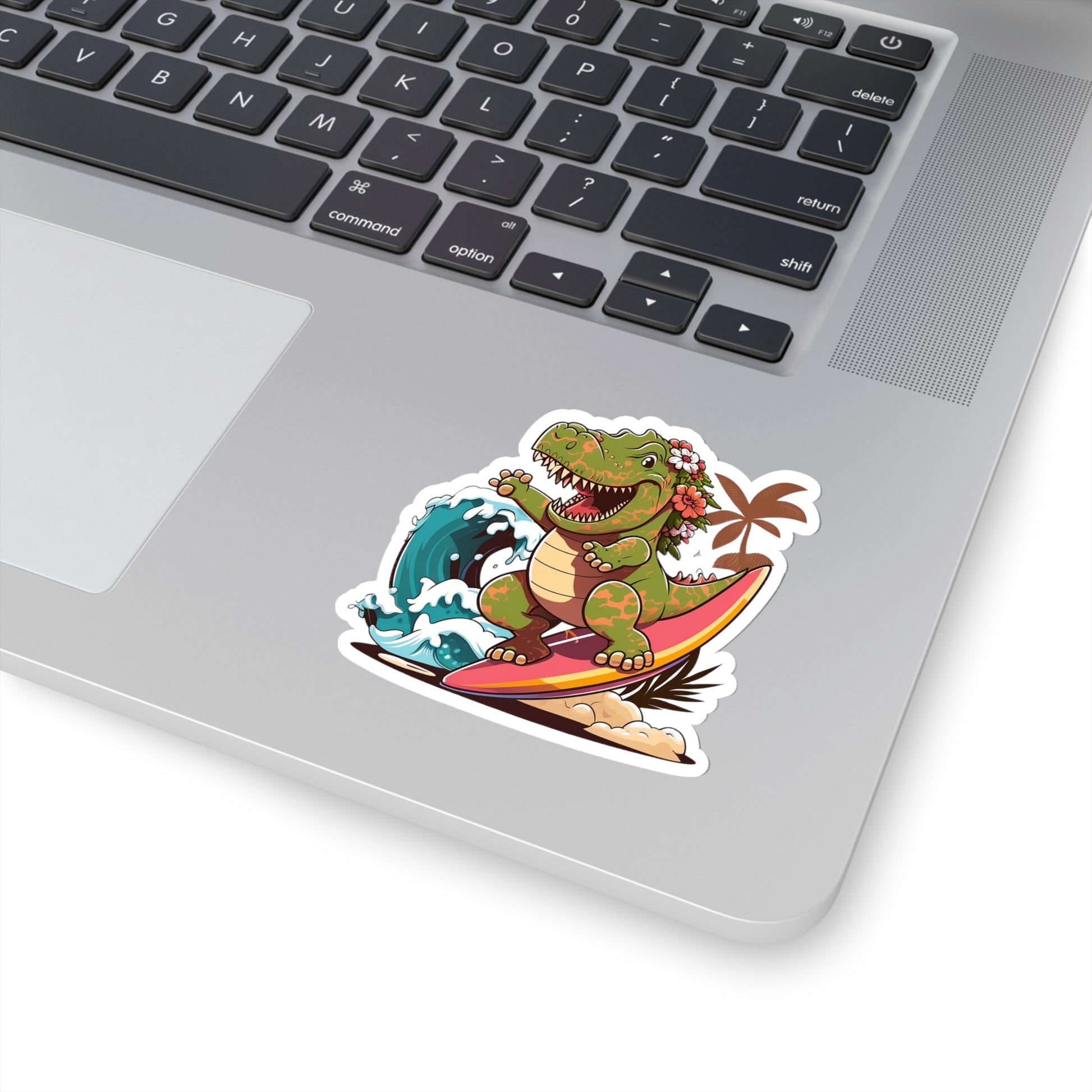 Keywords: Kawaii T-Rex sticker, dinosaur sticker, surfing sticker, Macbook sticker, smartphone sticker, cute sticker, fun sticker.