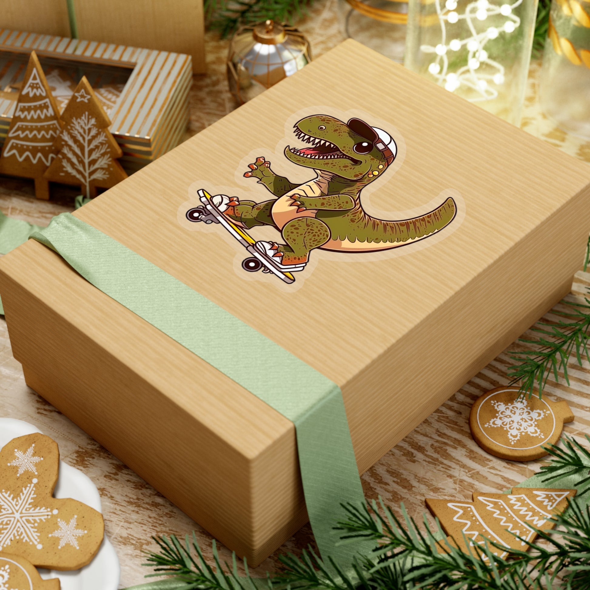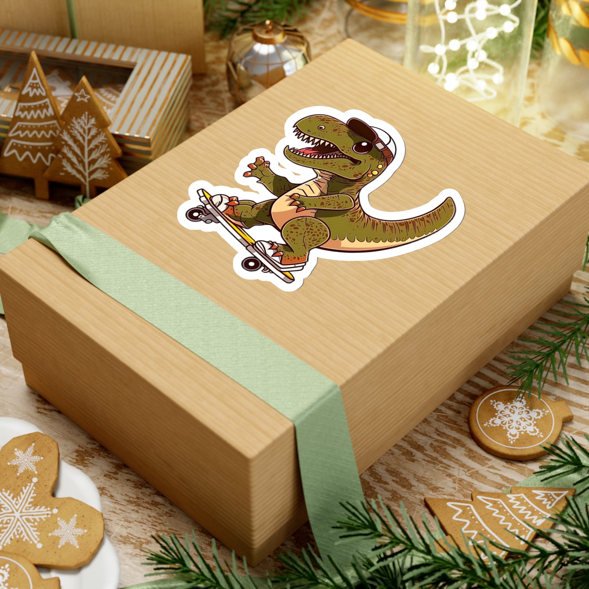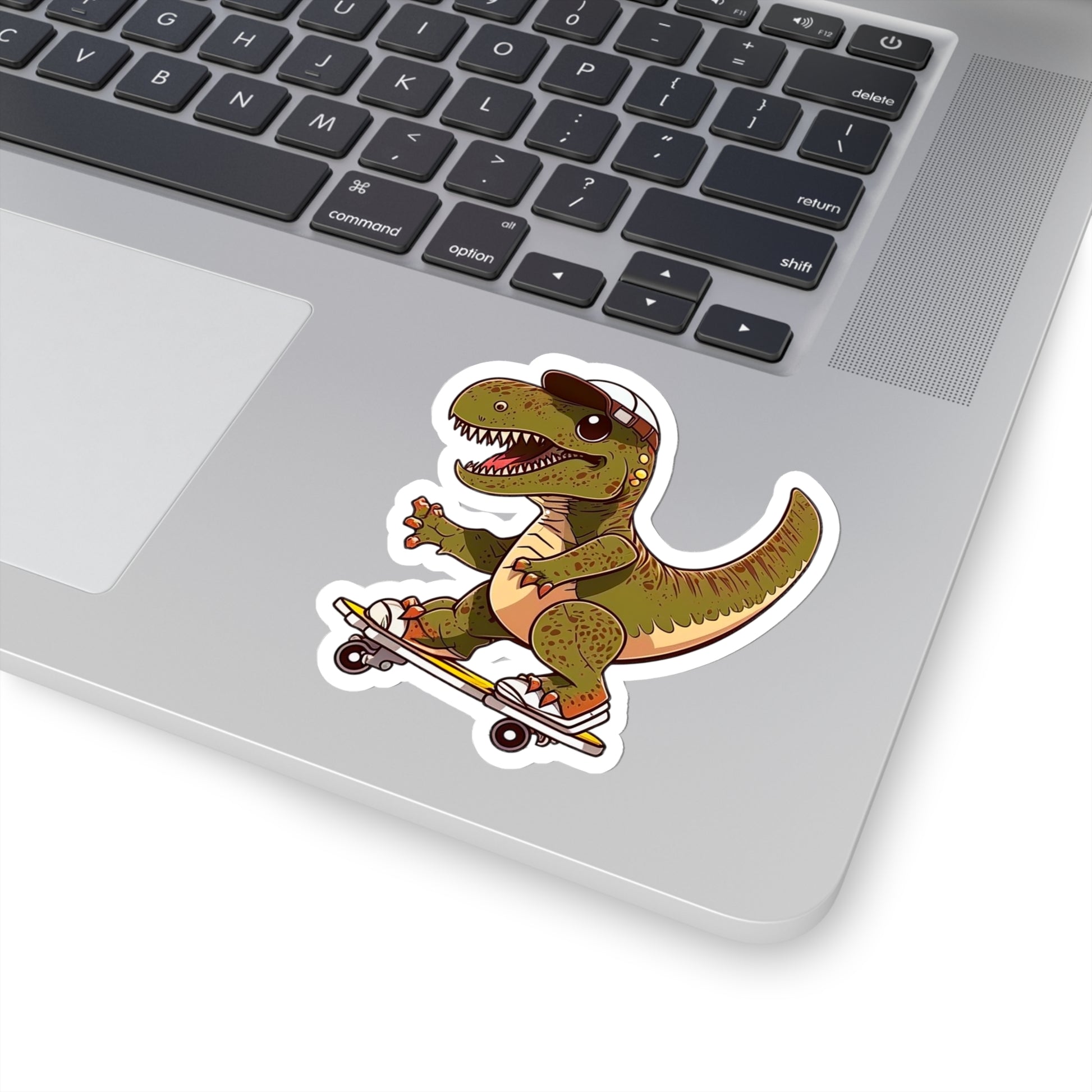 Kawaii T-Rex Skating Sticker - Add Some Cute and Fun Style to Your Tech