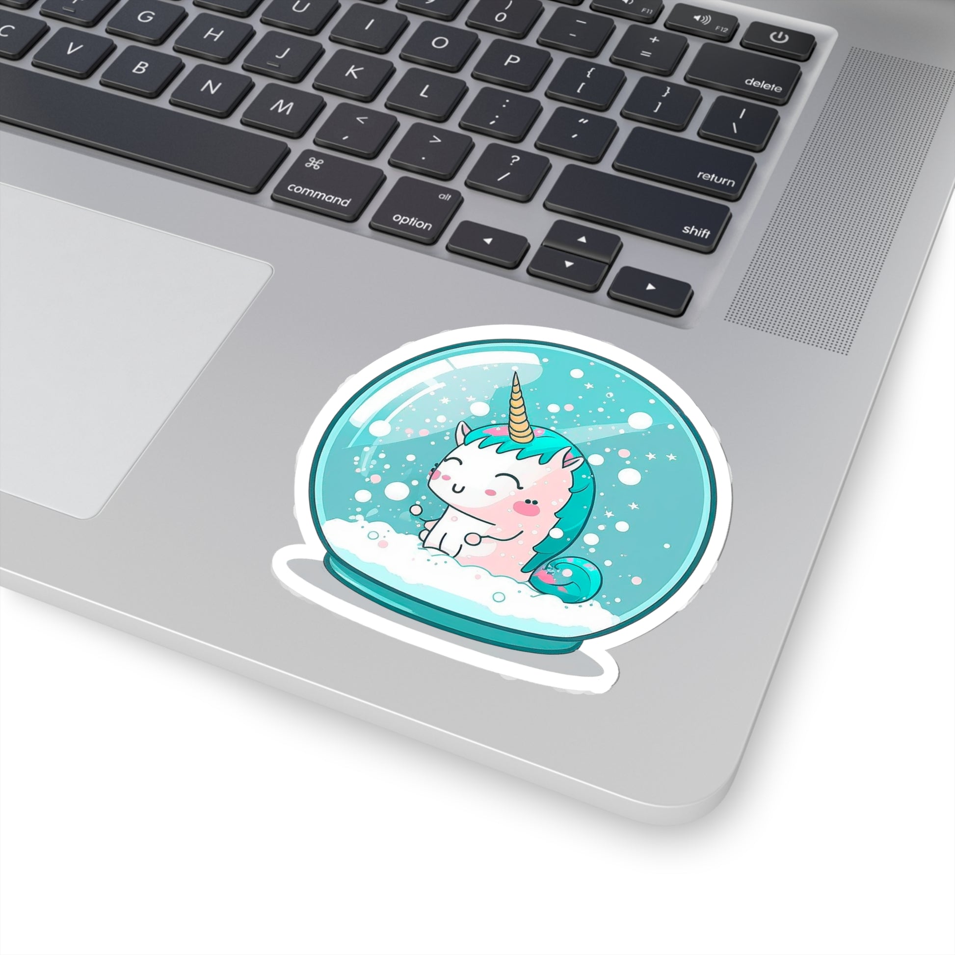 This sticker features a kawaii unicorn inside a snowball, perfect for adding some cute and whimsical style to your tech devices. The watercolor-style design adds a unique touch to this sticker, making it stand out from other unicorn and winter-themed stickers on the market. This sticker is perfect for anyone who loves unicorns and wants to add some unique and colorful style to their Macbook, smartphone, or any other smooth surface.