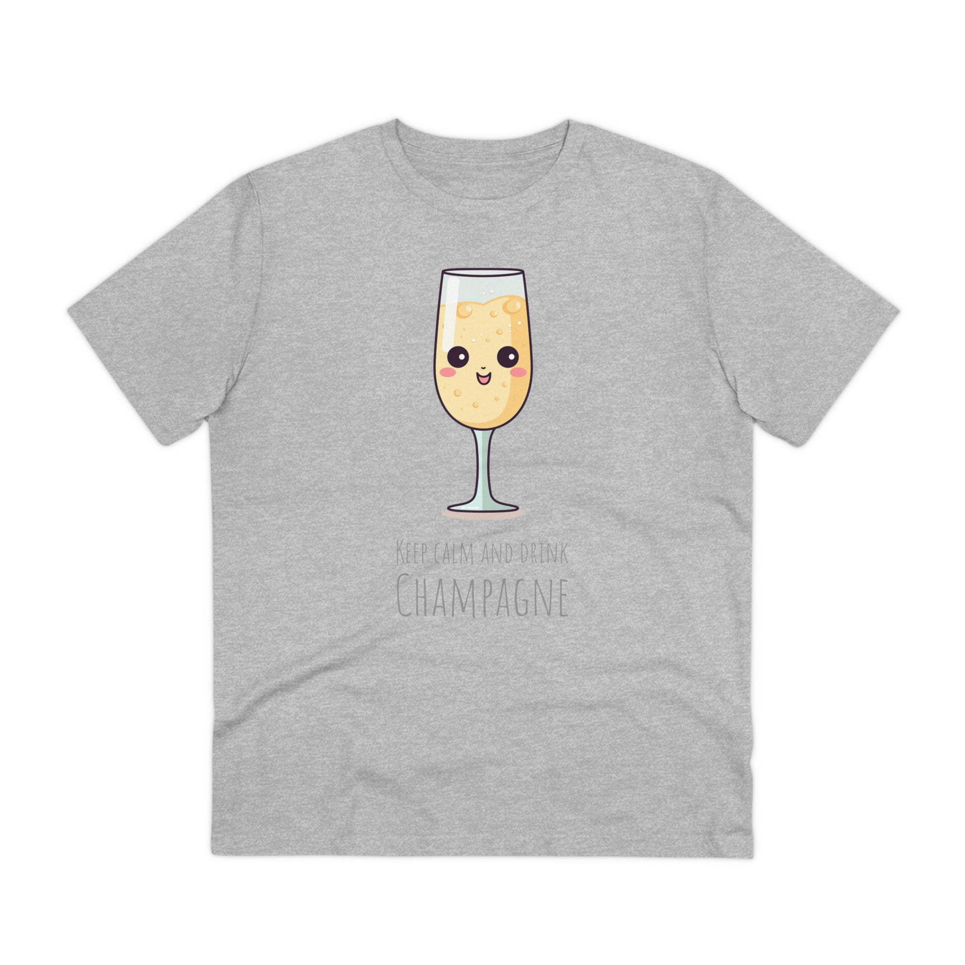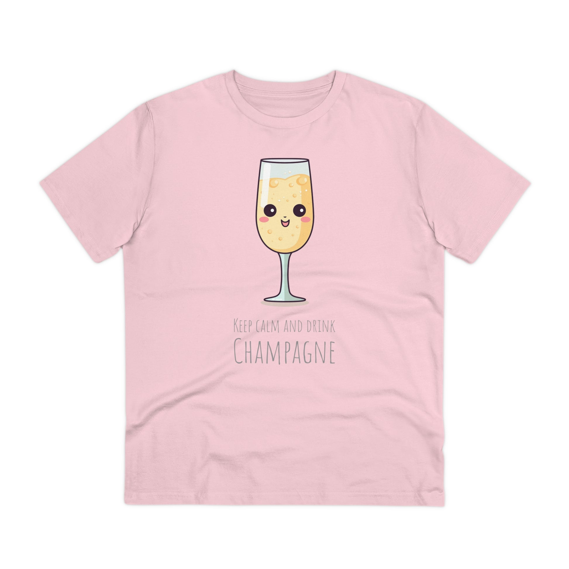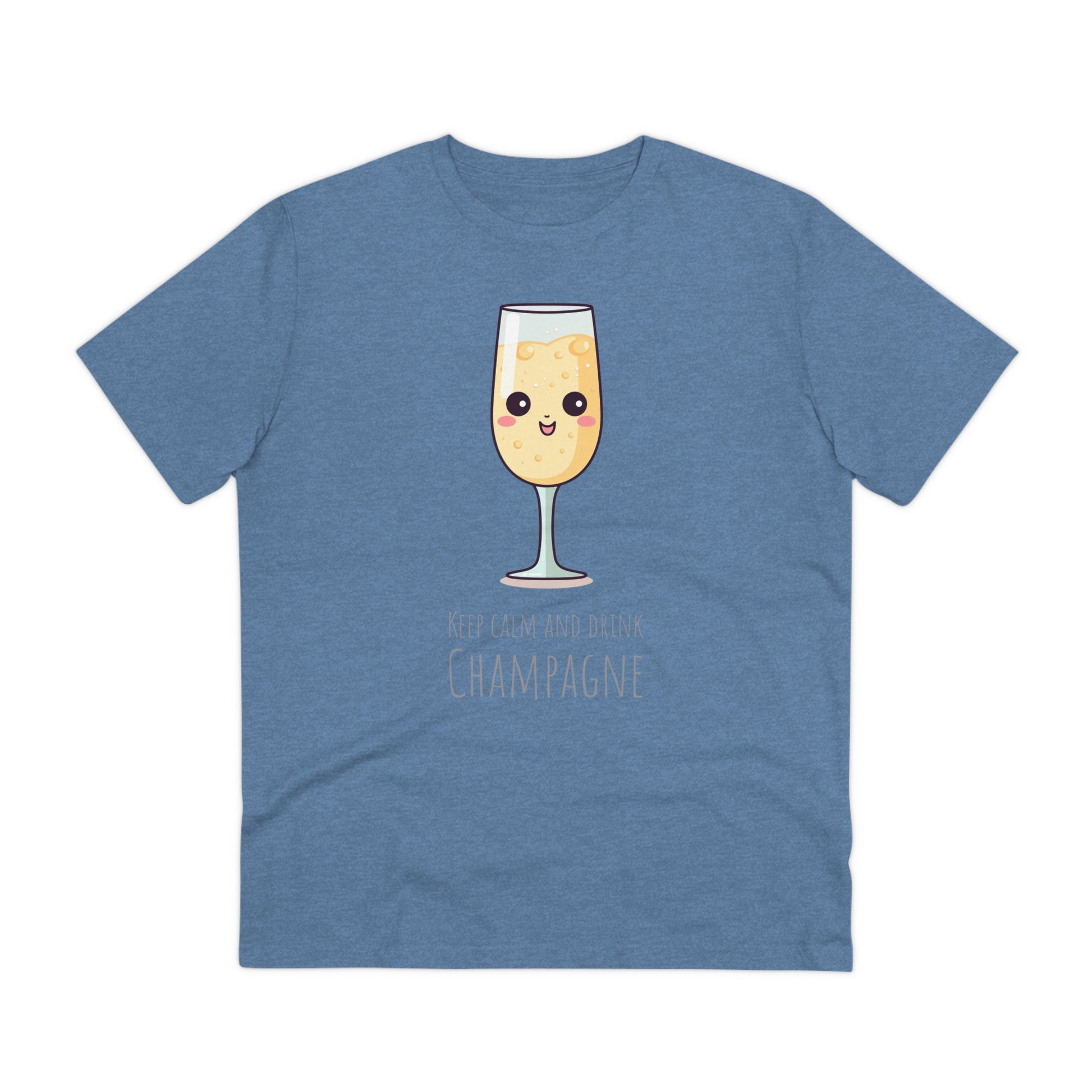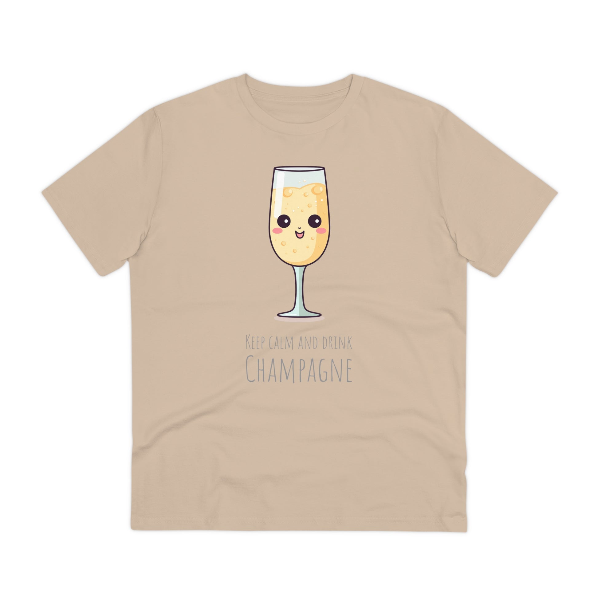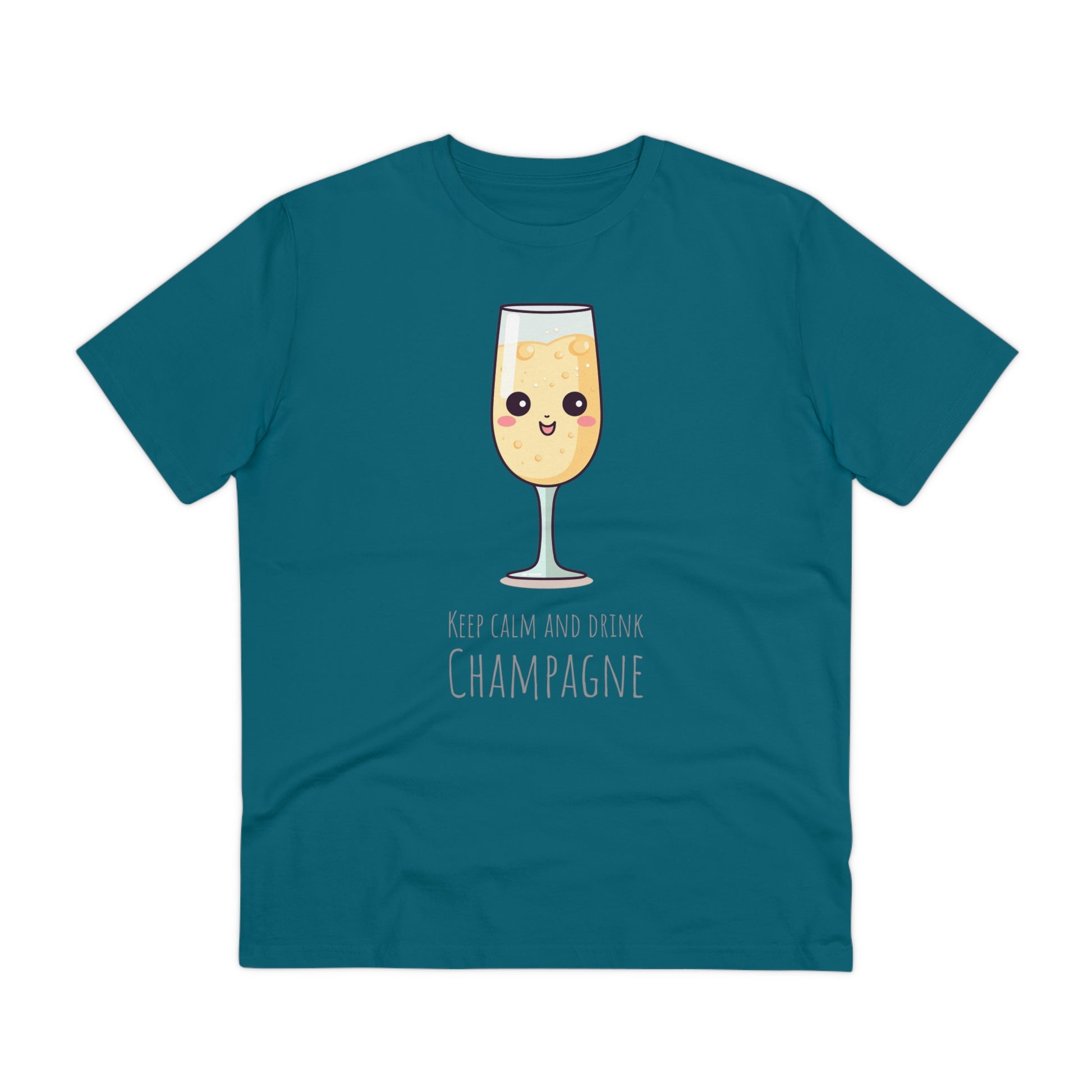 Keywords: Eco-friendly t-shirt, Sustainable fashion, Cute champagne glass, Keep calm and drink Champagne, Celebrate in style, Champagne lover, Sustainable clothing, Environmentally conscious, Eco-conscious design, Sustainable materials, Champagne celebrations, Eco-friendly apparel, Stylish and sustainable.