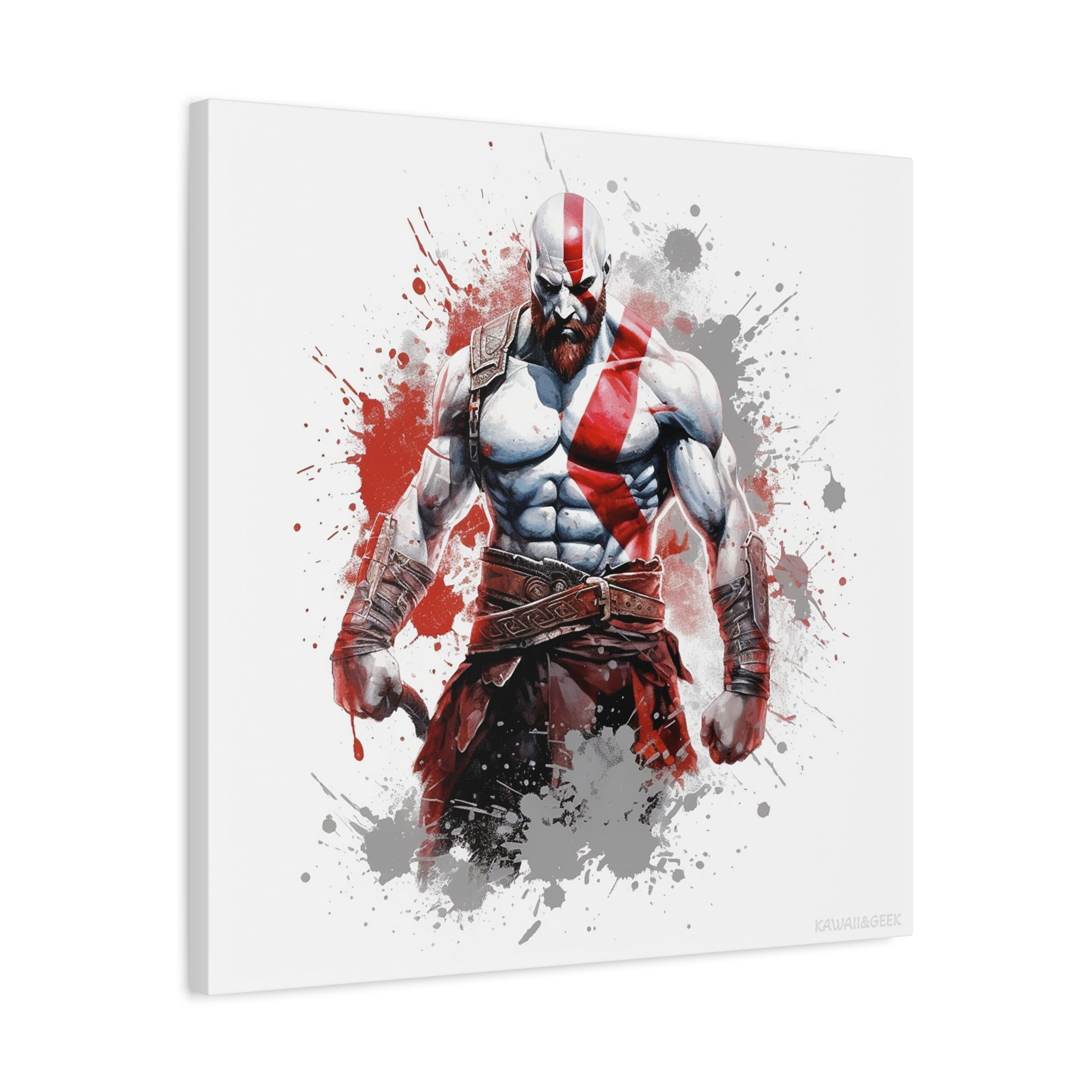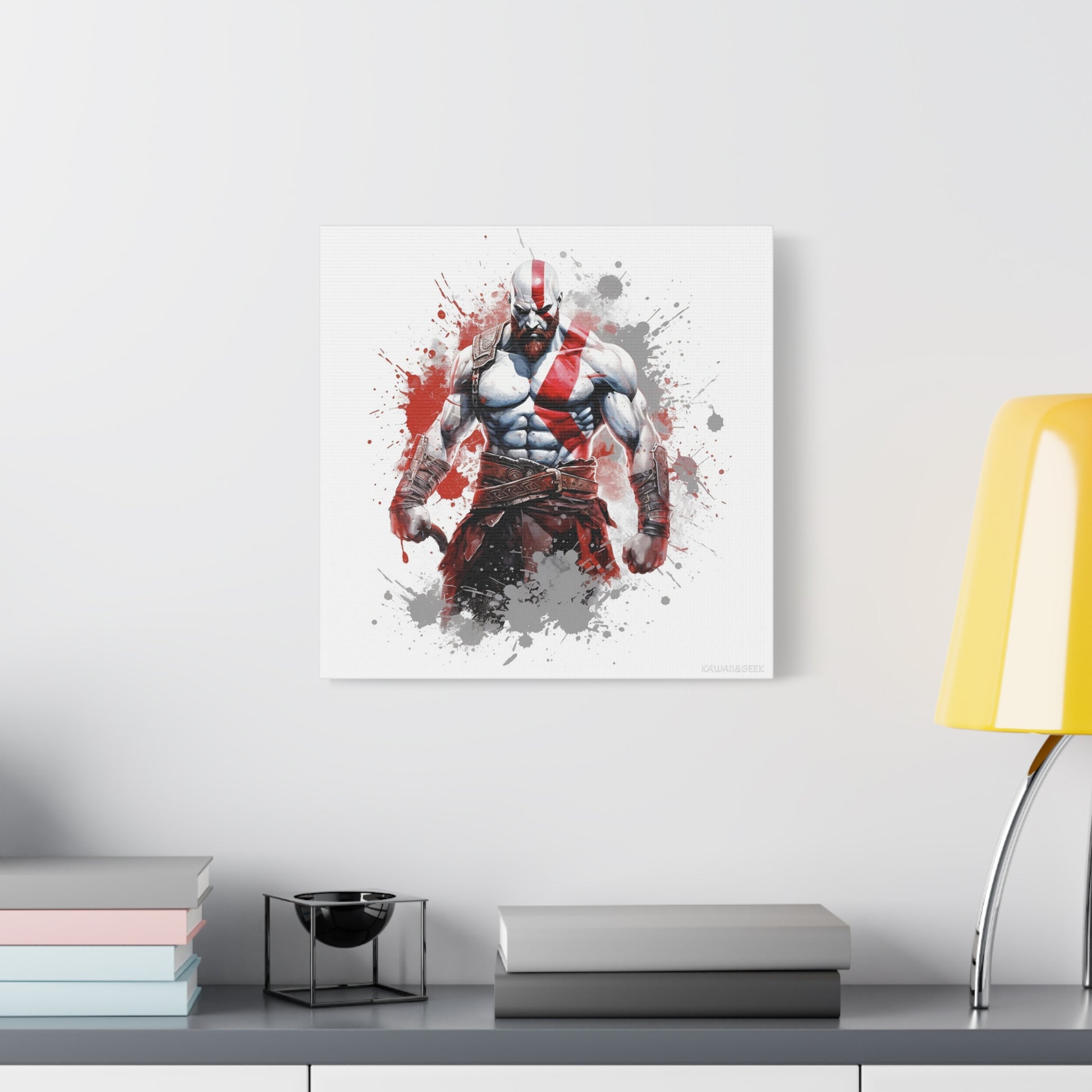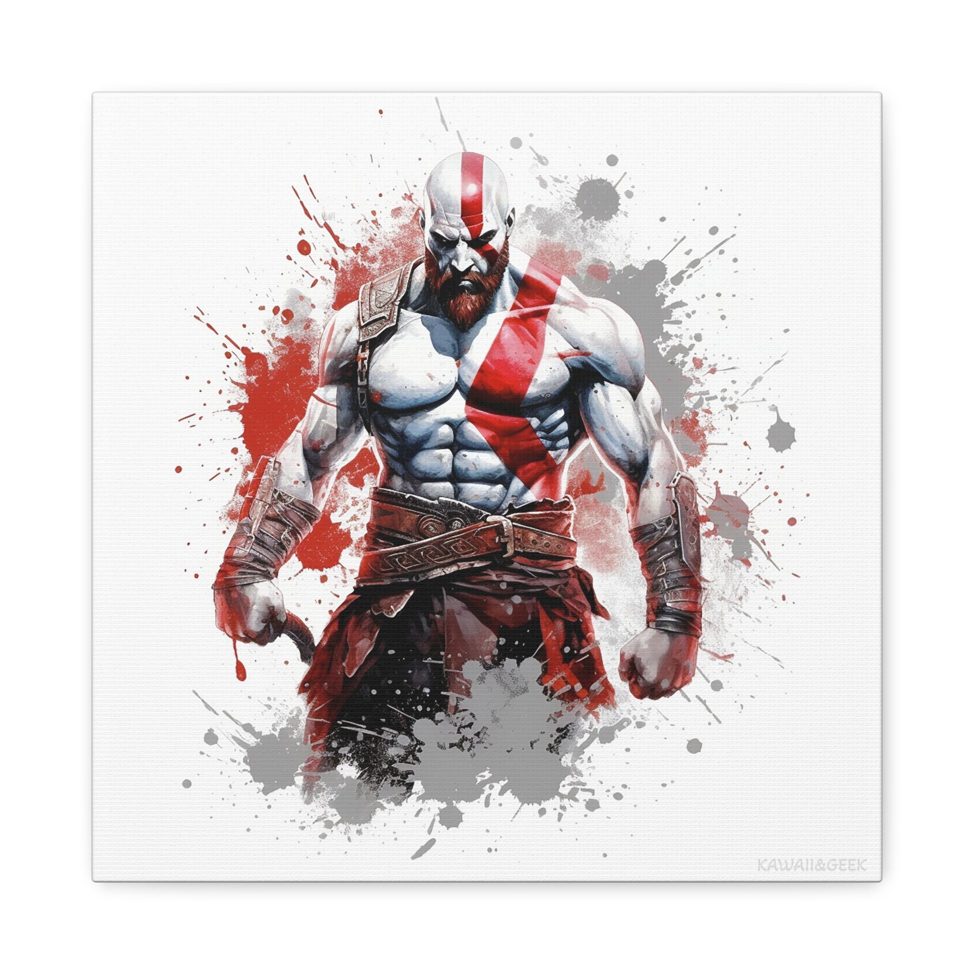 Keywords: Kratos watercolor canvas, high-quality print, gaming-inspired art, artistic decor, vibrant colors, God of War, gaming legend.