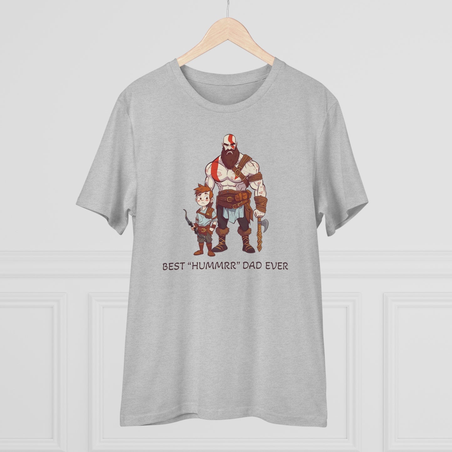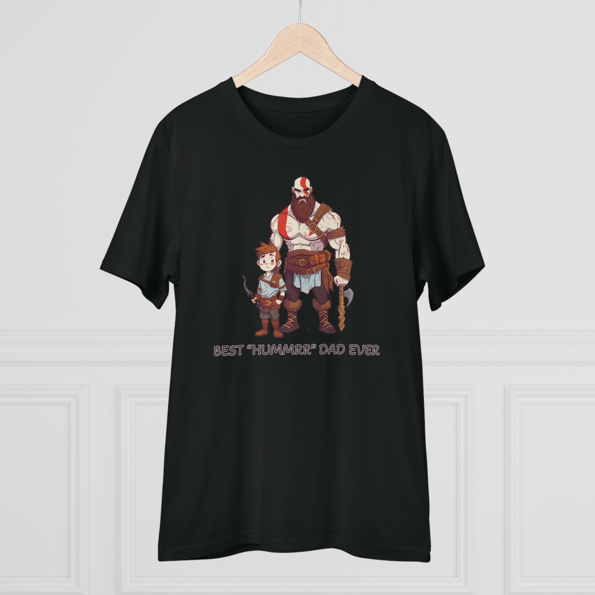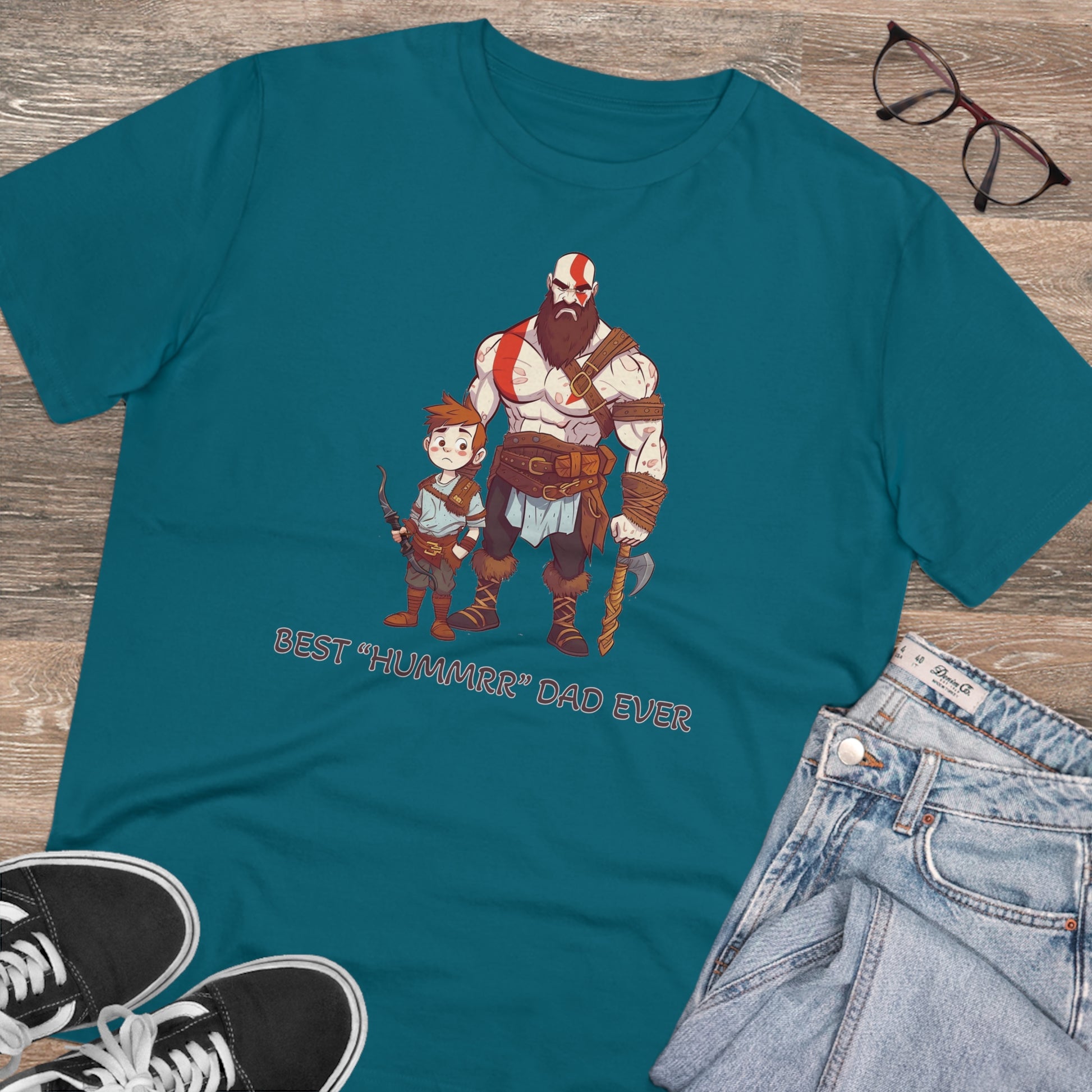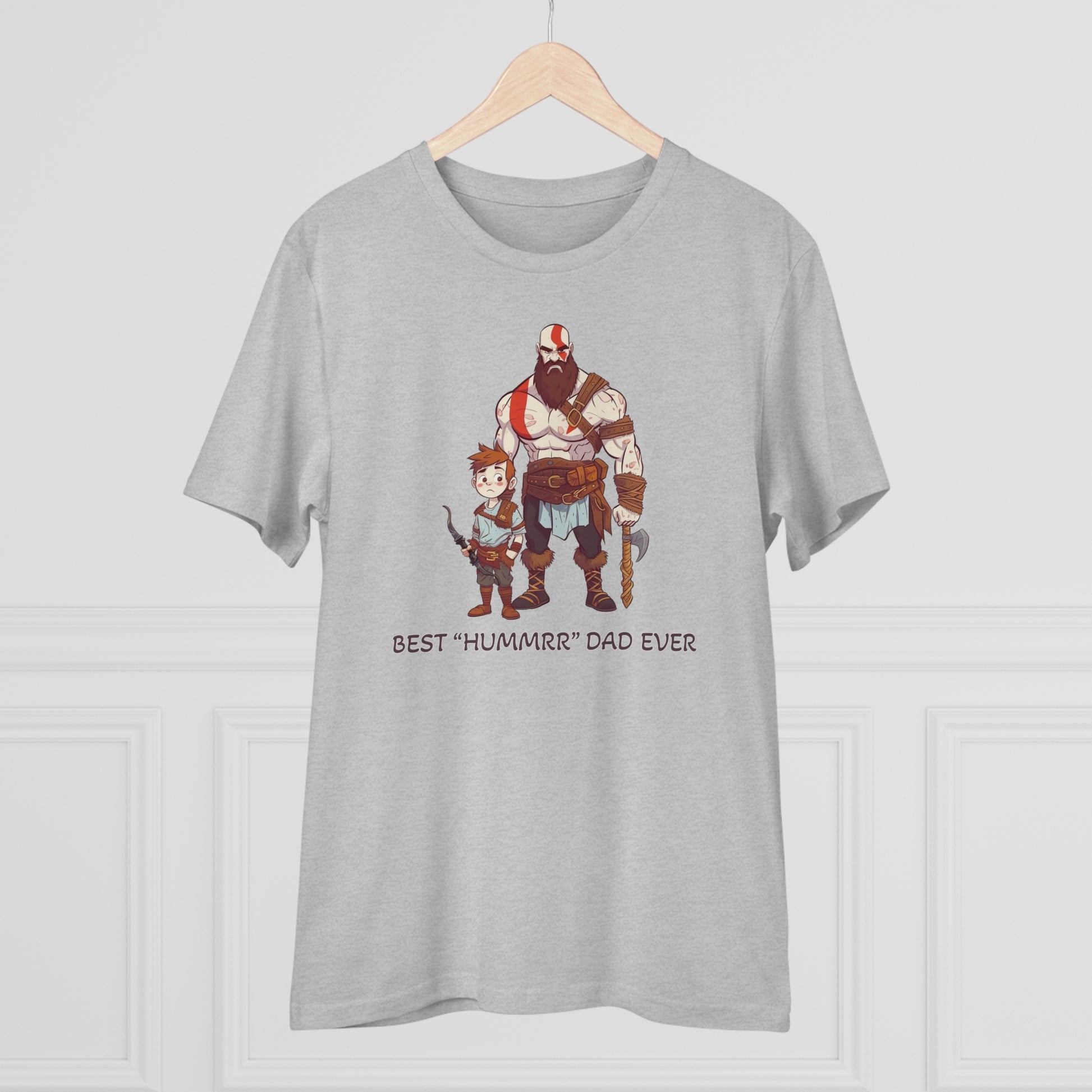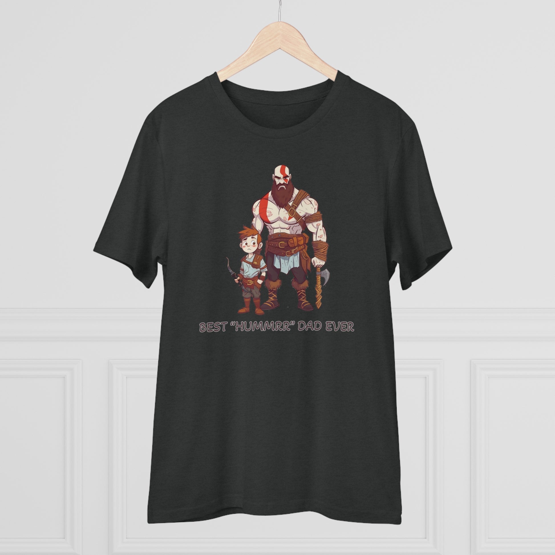 Keywords: Hummrr Dad t-shirt, Father's Day gift, eco-friendly fashion, sustainable materials, Cute Kratos and Atreus design, playful t-shirt, unisex fashion.