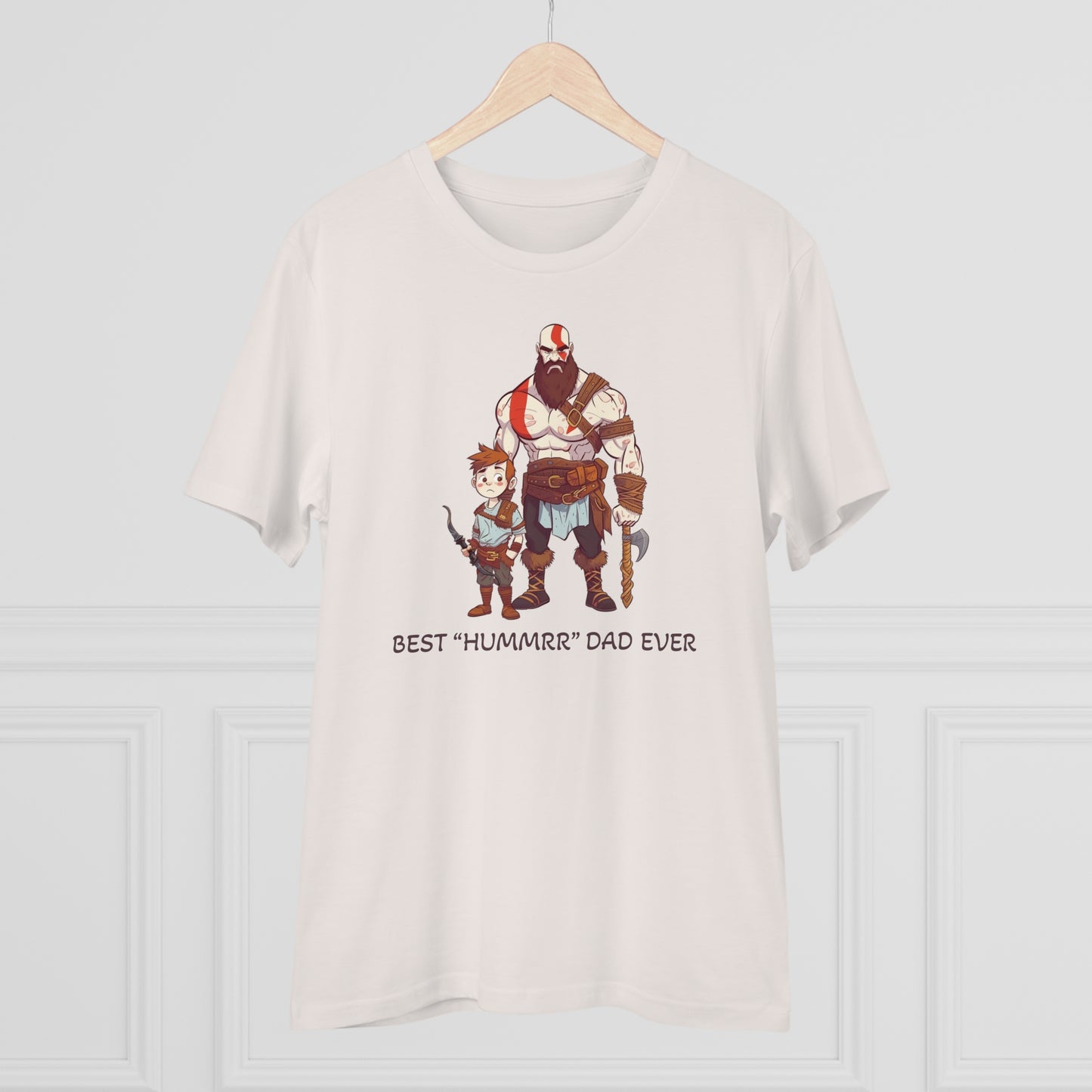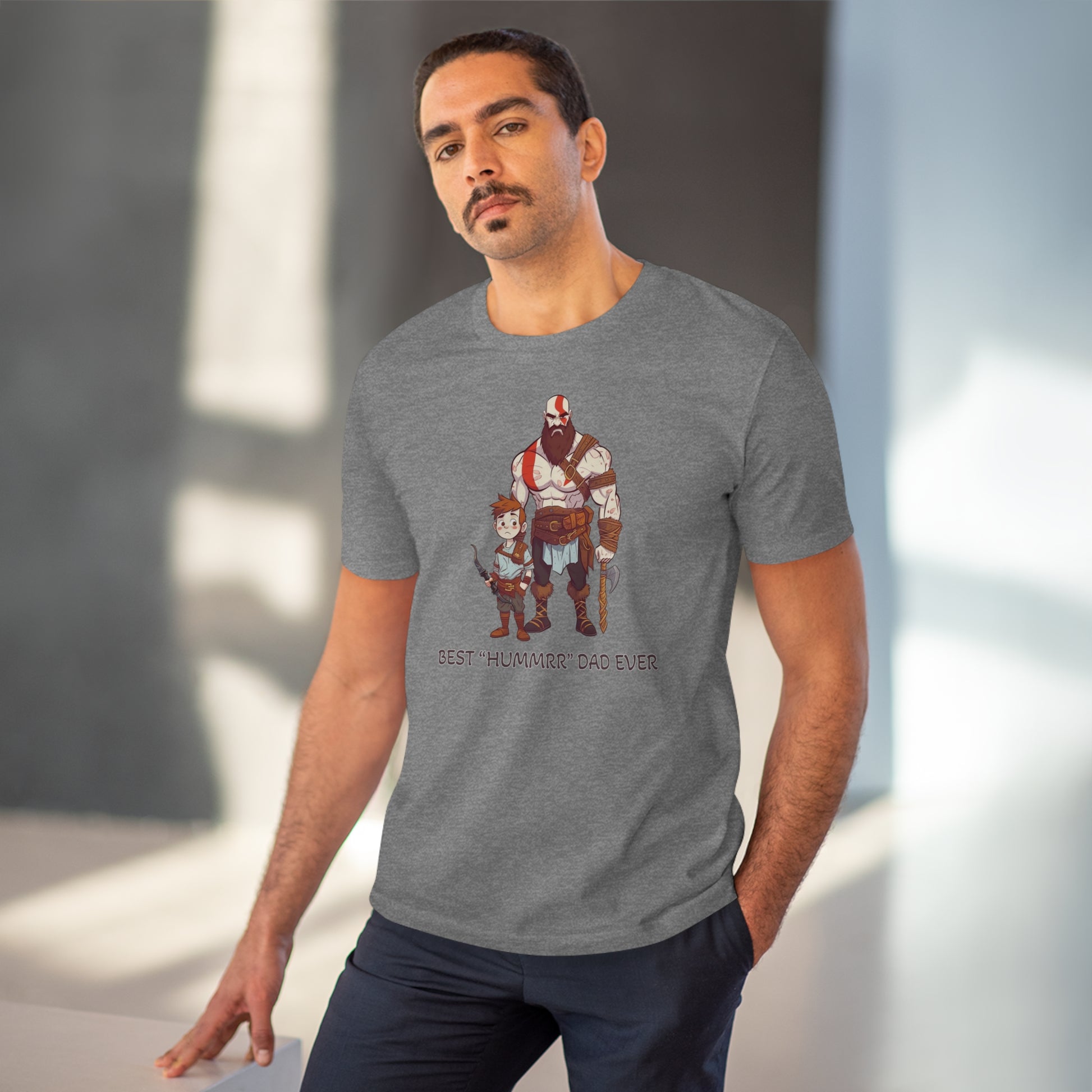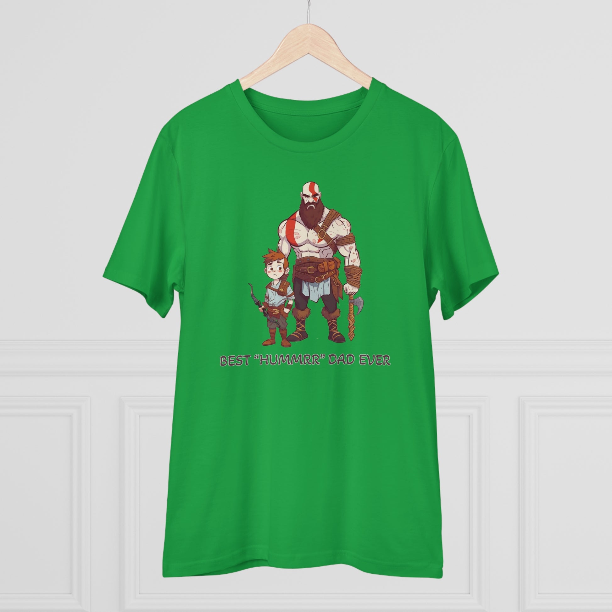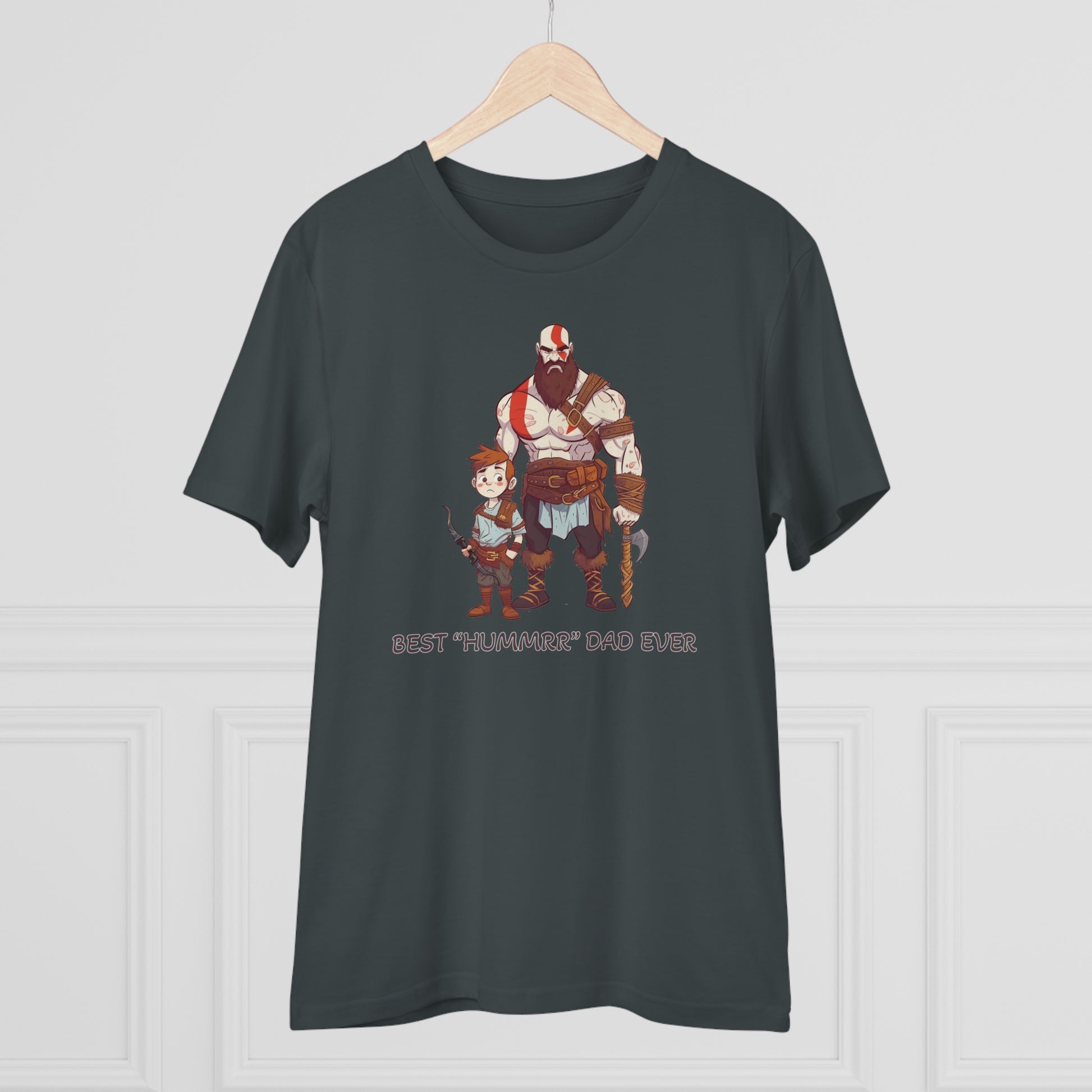 Keywords: Hummrr Dad t-shirt, Father's Day gift, eco-friendly fashion, sustainable materials, Cute Kratos and Atreus design, playful t-shirt, unisex fashion.