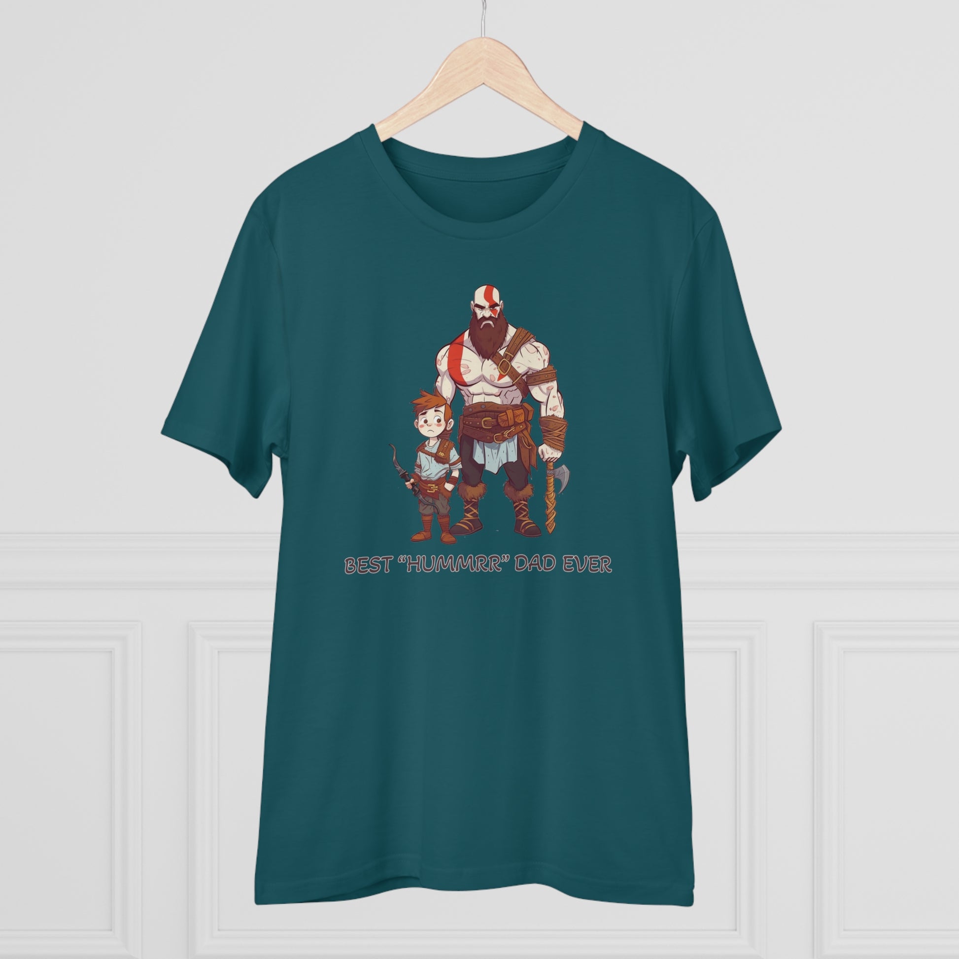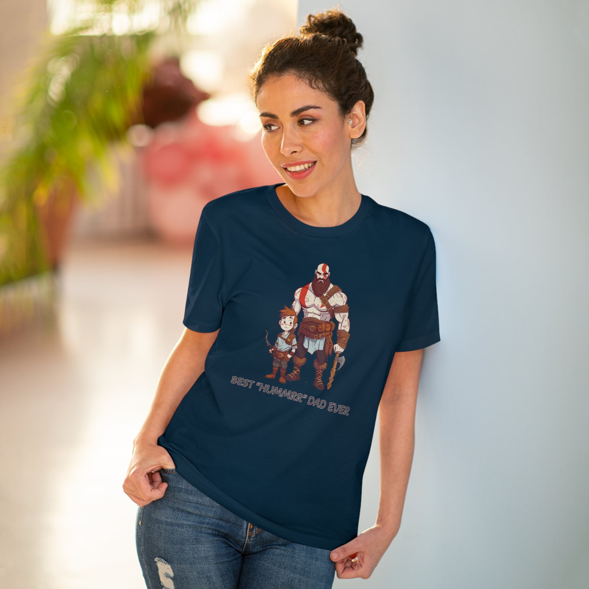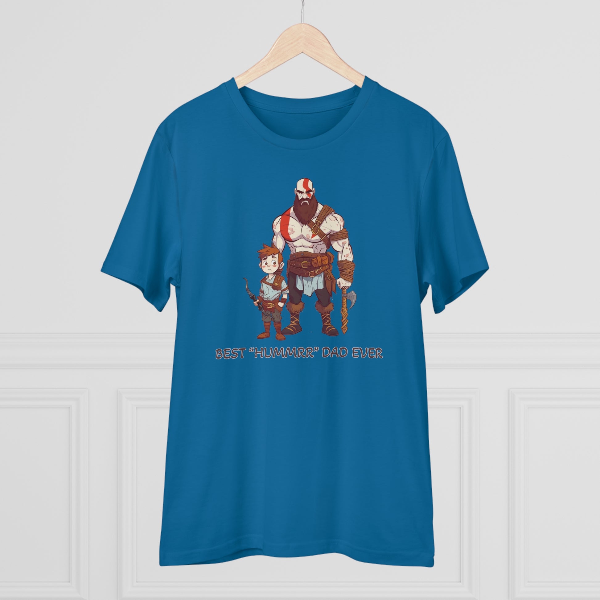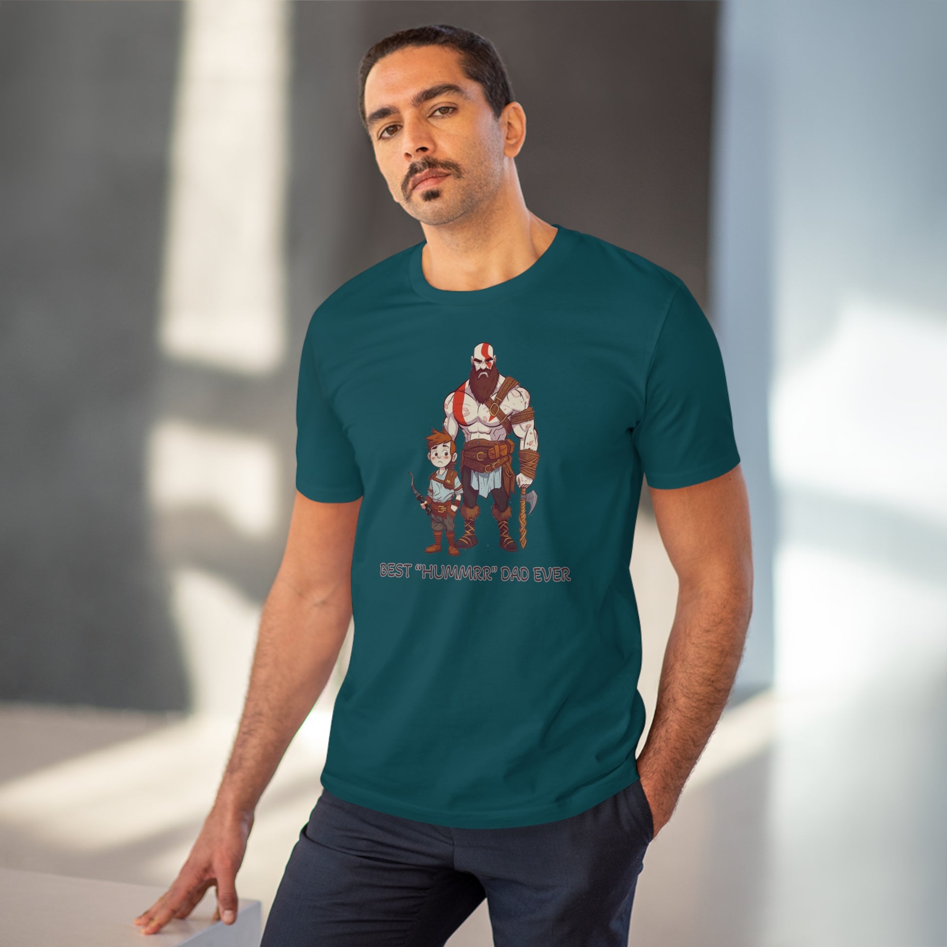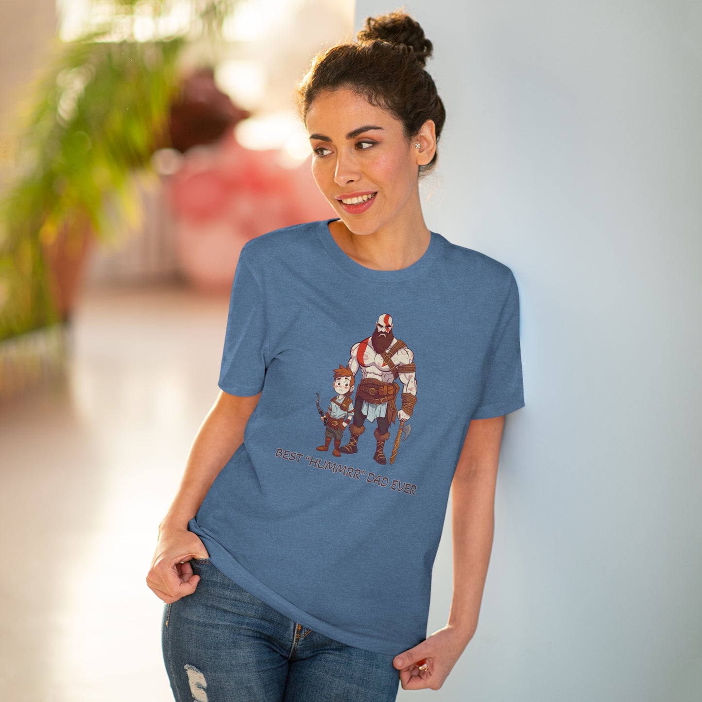 Keywords: Hummrr Dad t-shirt, Father's Day gift, eco-friendly fashion, sustainable materials, Cute Kratos and Atreus design, playful t-shirt, unisex fashion.