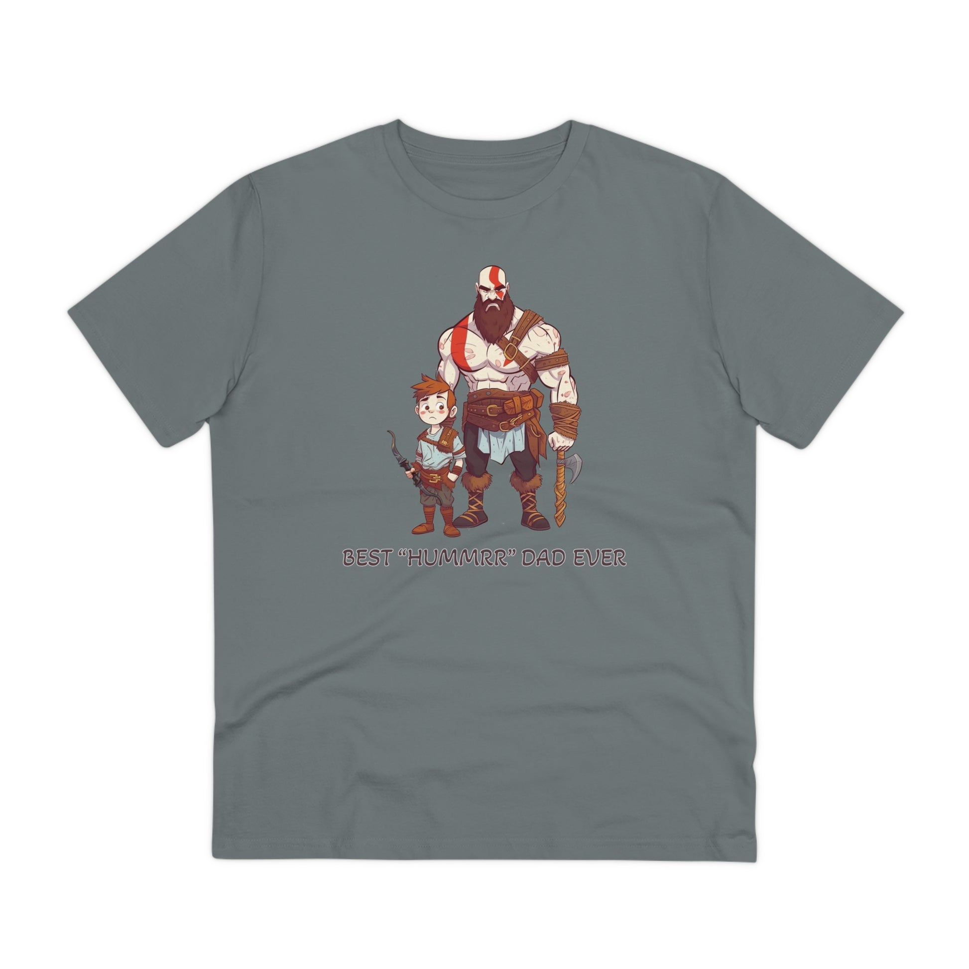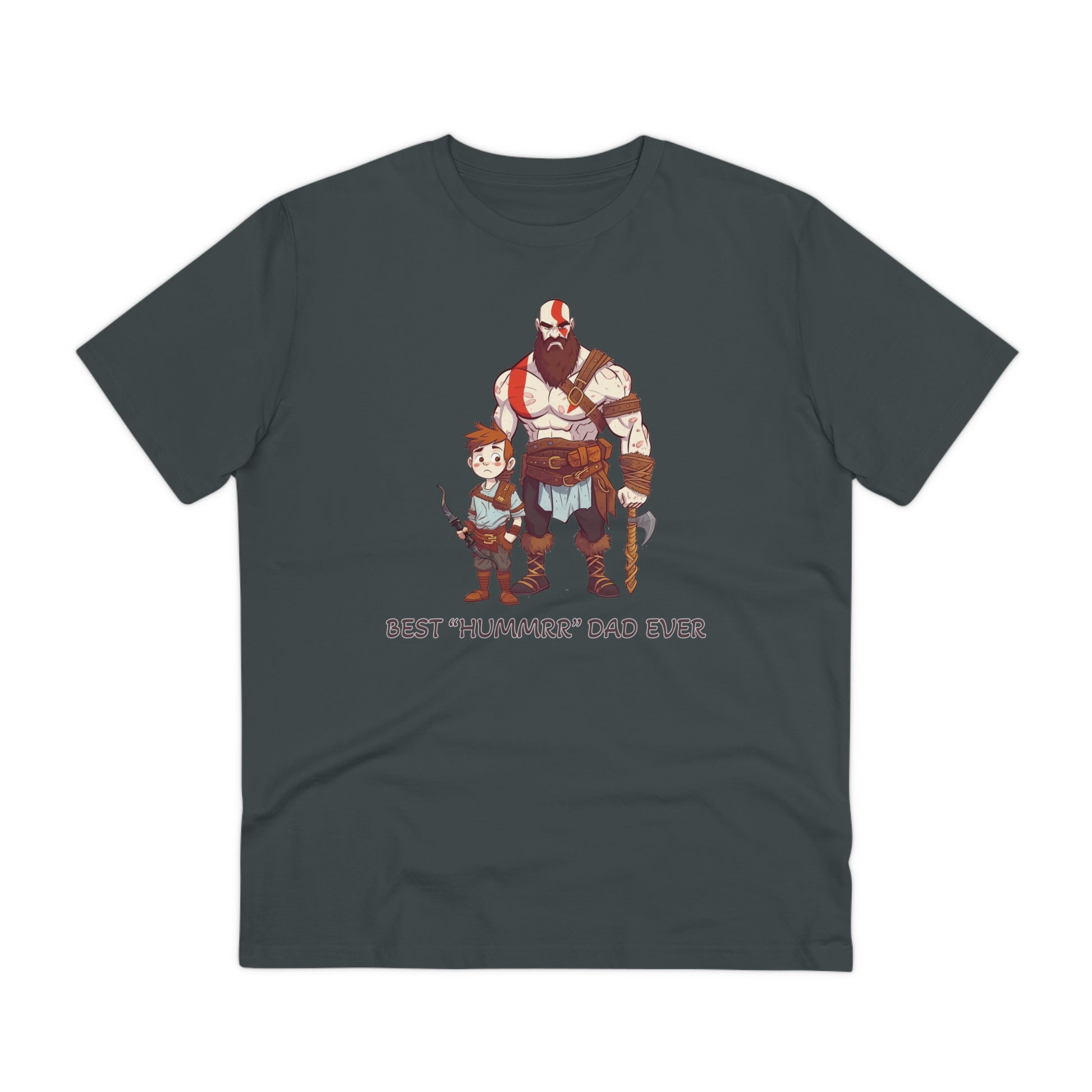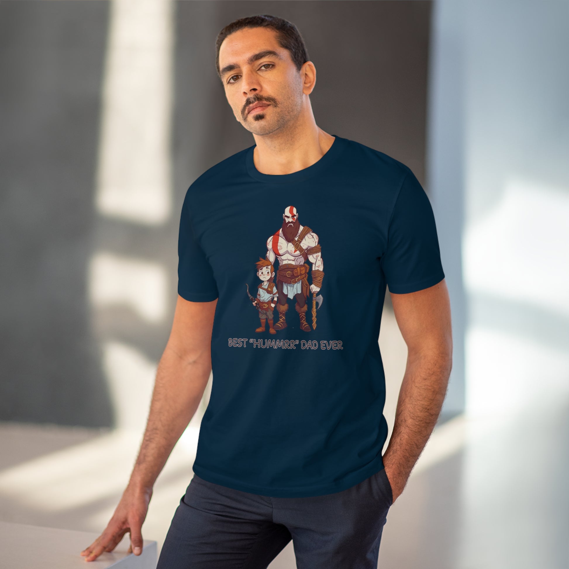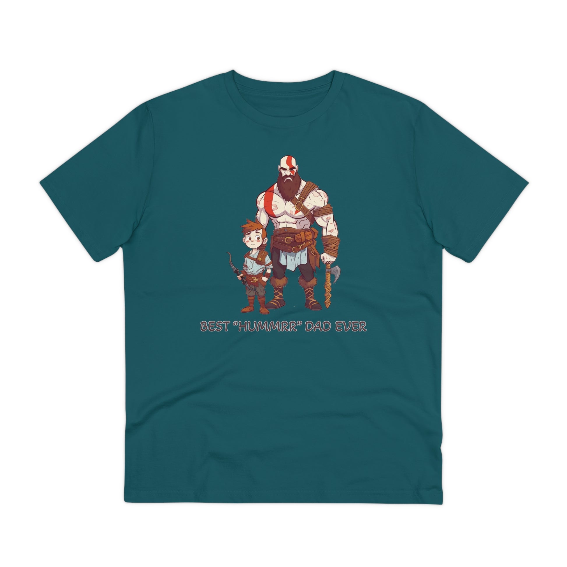 Keywords: Hummrr Dad t-shirt, Father's Day gift, eco-friendly fashion, sustainable materials, Cute Kratos and Atreus design, playful t-shirt, unisex fashion.
