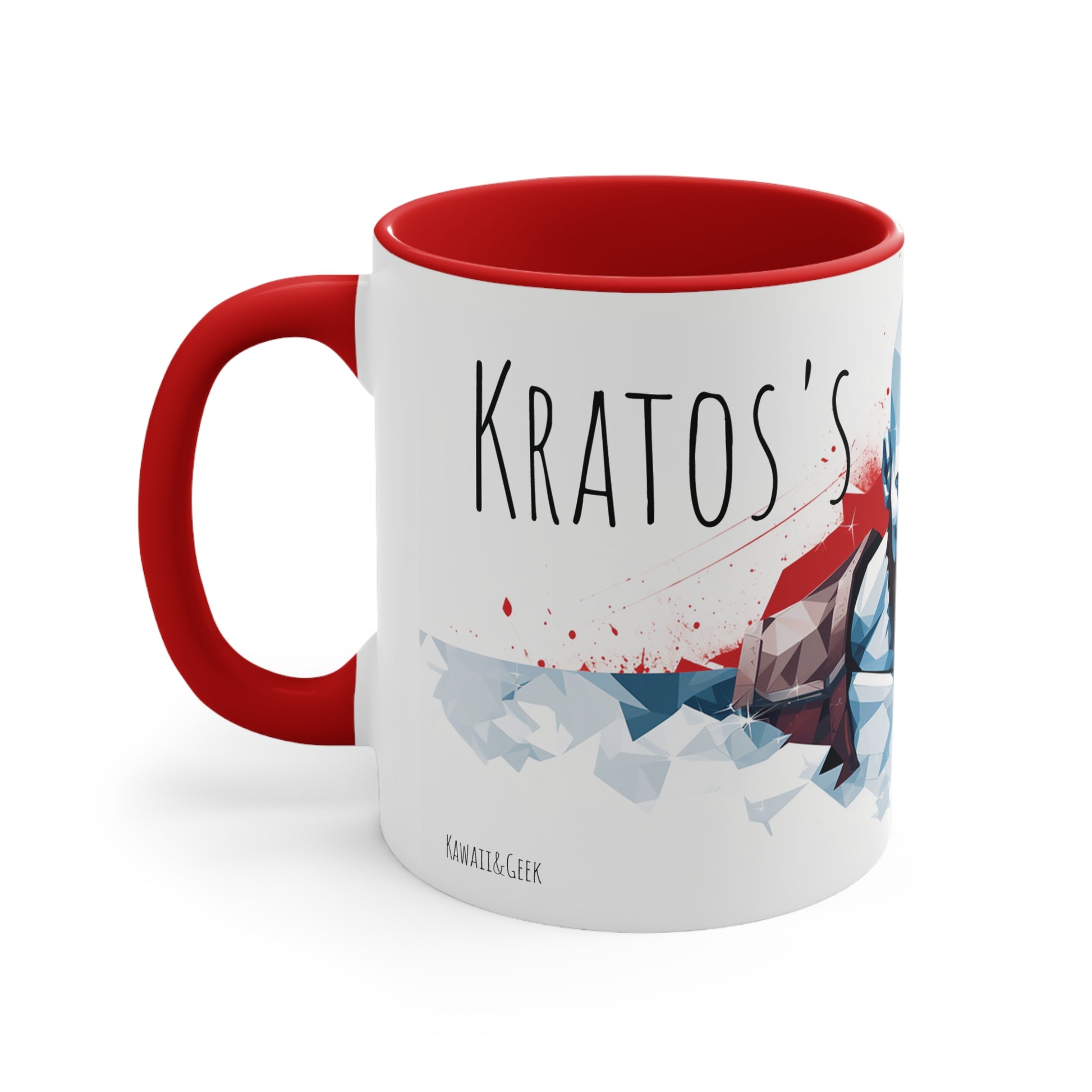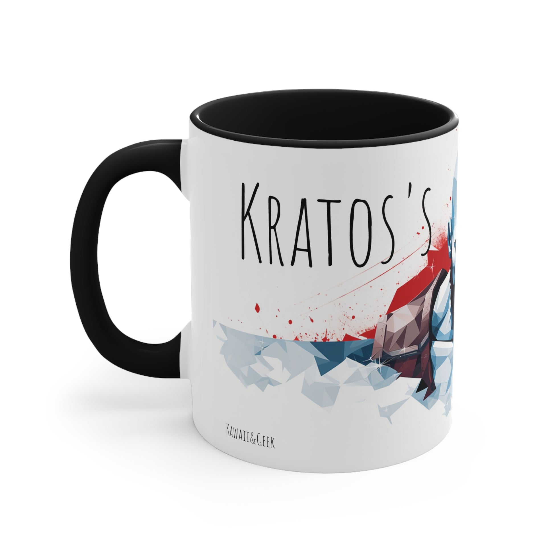 This 11 oz bicolor mug features Kratos, the iconic video game character from the God of War series, in a stunning geometric style. With its bold design and "Kratos's Mug" inscription, this mug is perfect for fans of the game who want to channel their inner warrior spirit. Crafted with high-quality materials, this mug is both stylish and durable, making it an ideal choice for daily use or as a collectible item. Get ready to conquer your day with every sip from this Kratos-inspired mug!