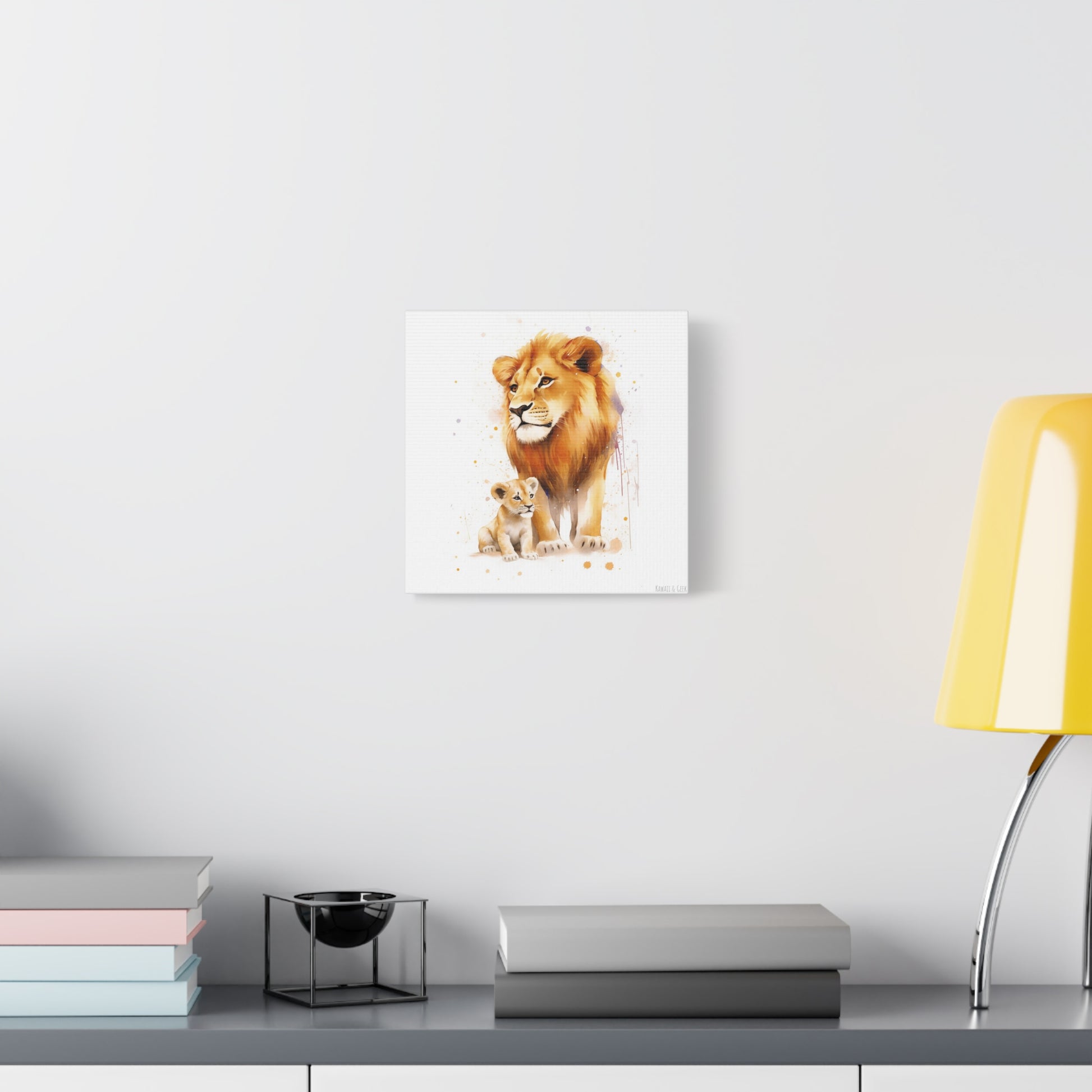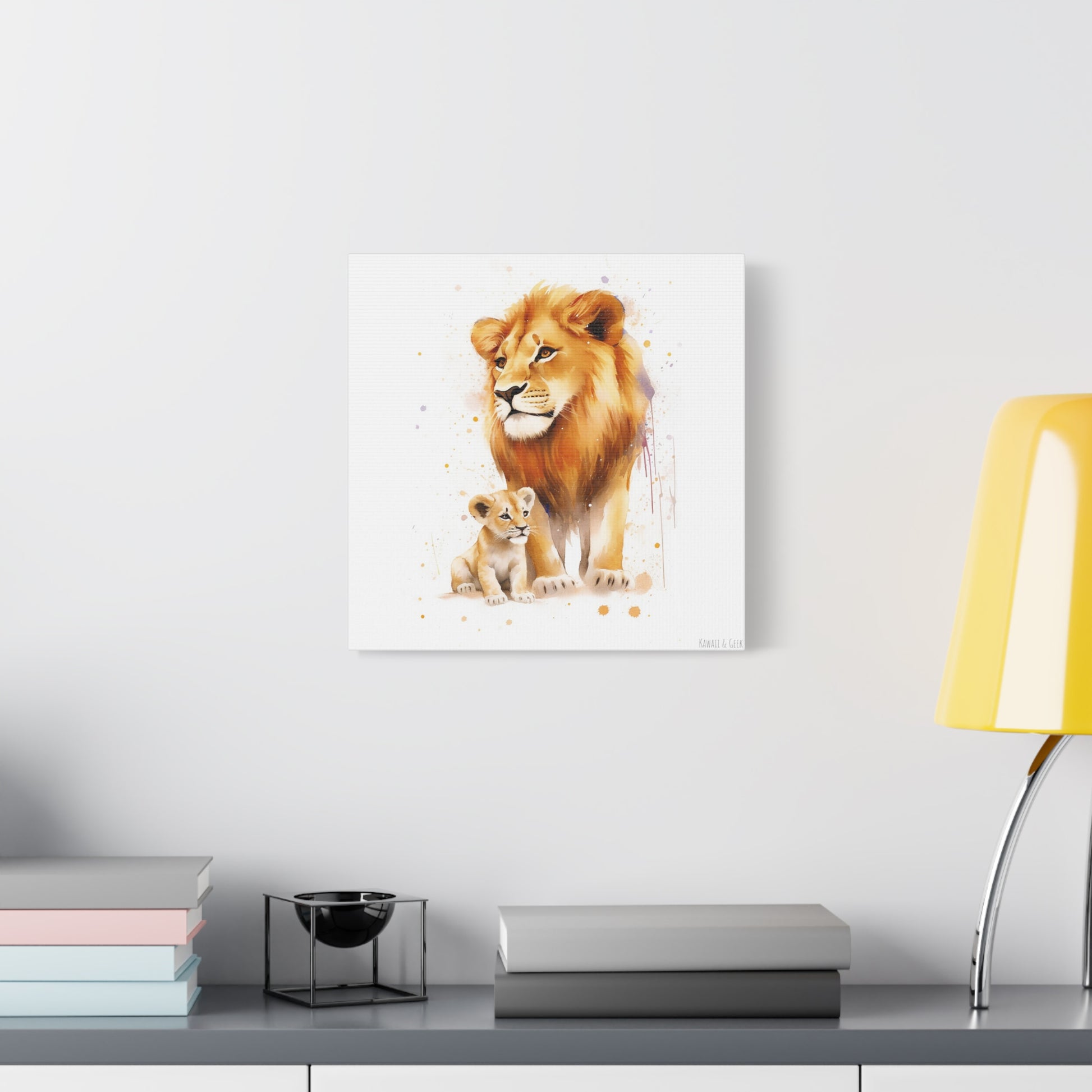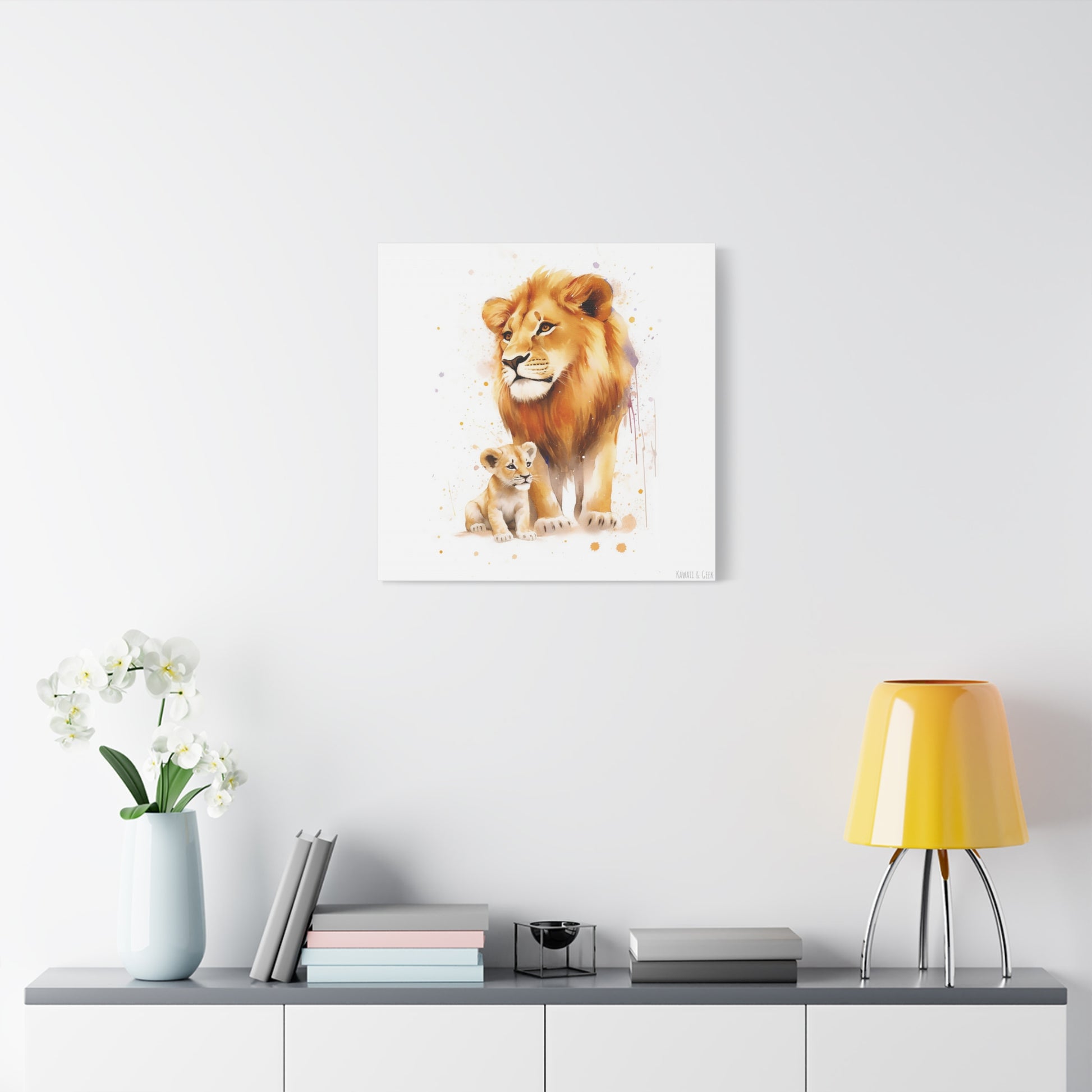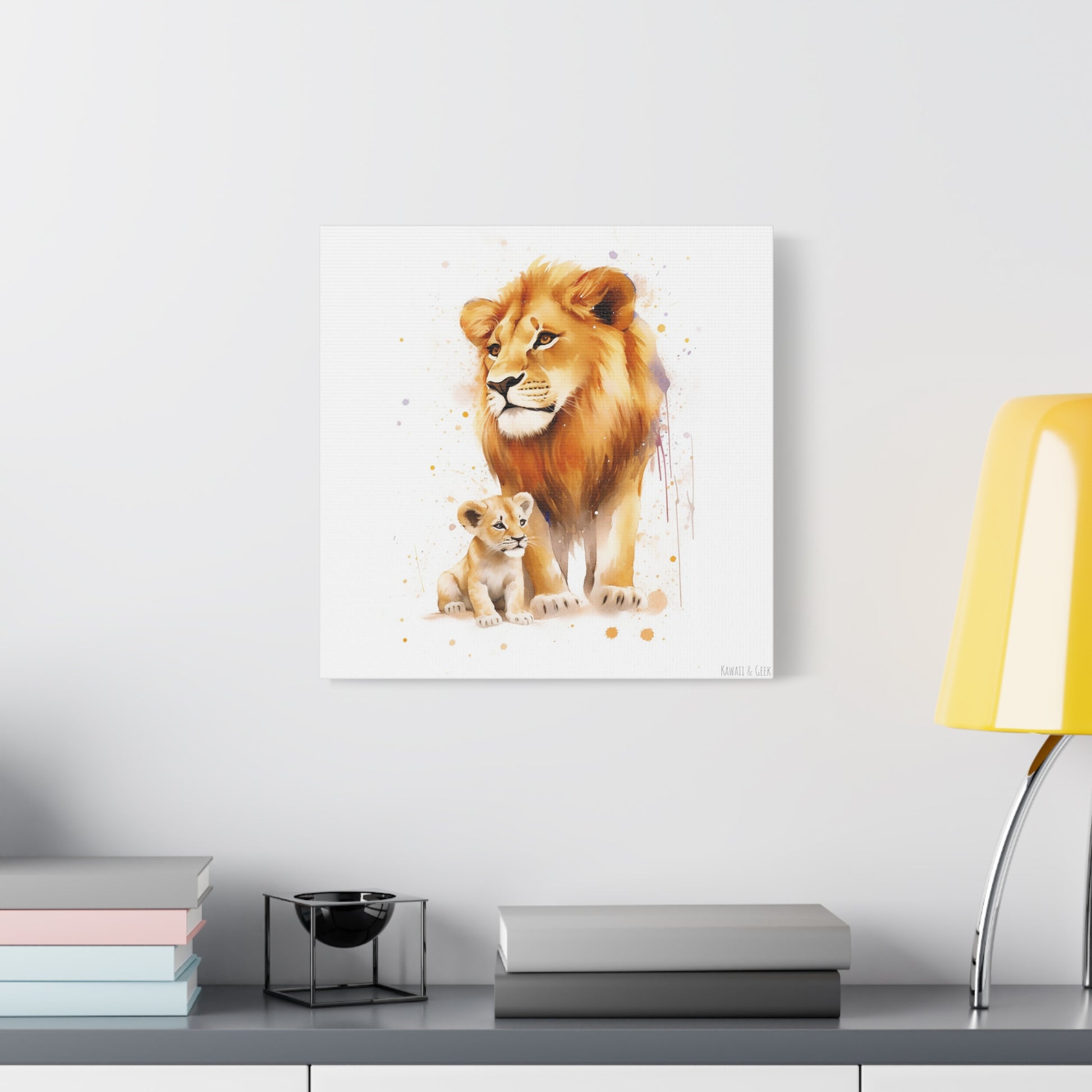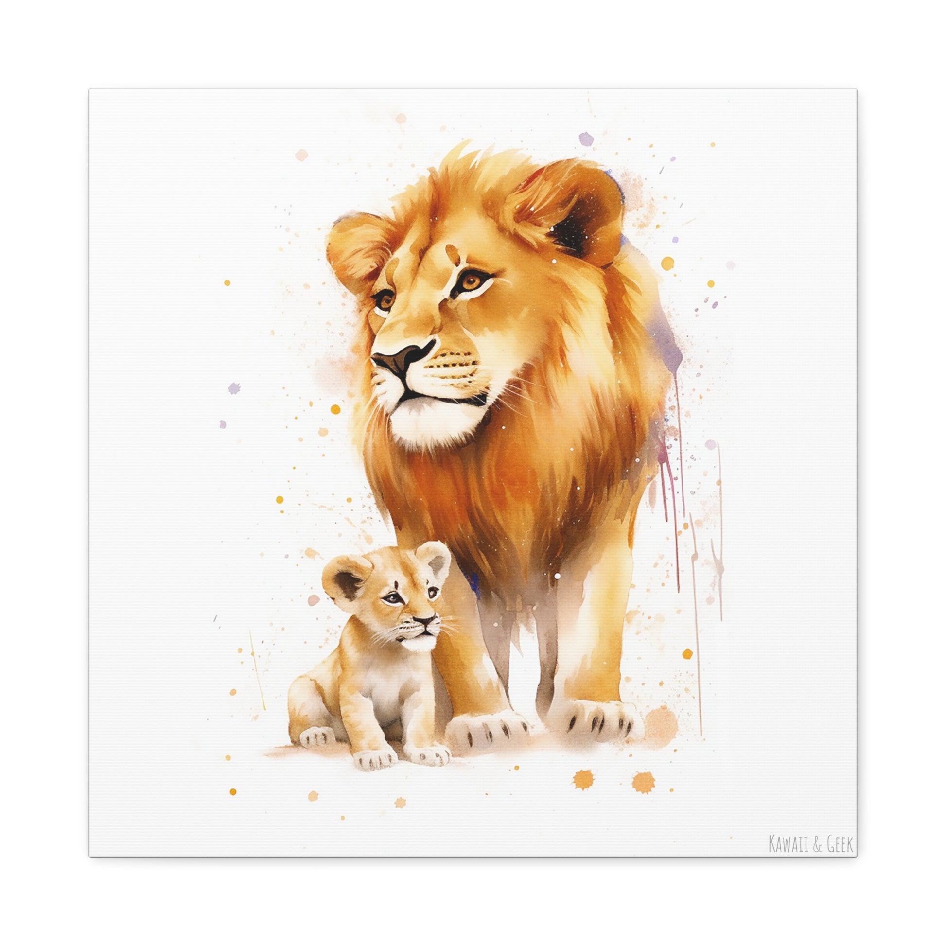 Lion King and Son Watercolor Canvas - Celebrate Father's Day with Majestic Artistry