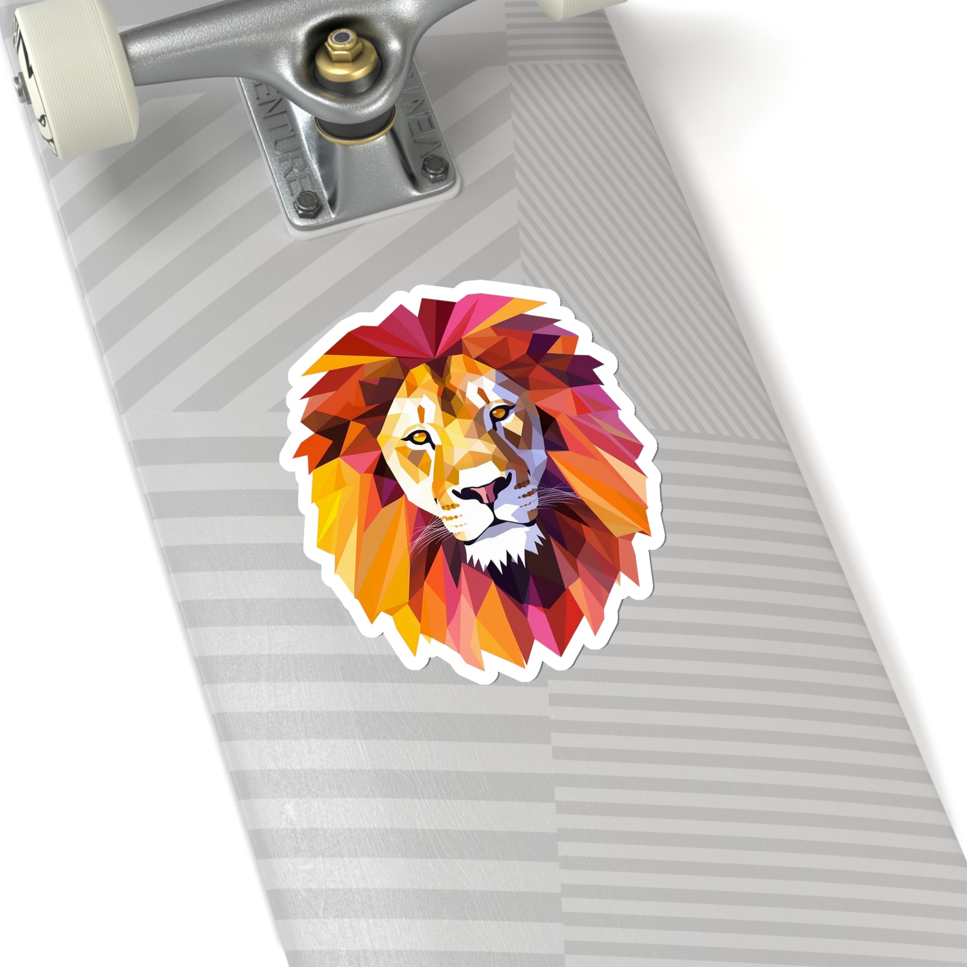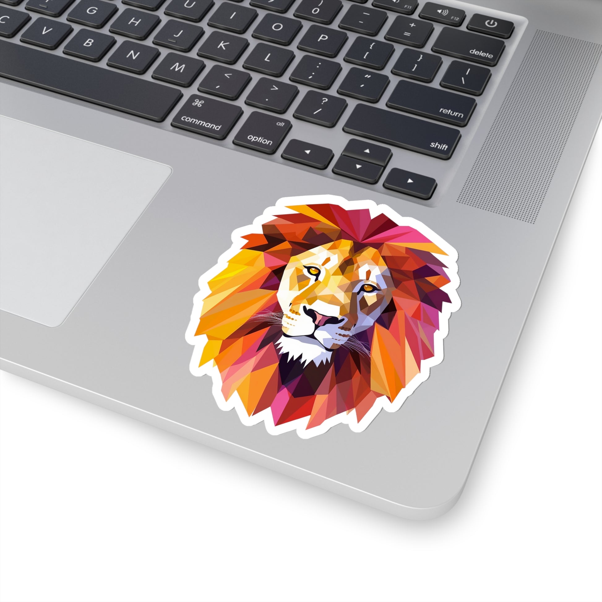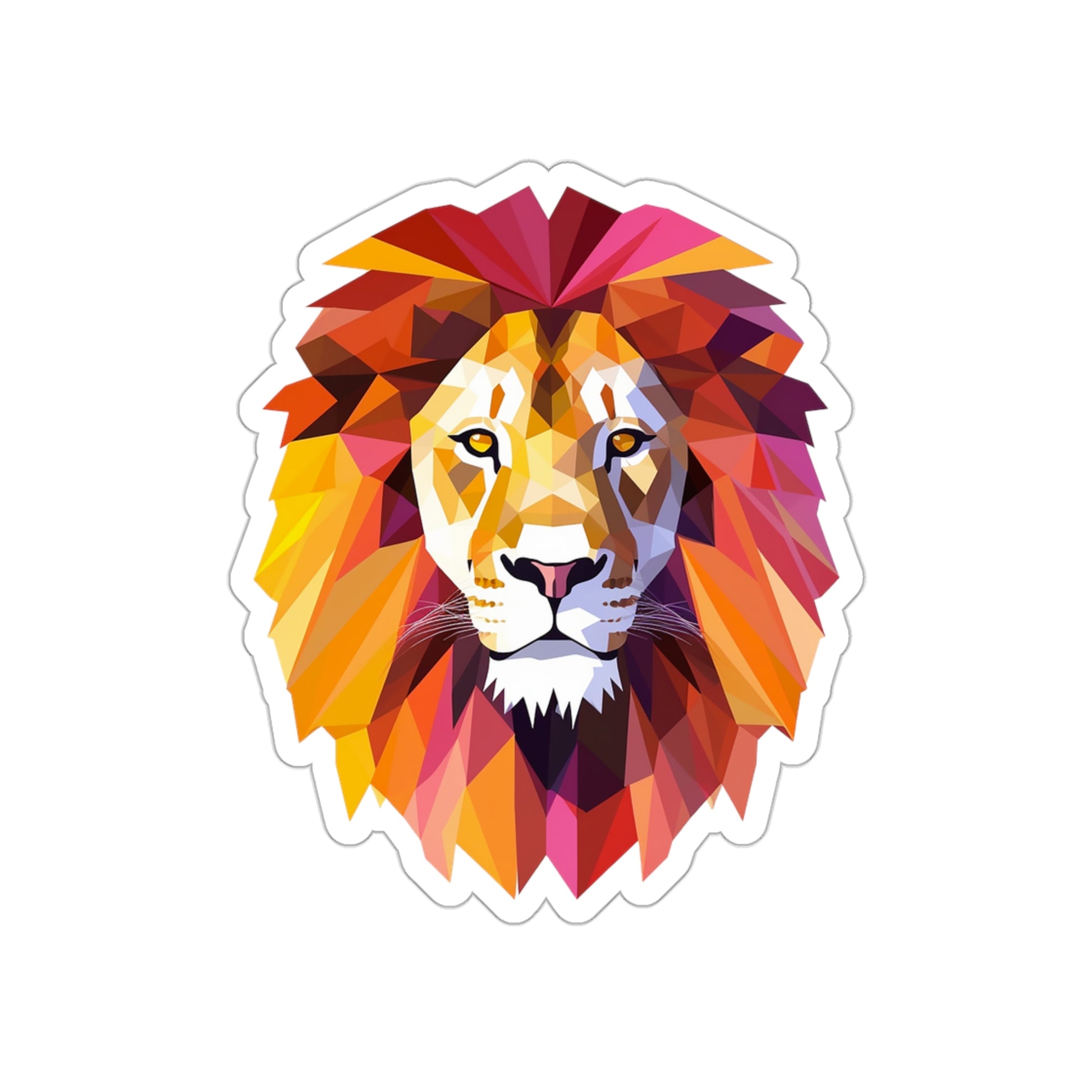 Keywords: Lion sticker, geometric style, vector design, regal majesty, intricate patterns, bold lines, modern and captivating, wildlife enthusiast.