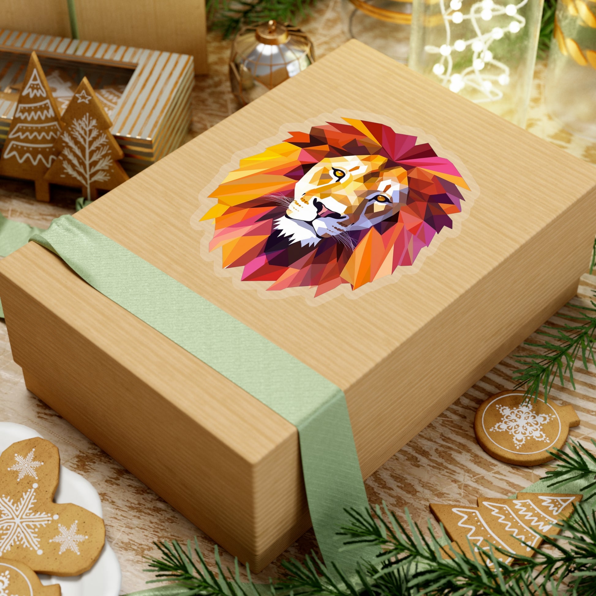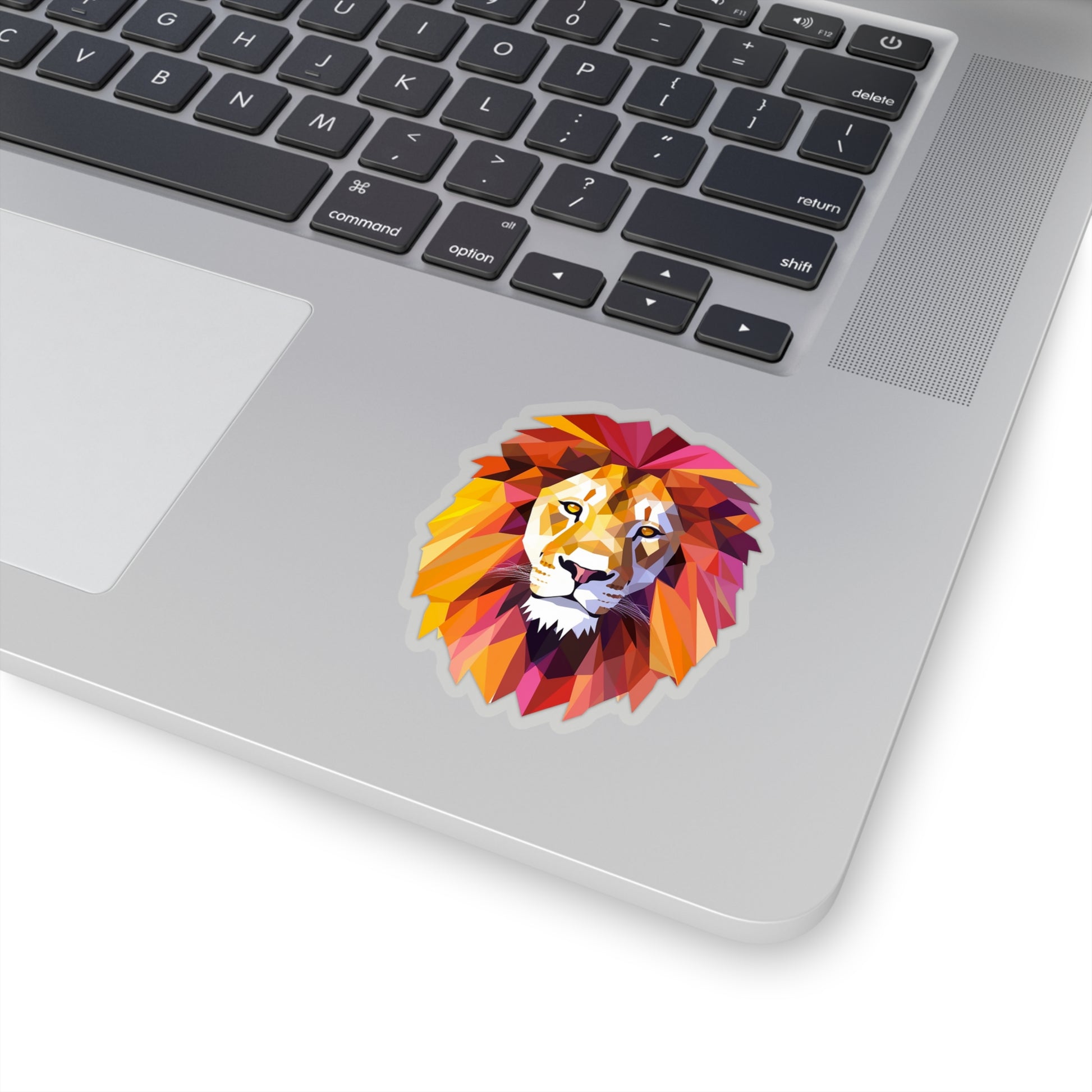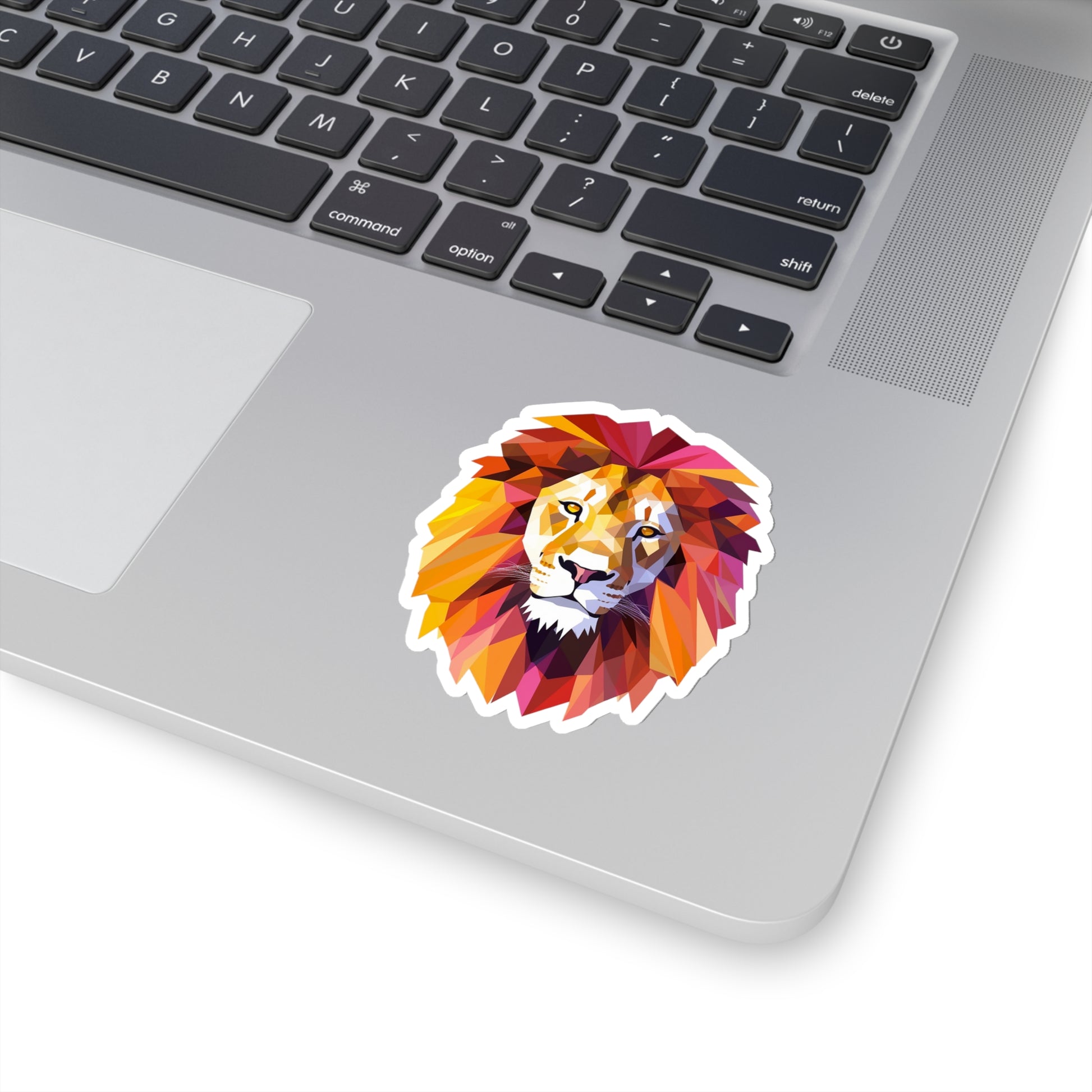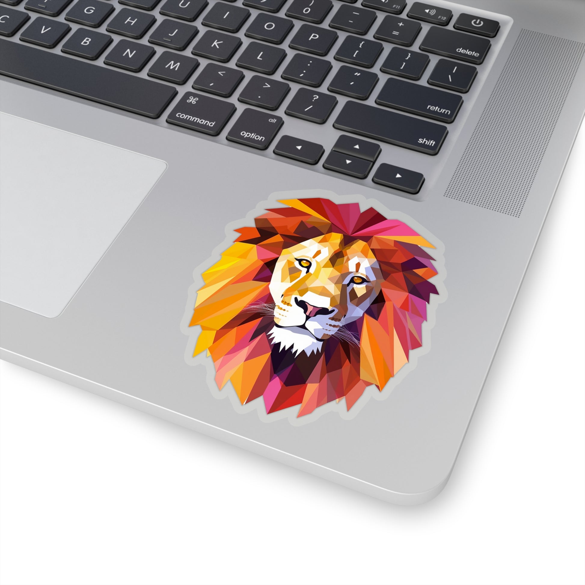 Keywords: Lion sticker, geometric style, vector design, regal majesty, intricate patterns, bold lines, modern and captivating, wildlife enthusiast.