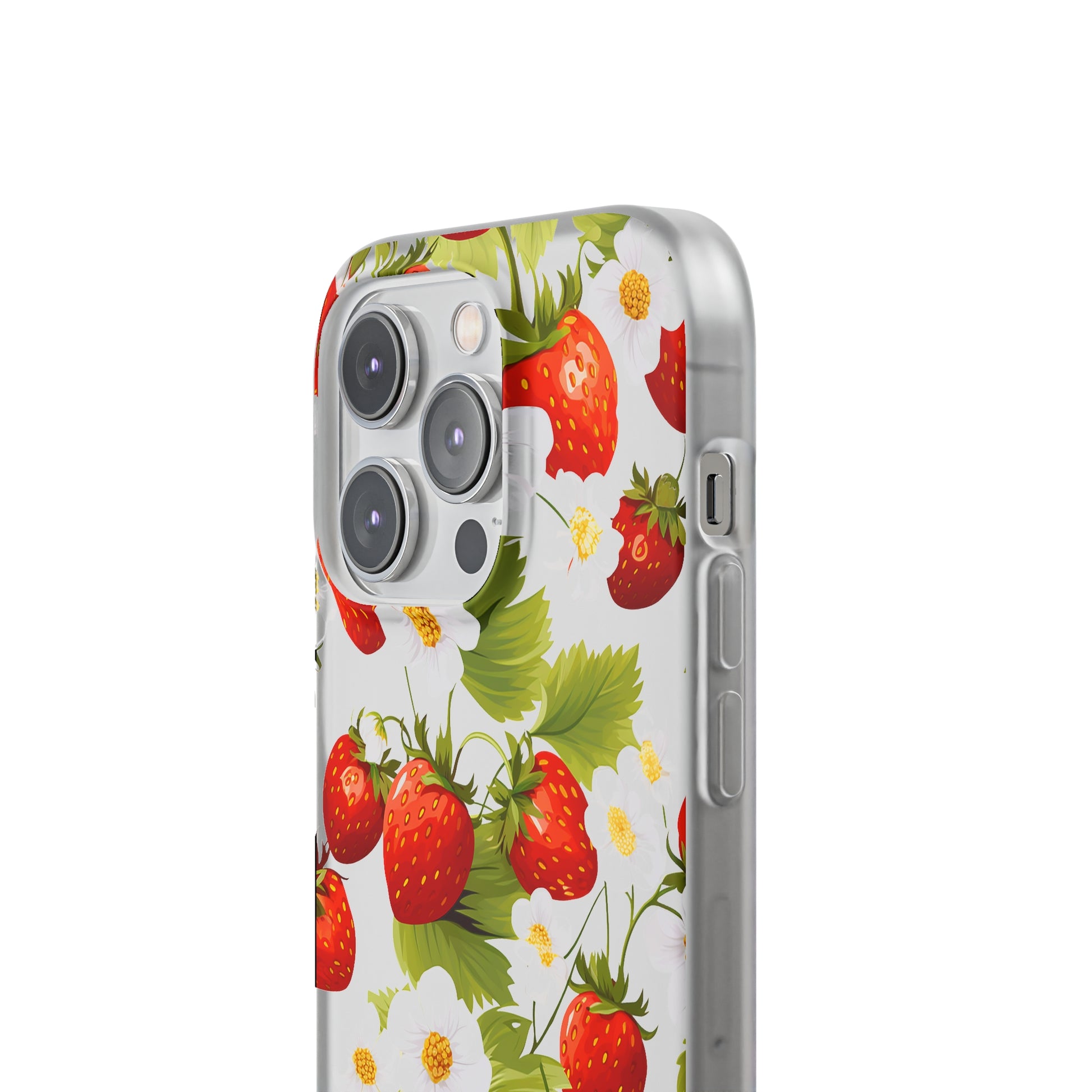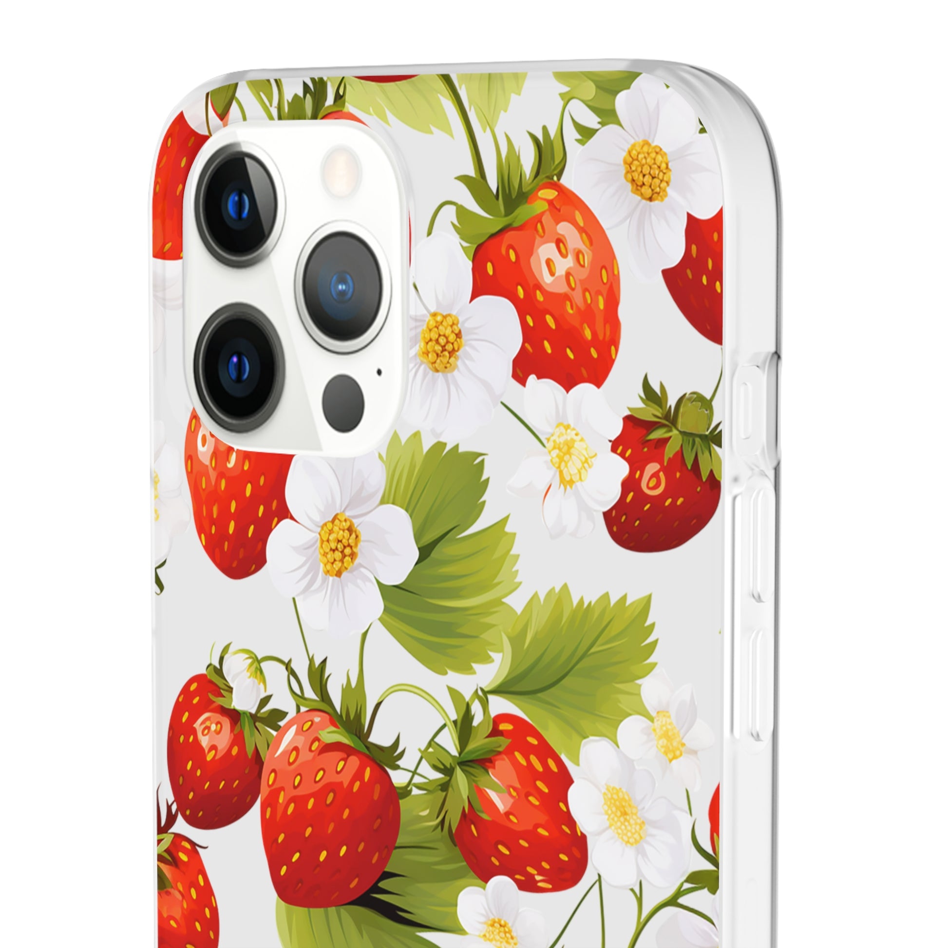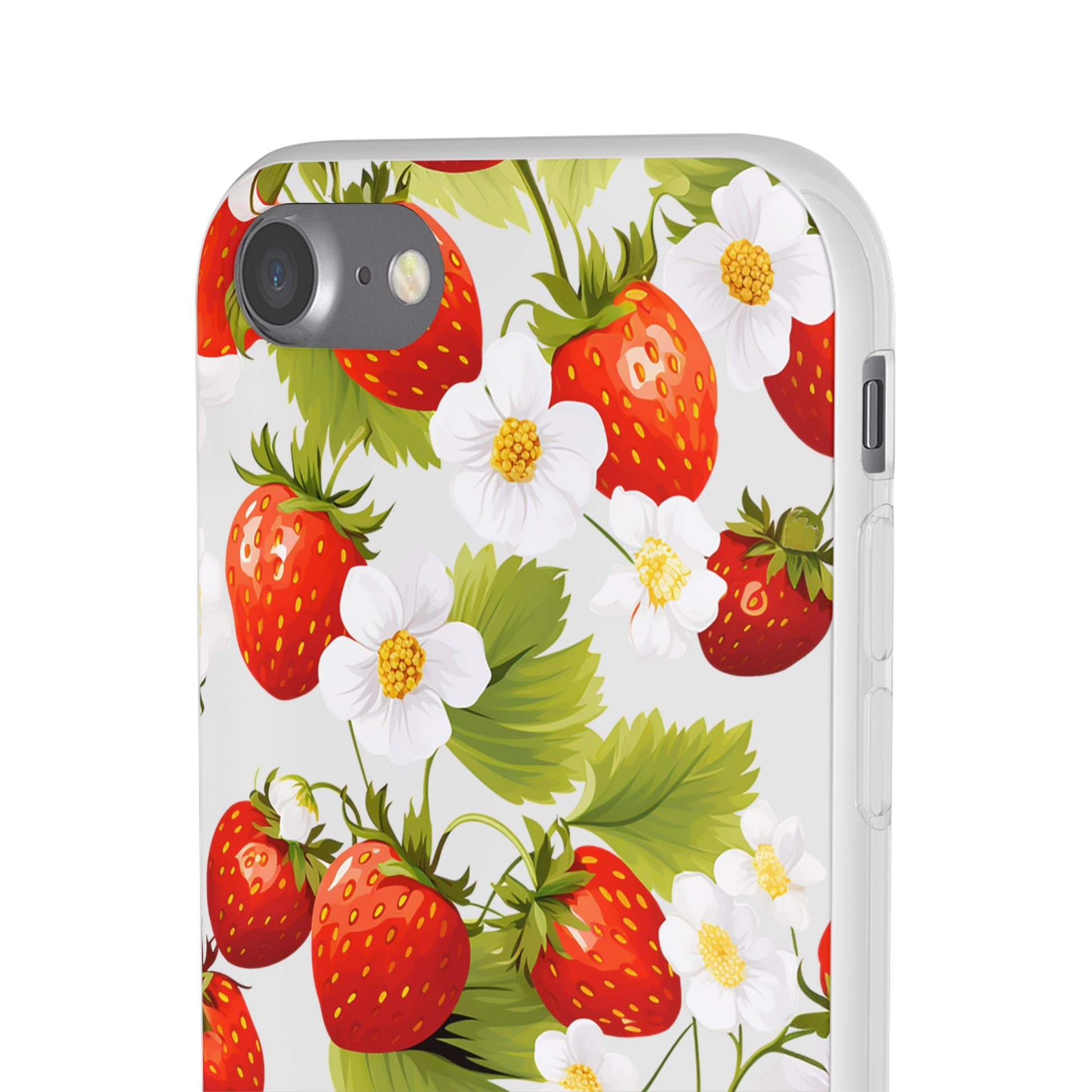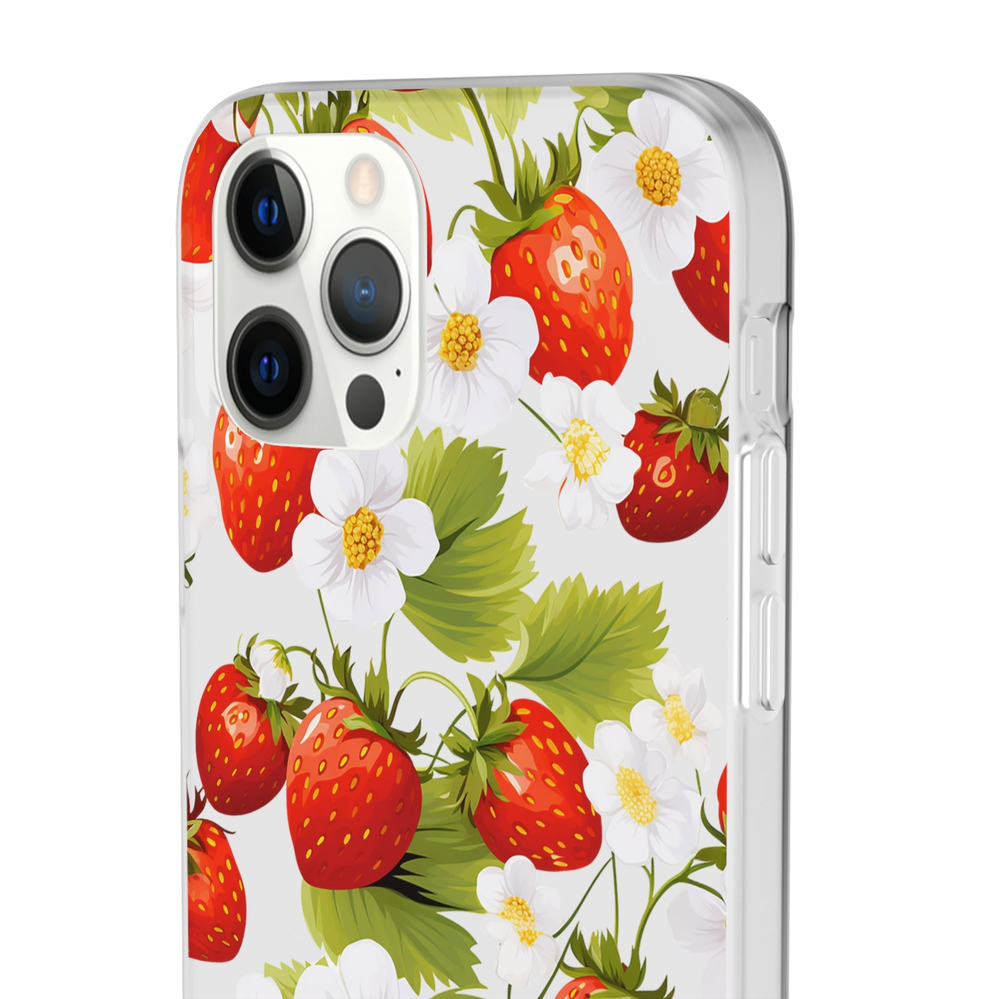 Elevate your phone's aesthetic with a delightful blend of strawberries intertwined with delicate flowers. This transparent case showcases nature's beauty, ensuring protection without compromising style.