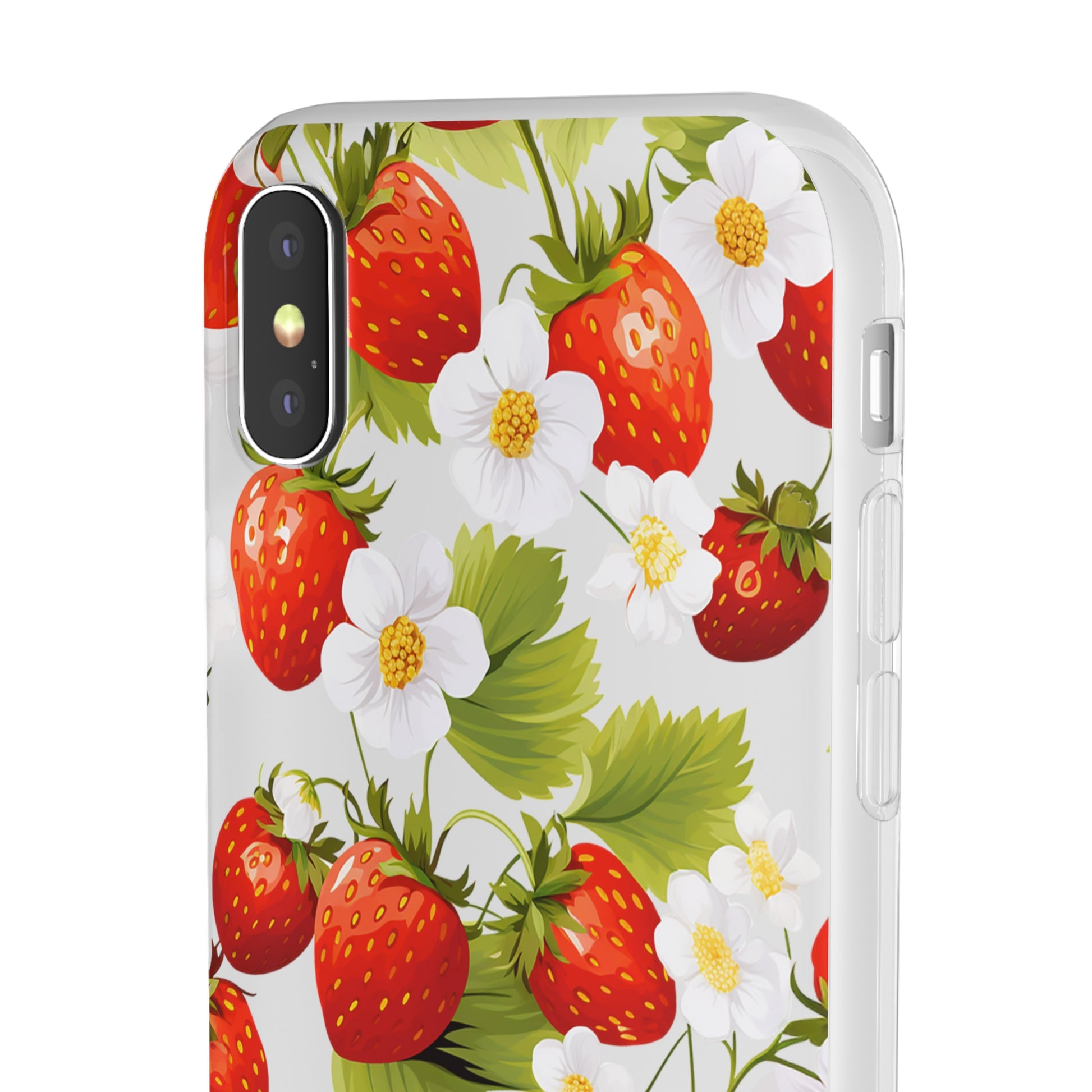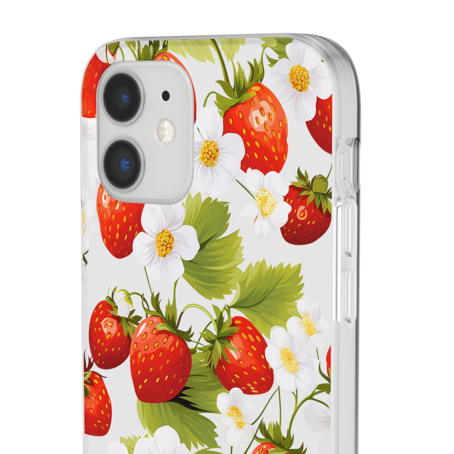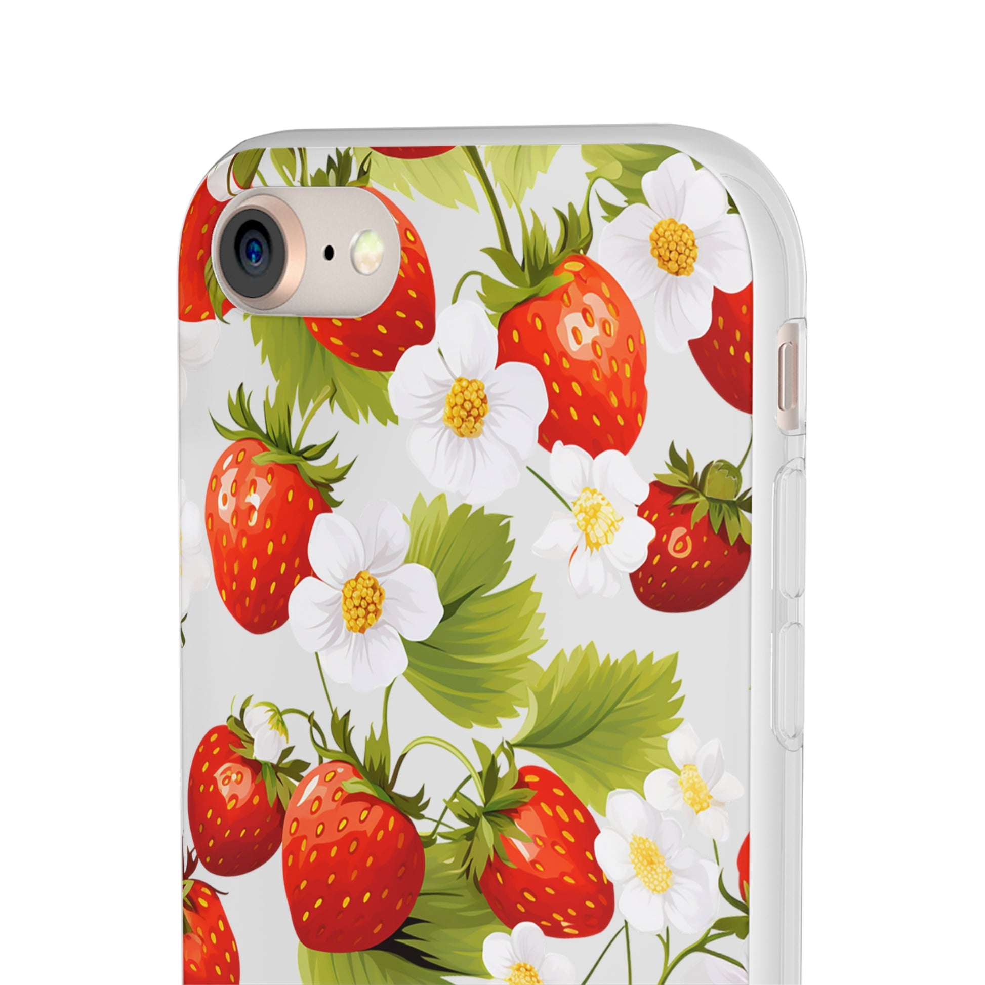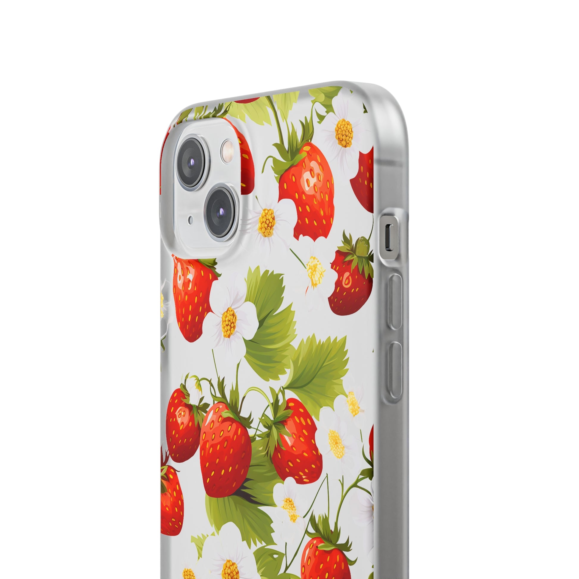 Elevate your phone's aesthetic with a delightful blend of strawberries intertwined with delicate flowers. This transparent case showcases nature's beauty, ensuring protection without compromising style.