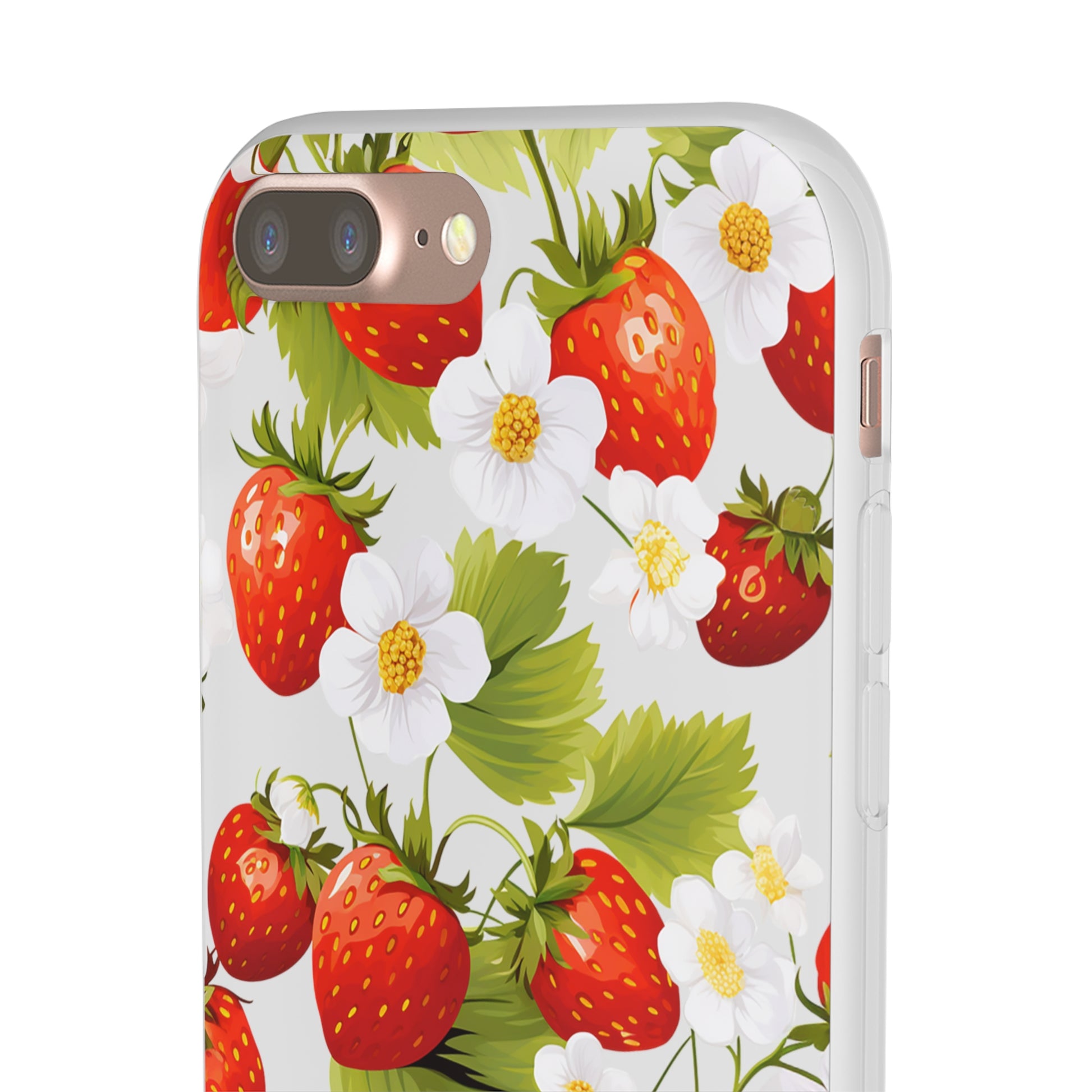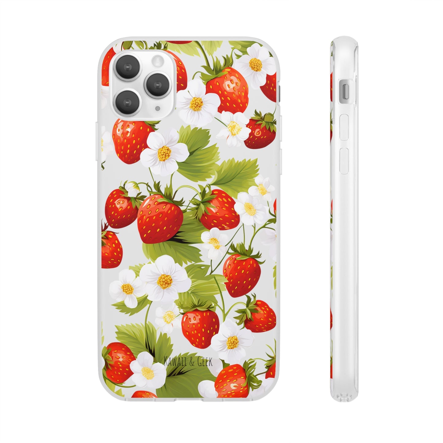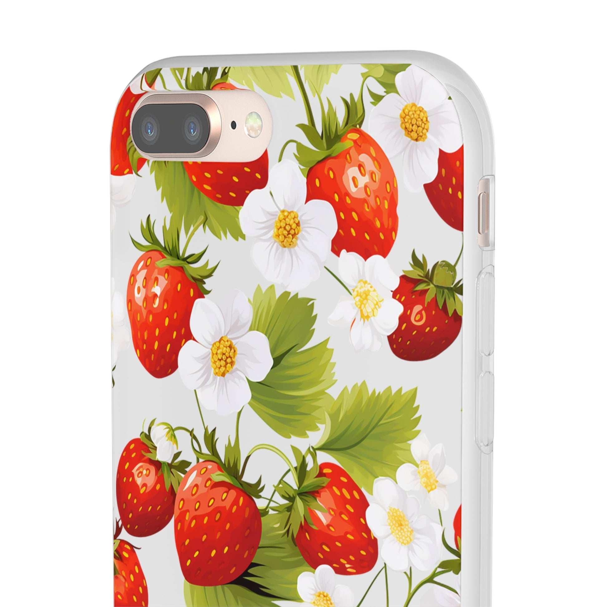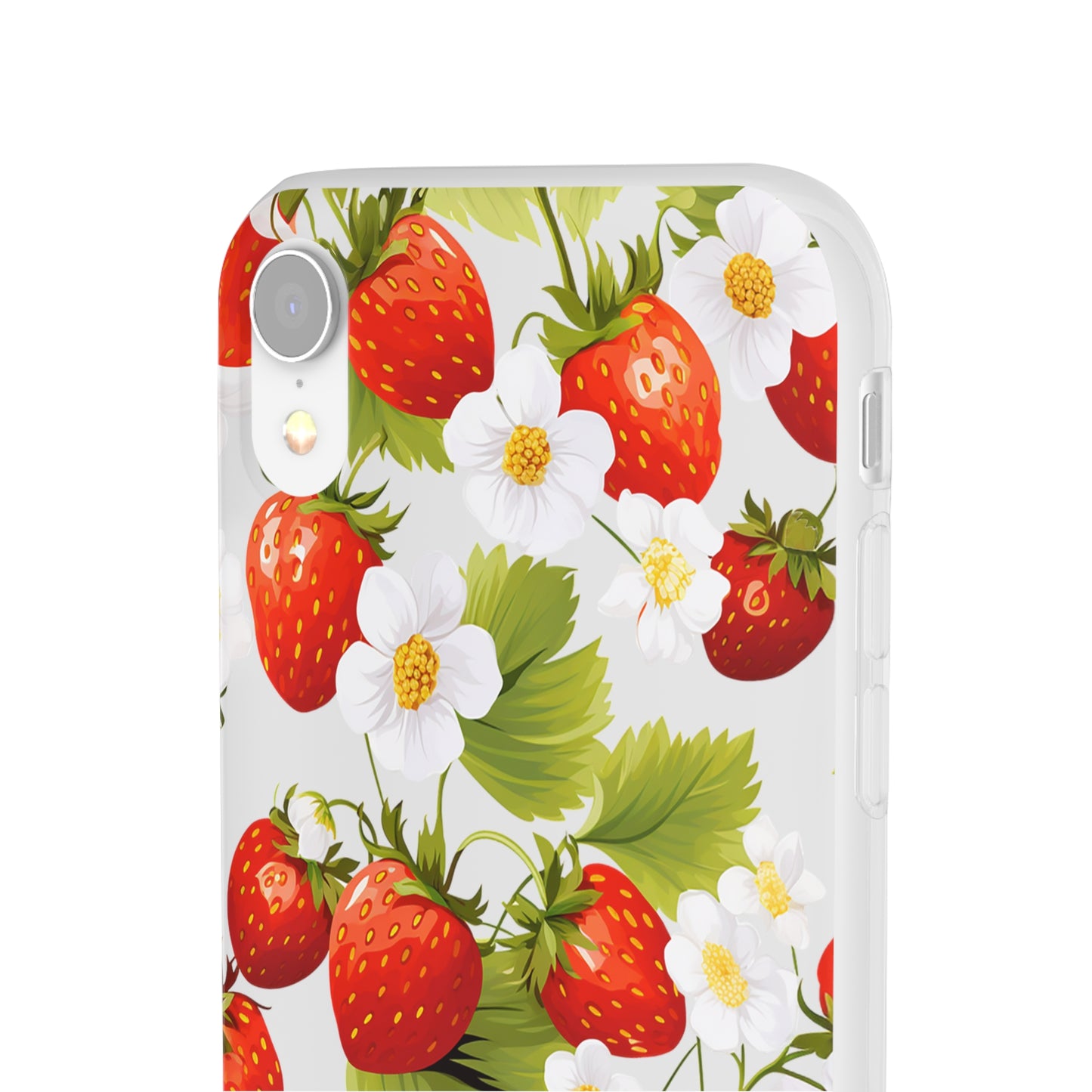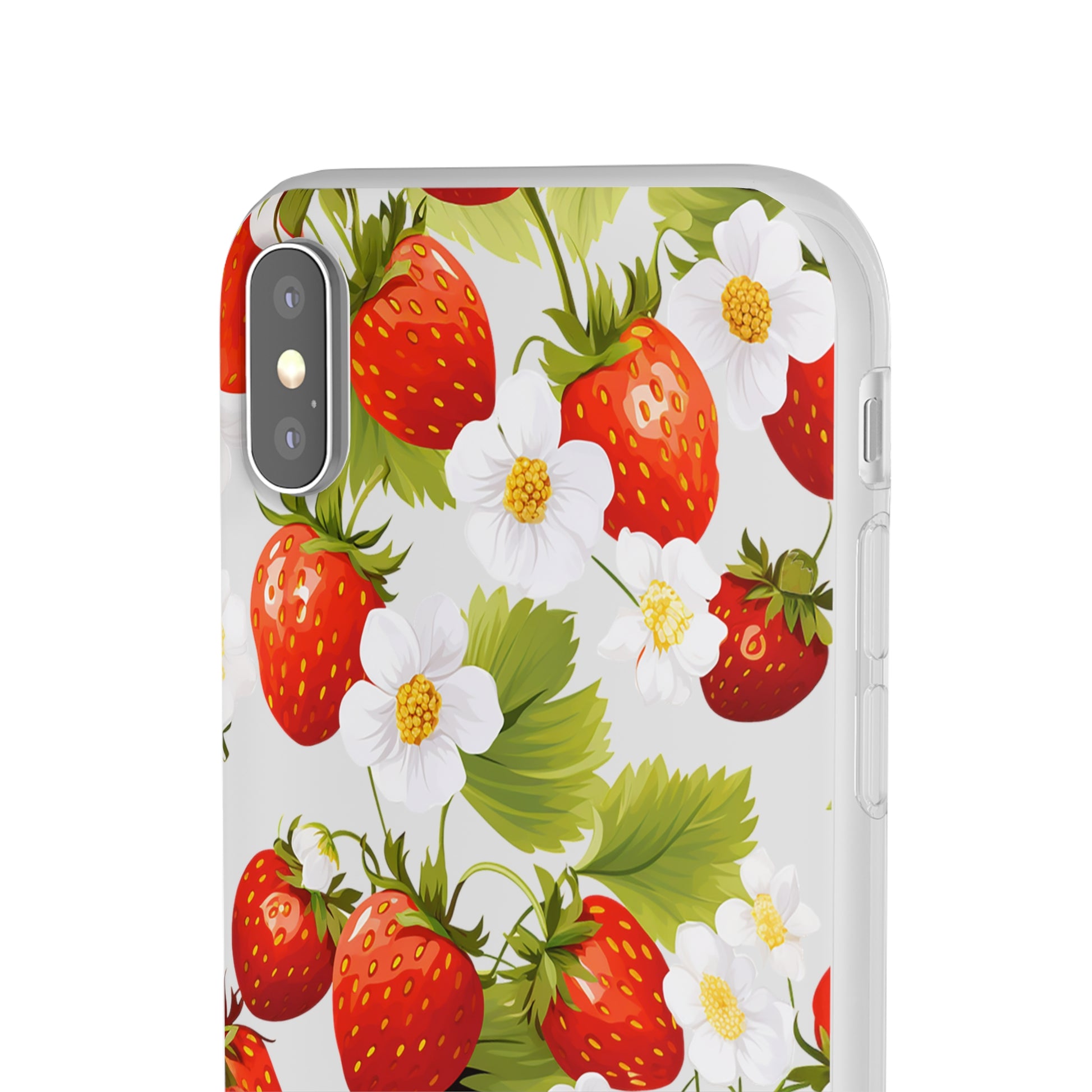 Elevate your phone's aesthetic with a delightful blend of strawberries intertwined with delicate flowers. This transparent case showcases nature's beauty, ensuring protection without compromising style.