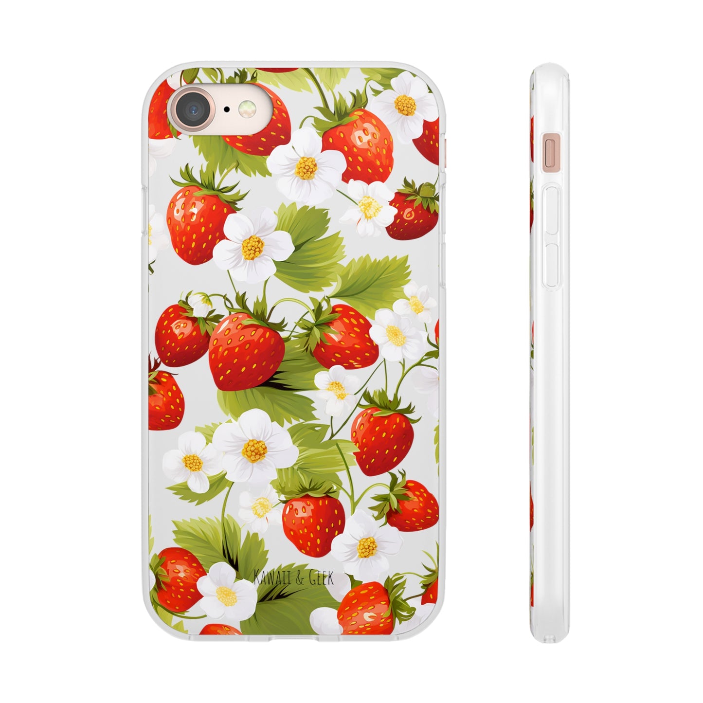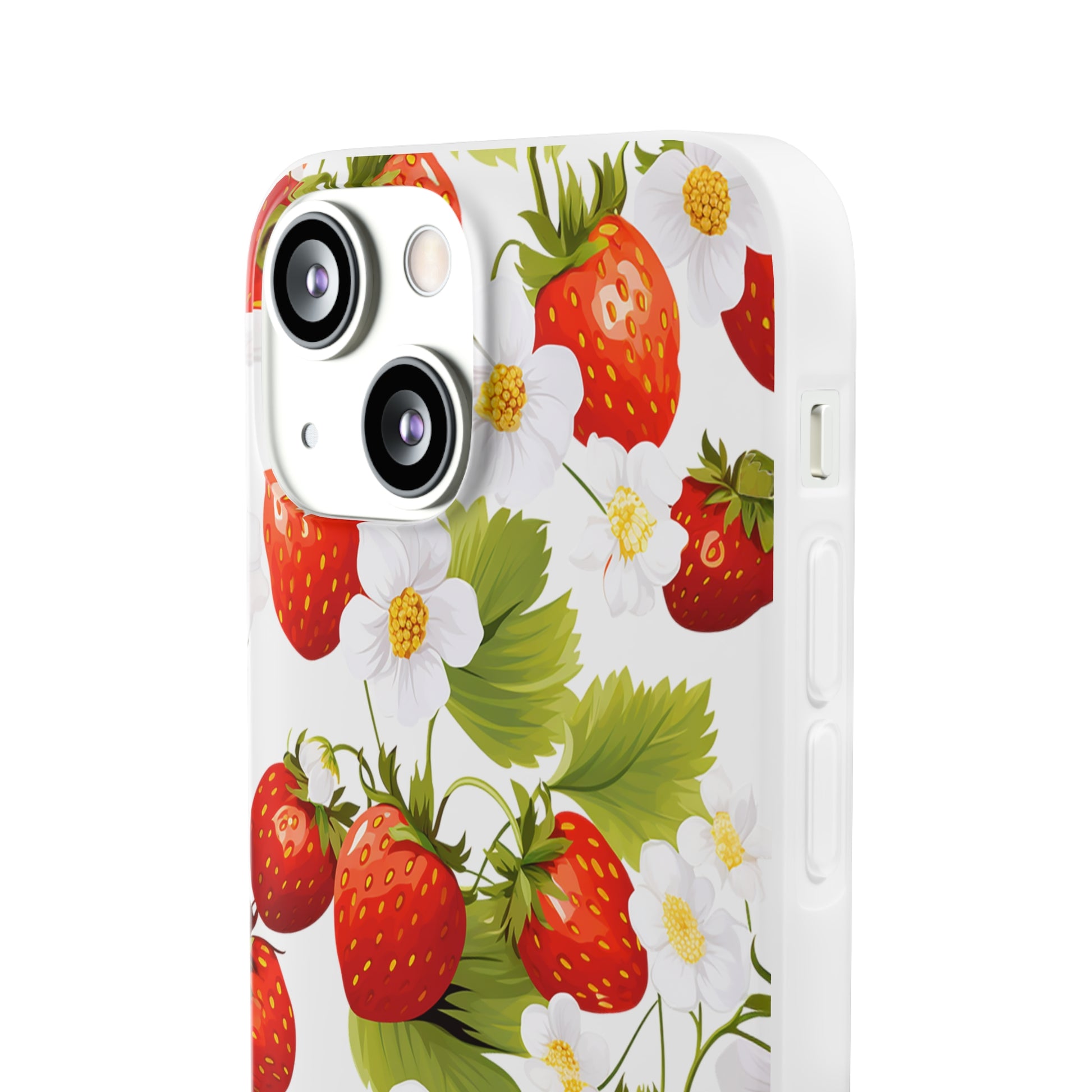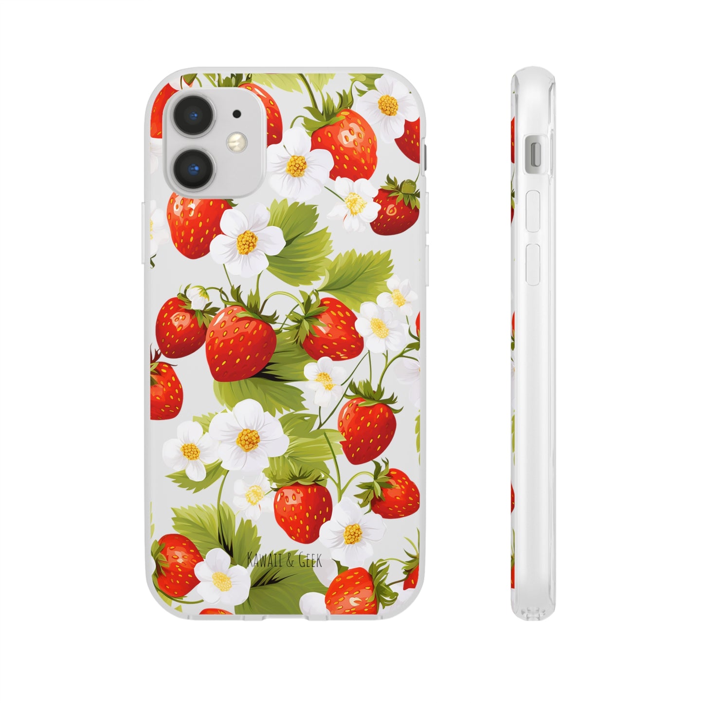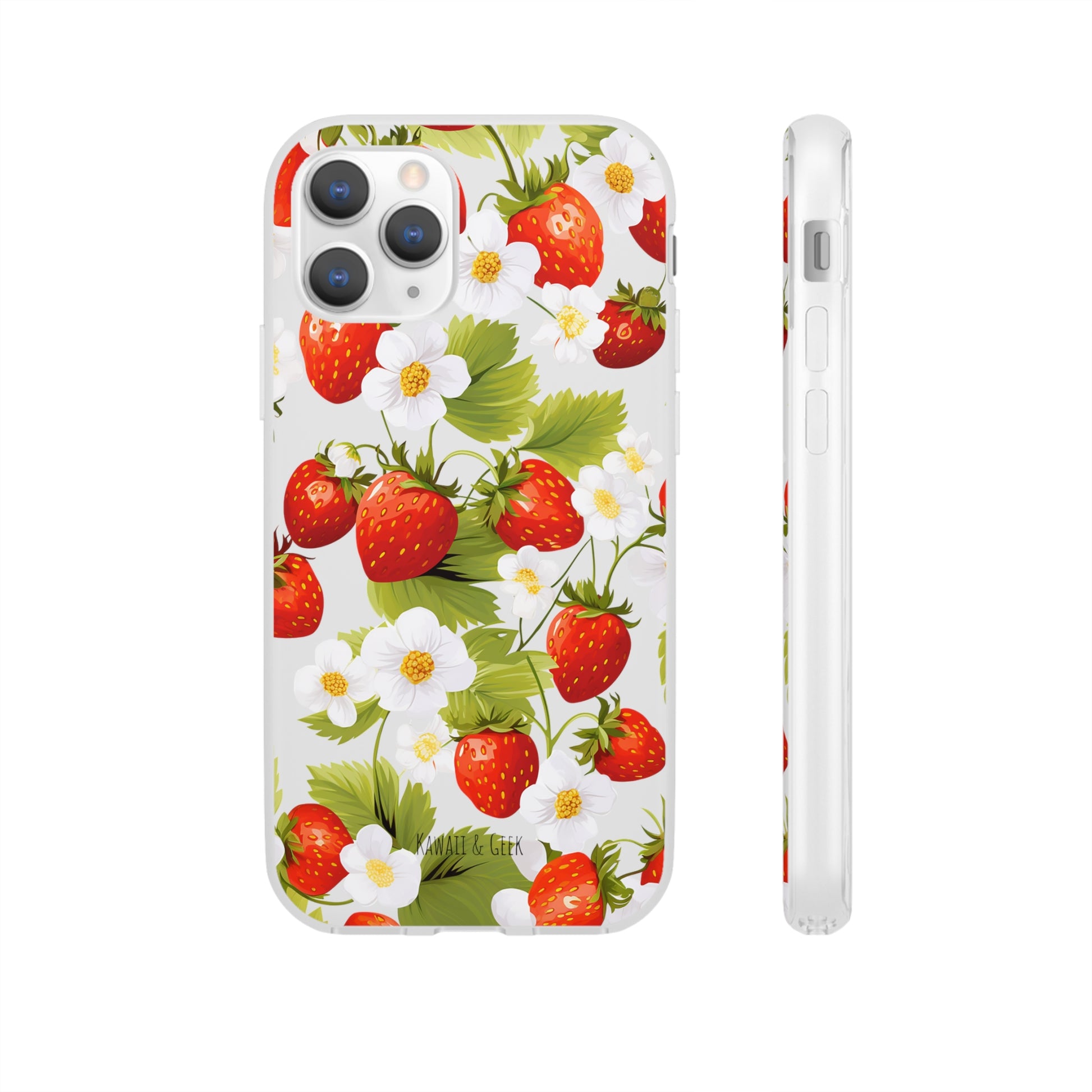 Elevate your phone's aesthetic with a delightful blend of strawberries intertwined with delicate flowers. This transparent case showcases nature's beauty, ensuring protection without compromising style.