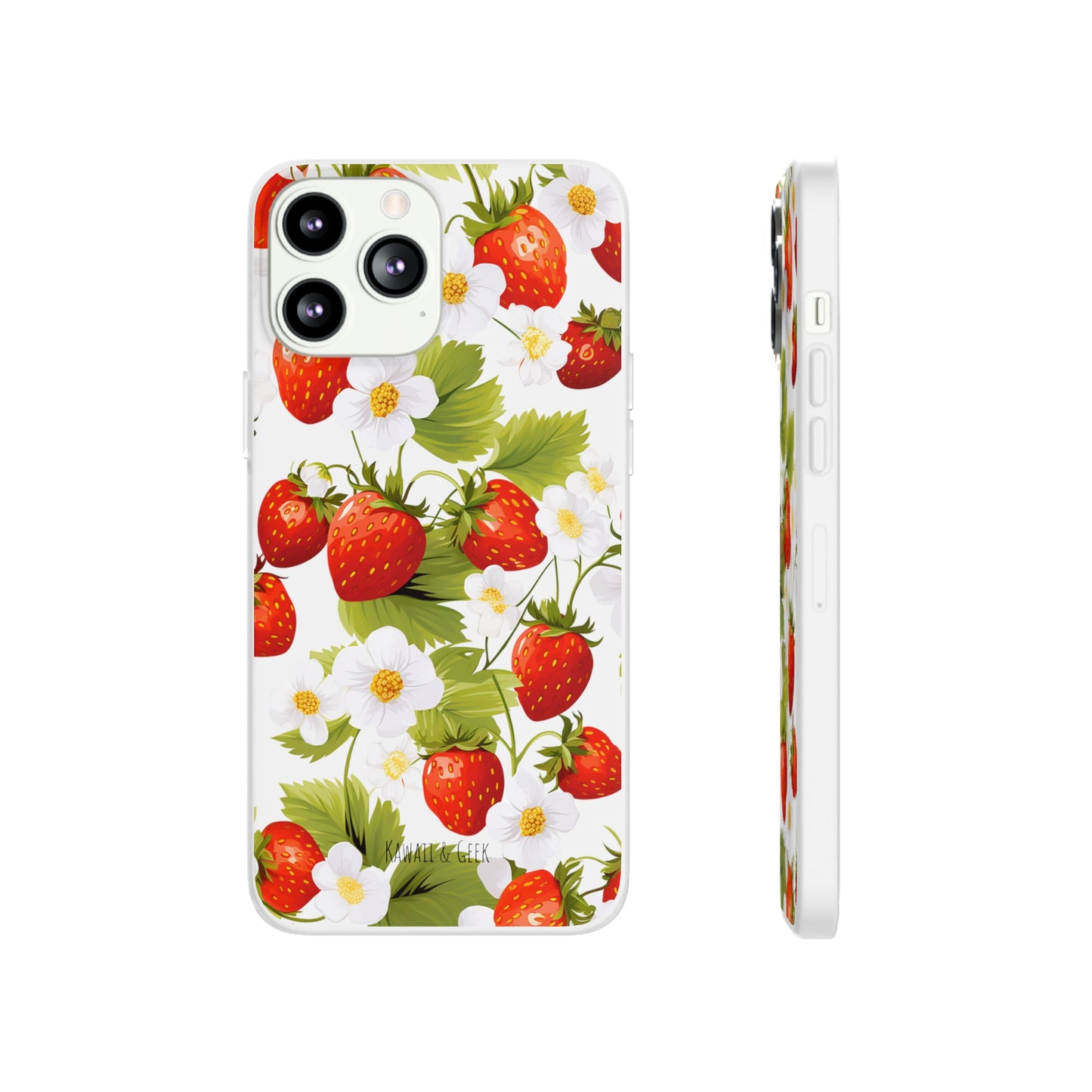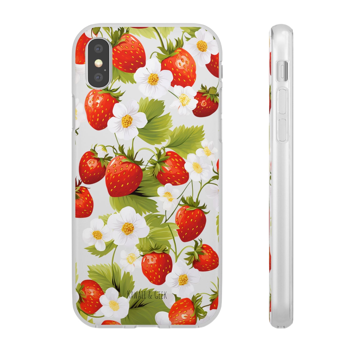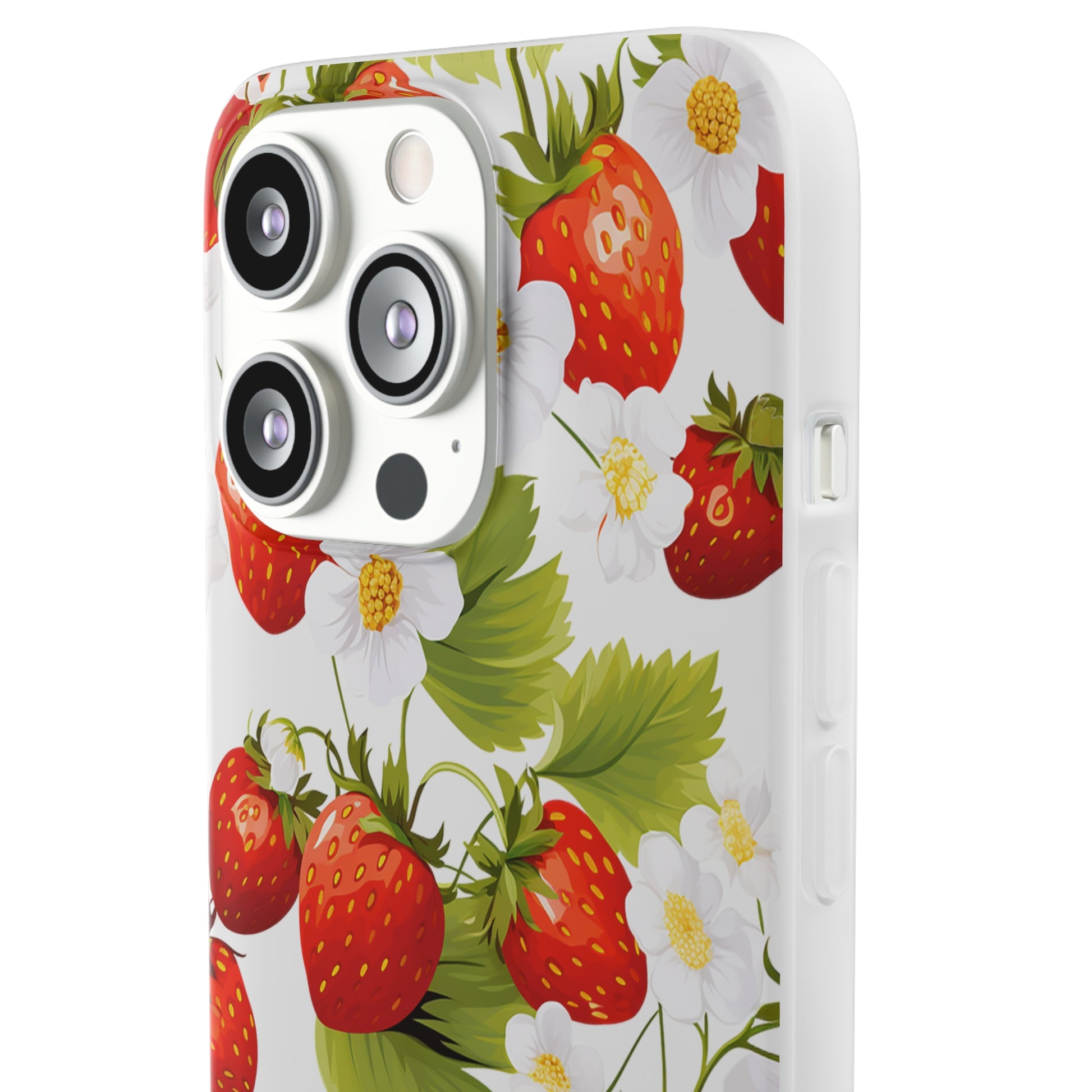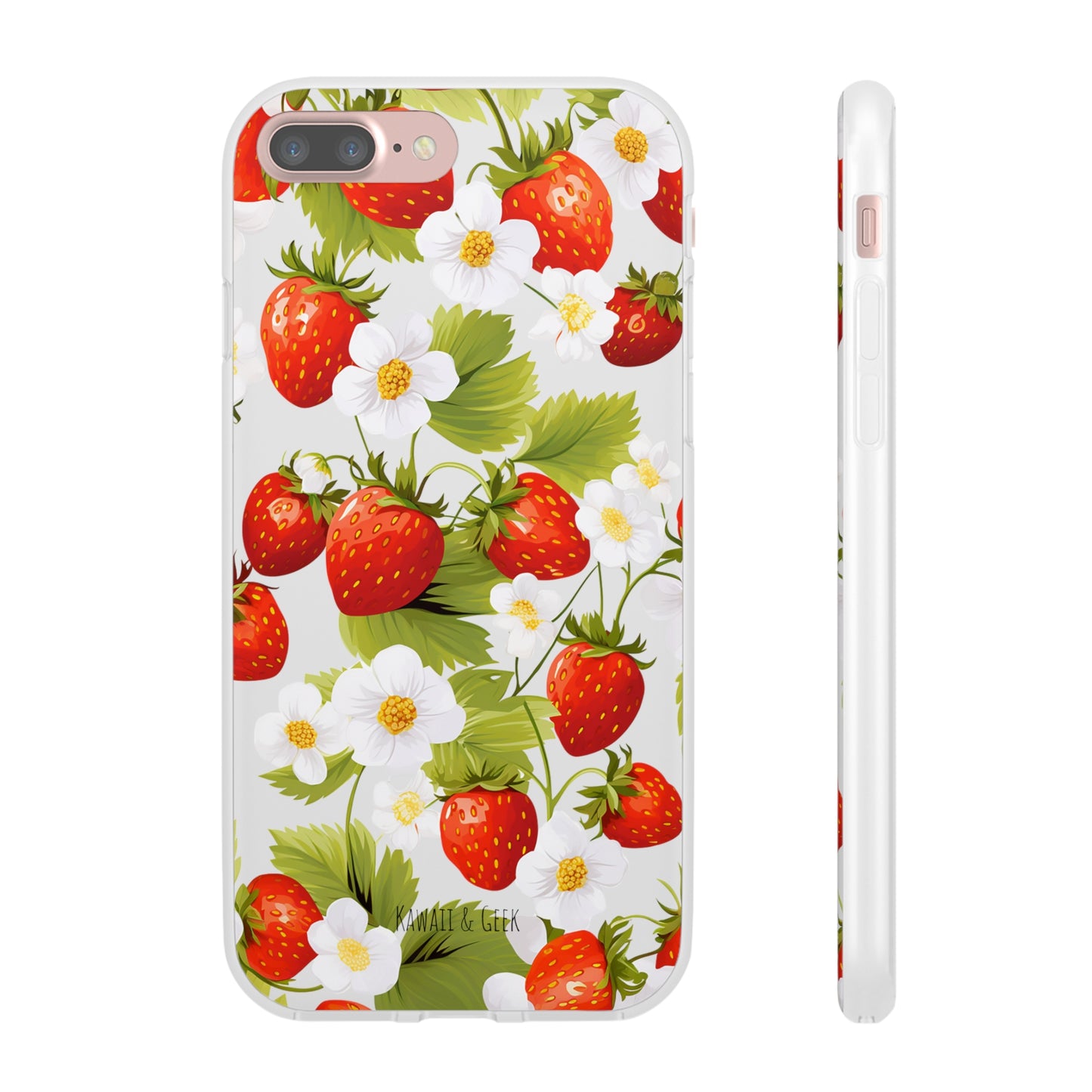 Elevate your phone's aesthetic with a delightful blend of strawberries intertwined with delicate flowers. This transparent case showcases nature's beauty, ensuring protection without compromising style.