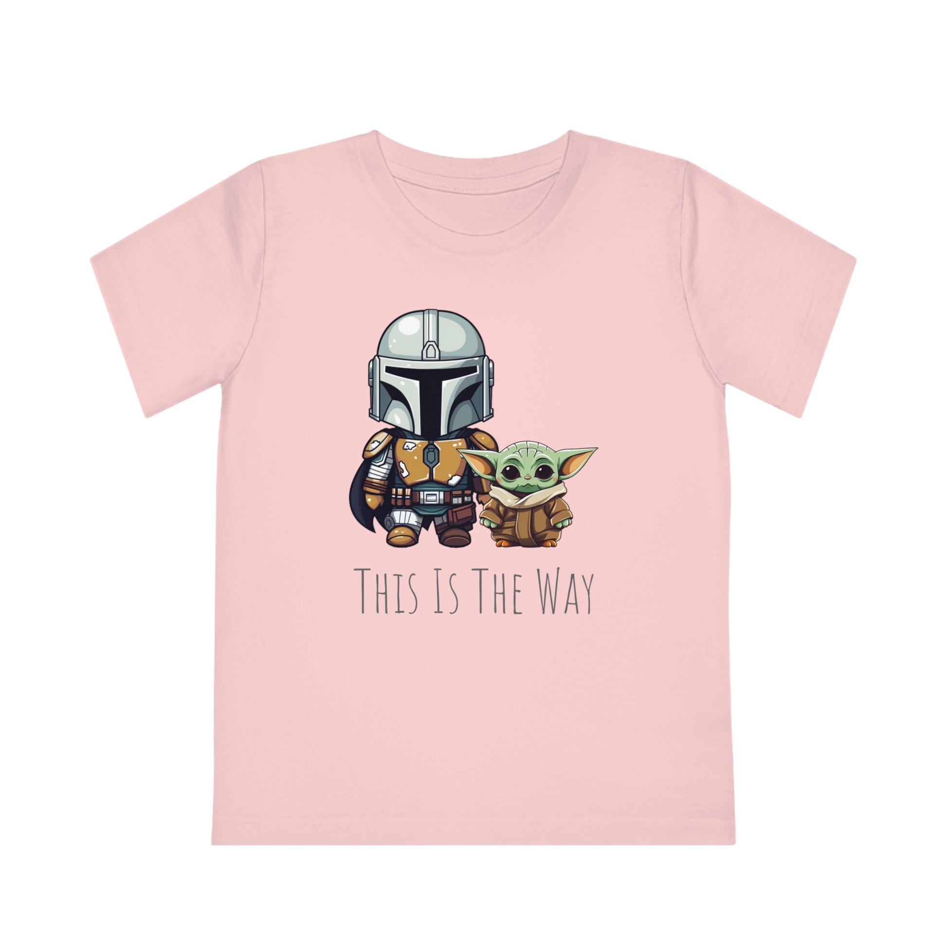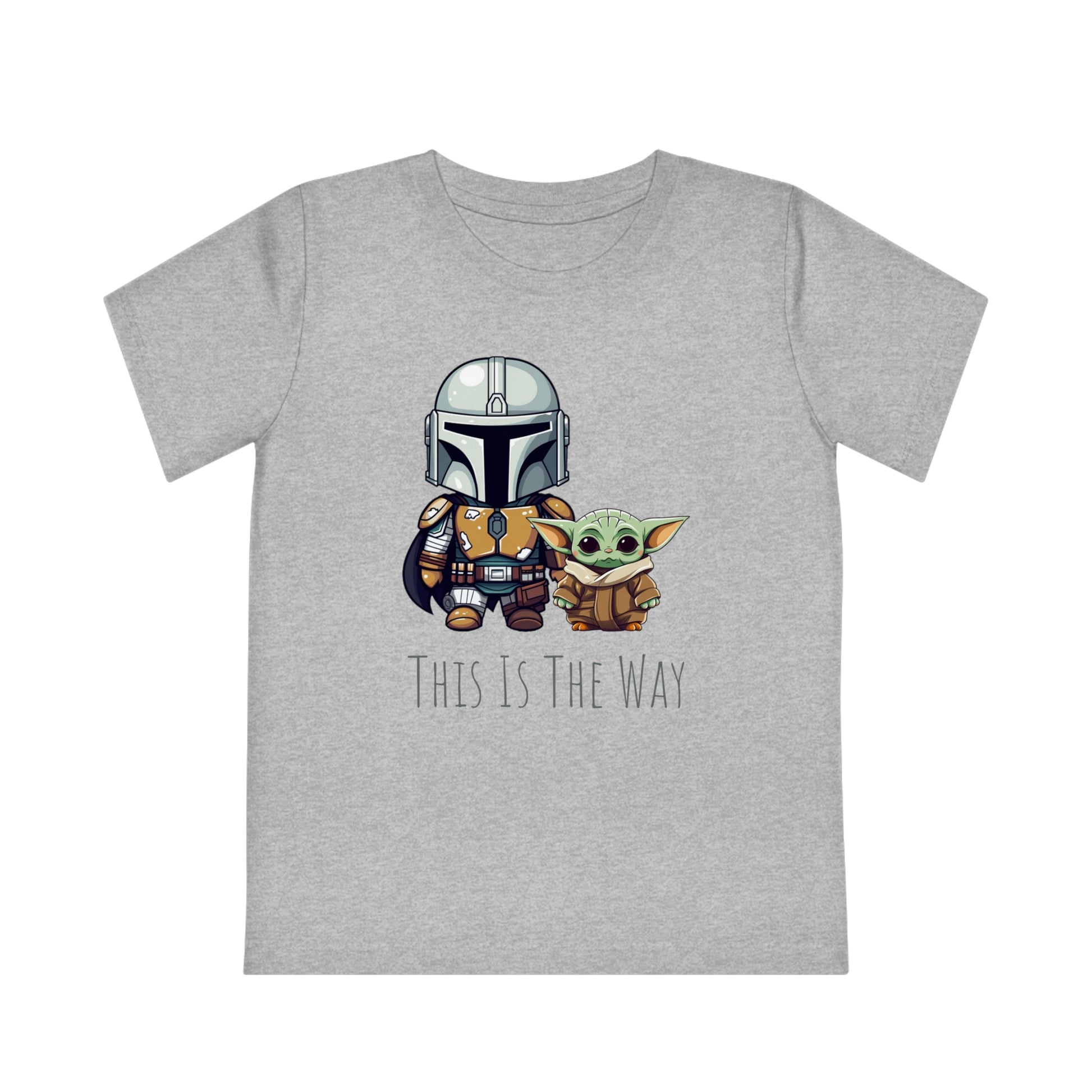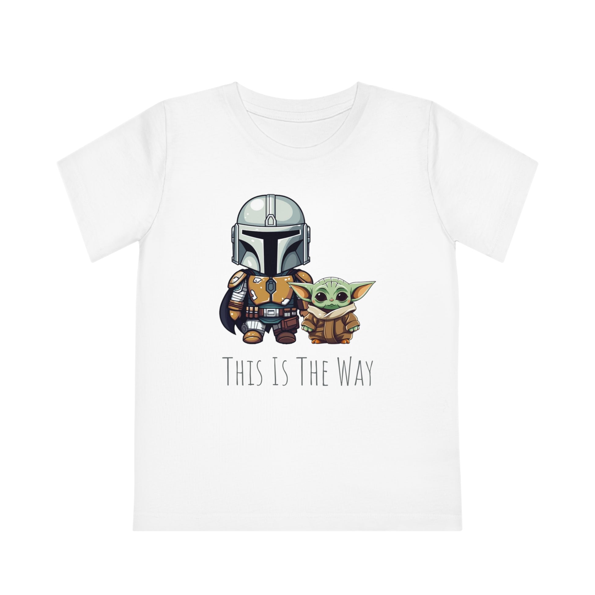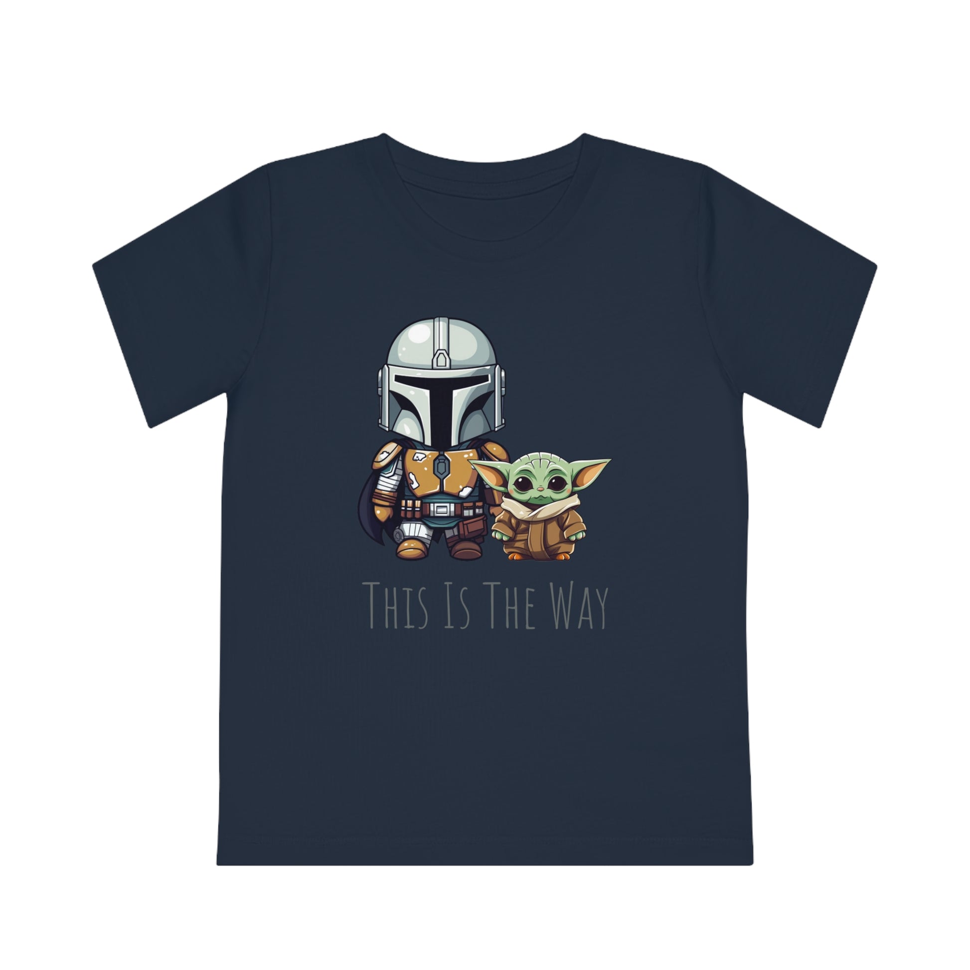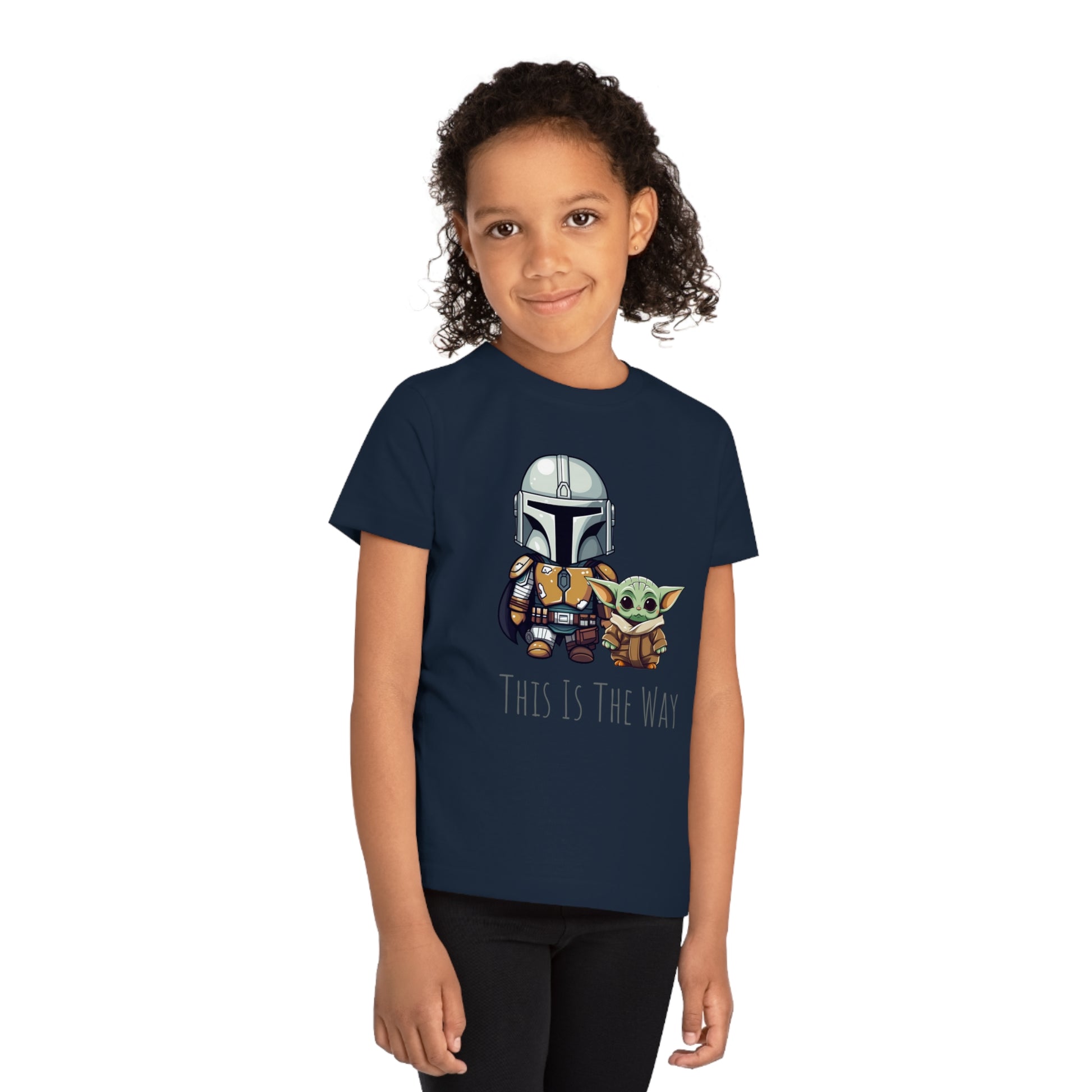 Keywords: Kids eco-friendly t-shirt, Baby Yoda and Mandalorian design, "This is the Way" phrase, sustainable materials, Star Wars fans, galactic adventures, high-quality print, eco-conscious fashion.
