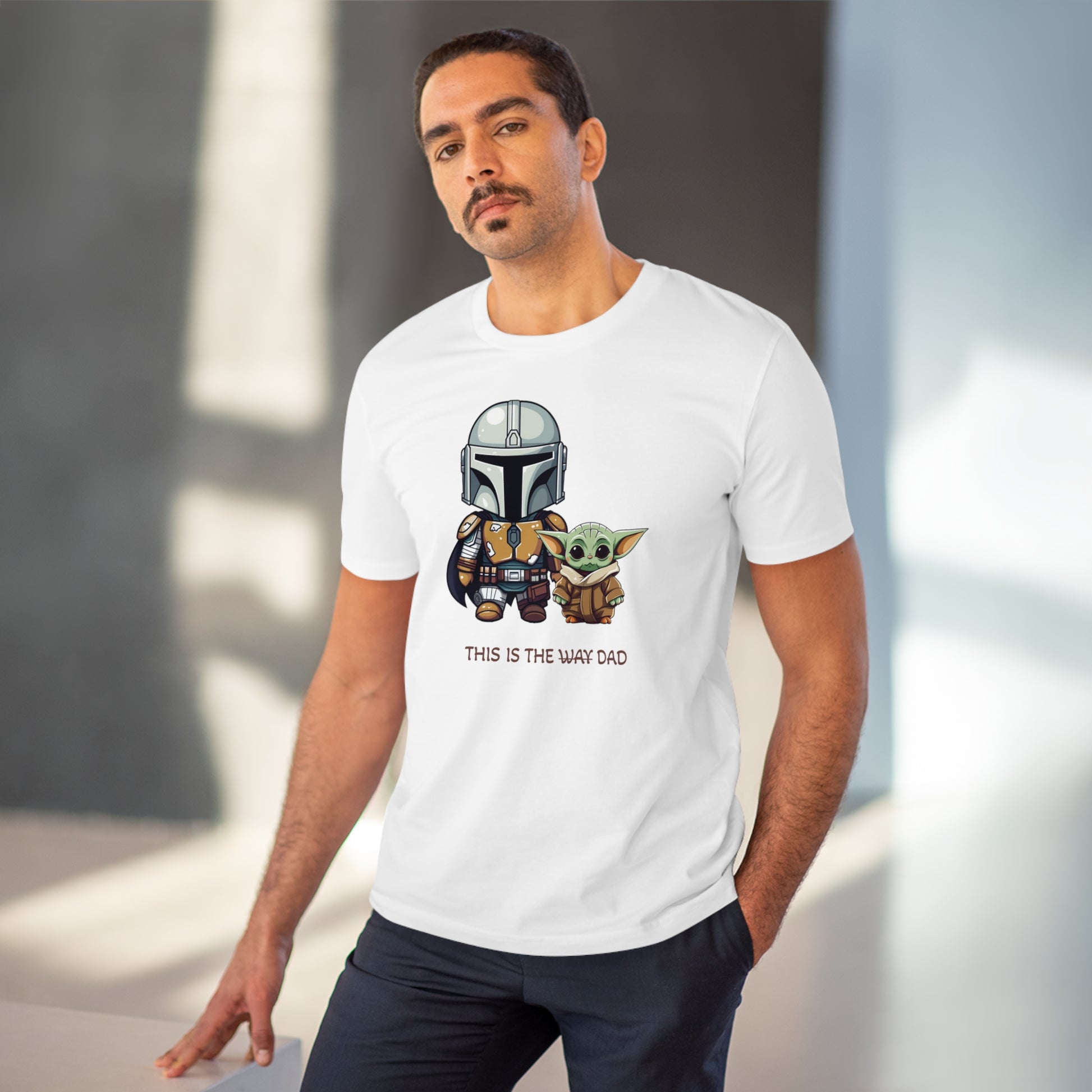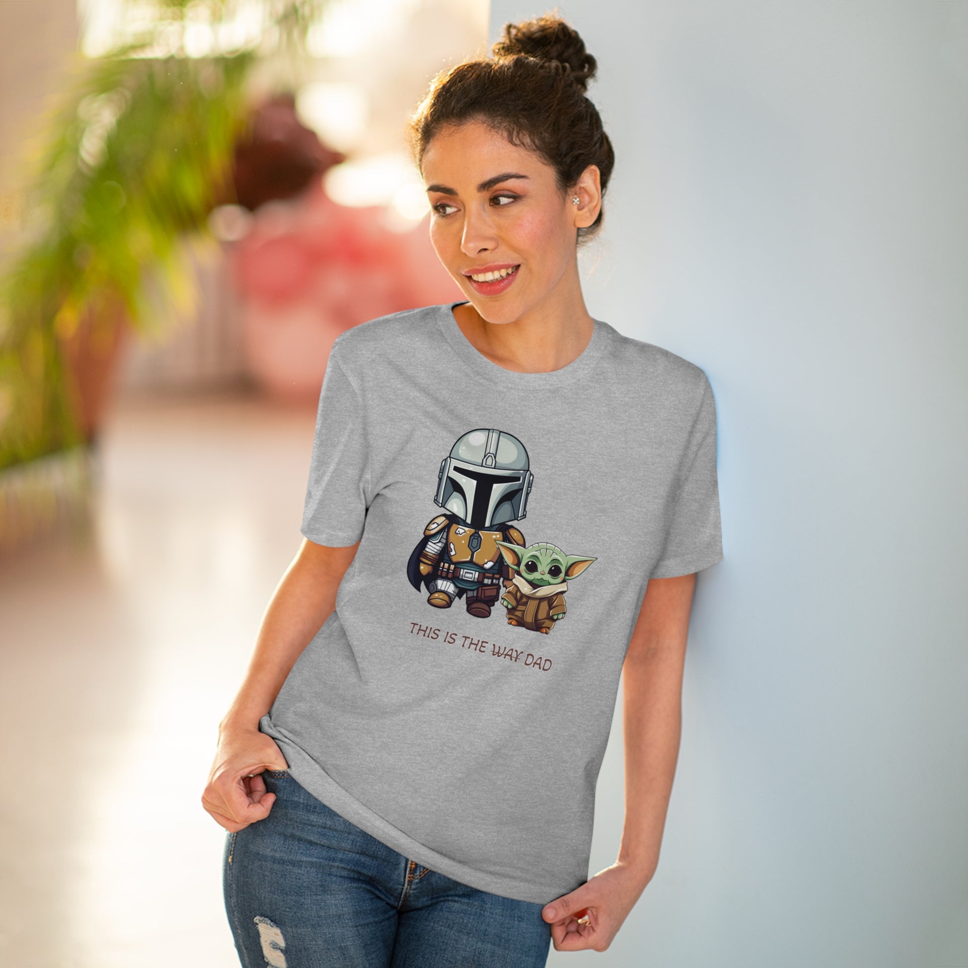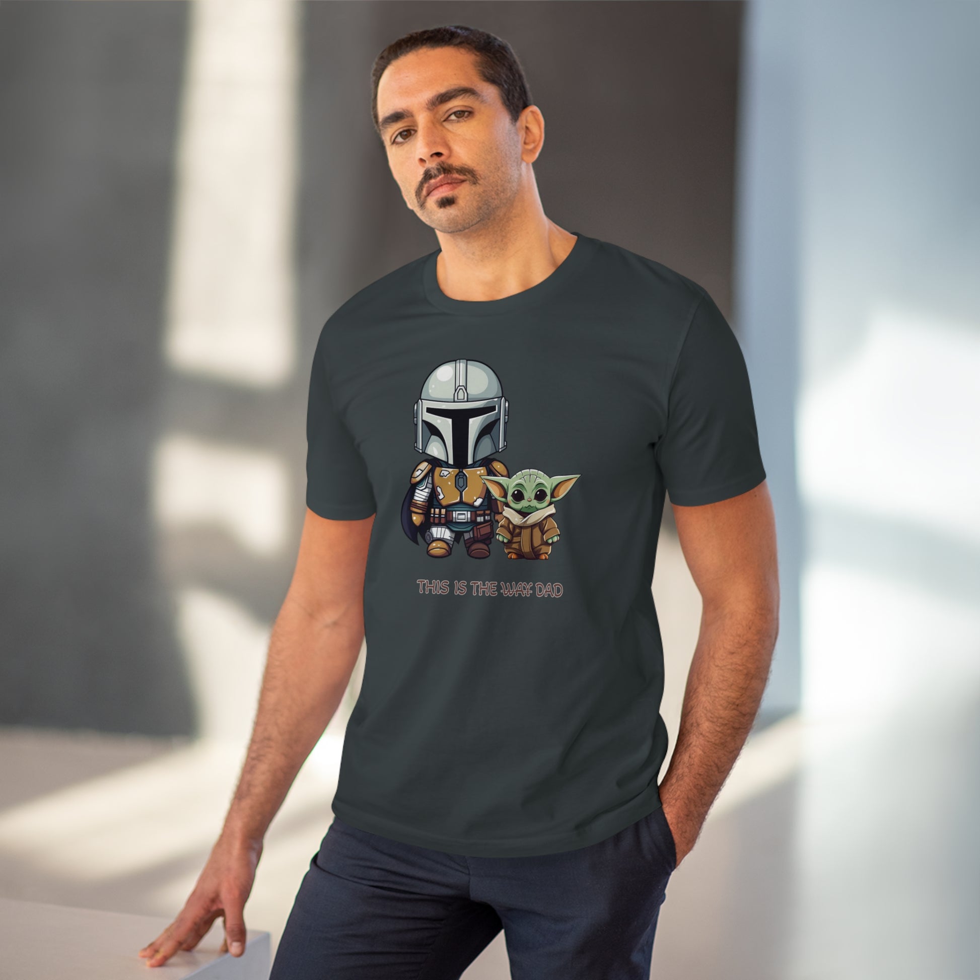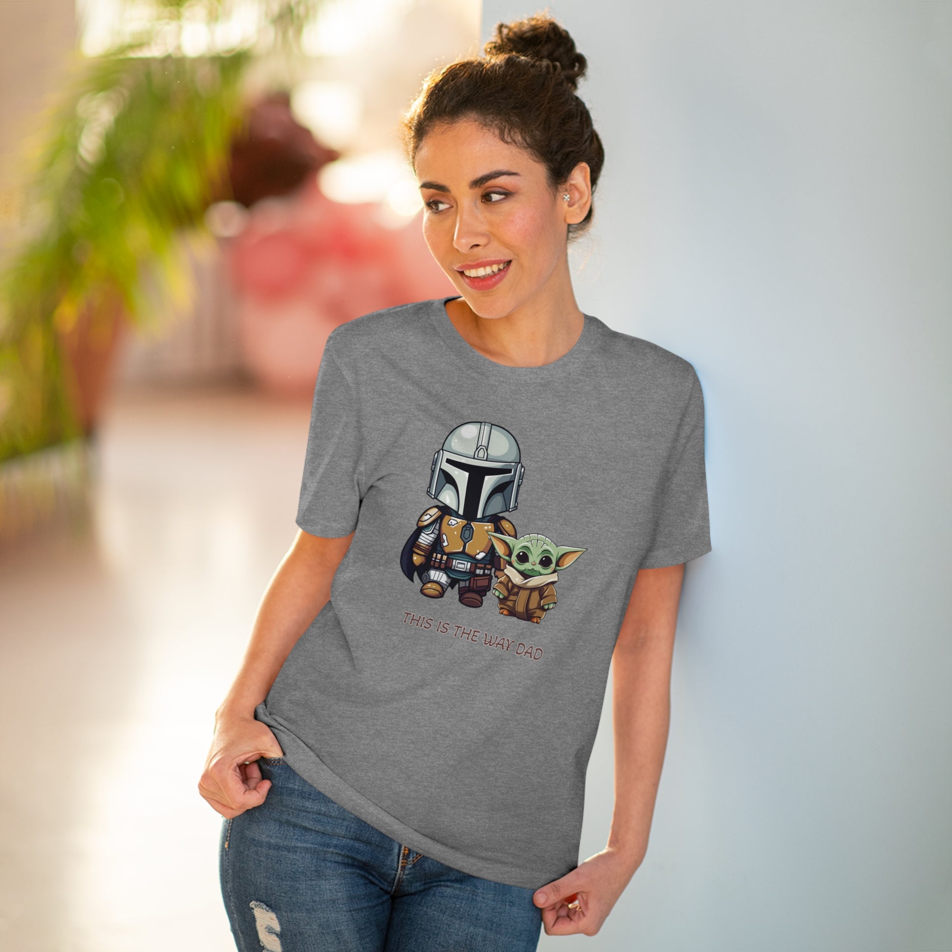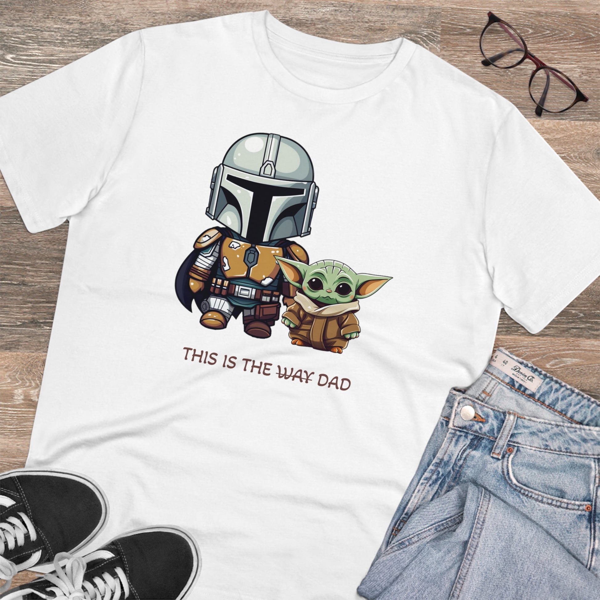 Honor the special bond between fathers and their children with this adorable Mandalorian and Baby Yoda (Grogu) unisex eco-friendly t-shirt. Crafted from sustainable materials, this t-shirt not only showcases your love for this iconic duo but also reflects your commitment to the environment. The heartwarming design features the Mandalorian and Baby Yoda in a cute and playful style, with the phrase "This is the Way Dad" (the word Way is barred) adding a touch of charm and humour. Celebrate Father's Day with this stylish and eco-conscious t-shirt, the perfect gift to show appreciation for all the amazing dads out there.