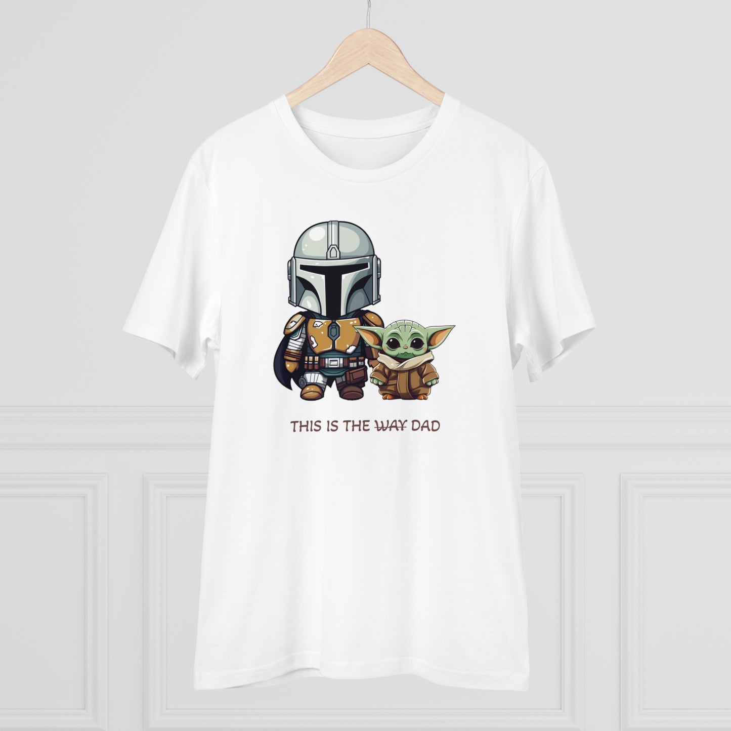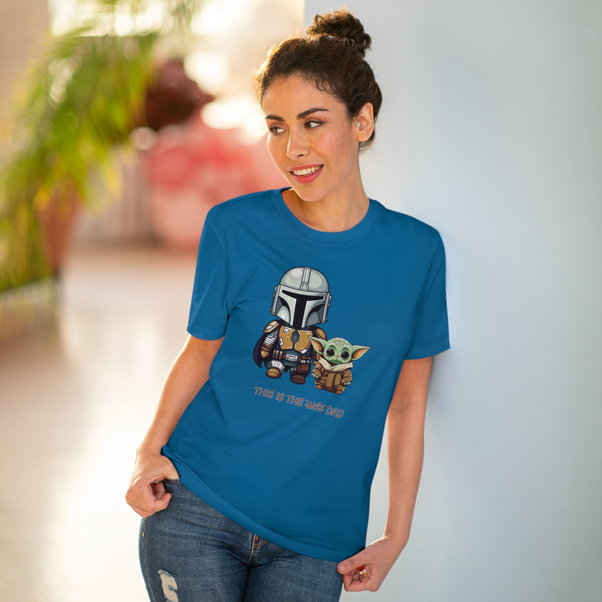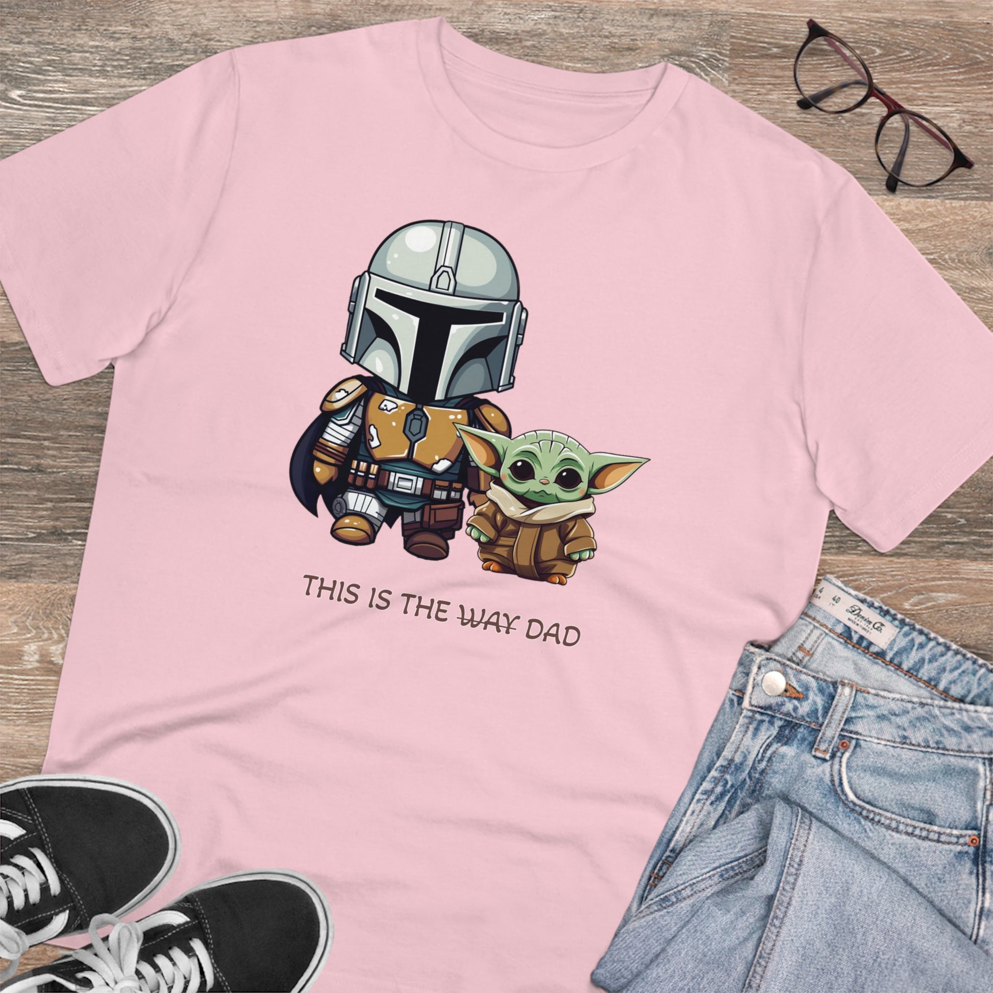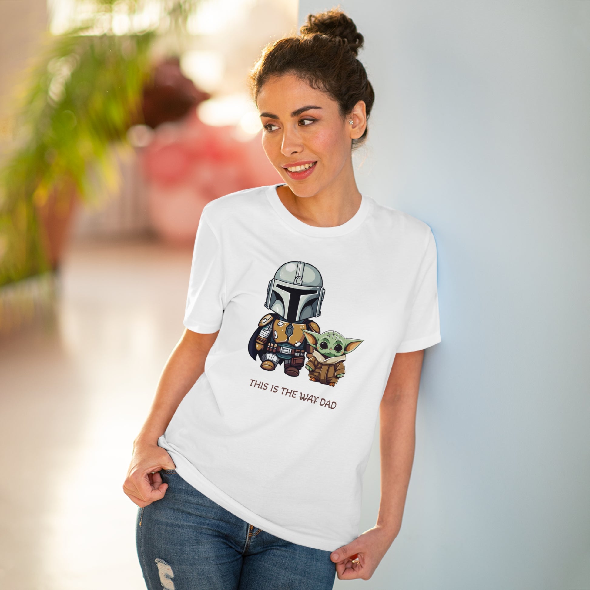 Honor the special bond between fathers and their children with this adorable Mandalorian and Baby Yoda (Grogu) unisex eco-friendly t-shirt. Crafted from sustainable materials, this t-shirt not only showcases your love for this iconic duo but also reflects your commitment to the environment. The heartwarming design features the Mandalorian and Baby Yoda in a cute and playful style, with the phrase "This is the Way Dad" (the word Way is barred) adding a touch of charm and humour. Celebrate Father's Day with this stylish and eco-conscious t-shirt, the perfect gift to show appreciation for all the amazing dads out there.