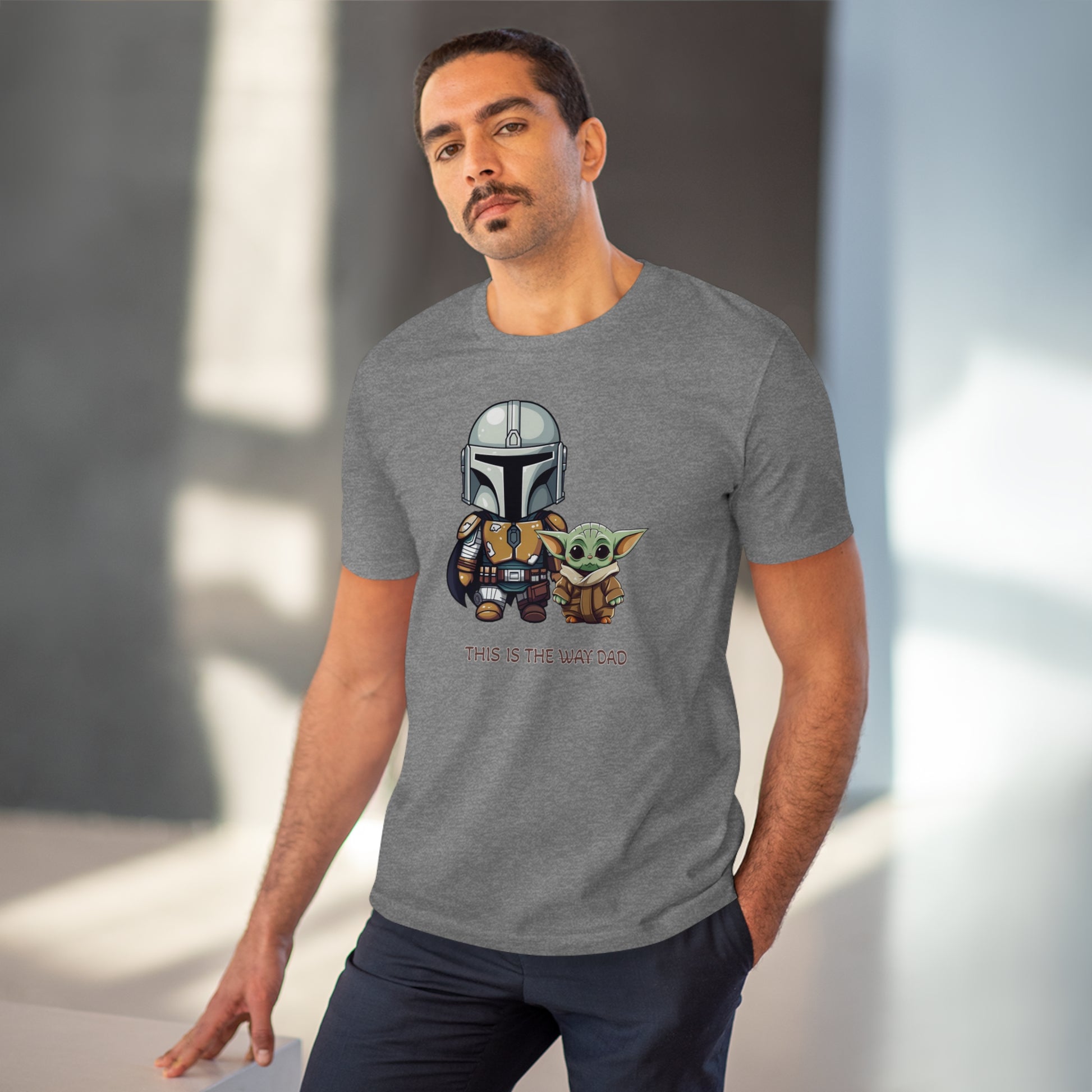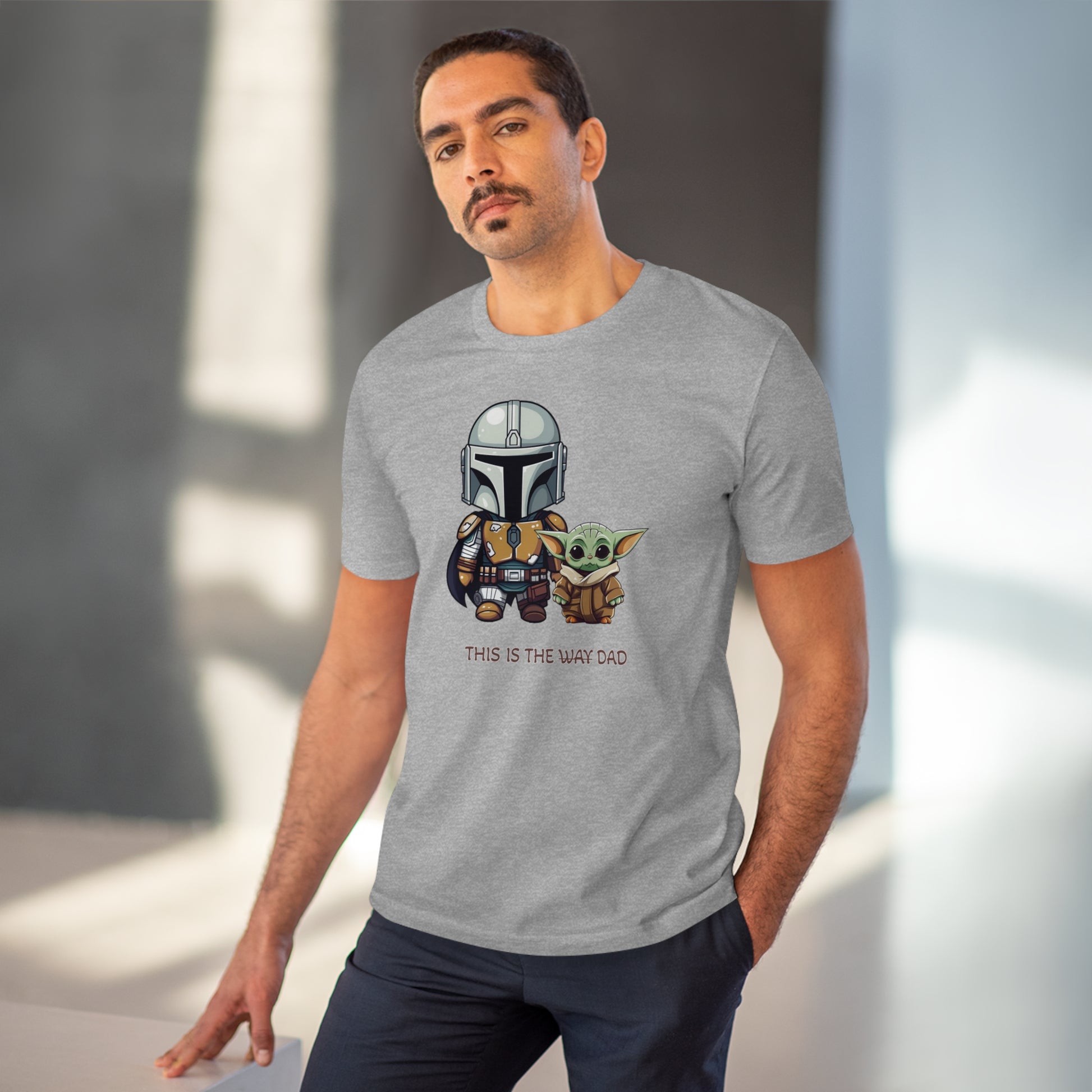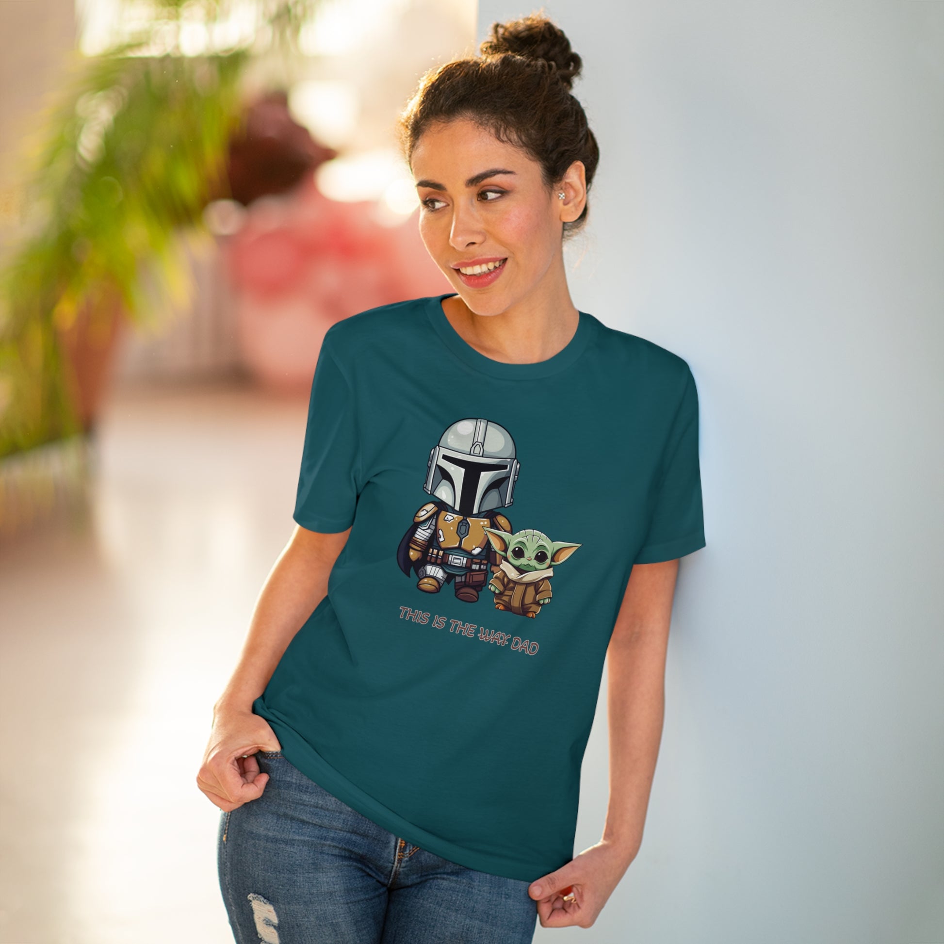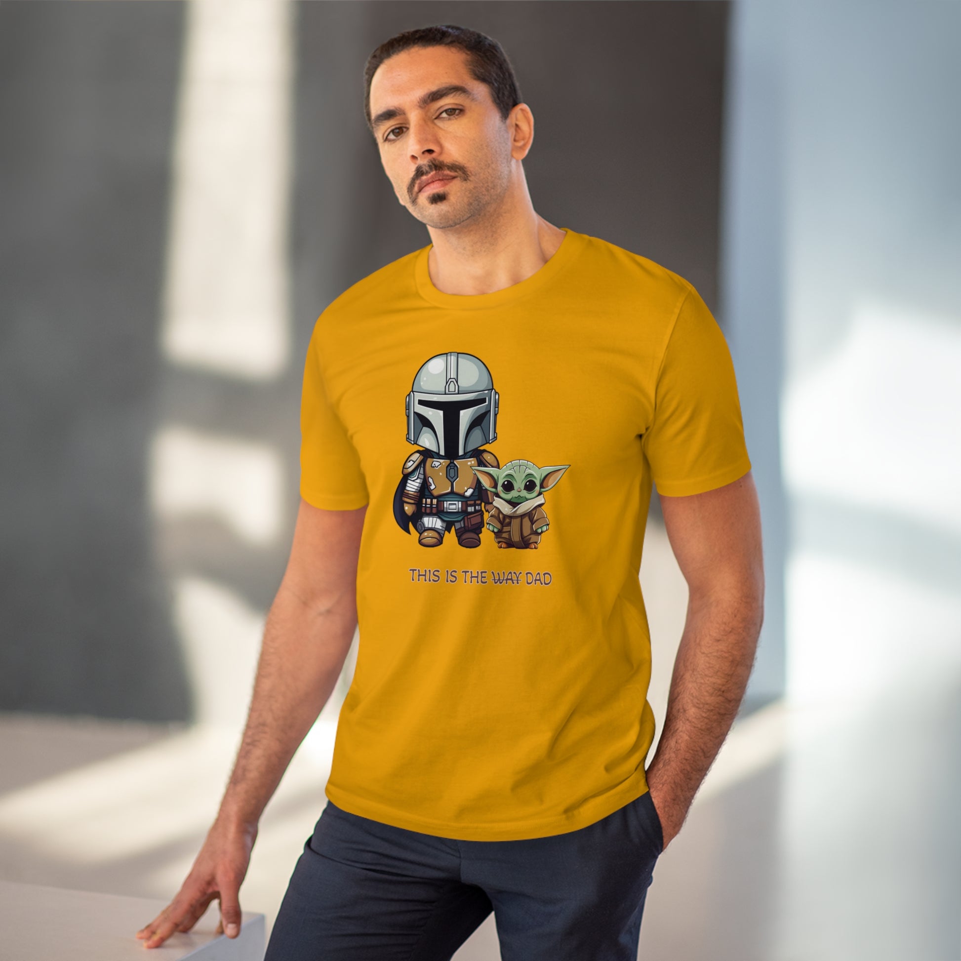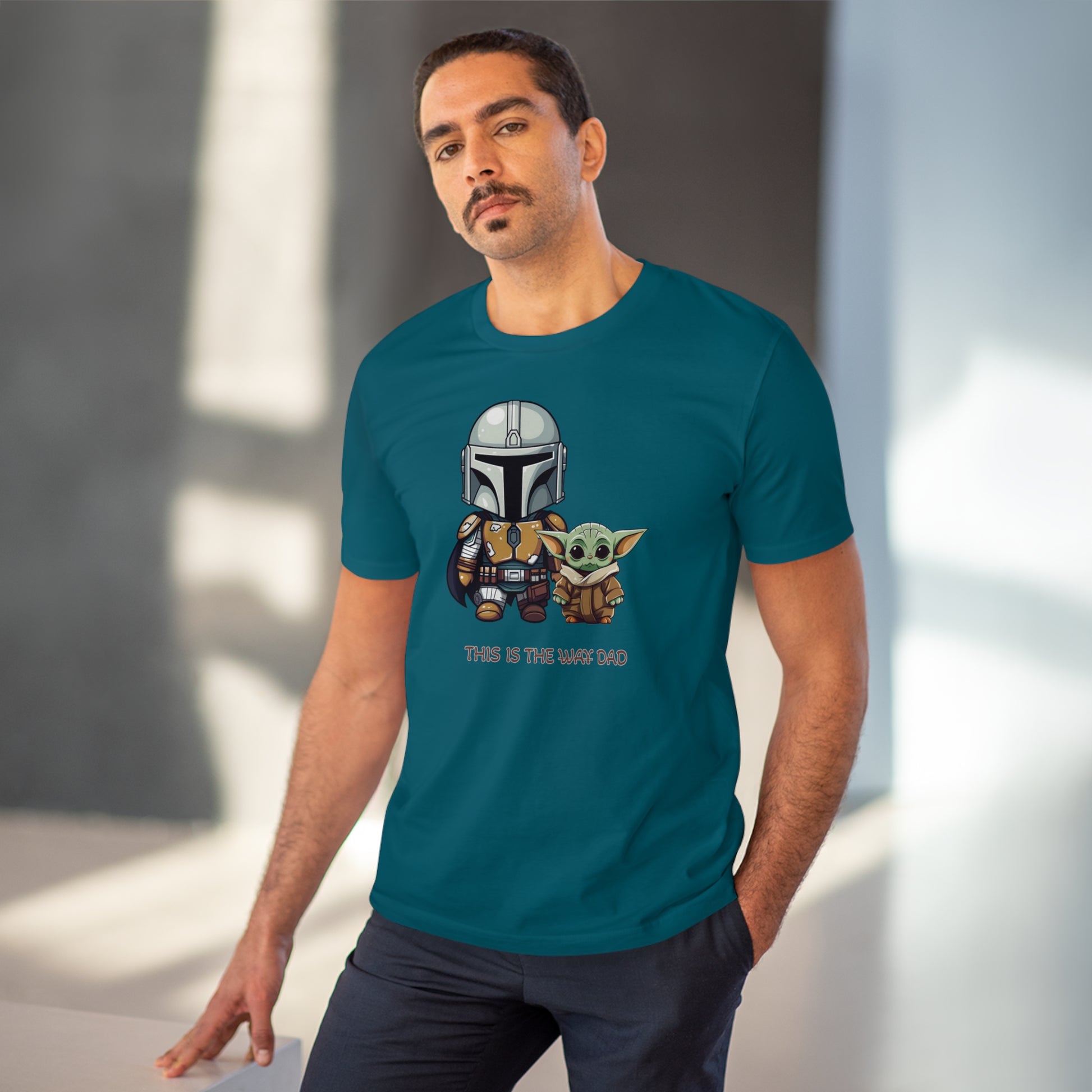 Honor the special bond between fathers and their children with this adorable Mandalorian and Baby Yoda (Grogu) unisex eco-friendly t-shirt. Crafted from sustainable materials, this t-shirt not only showcases your love for this iconic duo but also reflects your commitment to the environment. The heartwarming design features the Mandalorian and Baby Yoda in a cute and playful style, with the phrase "This is the Way Dad" (the word Way is barred) adding a touch of charm and humour. Celebrate Father's Day with this stylish and eco-conscious t-shirt, the perfect gift to show appreciation for all the amazing dads out there.