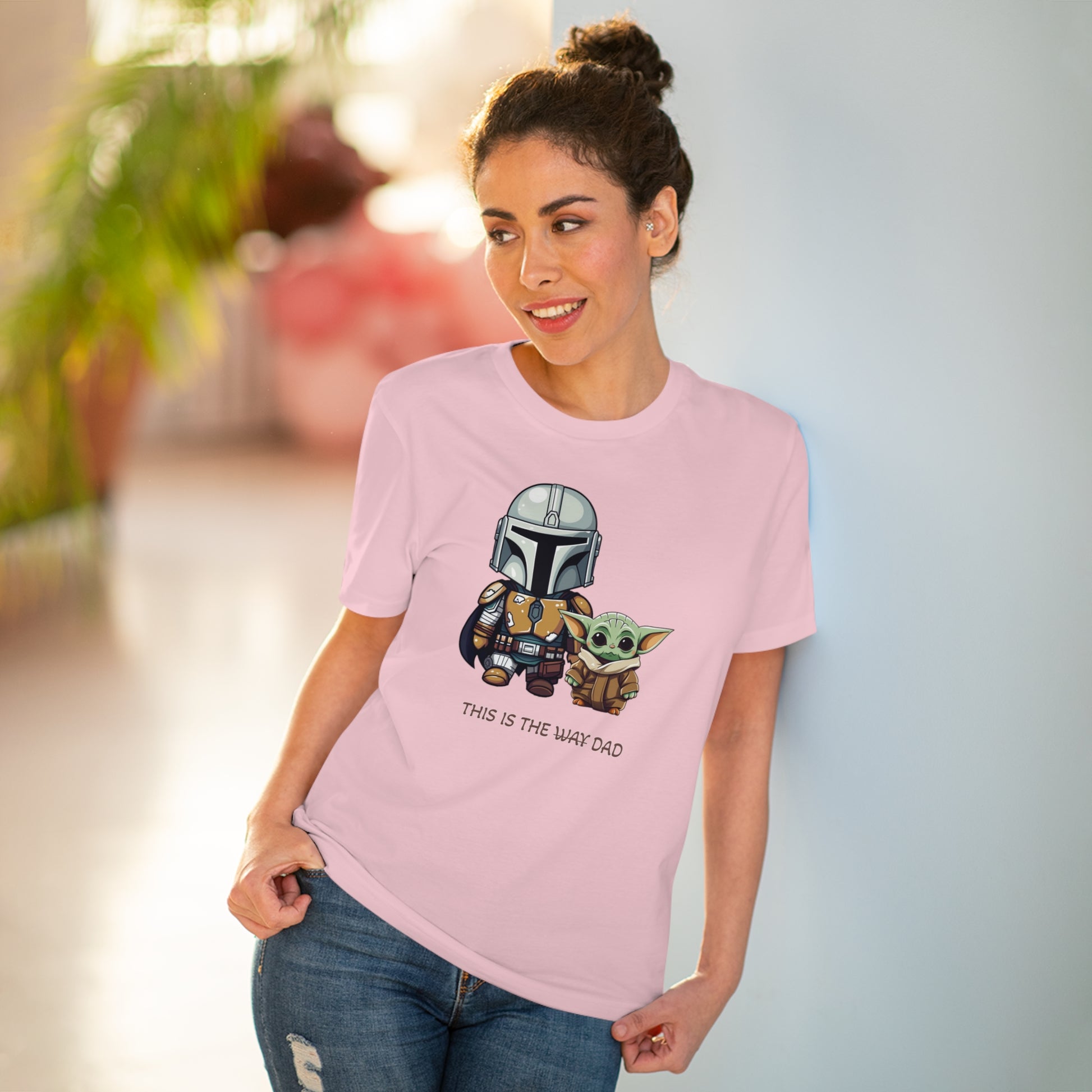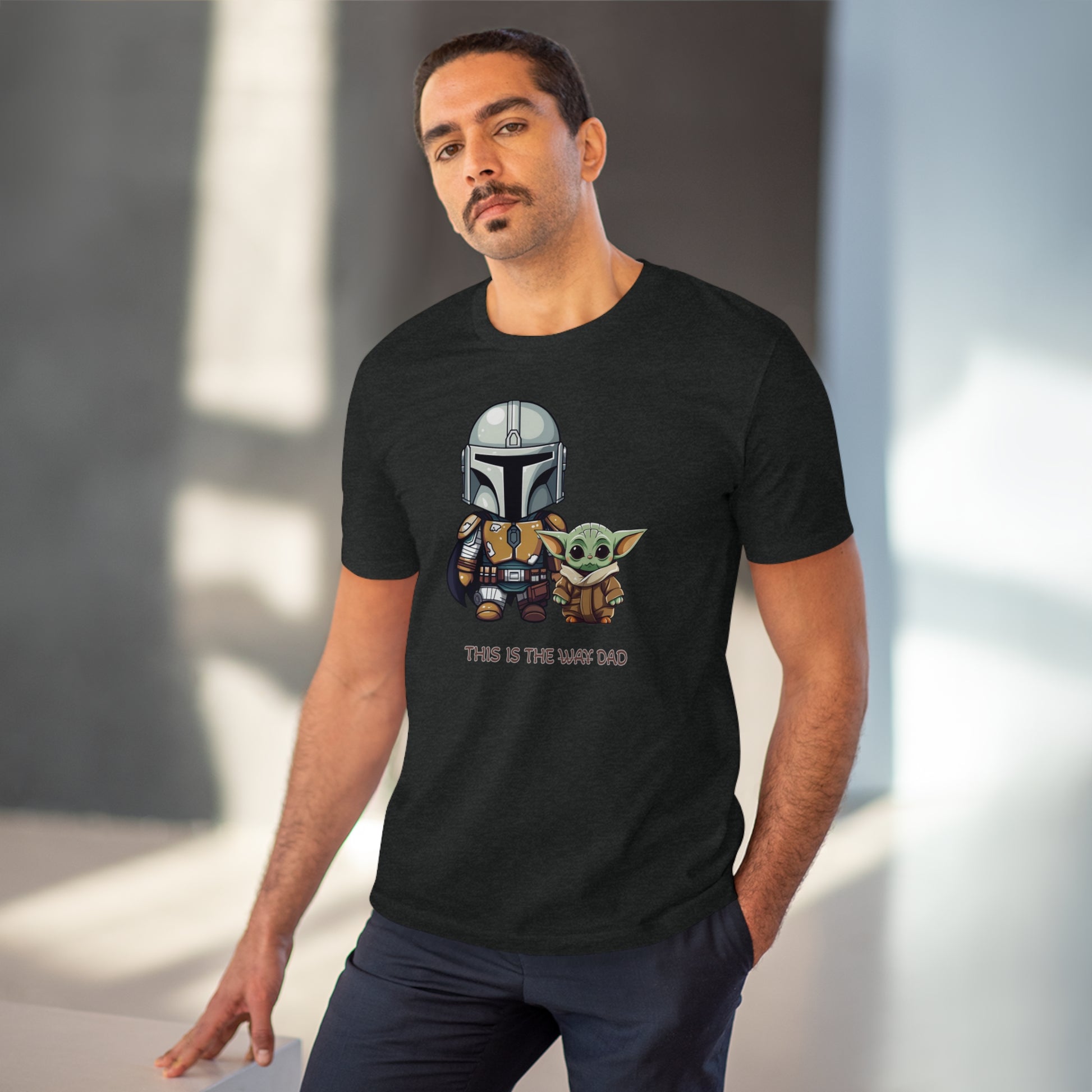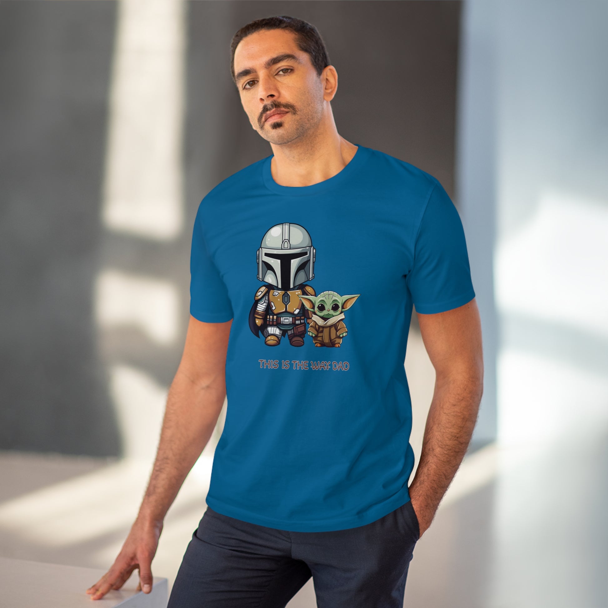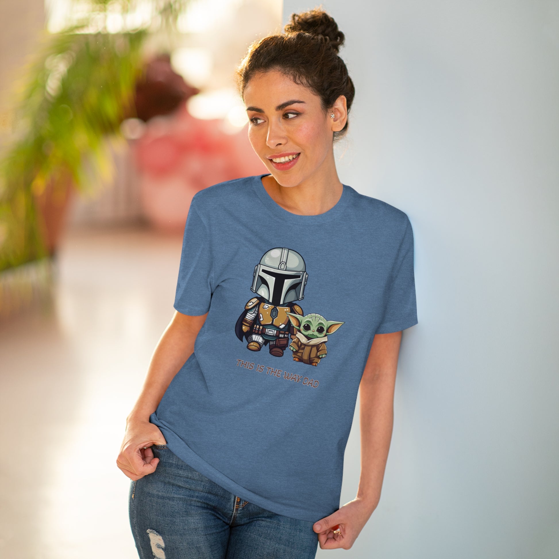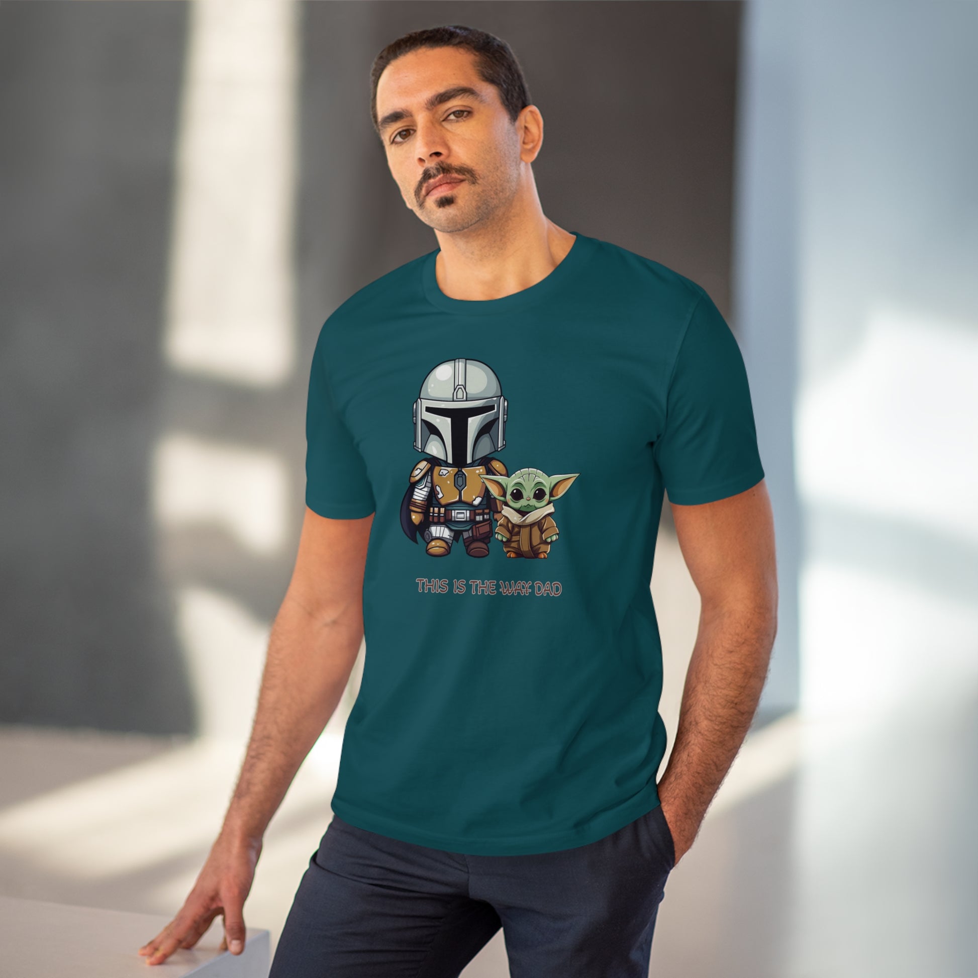 Honor the special bond between fathers and their children with this adorable Mandalorian and Baby Yoda (Grogu) unisex eco-friendly t-shirt. Crafted from sustainable materials, this t-shirt not only showcases your love for this iconic duo but also reflects your commitment to the environment. The heartwarming design features the Mandalorian and Baby Yoda in a cute and playful style, with the phrase "This is the Way Dad" (the word Way is barred) adding a touch of charm and humour. Celebrate Father's Day with this stylish and eco-conscious t-shirt, the perfect gift to show appreciation for all the amazing dads out there.
