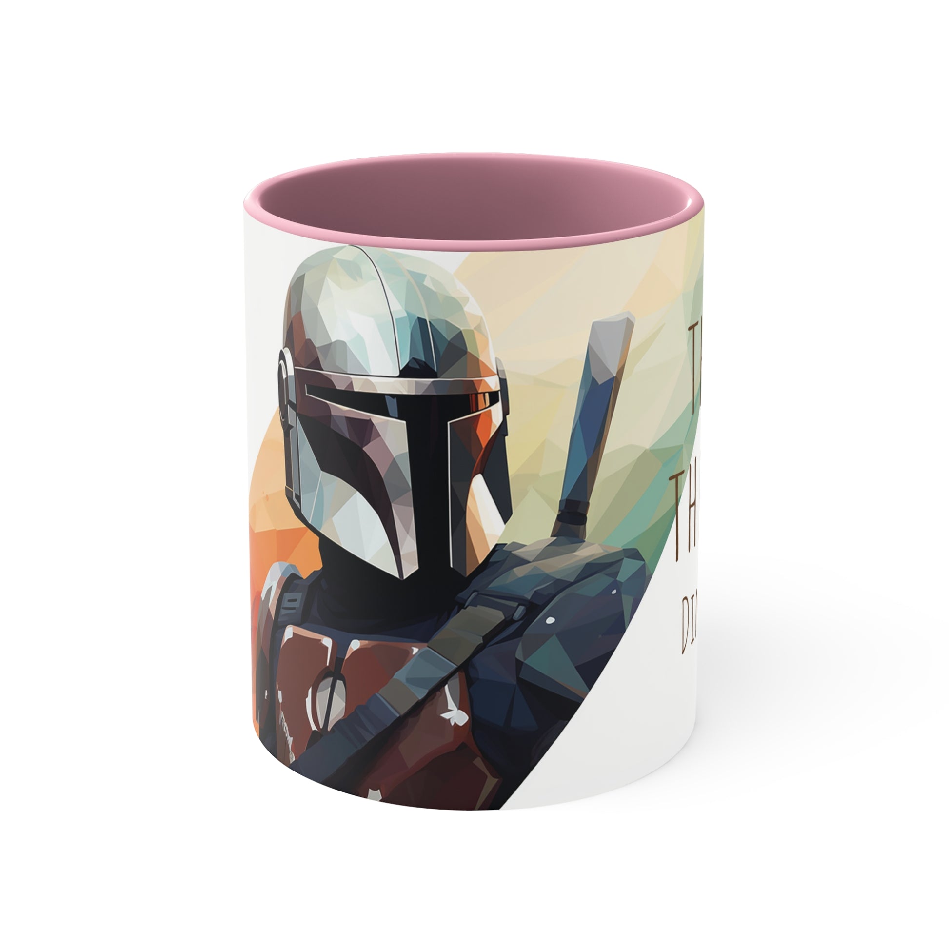 Embark on a journey to a galaxy far, far away with this 11 oz bicolor mug featuring The Mandalorian in a captivating geometric style. Adorned with the iconic phrase "This is the Way," this mug celebrates the honor and resilience of the legendary bounty hunter. Sip your favorite beverage and feel the spirit of the Mandalorian coursing through you. Get your The Mandalorian Geometric Bicolor Mug today and join the ranks of the devoted fans.