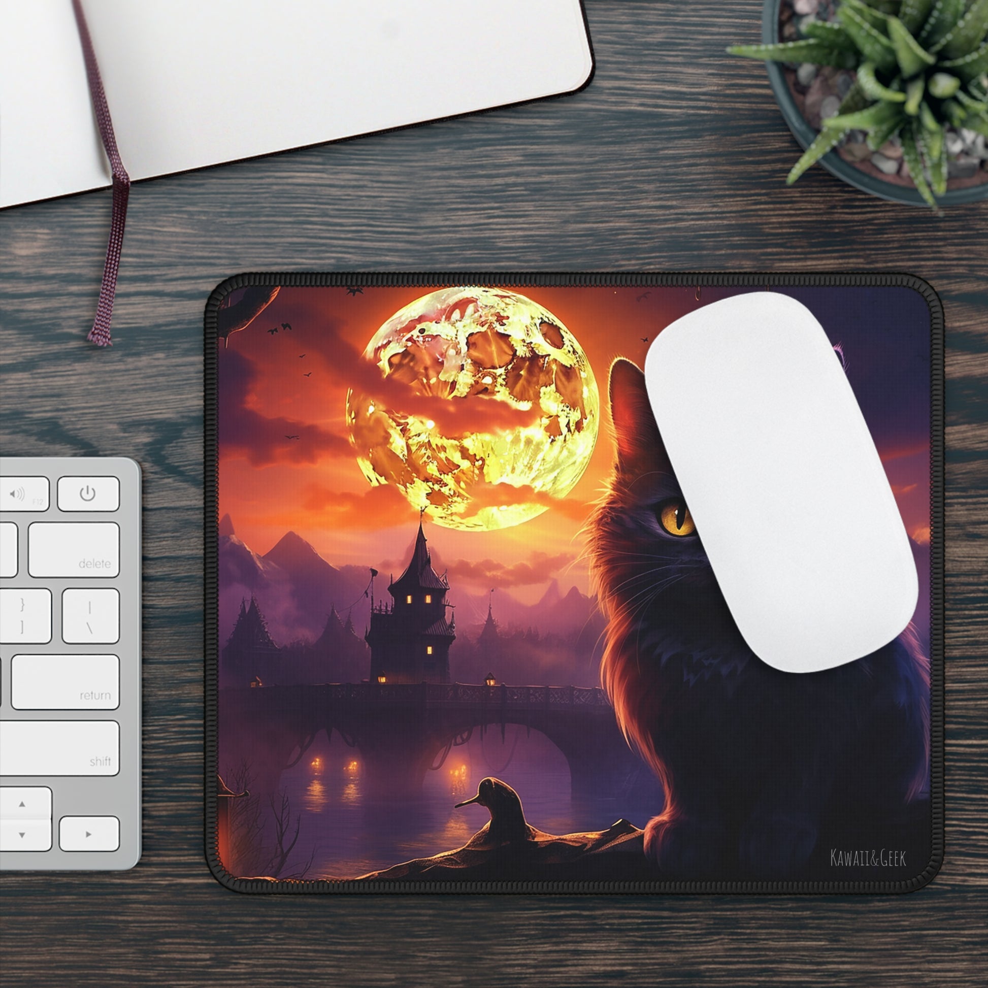 Keywords: "Halloween gaming pad", "Spooky cat design", "Full moon mouse pad", "Gamer Halloween gear", "Eerie night cat", "Glowing moon design", "Gaming ambiance", "Witching hour pad", "Cat silhouette gaming", "Mystical mouse mat", "Halloween game accessory", "Midnight feline", "Spooky gamer gift".