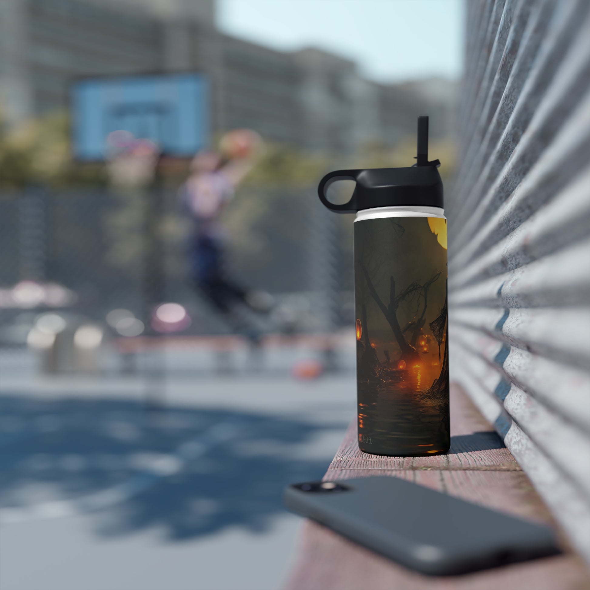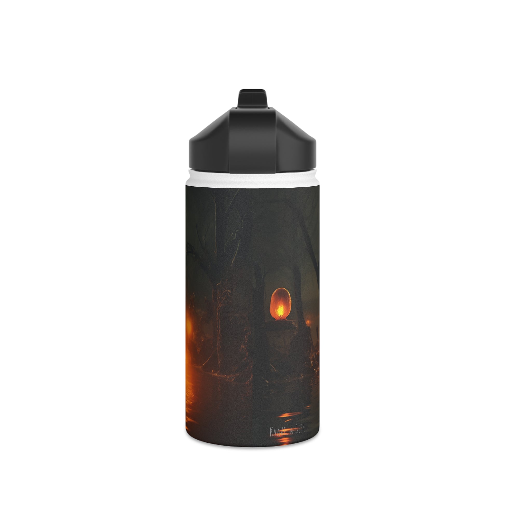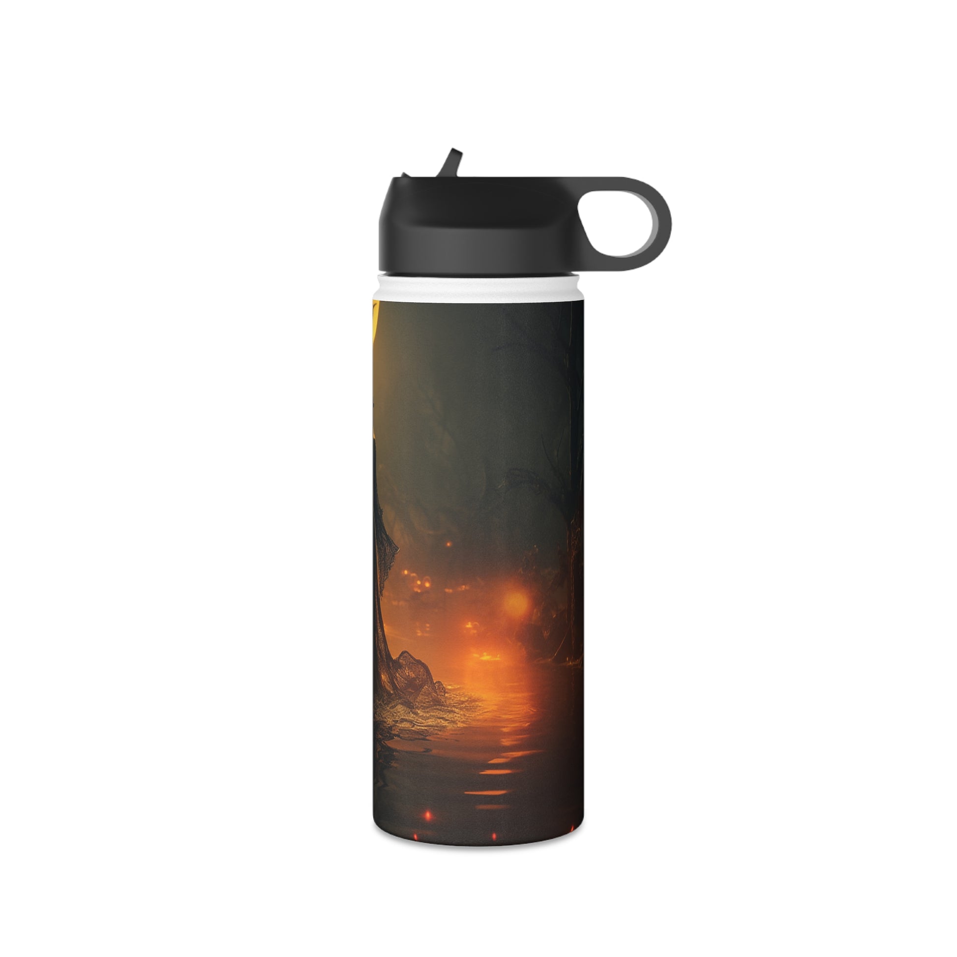 Dive into the dark allure of Halloween with our Stainless Steel Water Bottle, featuring a captivating depiction of a mysterious witch amidst a spine-chilling swamp. Stay refreshed and embrace the eerie season with every sip!
