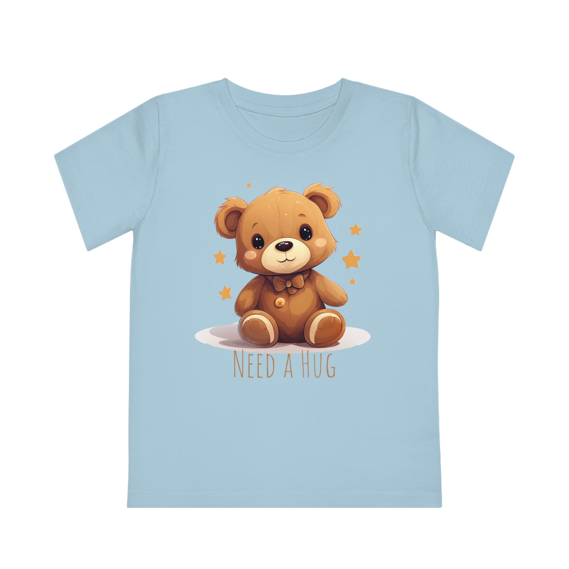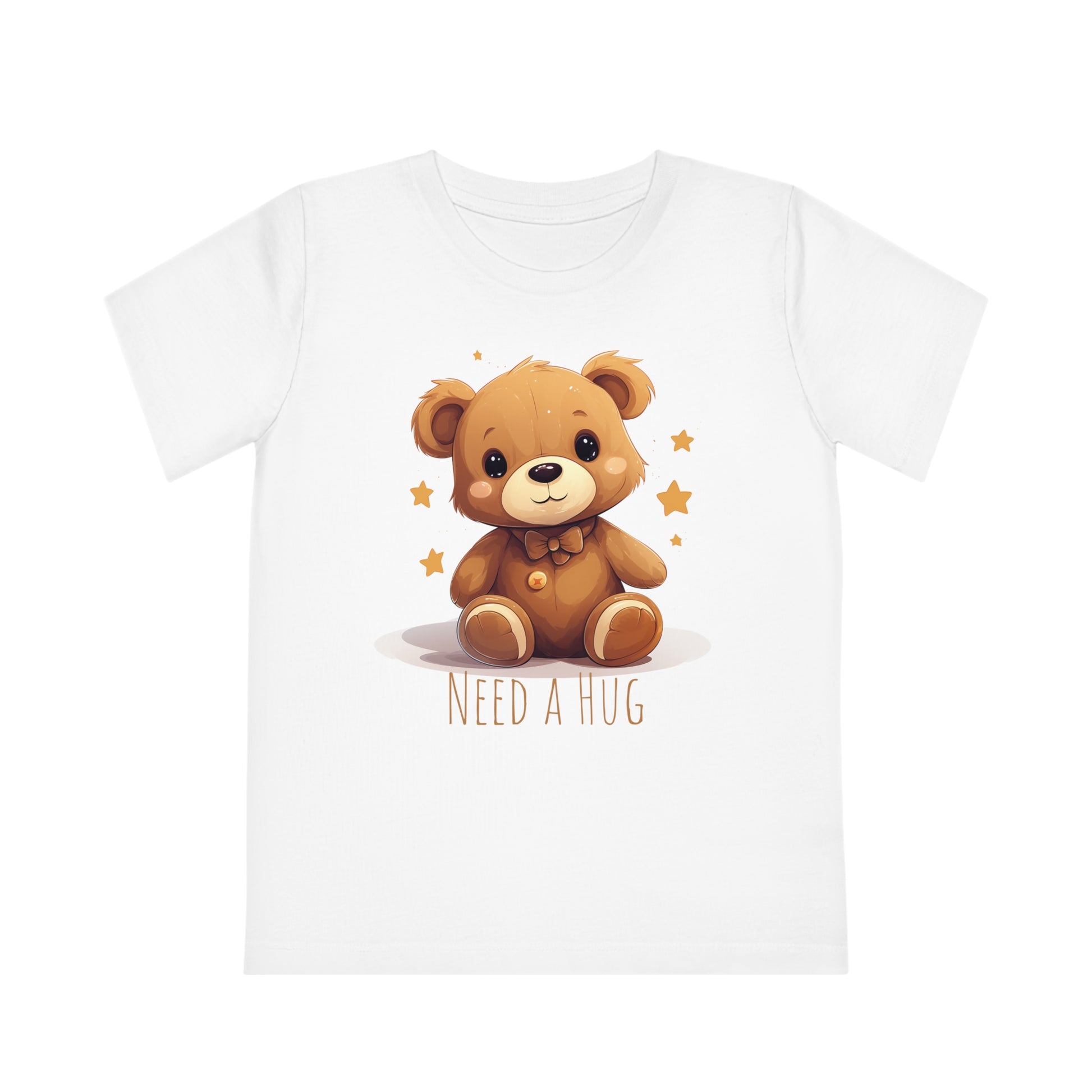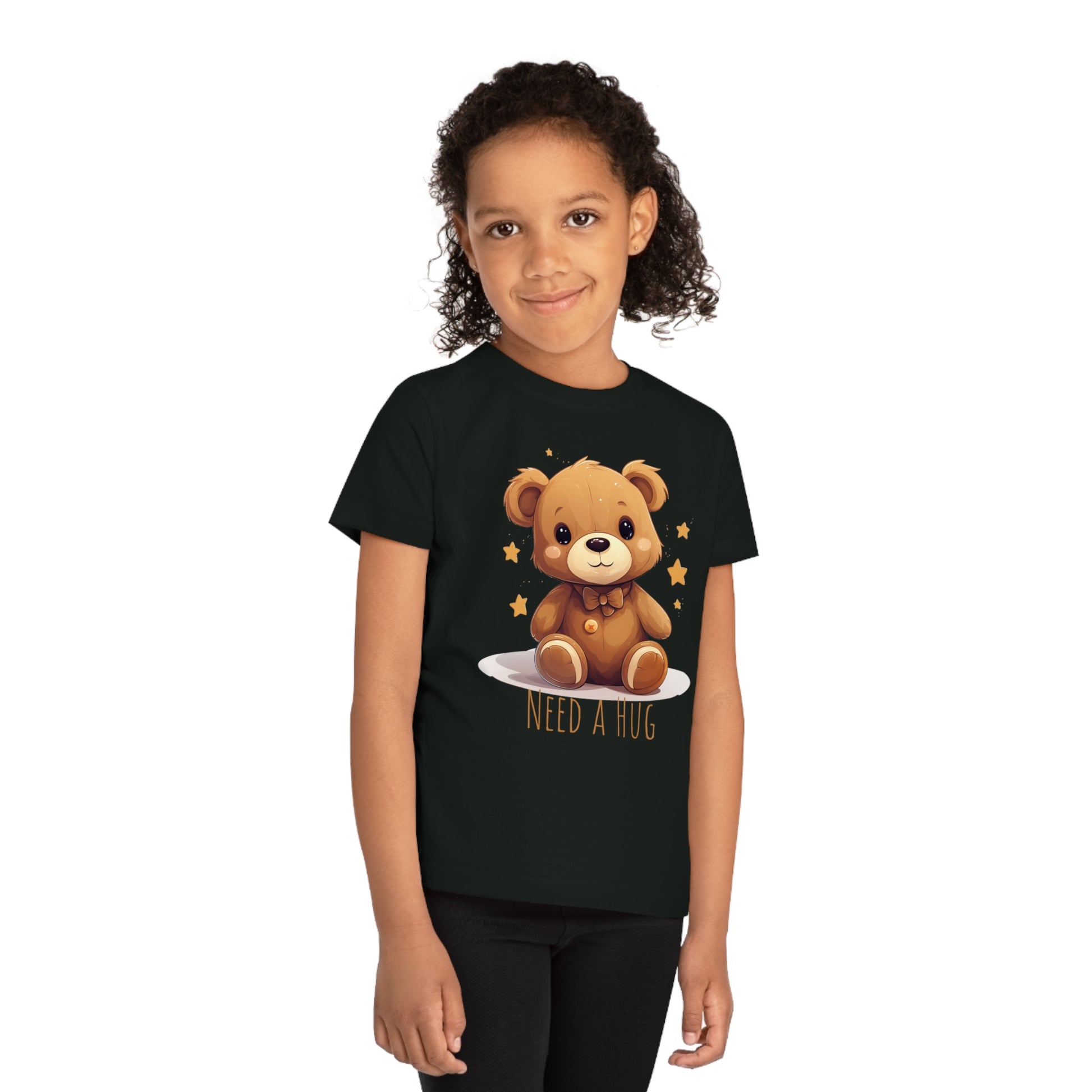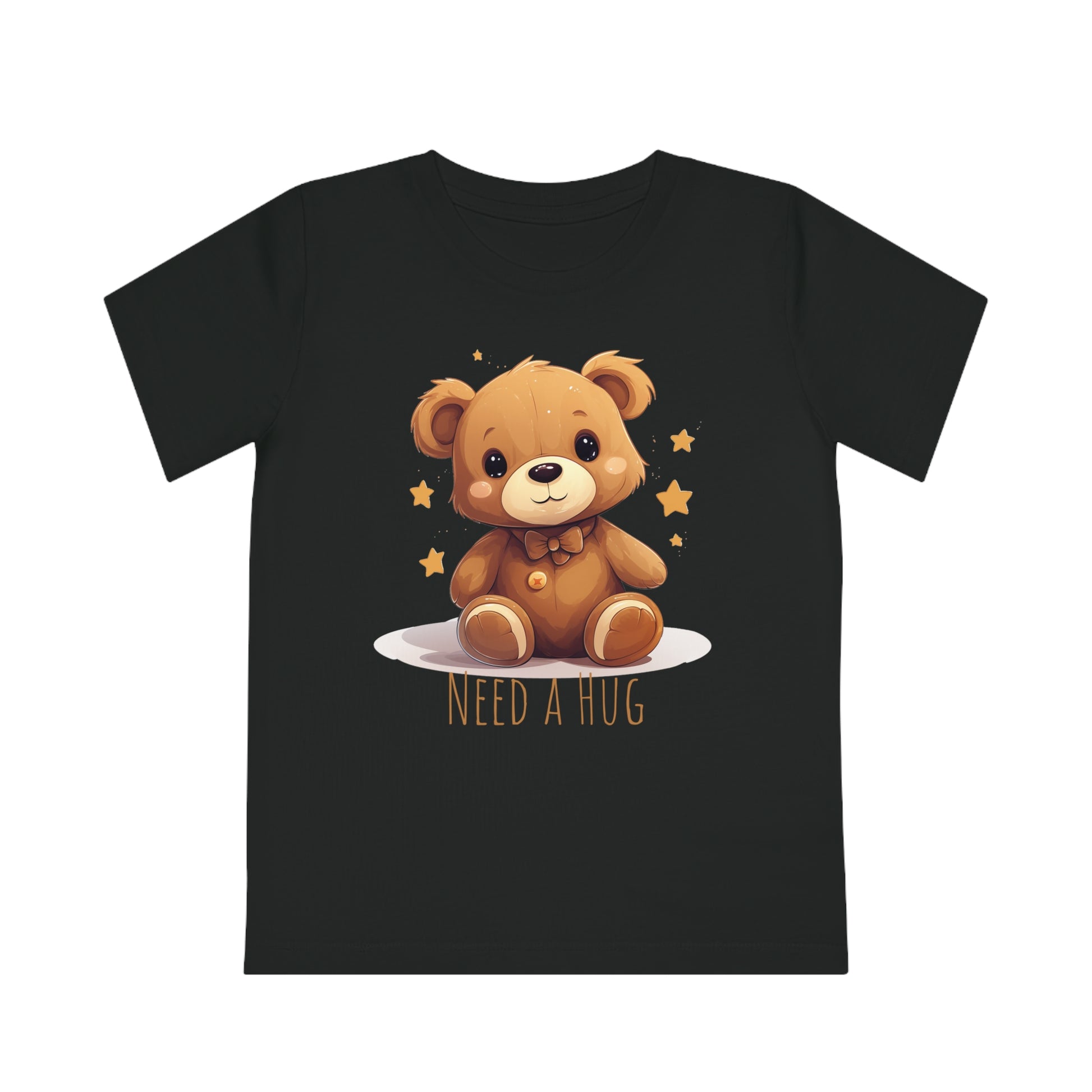 Keywords: Eco Kids Tee, Cute Teddy Shirt, Sustainable Kids Wear, "Need a Hug" Design, Teddy Bear Tee, Eco-Friendly Children, Adorable Kids Shirt, Hug-themed Tee, Sustainable Teddy Top, Warm Hug Tee, Bear Hug Shirt, Teddy Love Tee, Earth-friendly Kids.