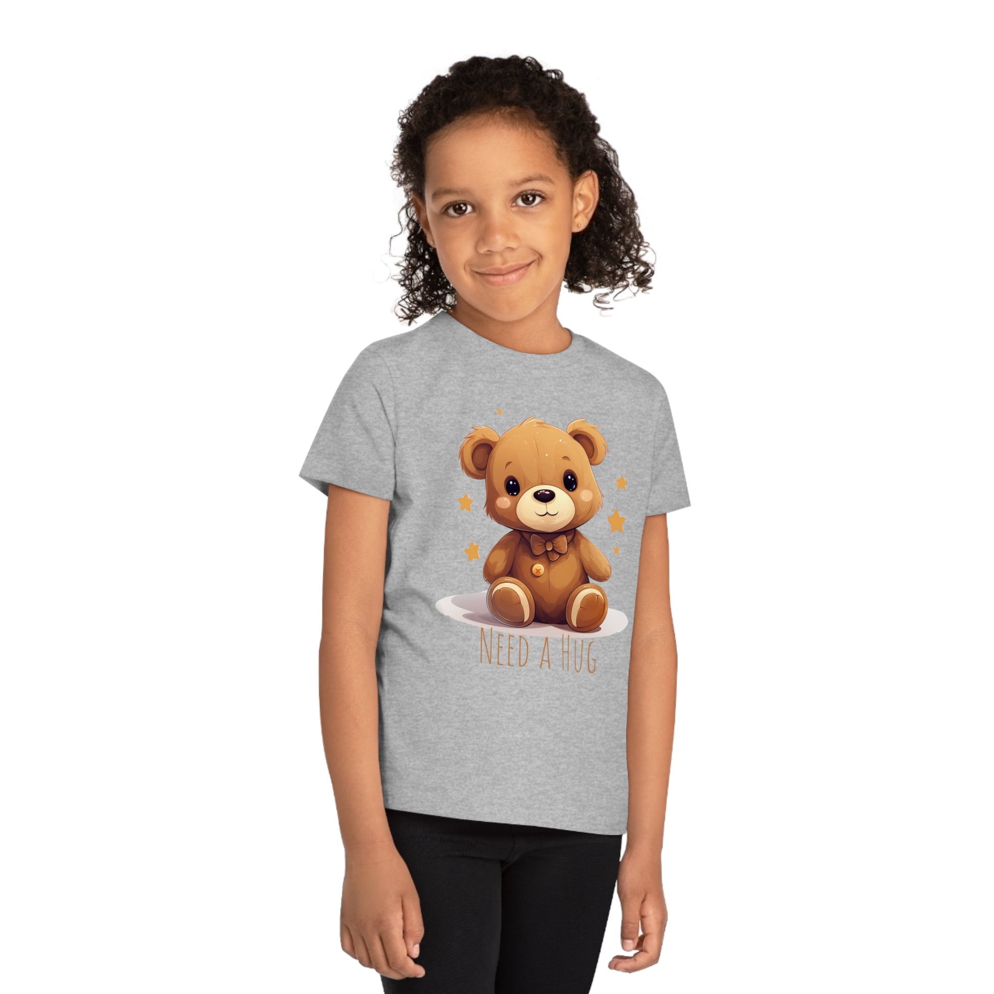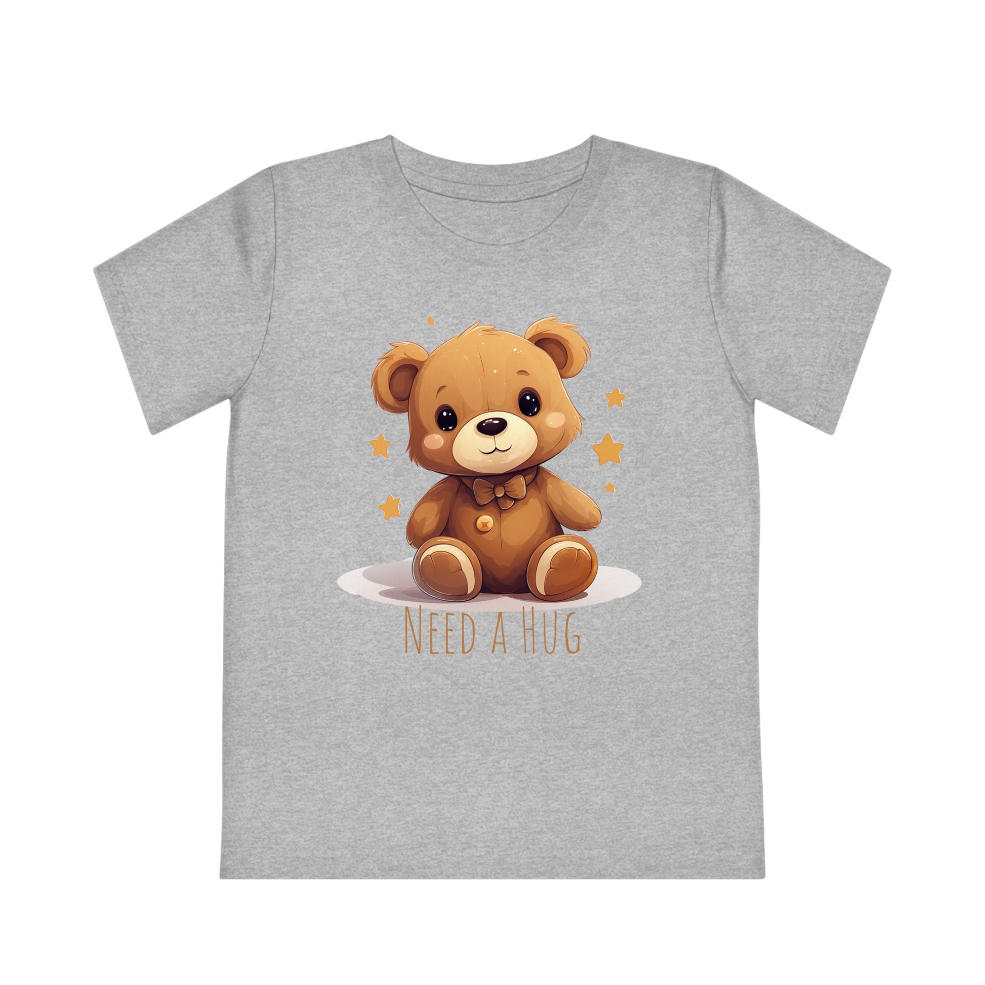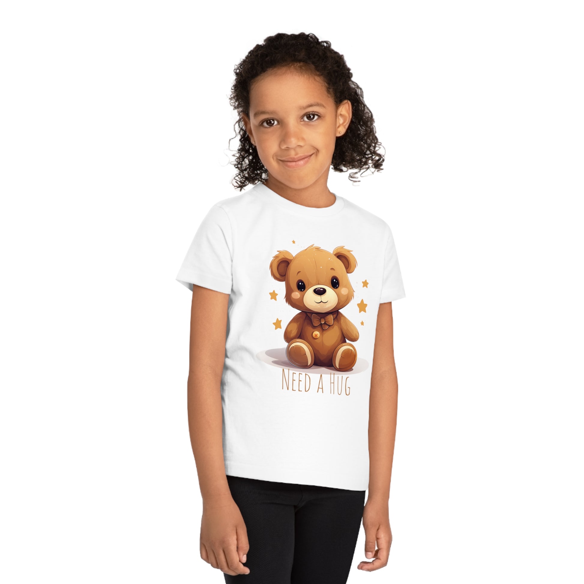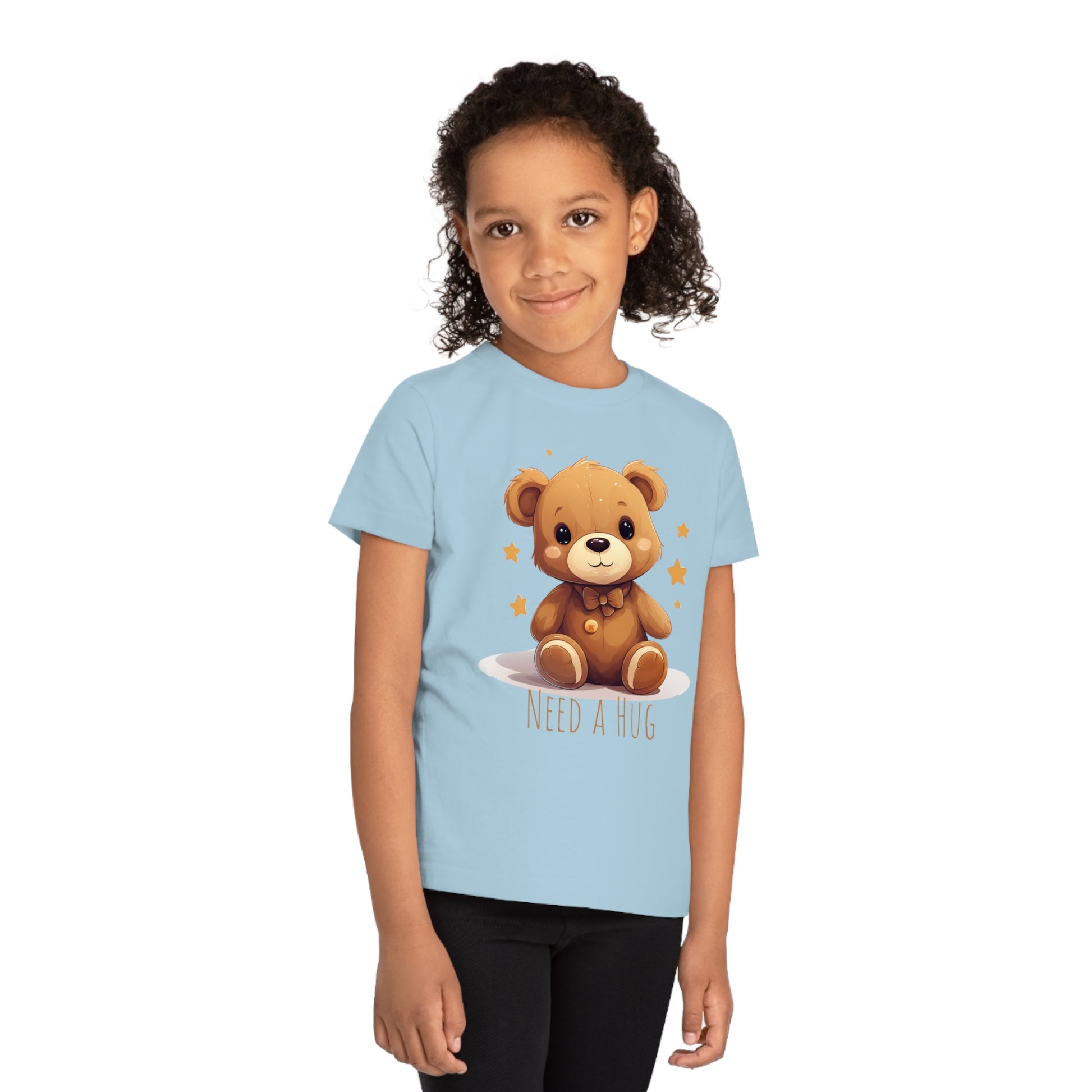 Keywords: Eco Kids Tee, Cute Teddy Shirt, Sustainable Kids Wear, "Need a Hug" Design, Teddy Bear Tee, Eco-Friendly Children, Adorable Kids Shirt, Hug-themed Tee, Sustainable Teddy Top, Warm Hug Tee, Bear Hug Shirt, Teddy Love Tee, Earth-friendly Kids.