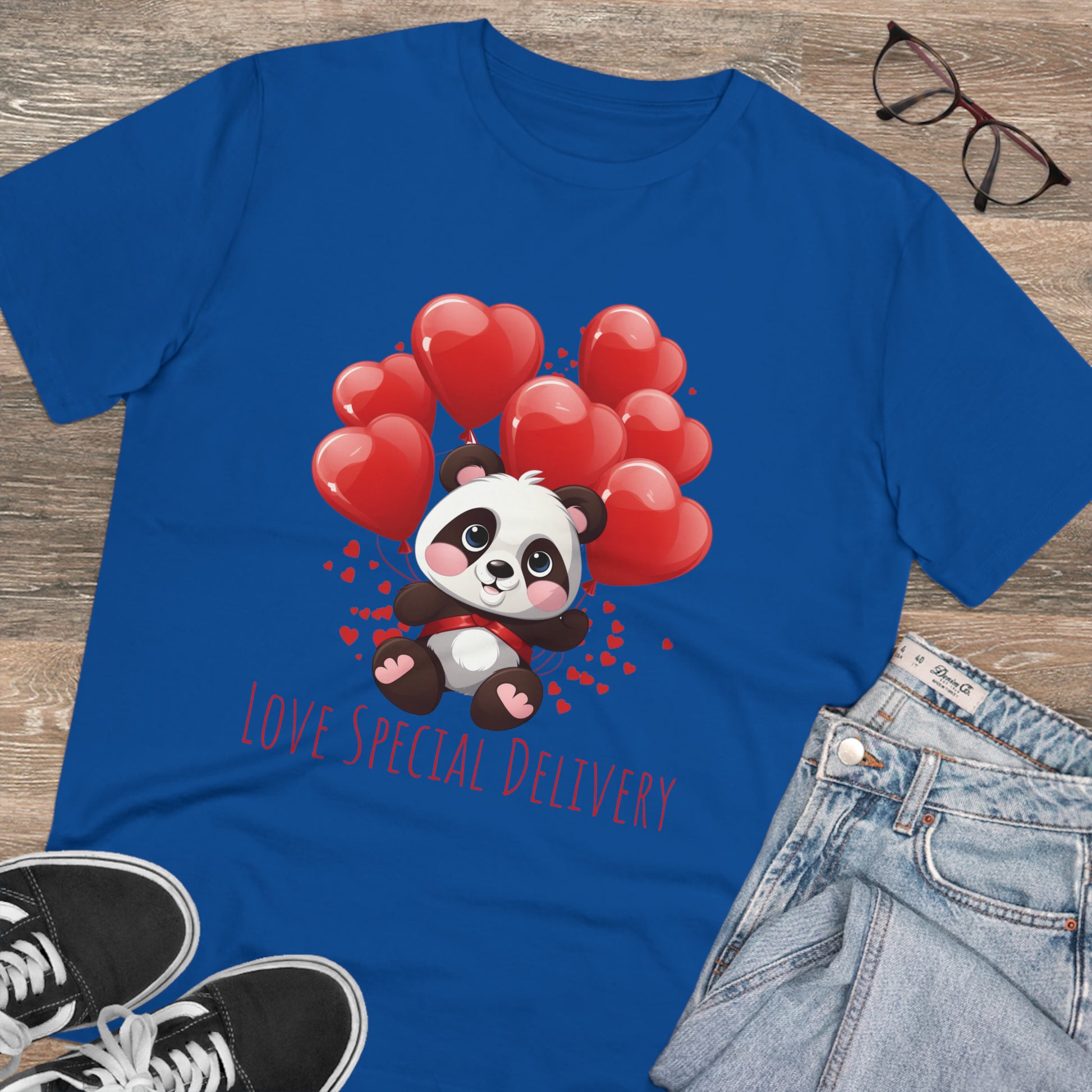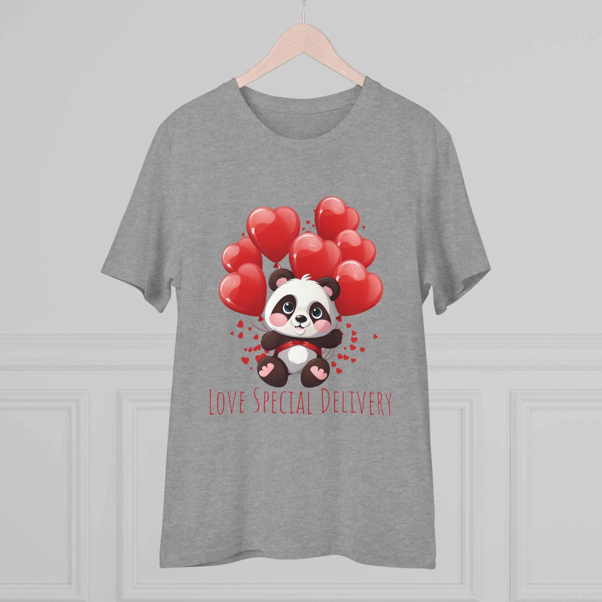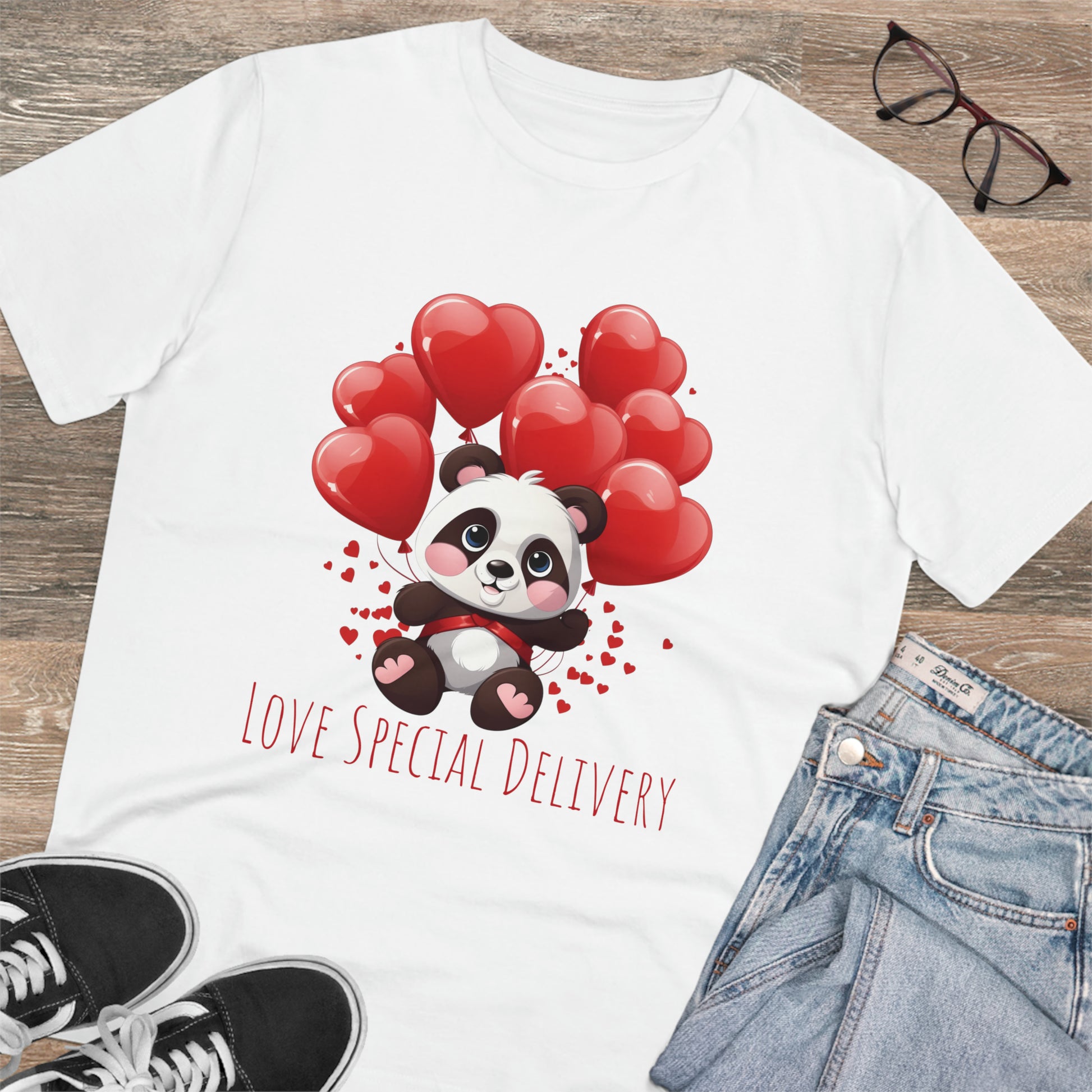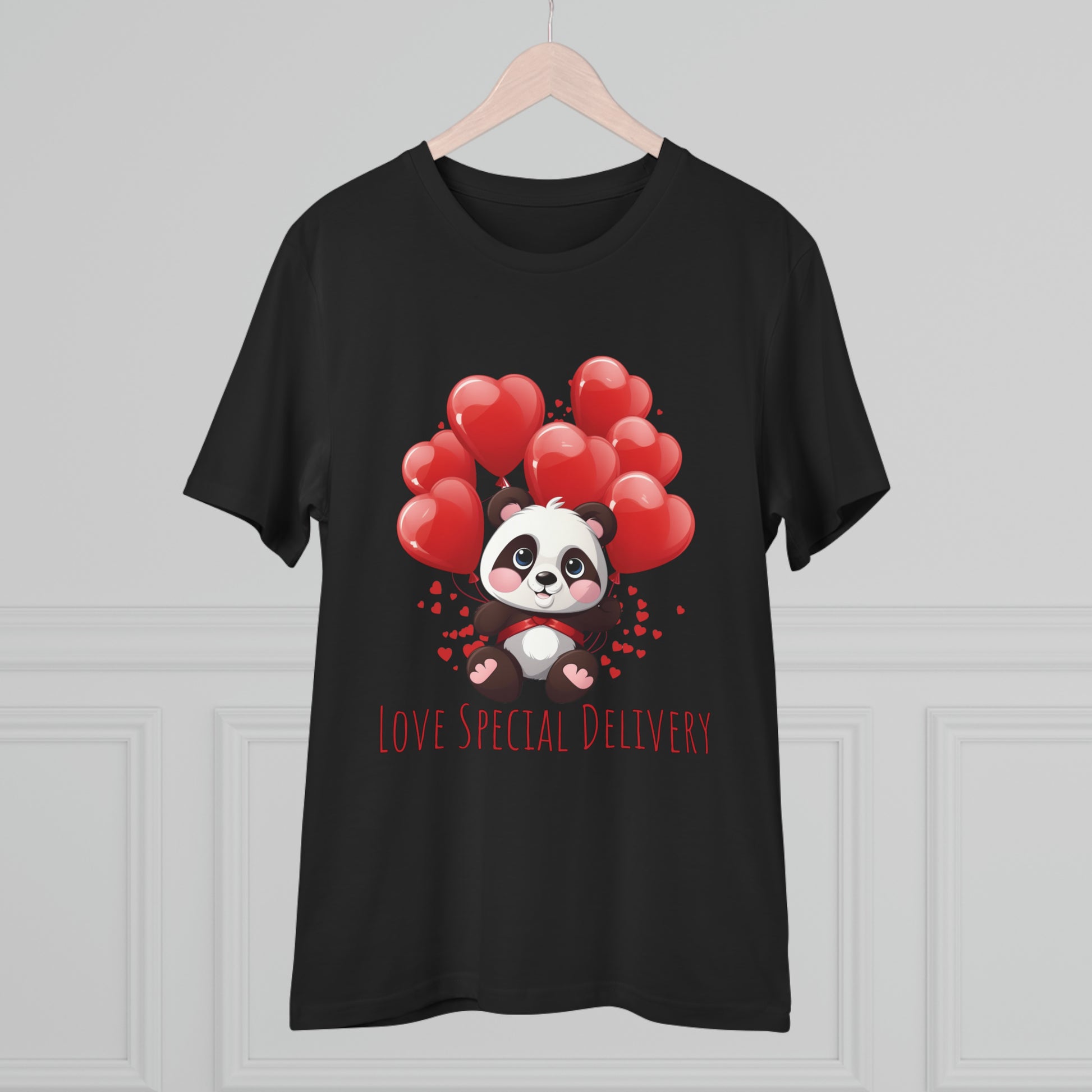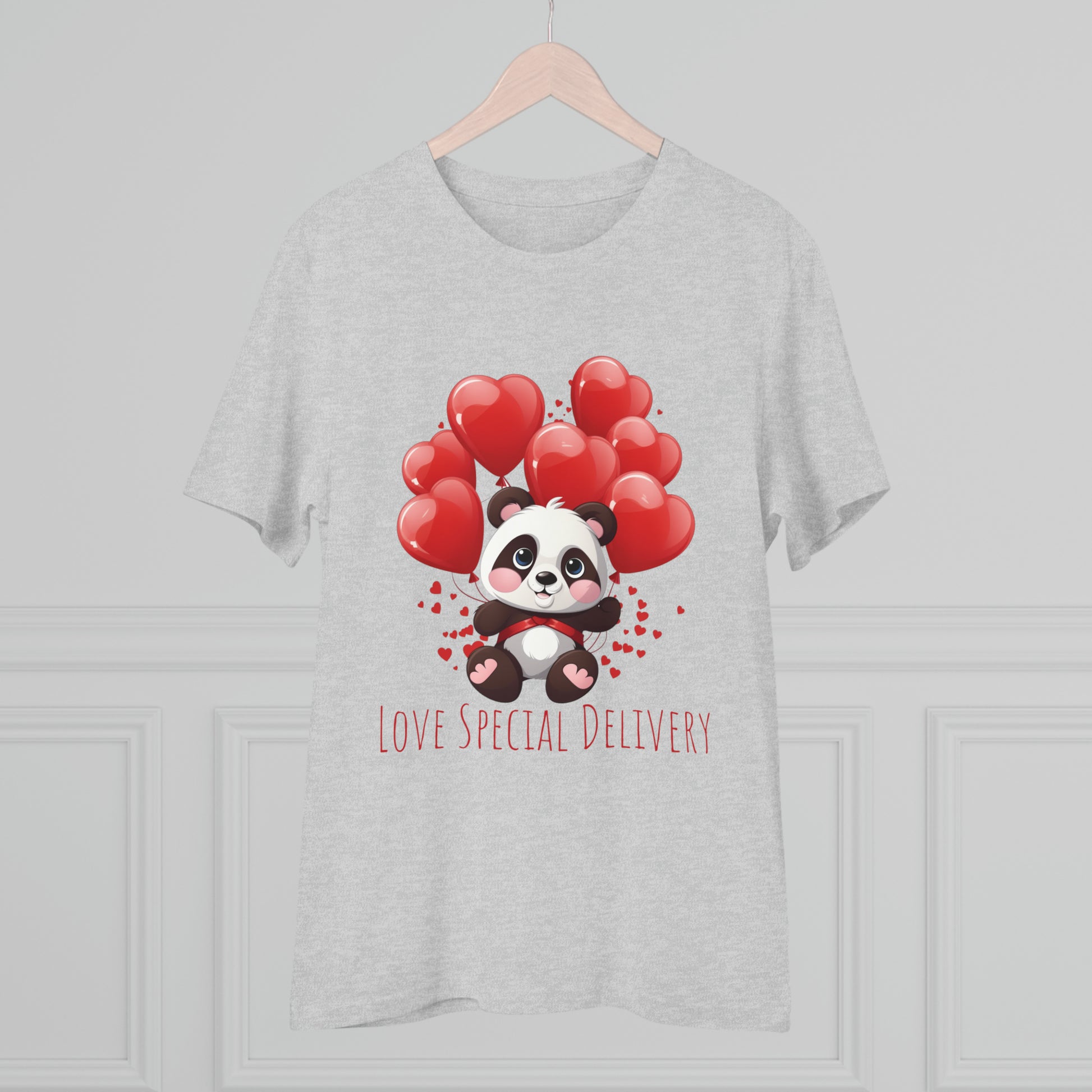 Panda Love Delivery Tee - Eco-Friendly Heart Balloon Shirt - Valentine's Day Special