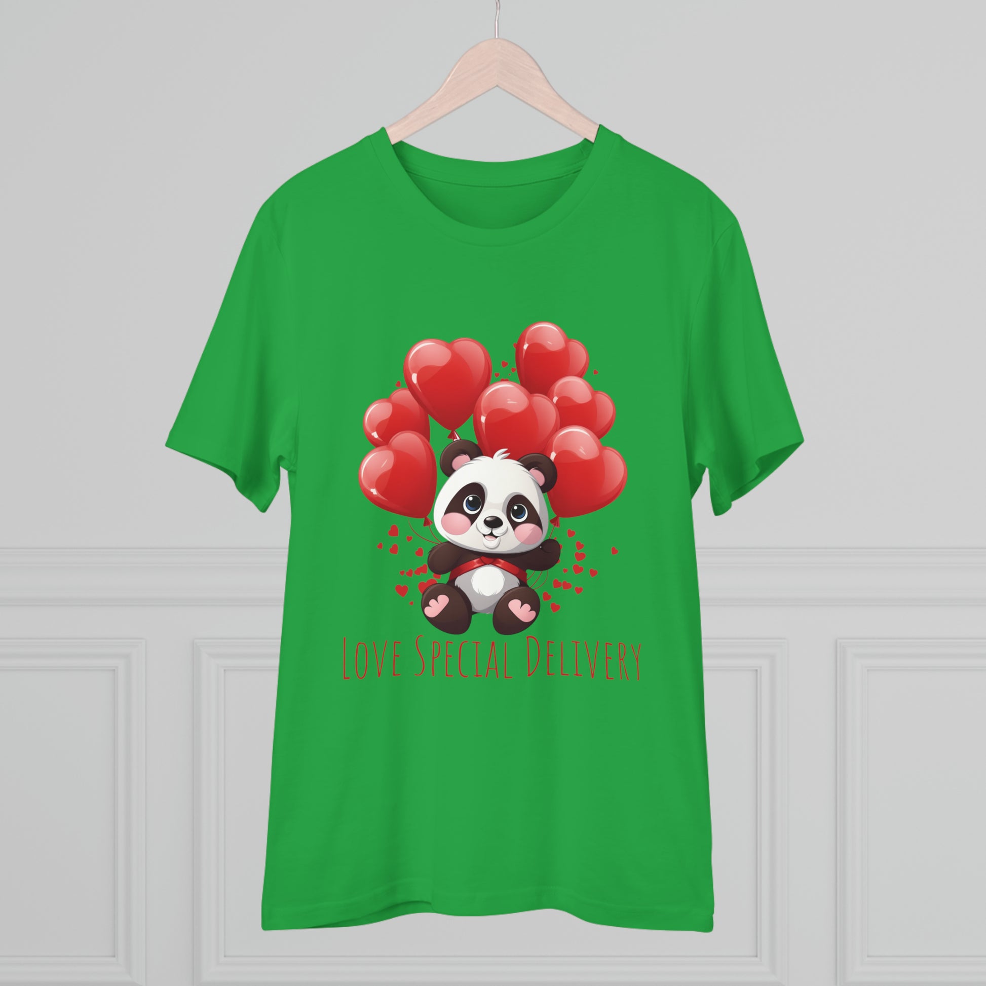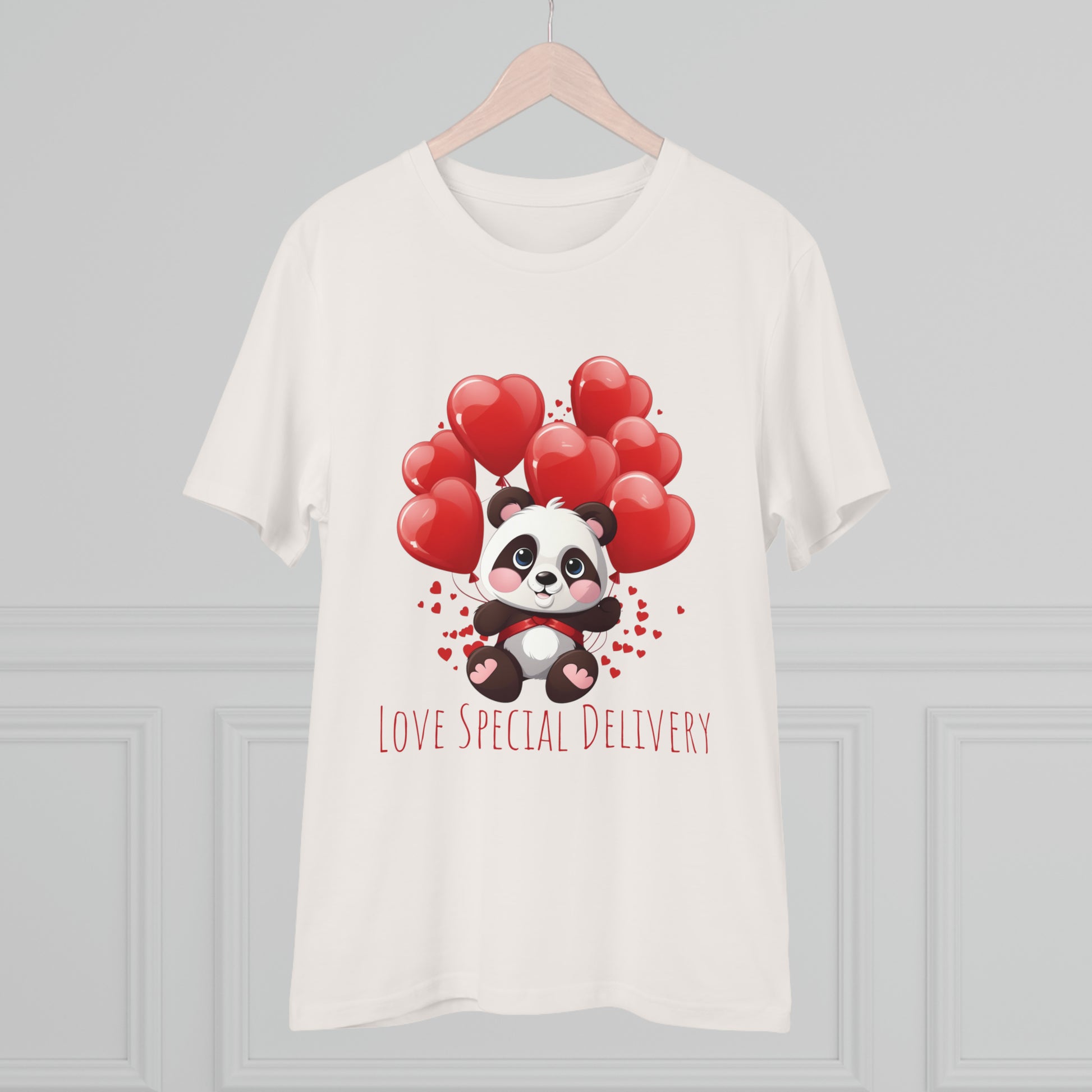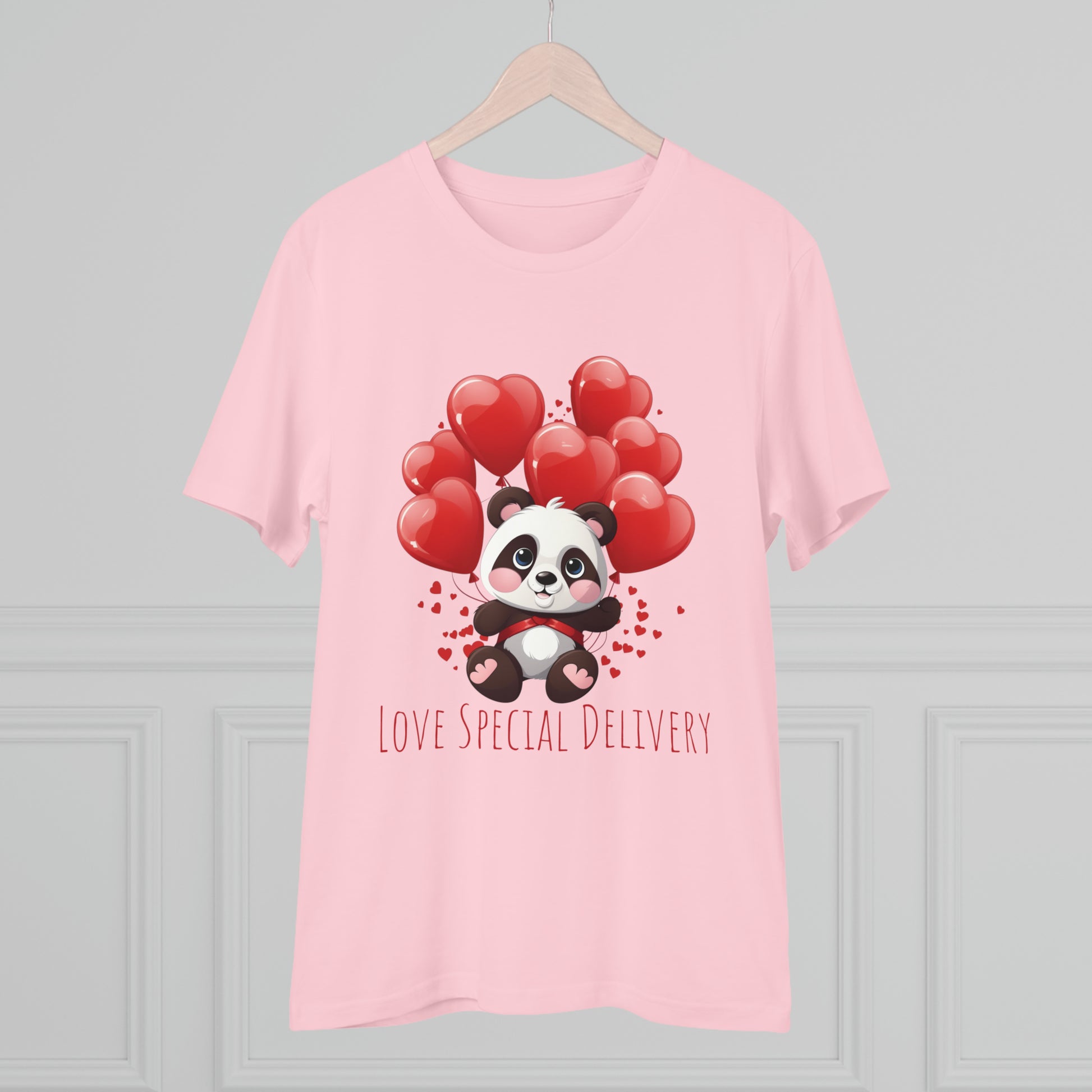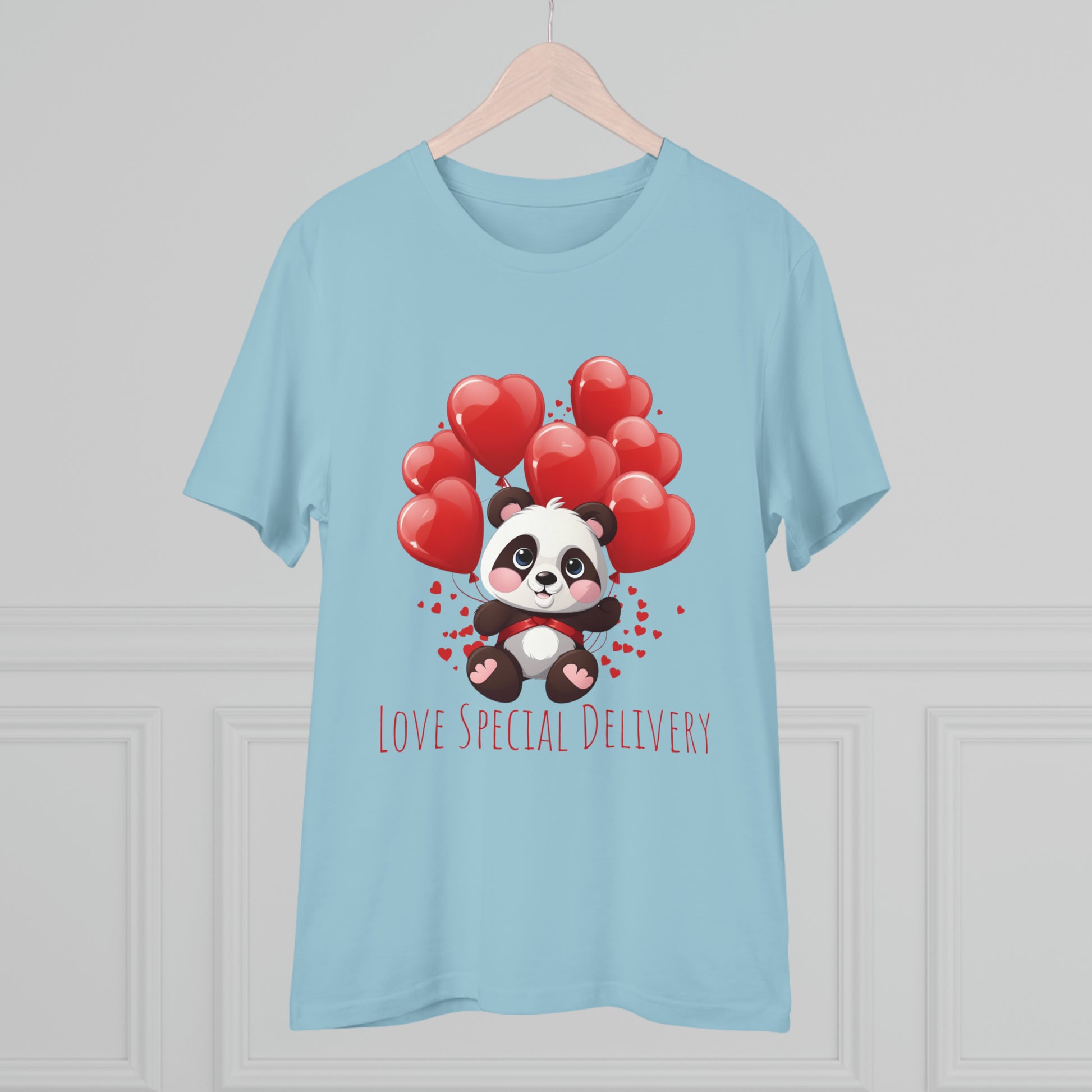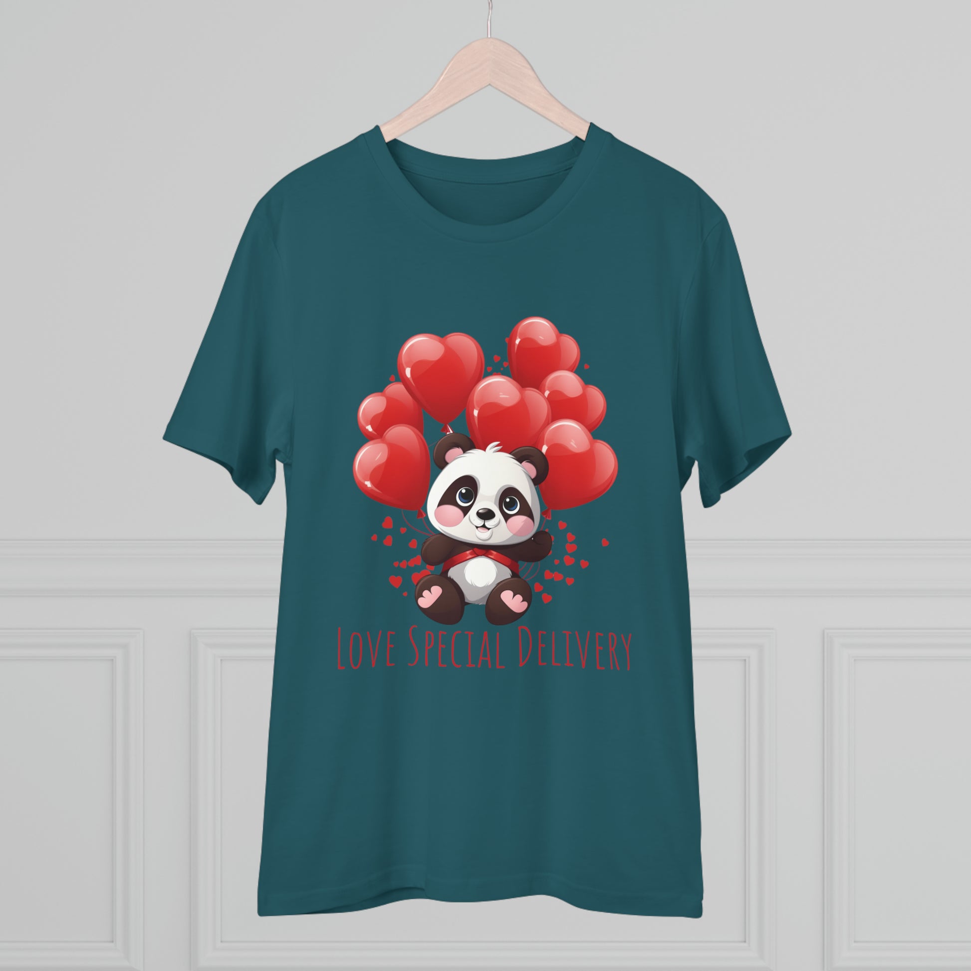 Panda Love Delivery Tee - Eco-Friendly Heart Balloon Shirt - Valentine's Day Special