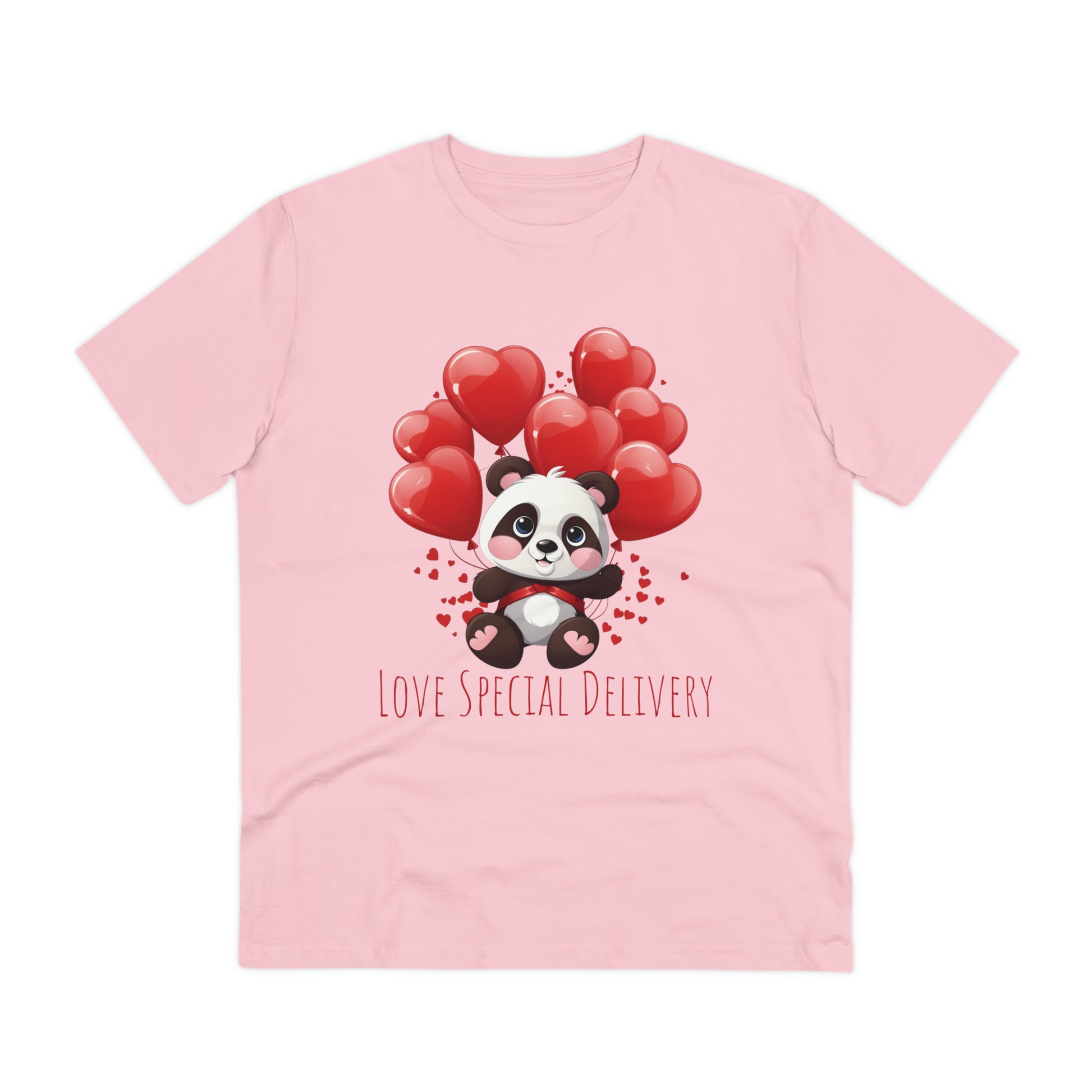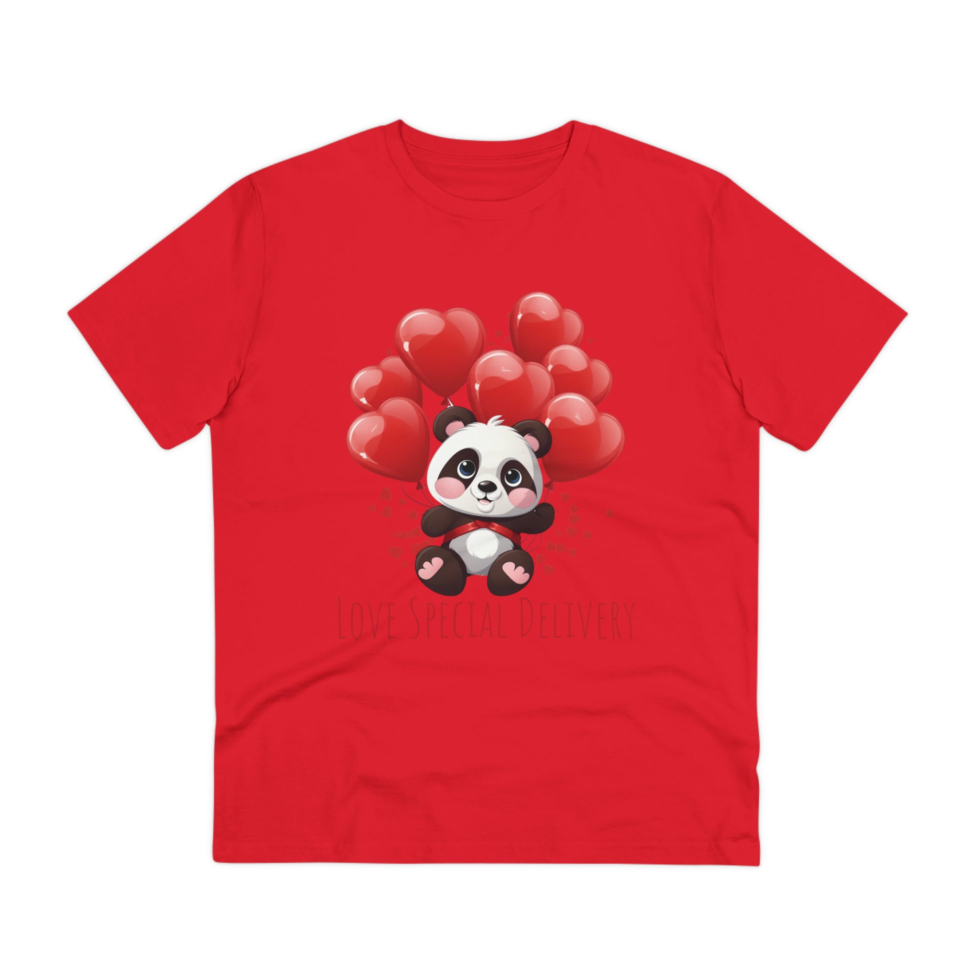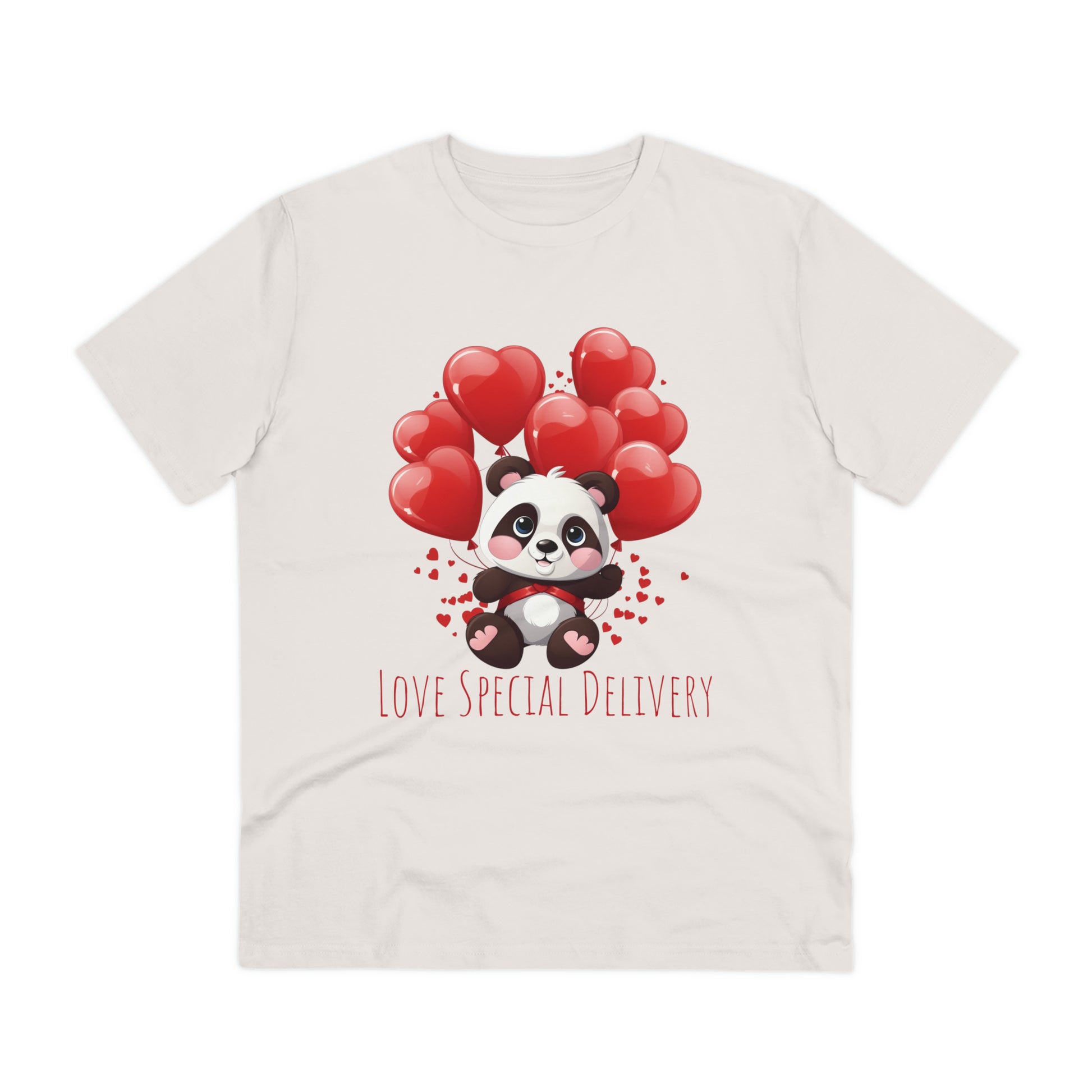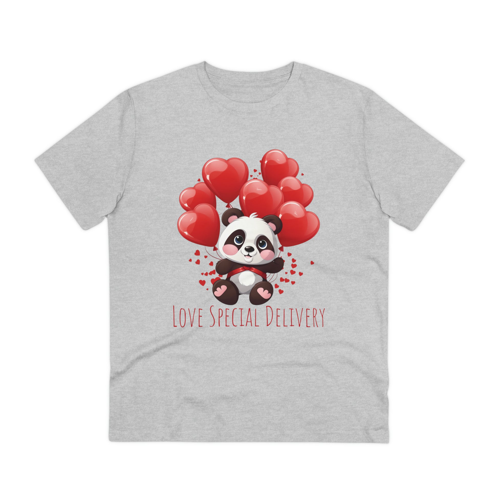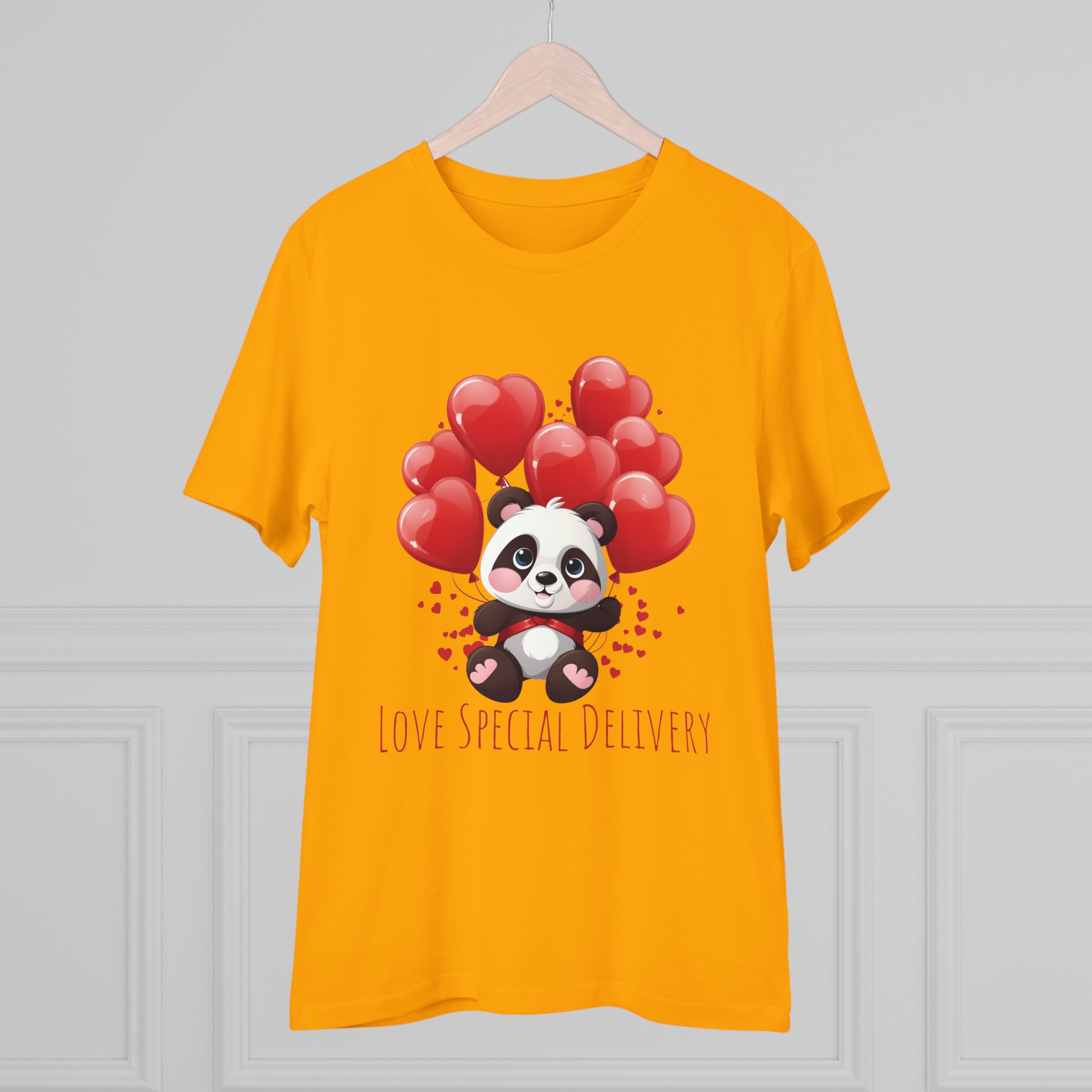 Panda Love Delivery Tee - Eco-Friendly Heart Balloon Shirt - Valentine's Day Special