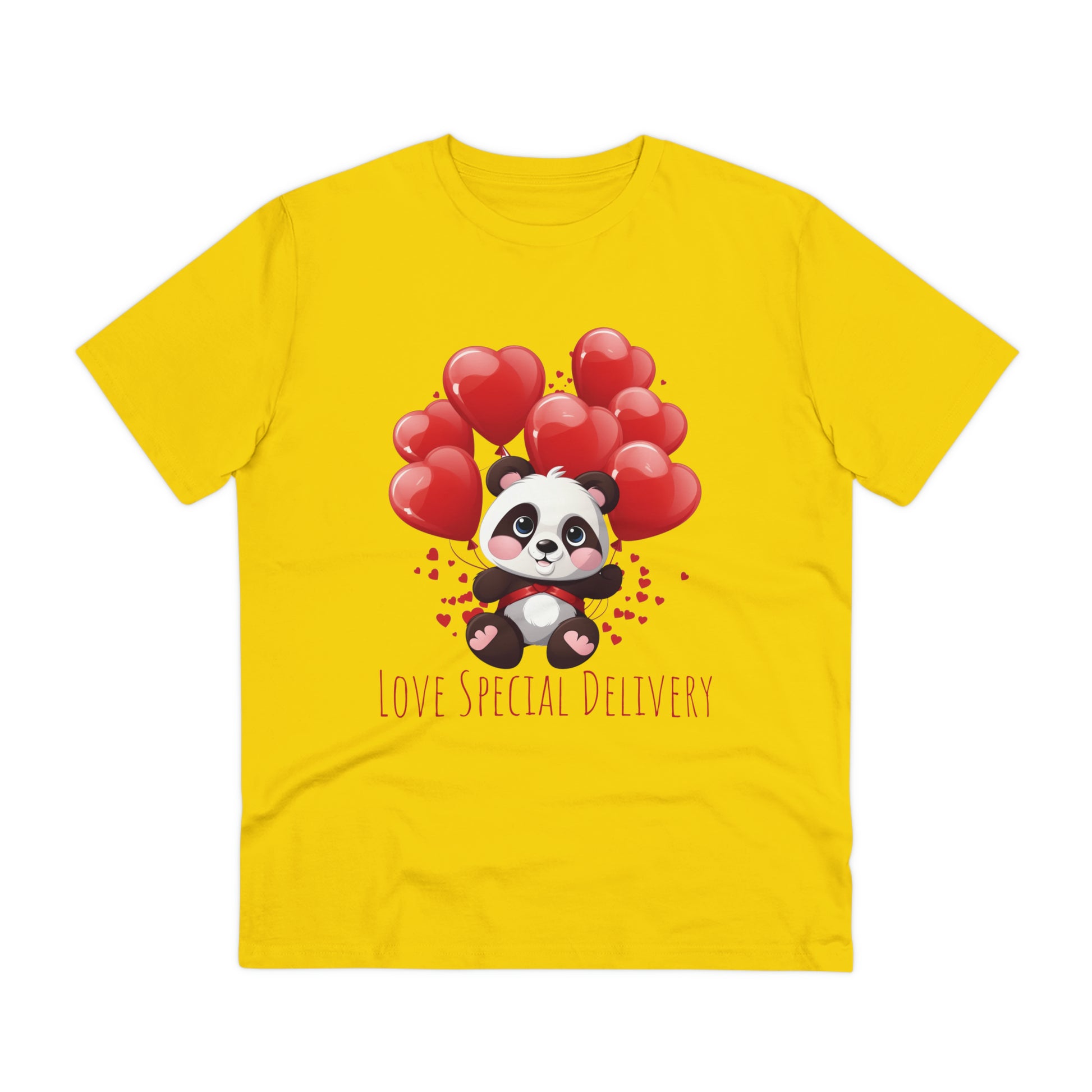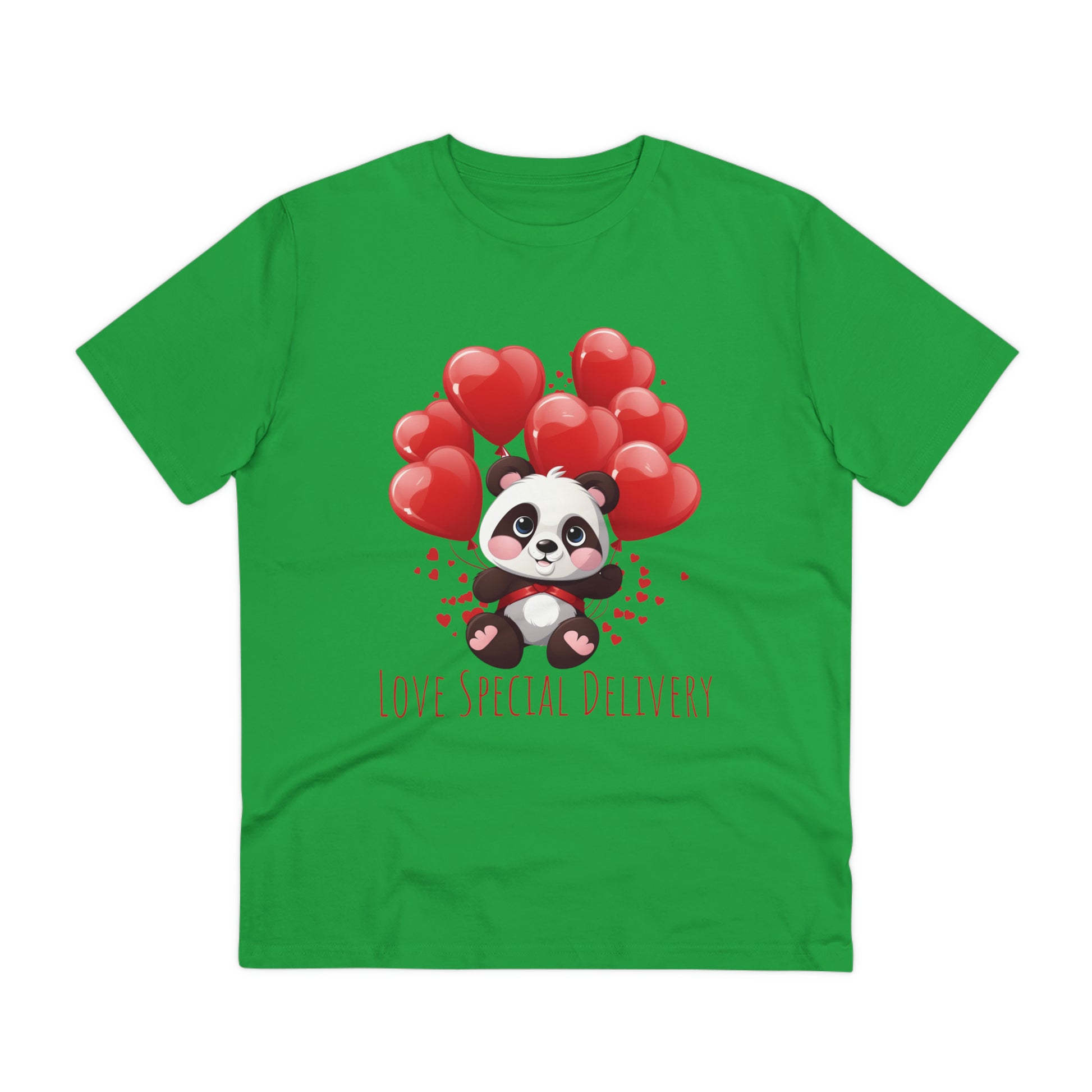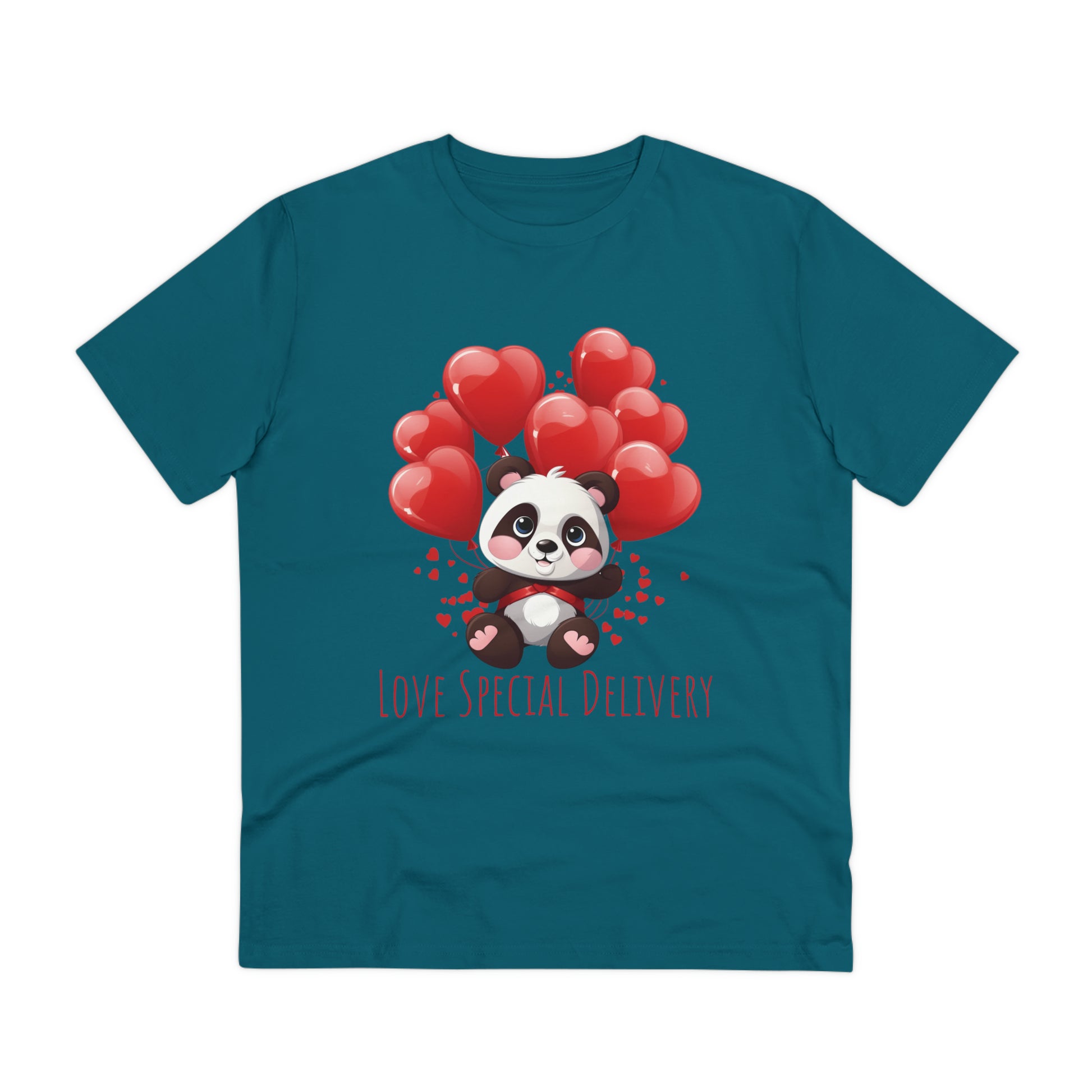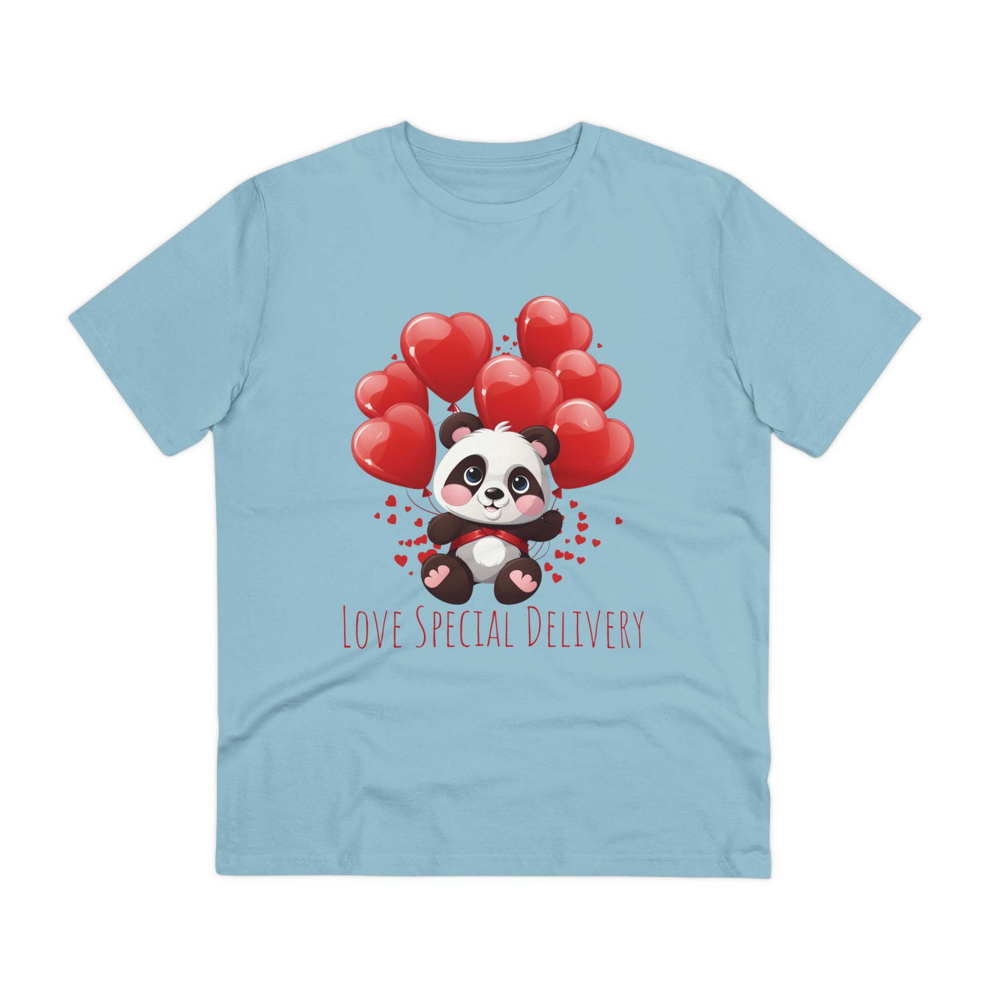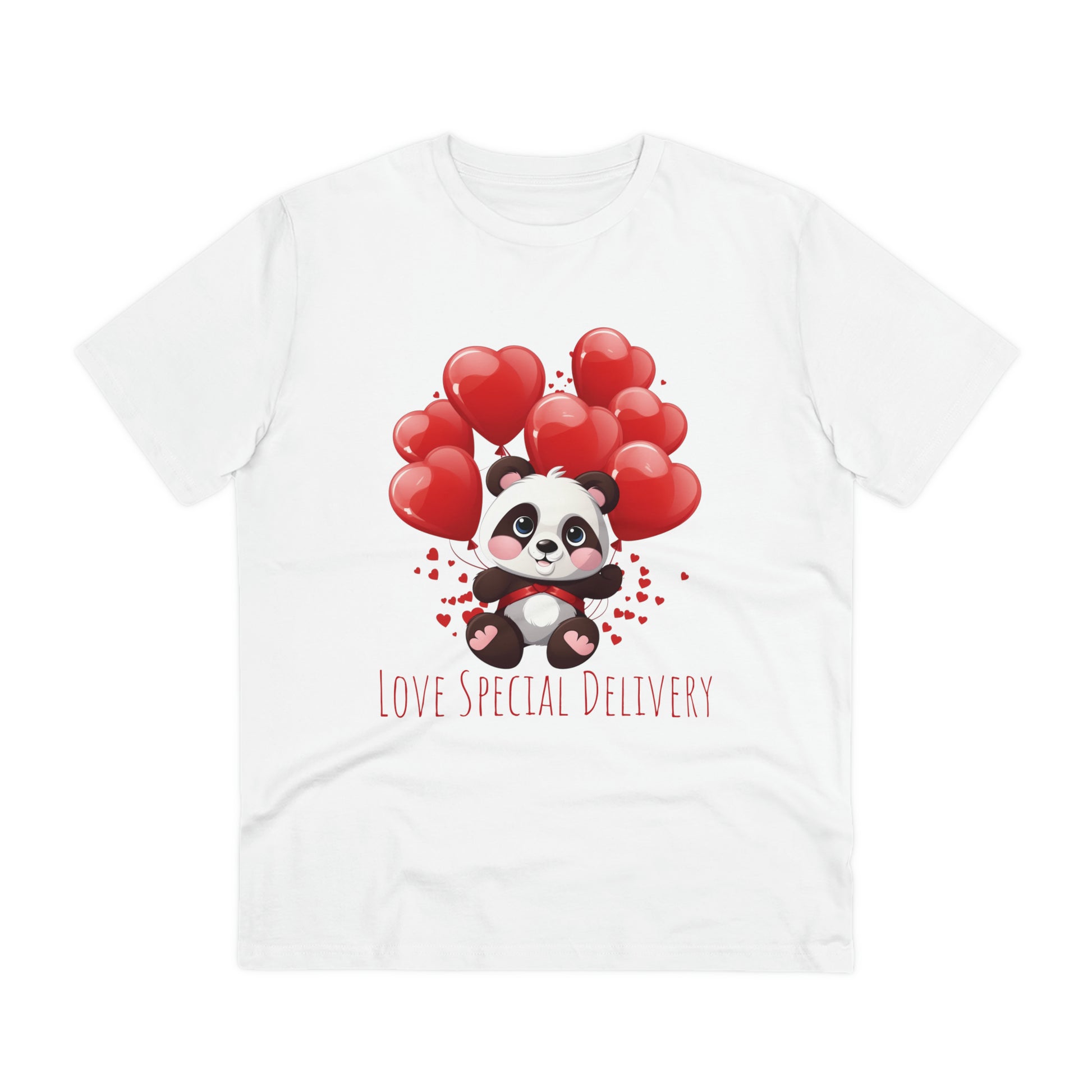 Panda Love Delivery Tee - Eco-Friendly Heart Balloon Shirt - Valentine's Day Special