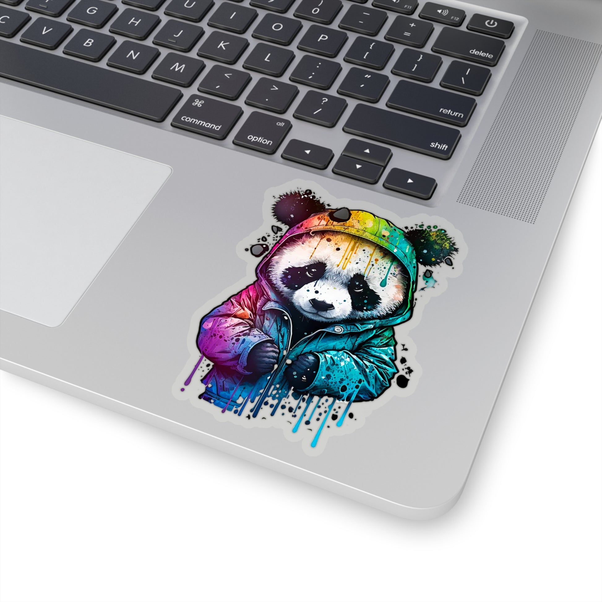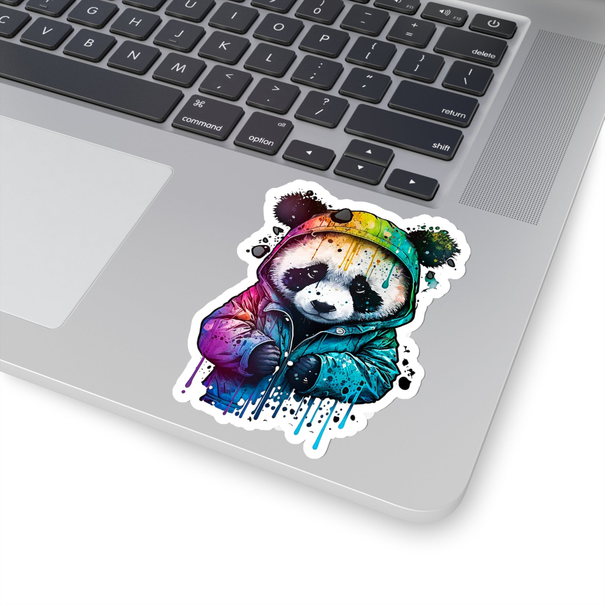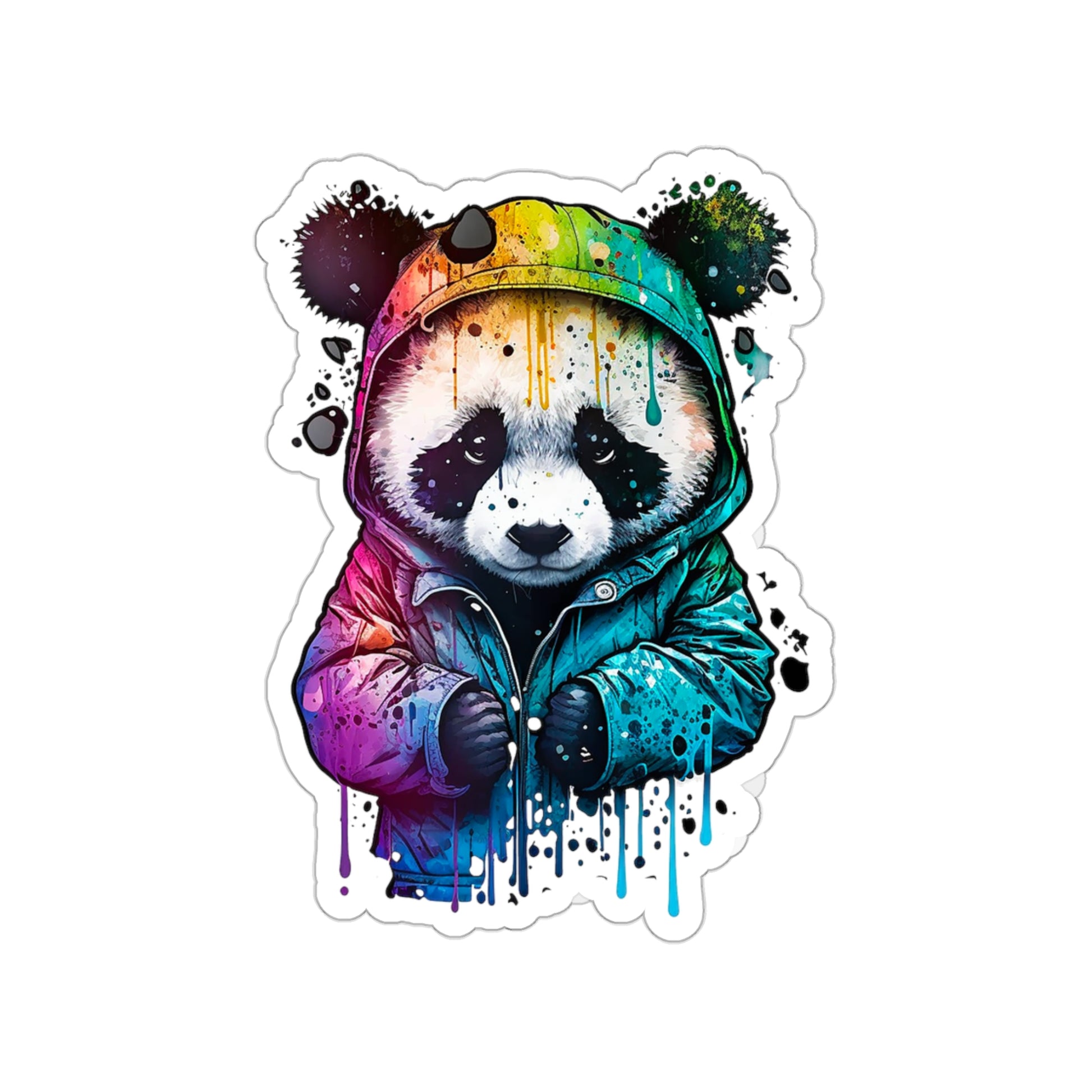 This sticker features a cute panda wearing its hoodie in a watercolor-style design. Pandas are beloved animals known for their fluffy appearance and playful demeanor. This sticker is perfect for anyone who loves pandas and wants to add some unique and colorful style to their Macbook, smartphone, or any other smooth surface.