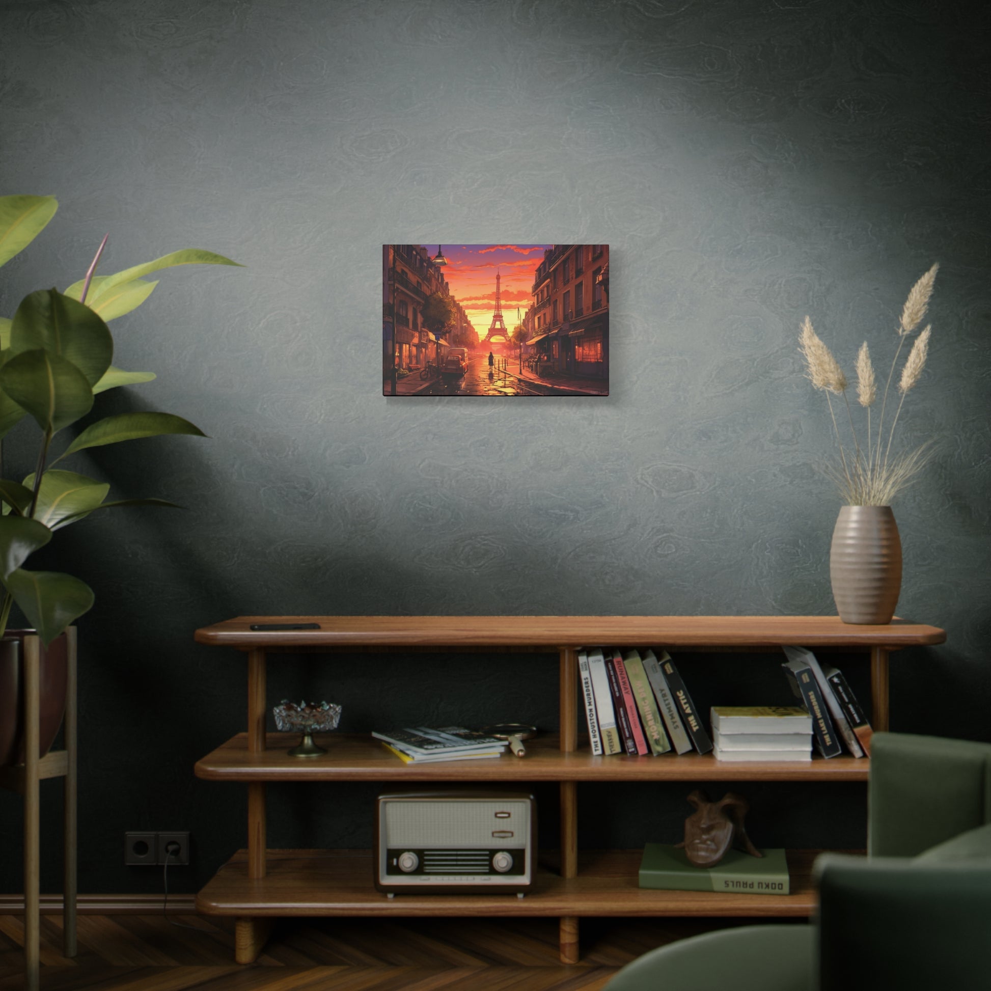 Keywords: Paris sunset canvas, streets of Paris, Eiffel Tower, artistic painting, home decor, romantic ambiance.