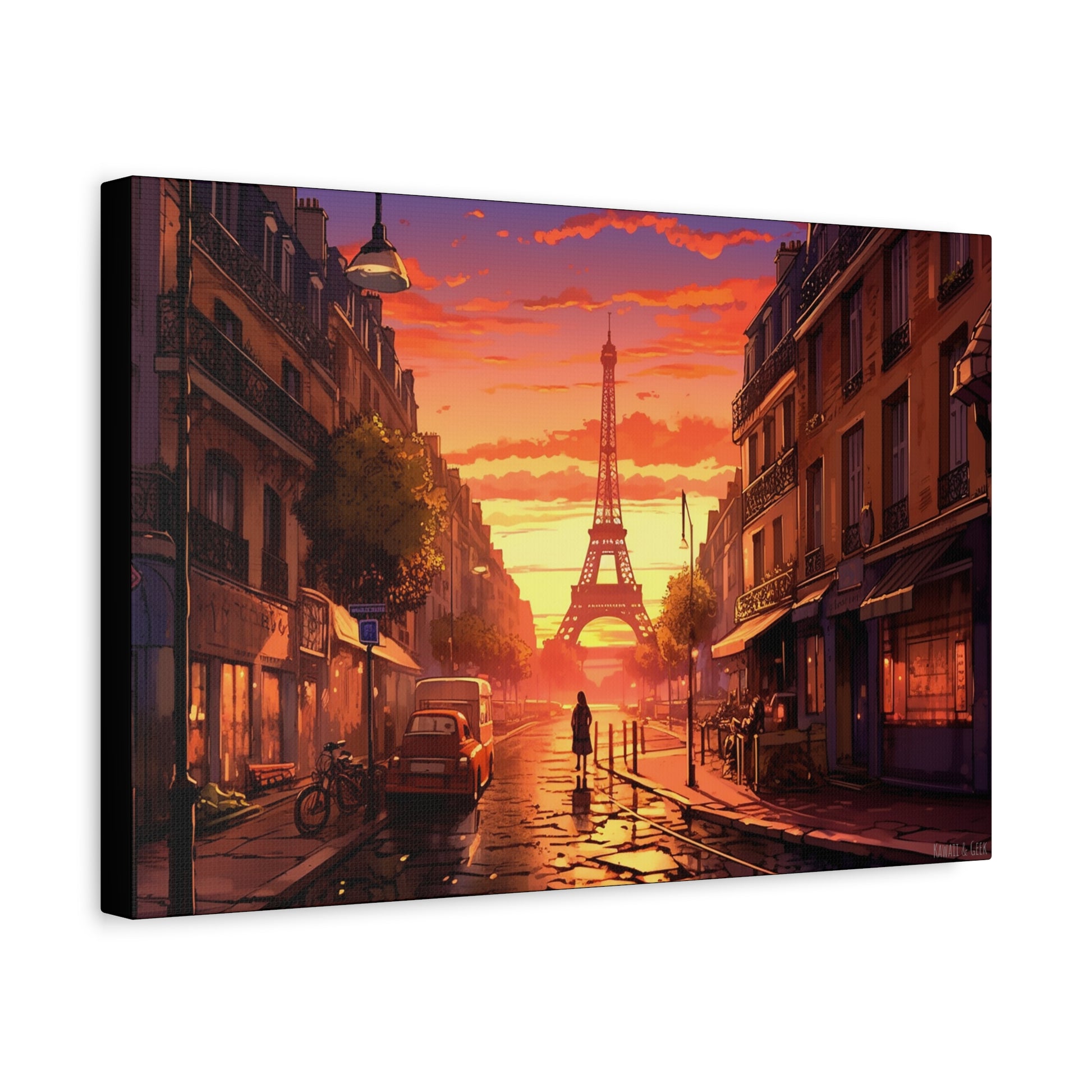Paris Sunset Canvas - Capture the Romantic Streets and Eiffel Tower in Artistic Splendor