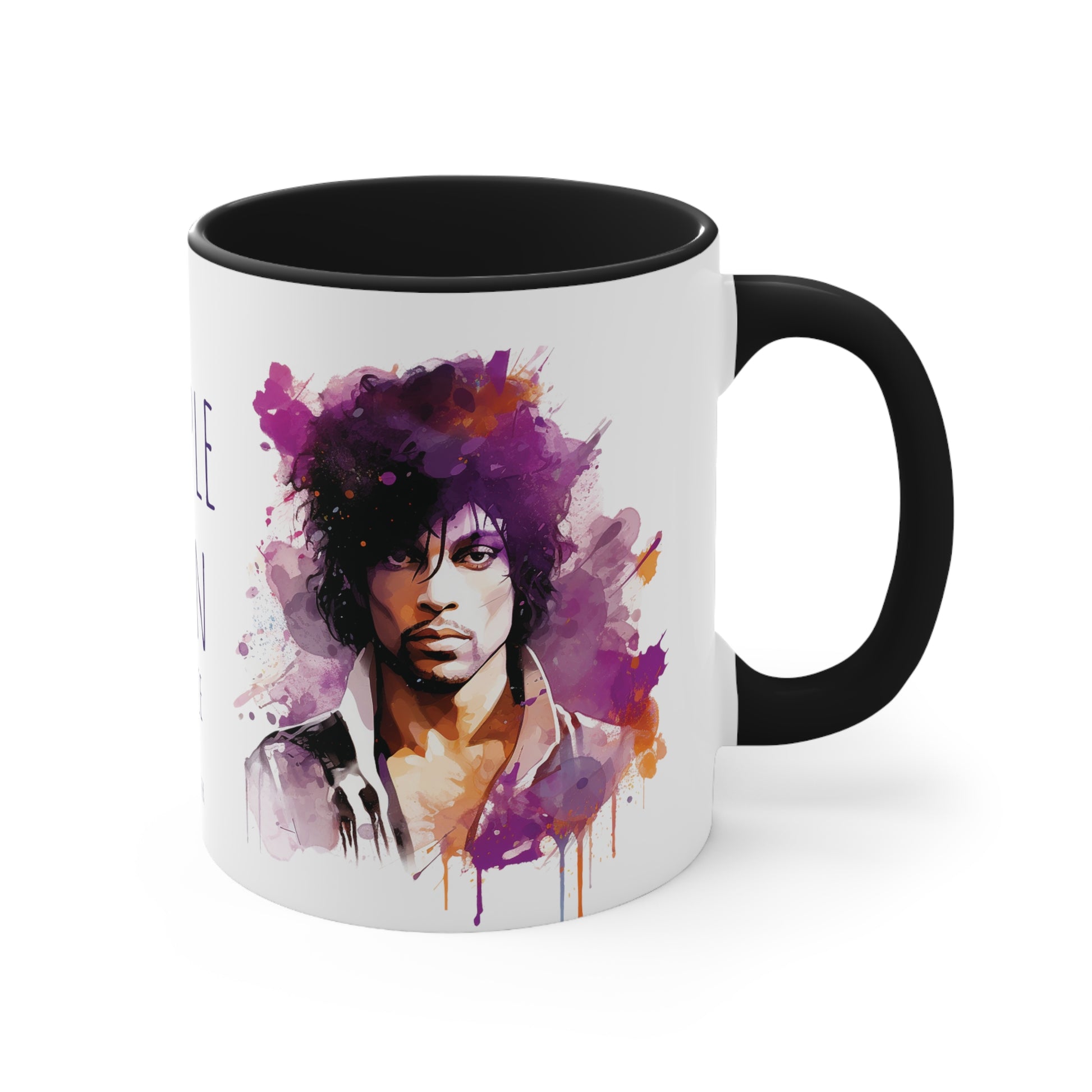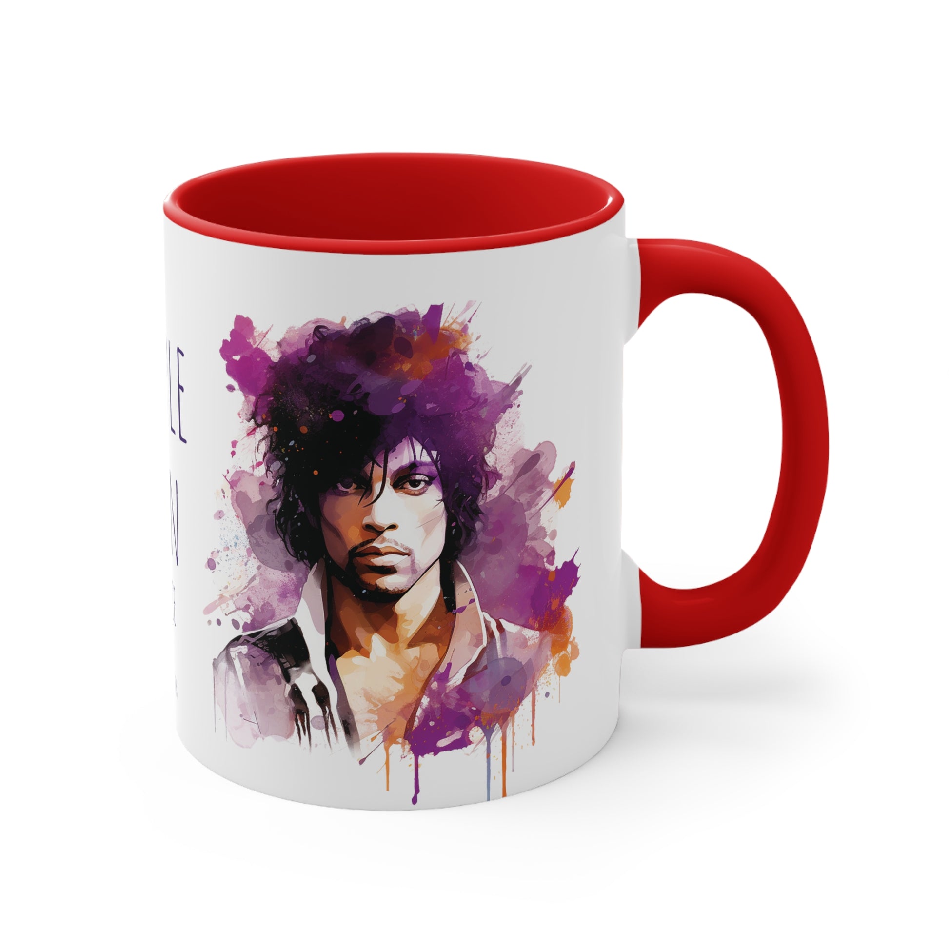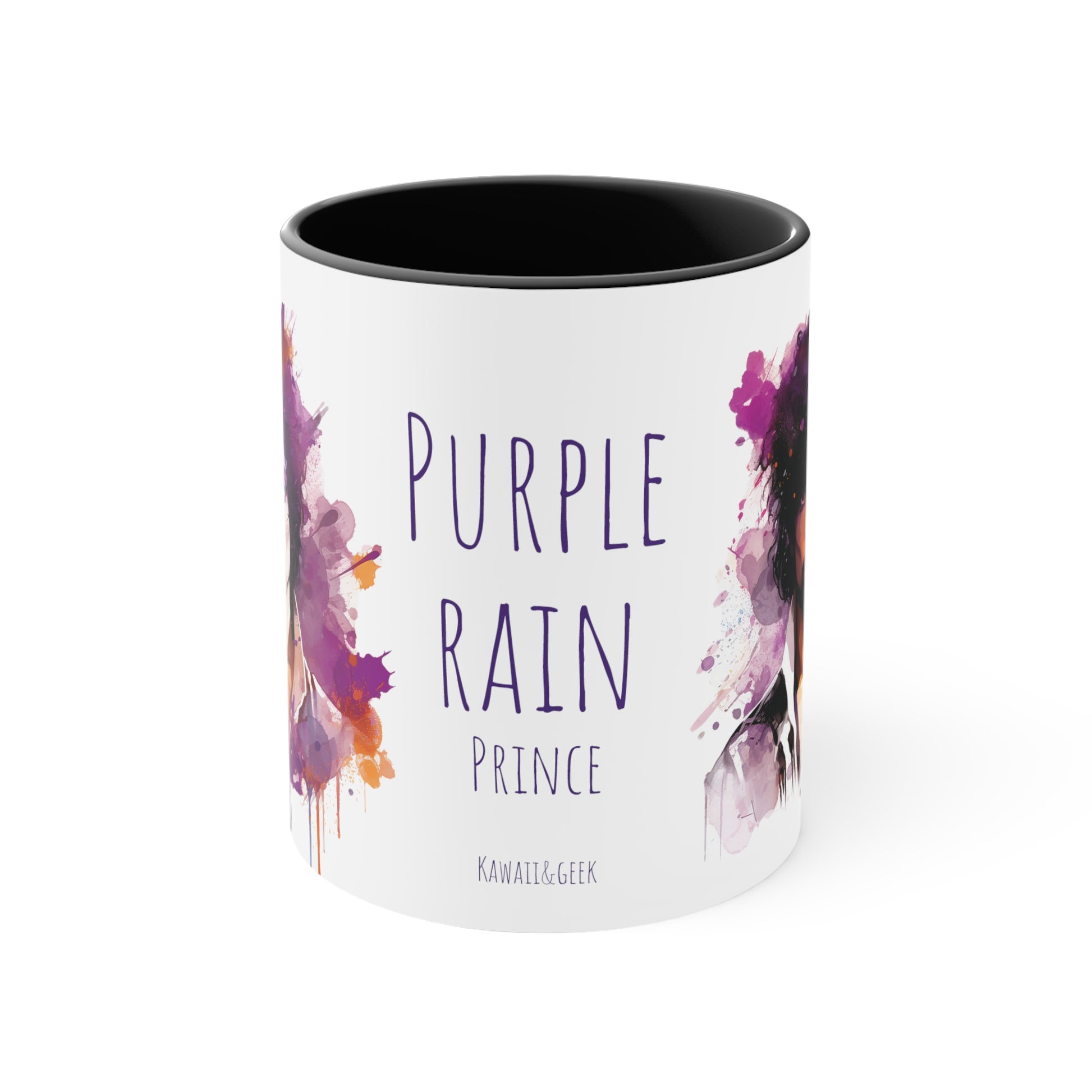 Keywords: Prince mug, Purple Rain, Watercolor style, Bicolor design, Musical tribute, Legendary artist, Vibrant colors, Artistic masterpiece, Iconic words, Morning routine, Tea time, Musical genius, Drinkware collectible.
