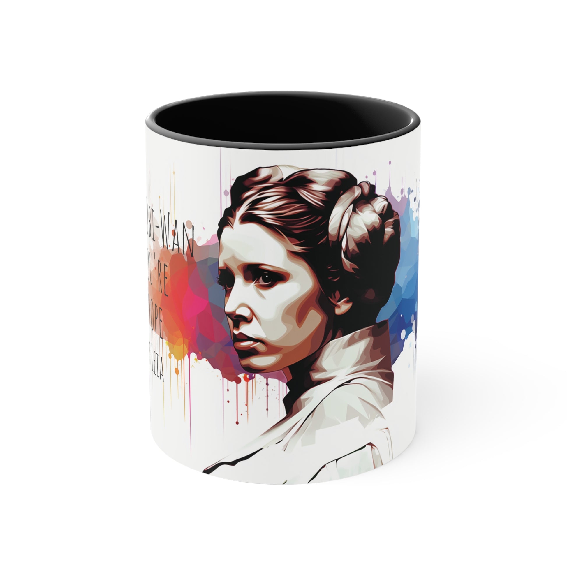 Princess Leia Geometric Bicolor Mug - A Beacon of Hope: Help Me, Obi-Wan Kenobi - Star Wars