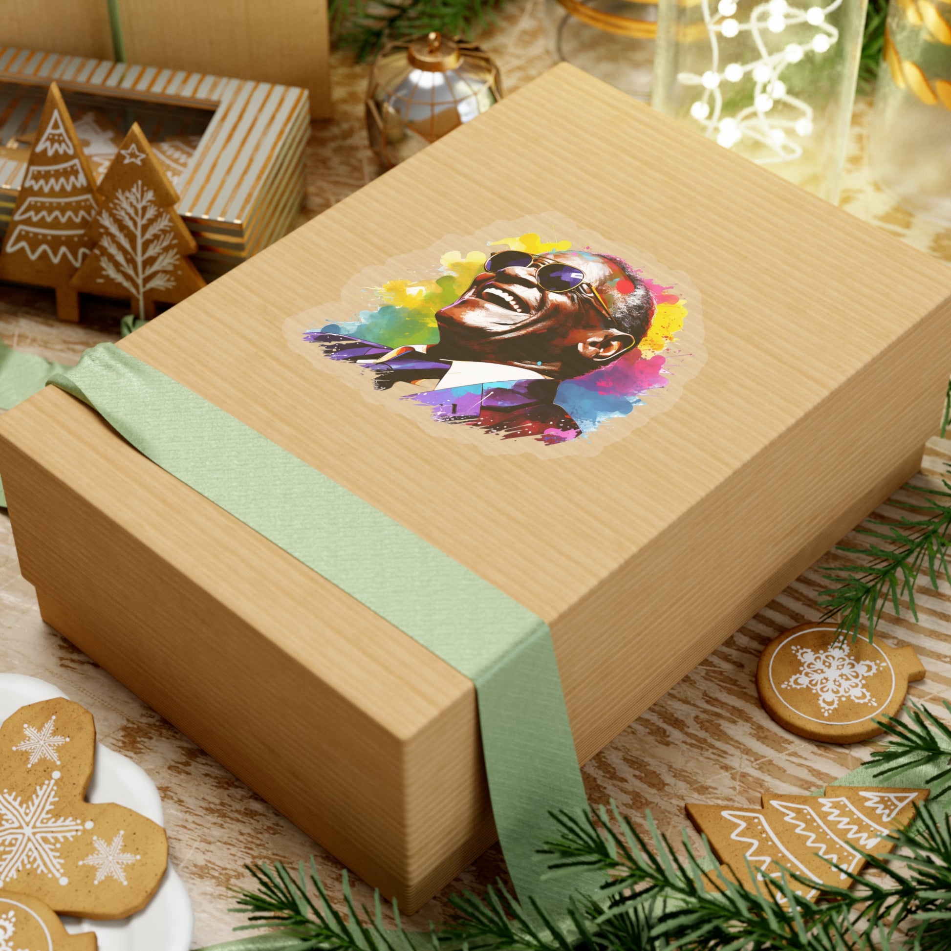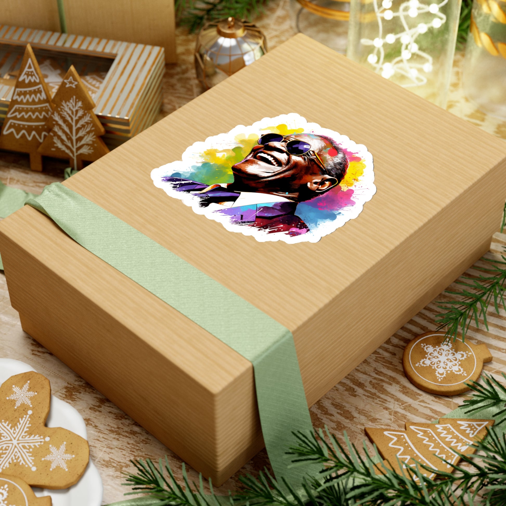 Keywords: Ray Charles Art, Watercolor Sticker, Jazz Icon, Soulful Decal, Music Legend, Pianist Tribute, Vibrant Design, Classic Artist, Timeless Music, Collector's Item, Unique Decor, Historical Figure, Artistic Illustration.