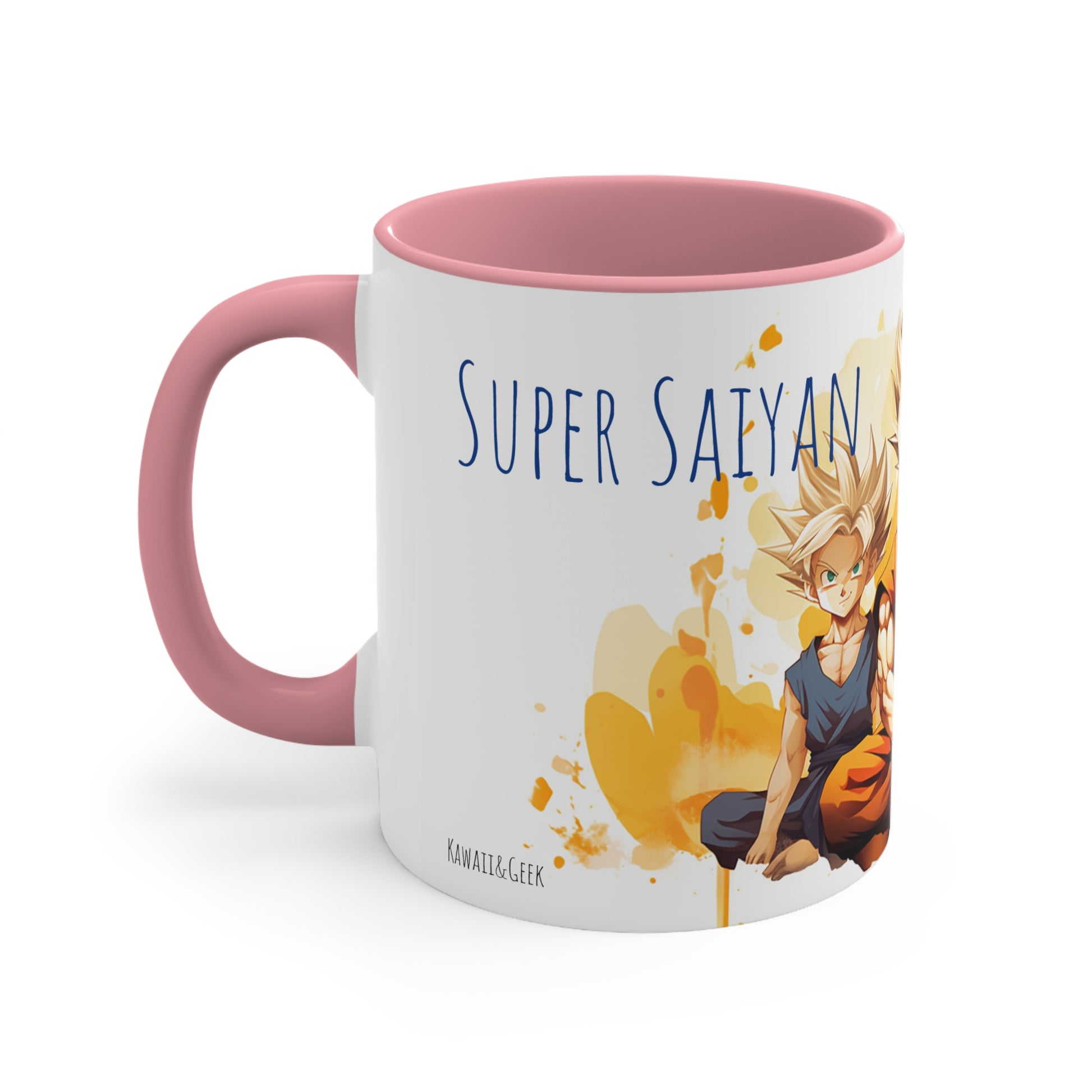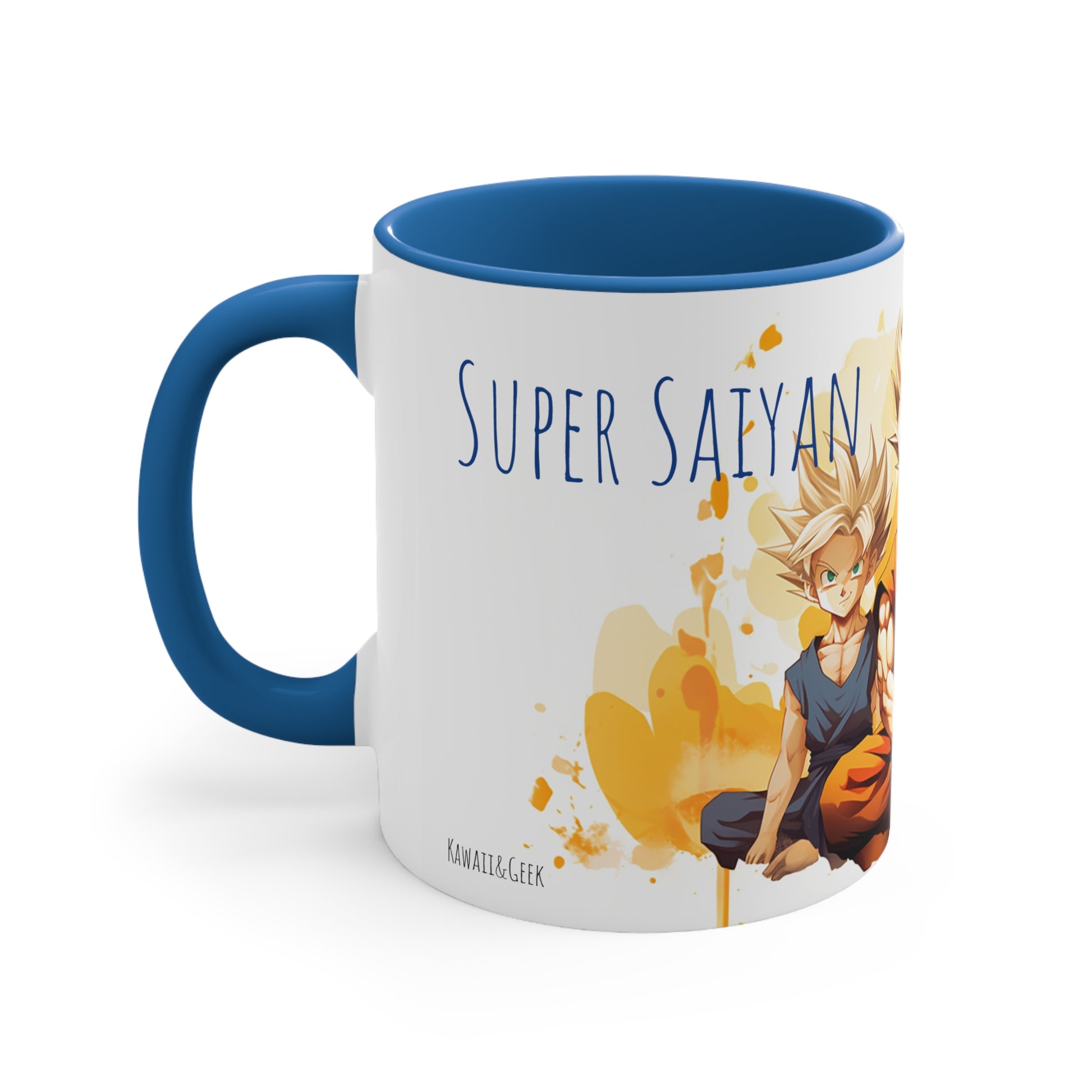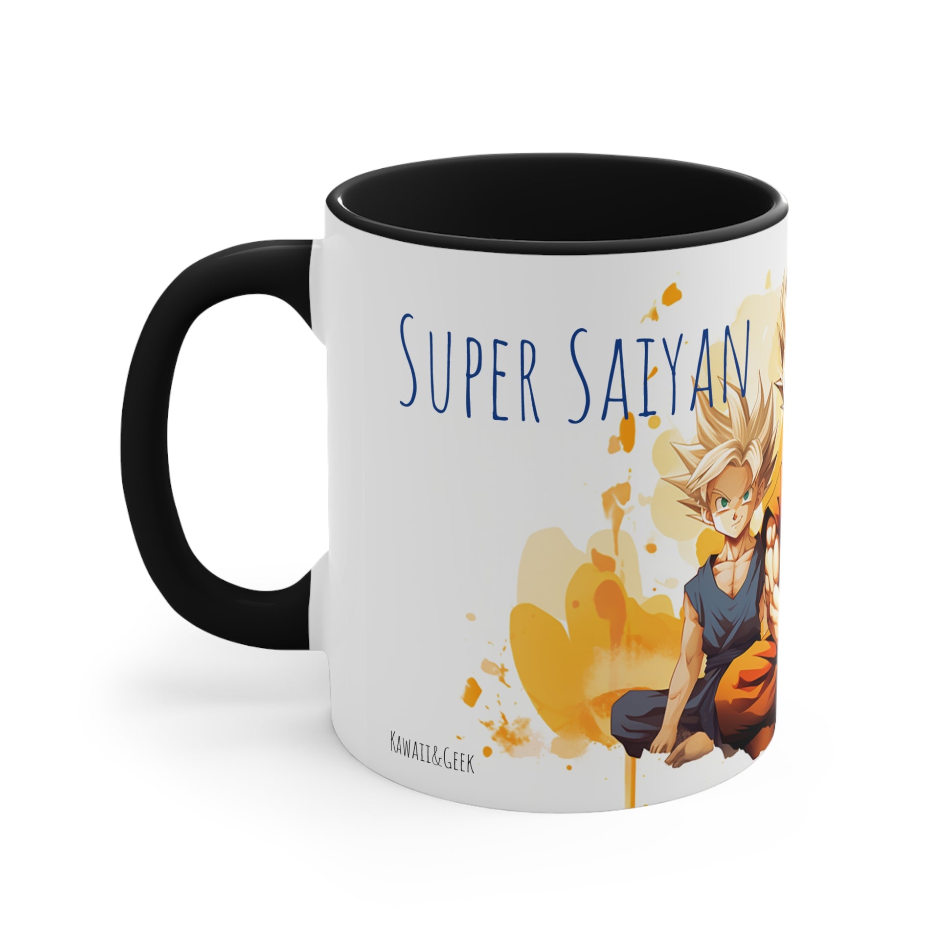 This 11 oz bicolor mug features an iconic illustration of San Goku, the legendary Super Saiyan, alongside his sons San Goten and San Gohan. With the phrase "Super Saiyan dad," it celebrates the powerful and heartwarming bond between a father and his sons. The vibrant design captures the spirit of the Dragon Ball series, making it a must-have for fans. Start your day with a cup of power and love, honoring the legendary Saiyan family.