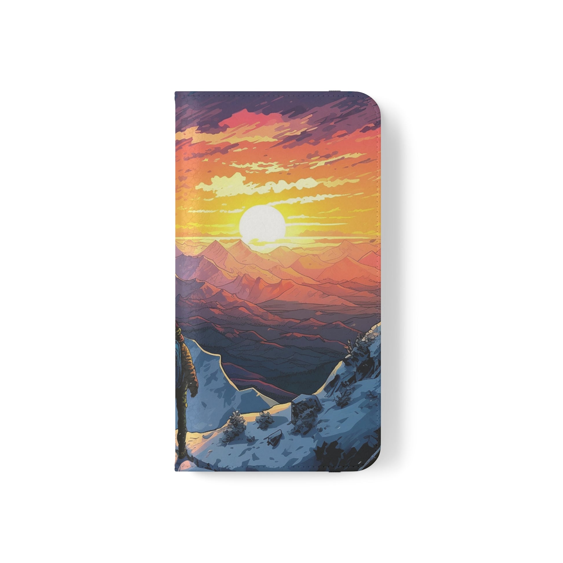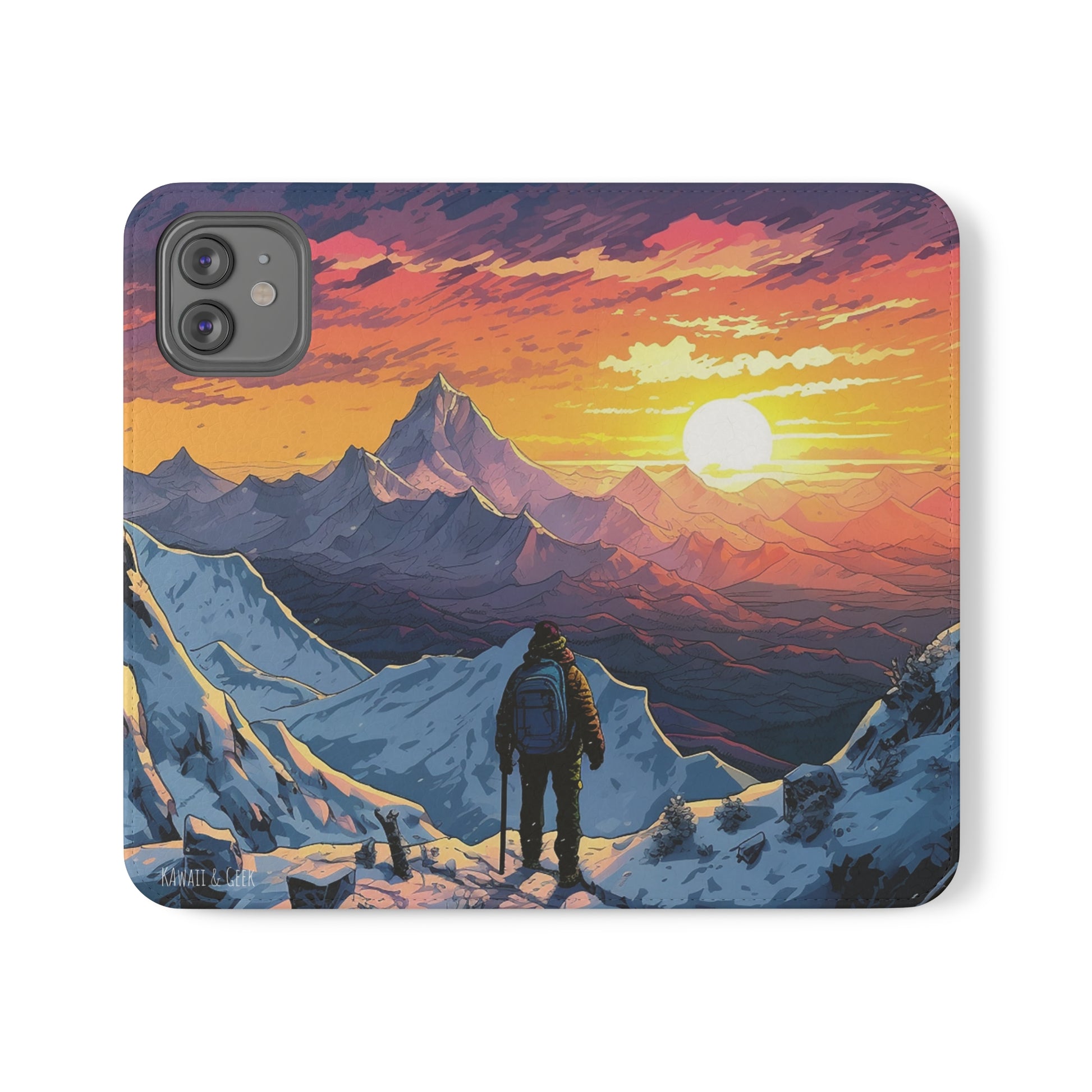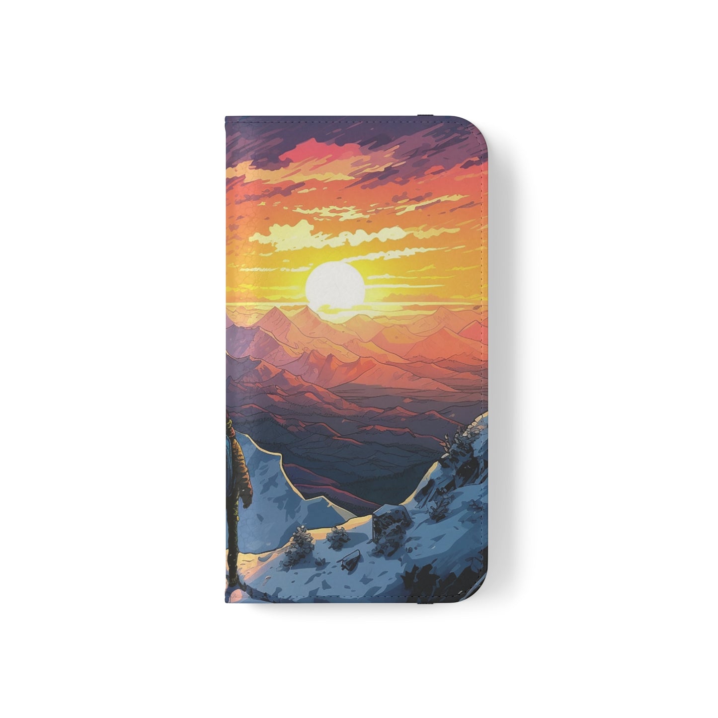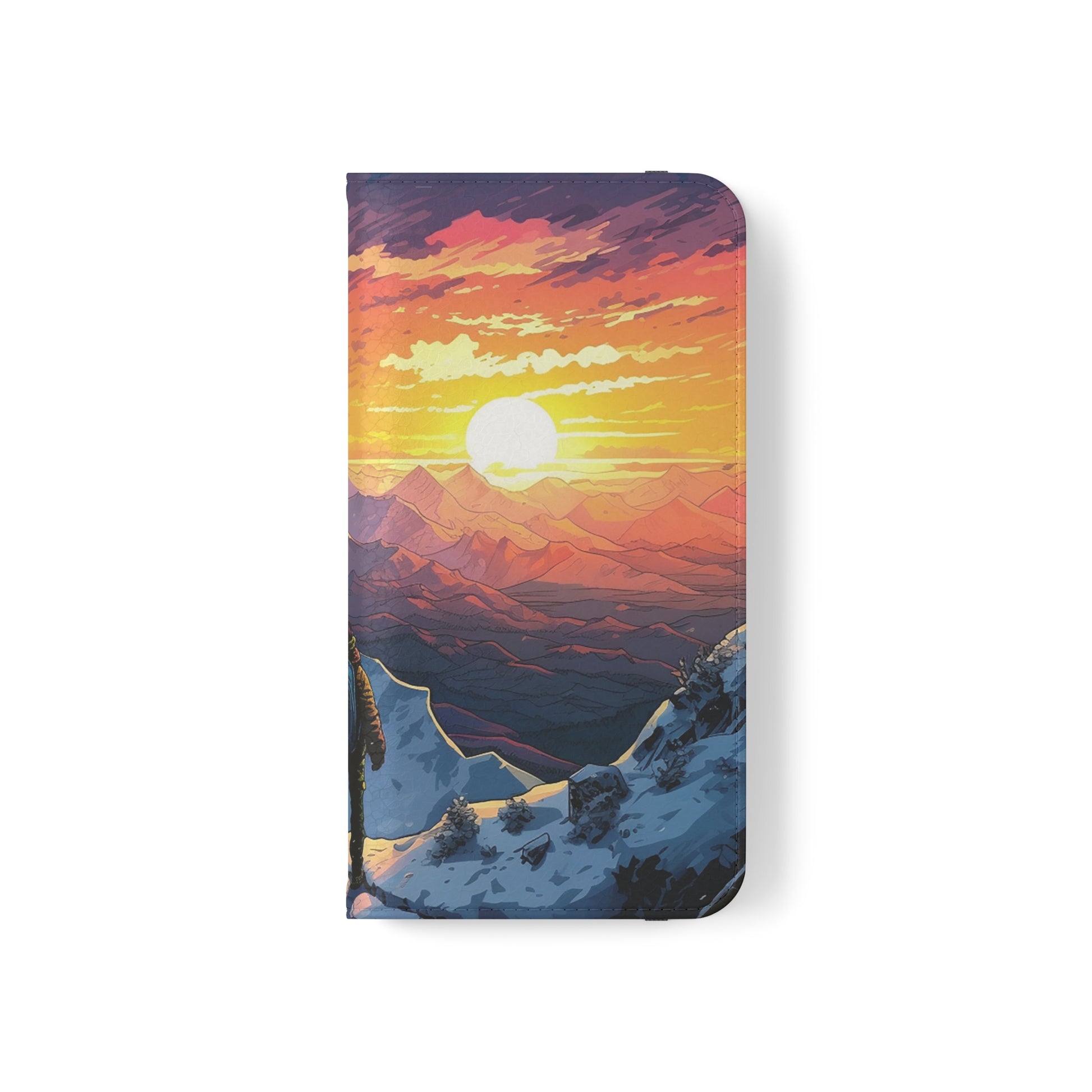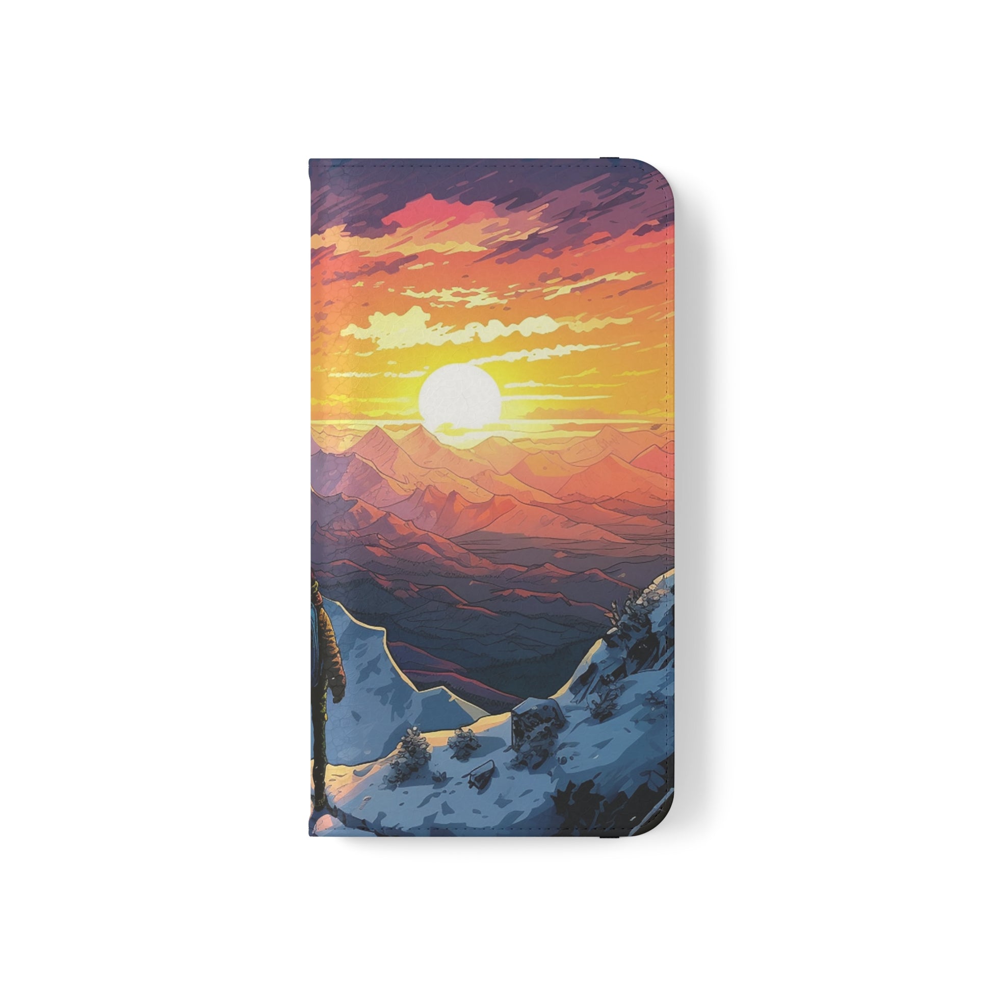 Keywords: Snowy mountain landscape phone case, sunset phone case, alpinist design, nature-inspired phone case, high-quality print, durable materials.