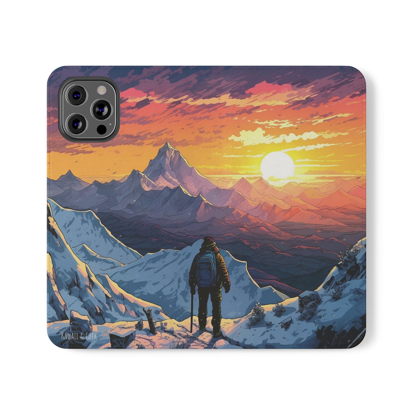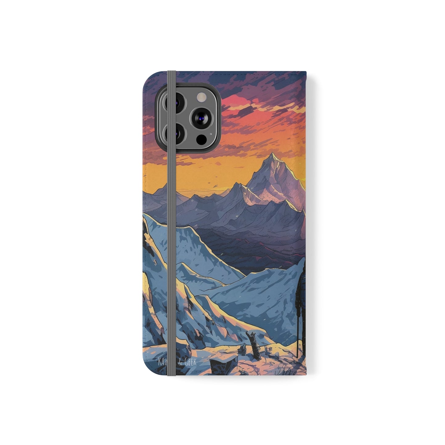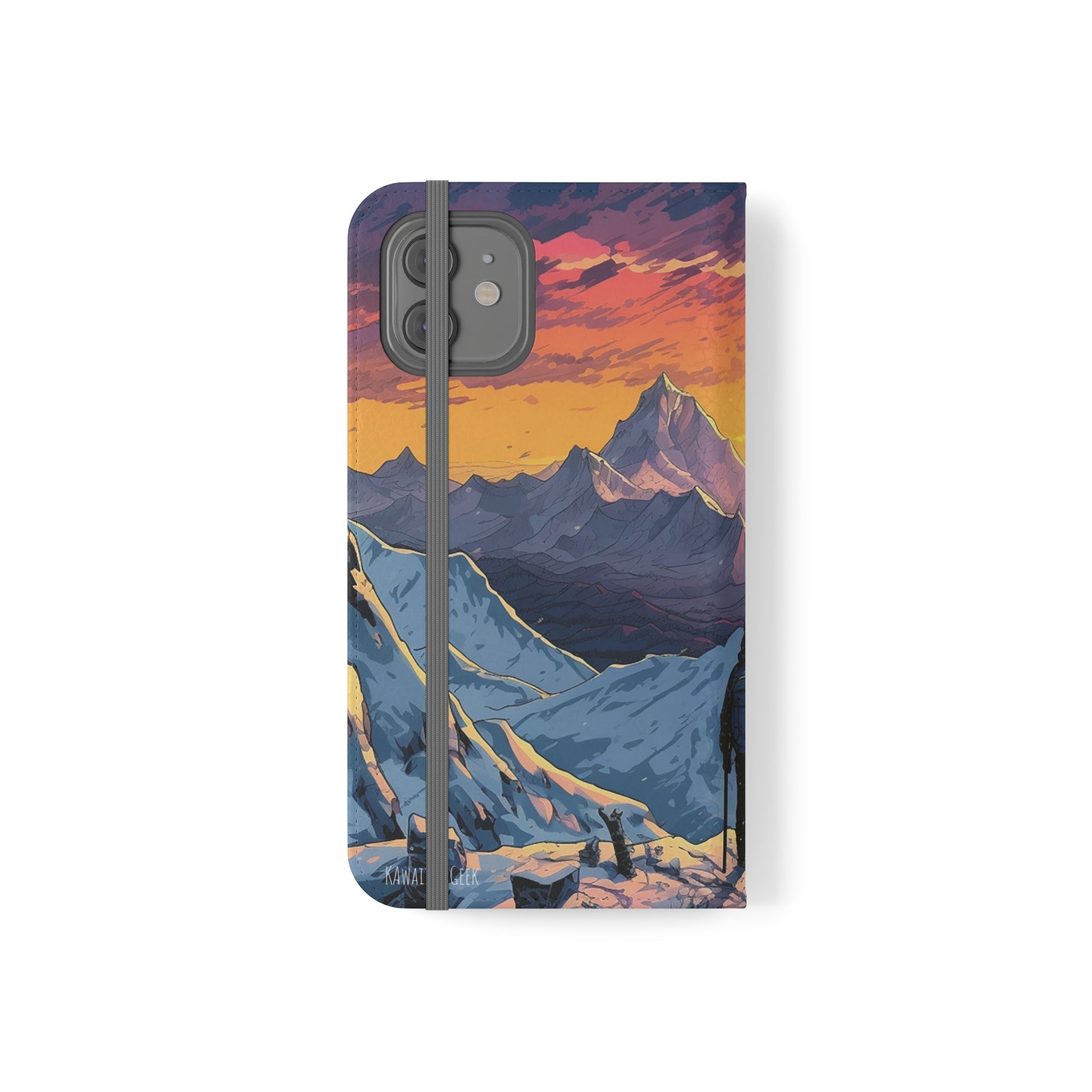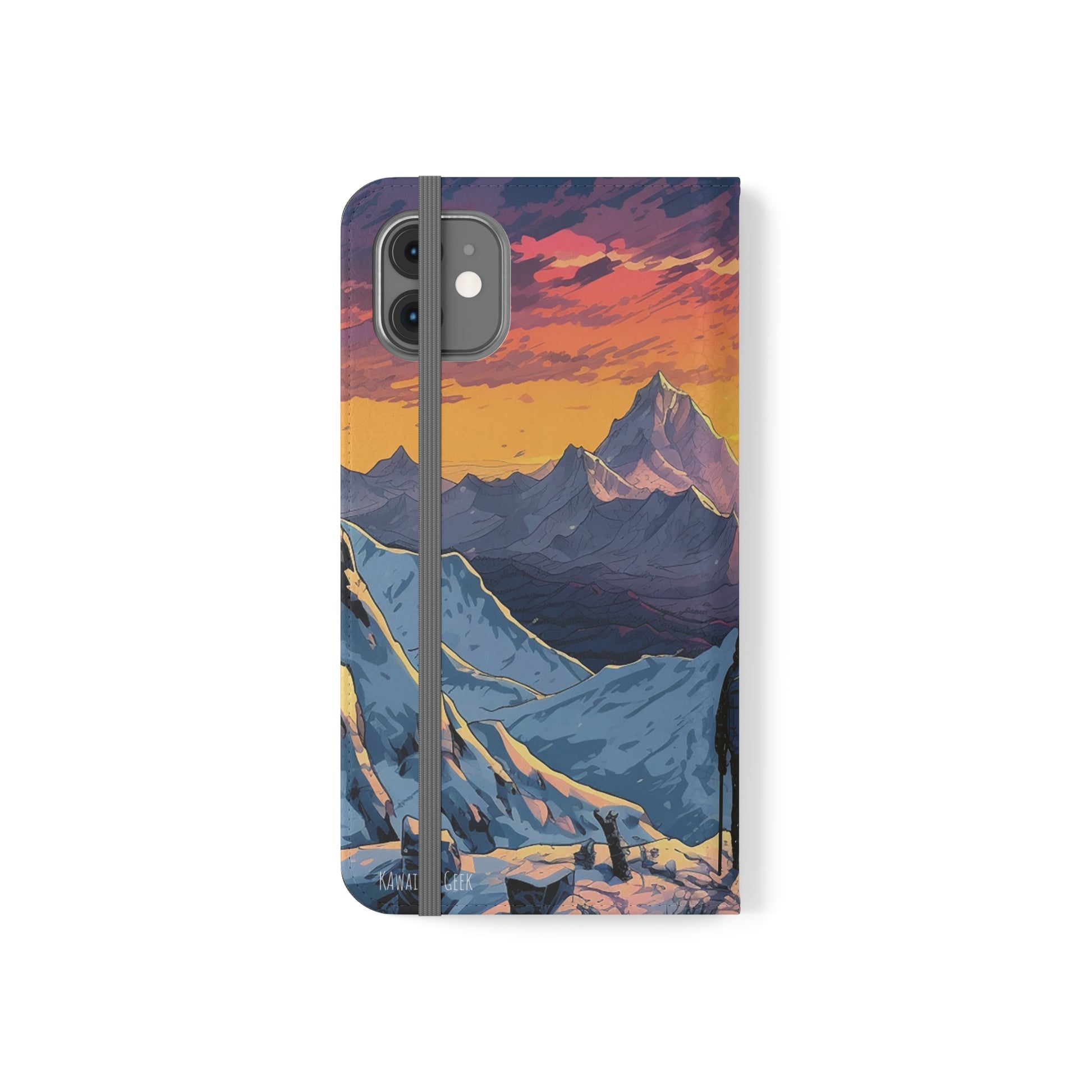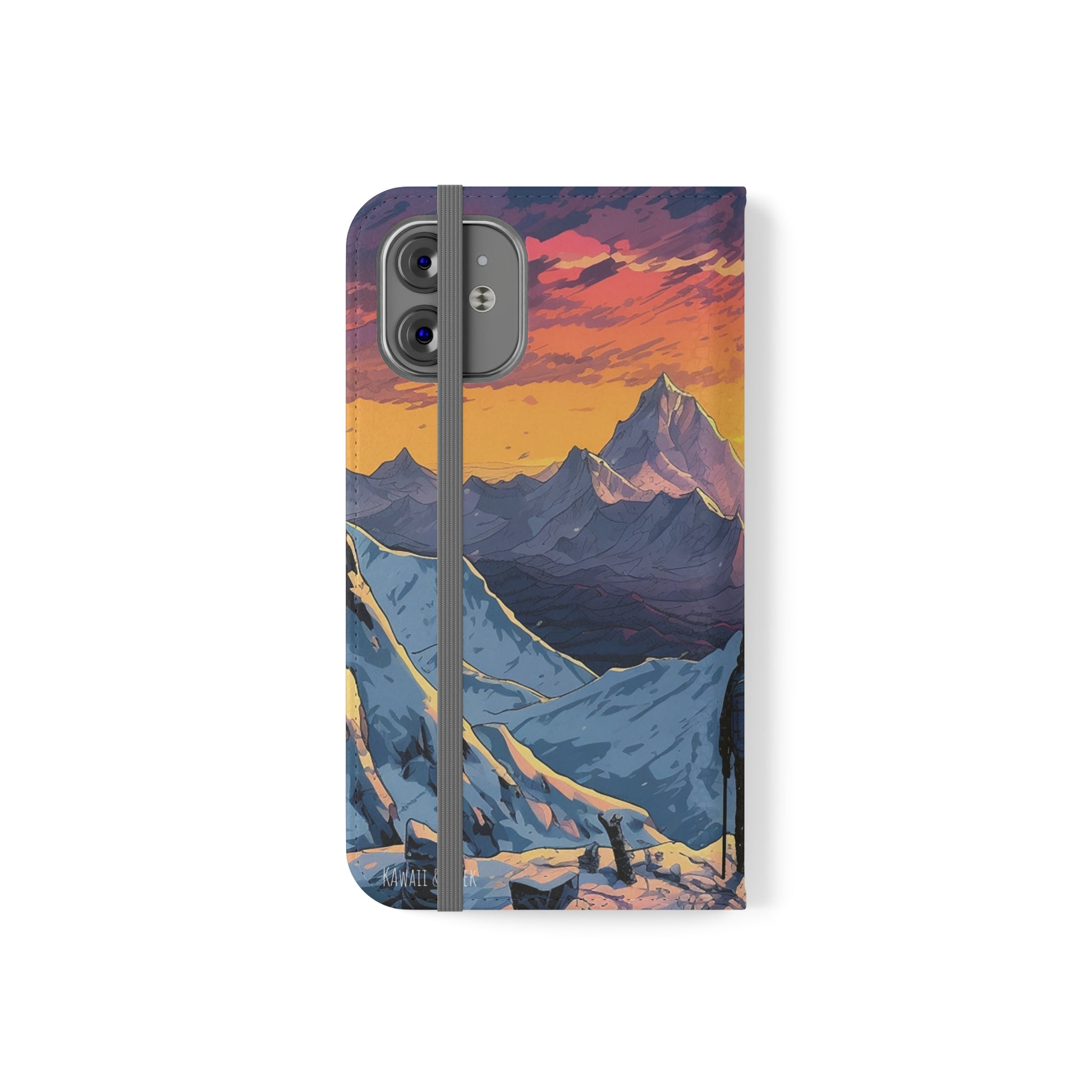 Keywords: Snowy mountain landscape phone case, sunset phone case, alpinist design, nature-inspired phone case, high-quality print, durable materials.