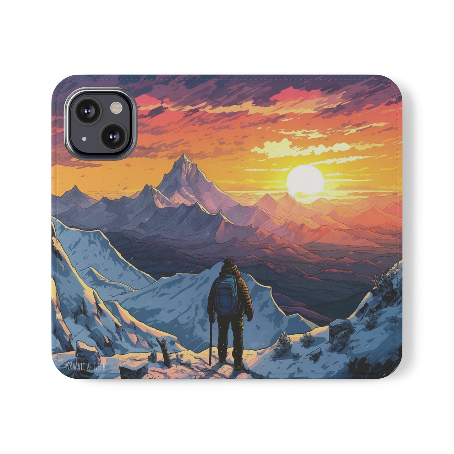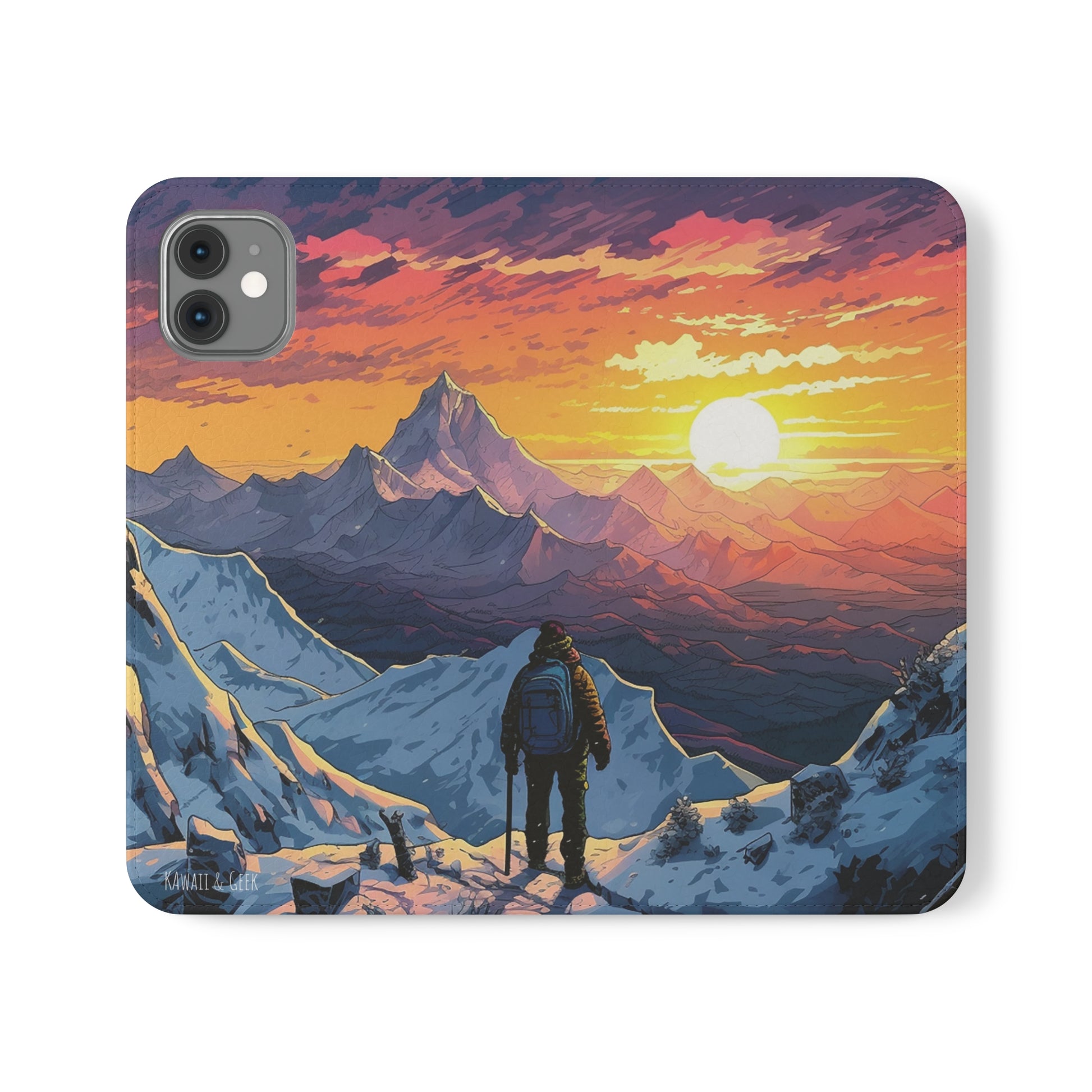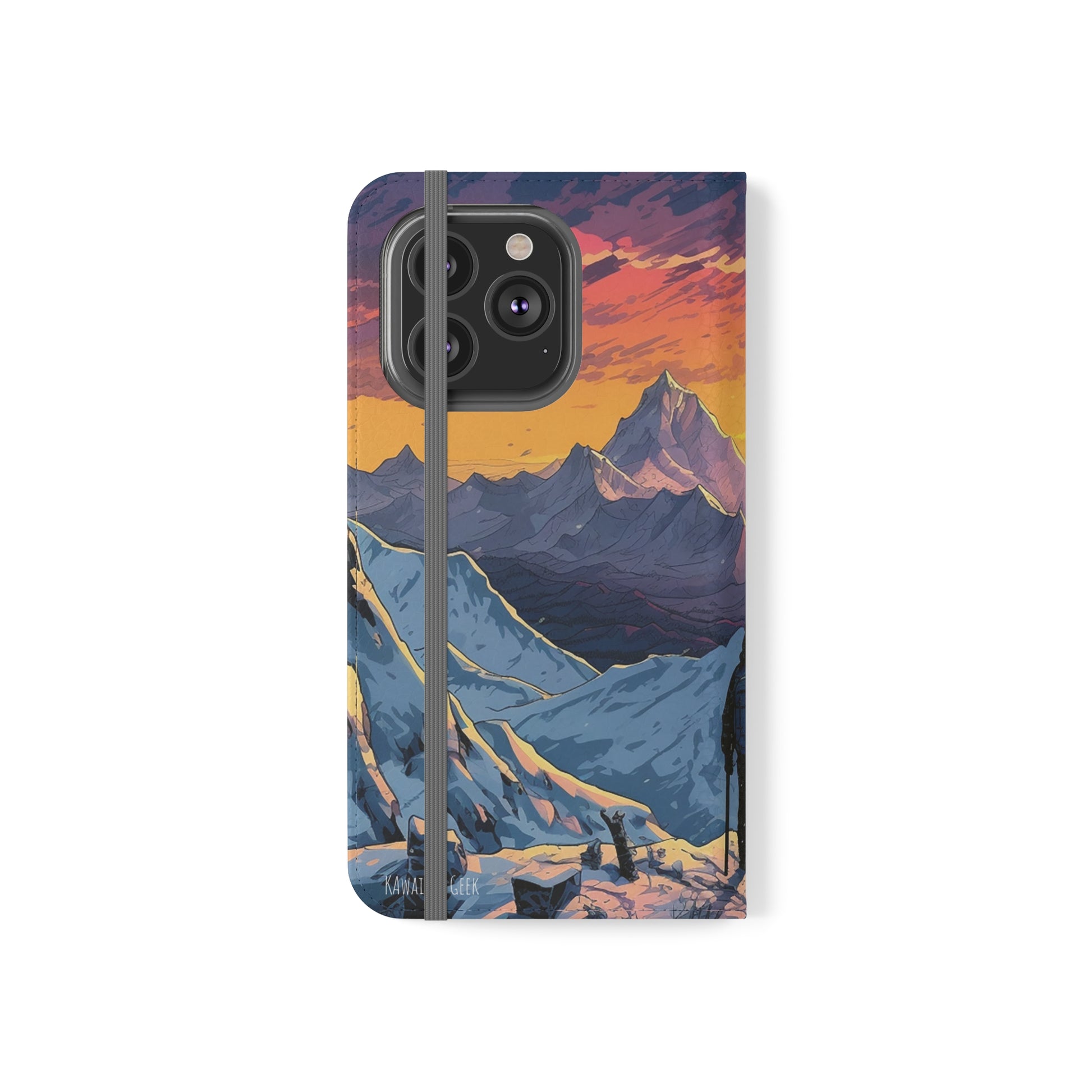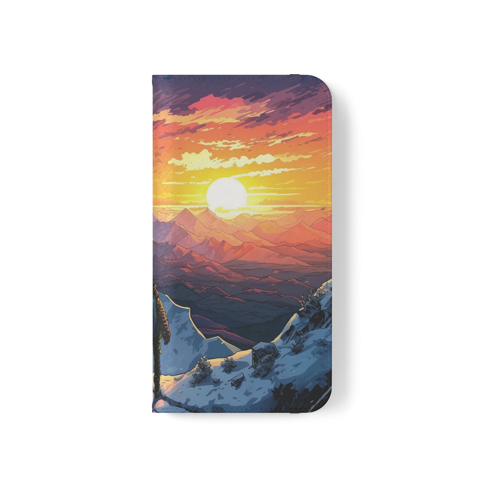 Keywords: Snowy mountain landscape phone case, sunset phone case, alpinist design, nature-inspired phone case, high-quality print, durable materials.