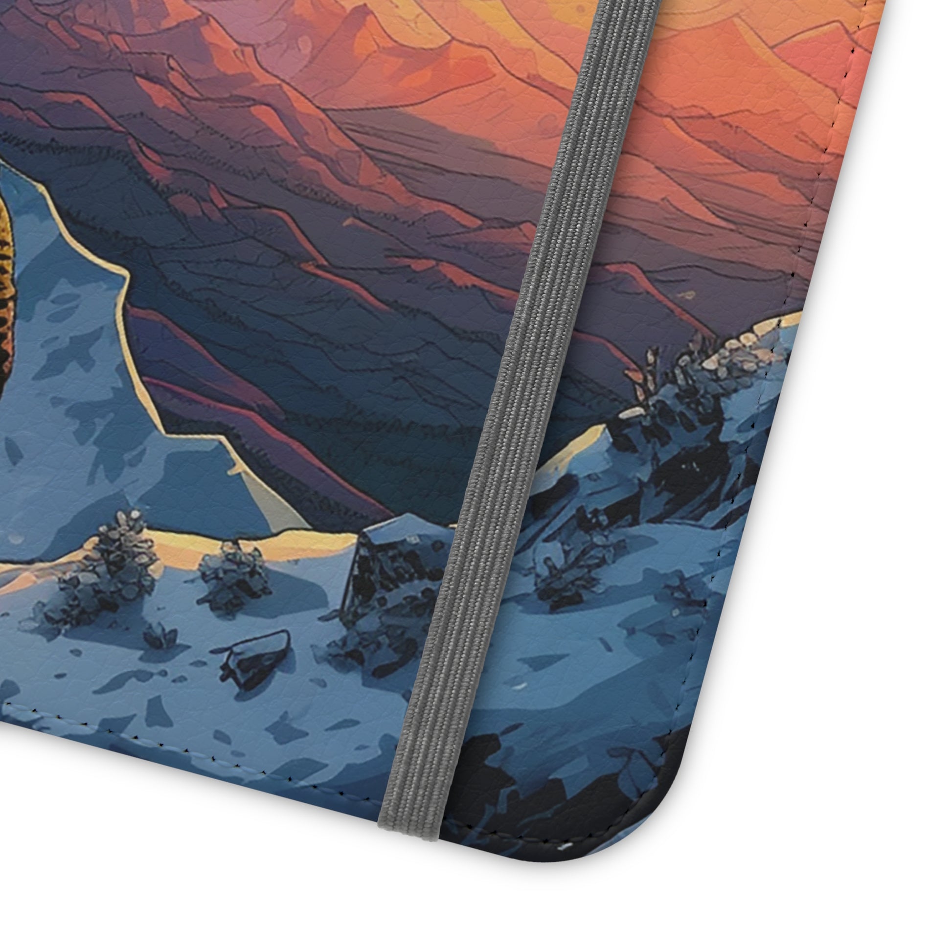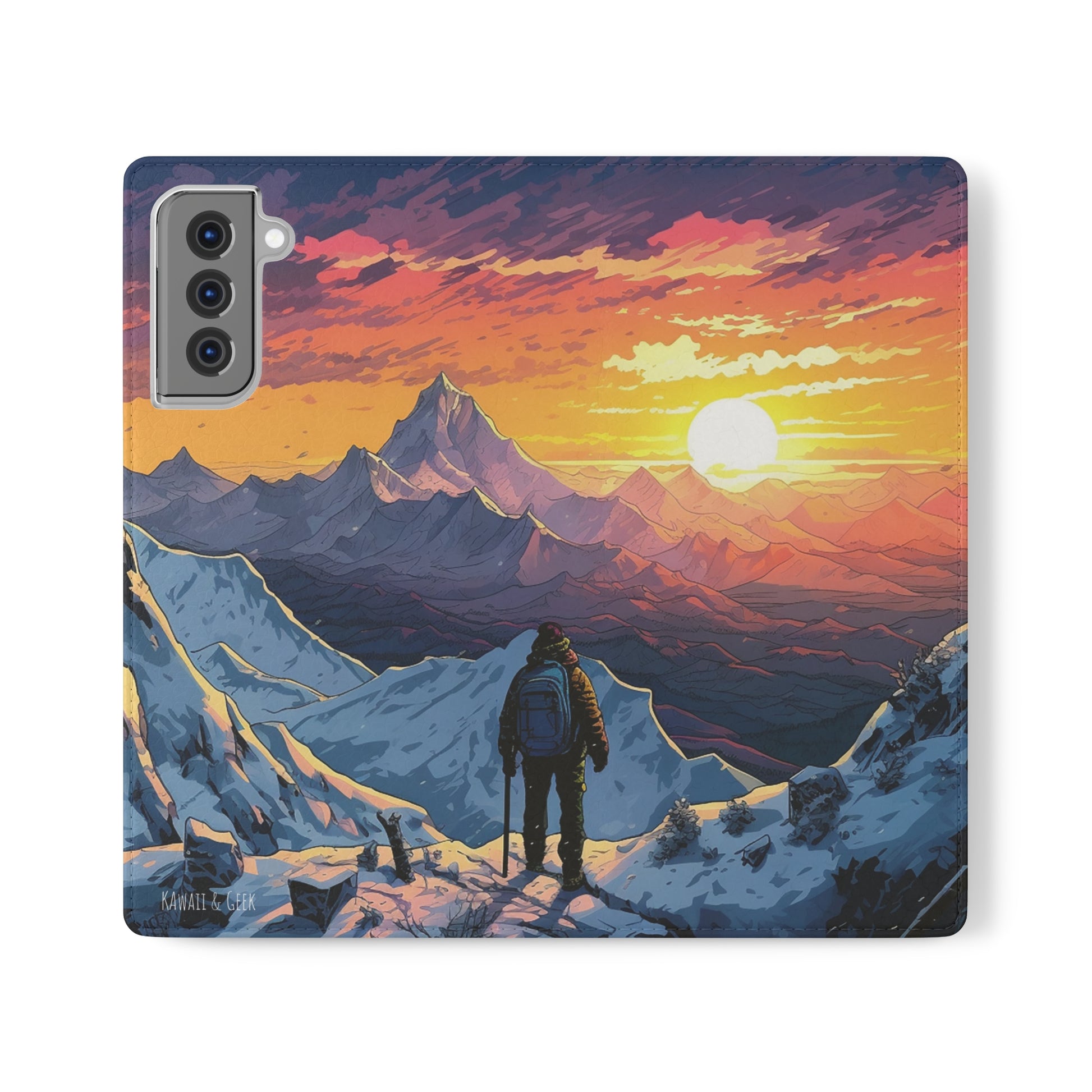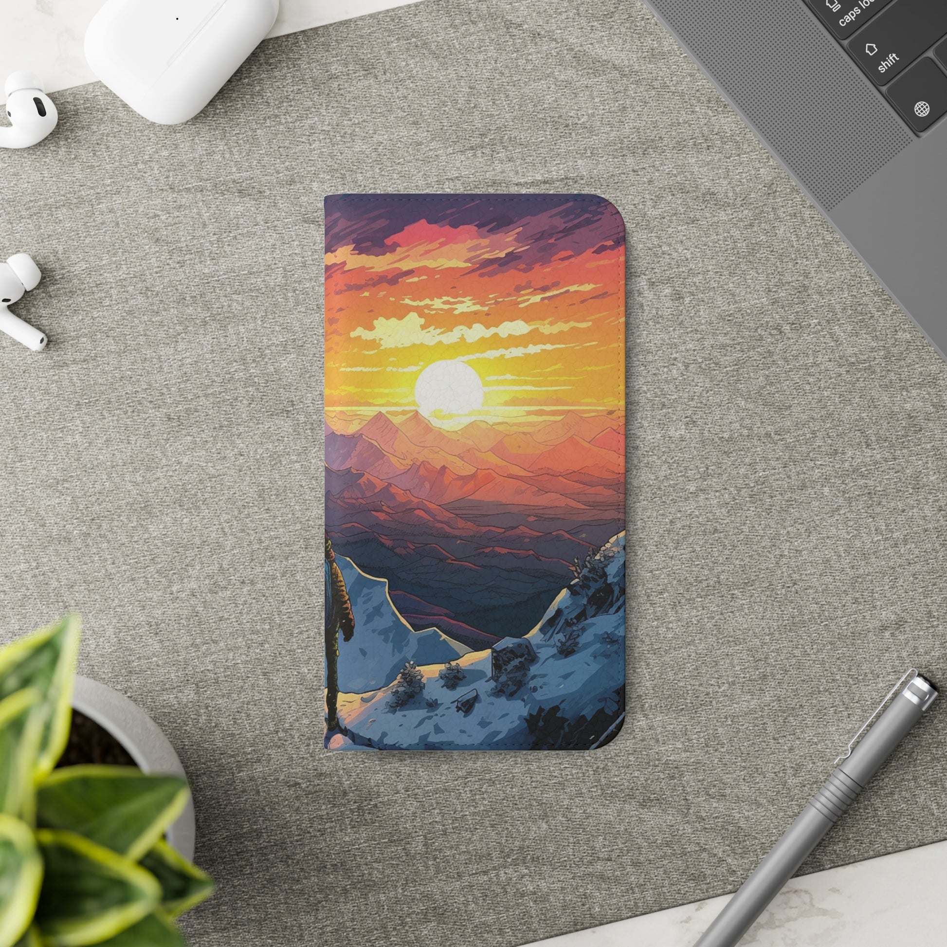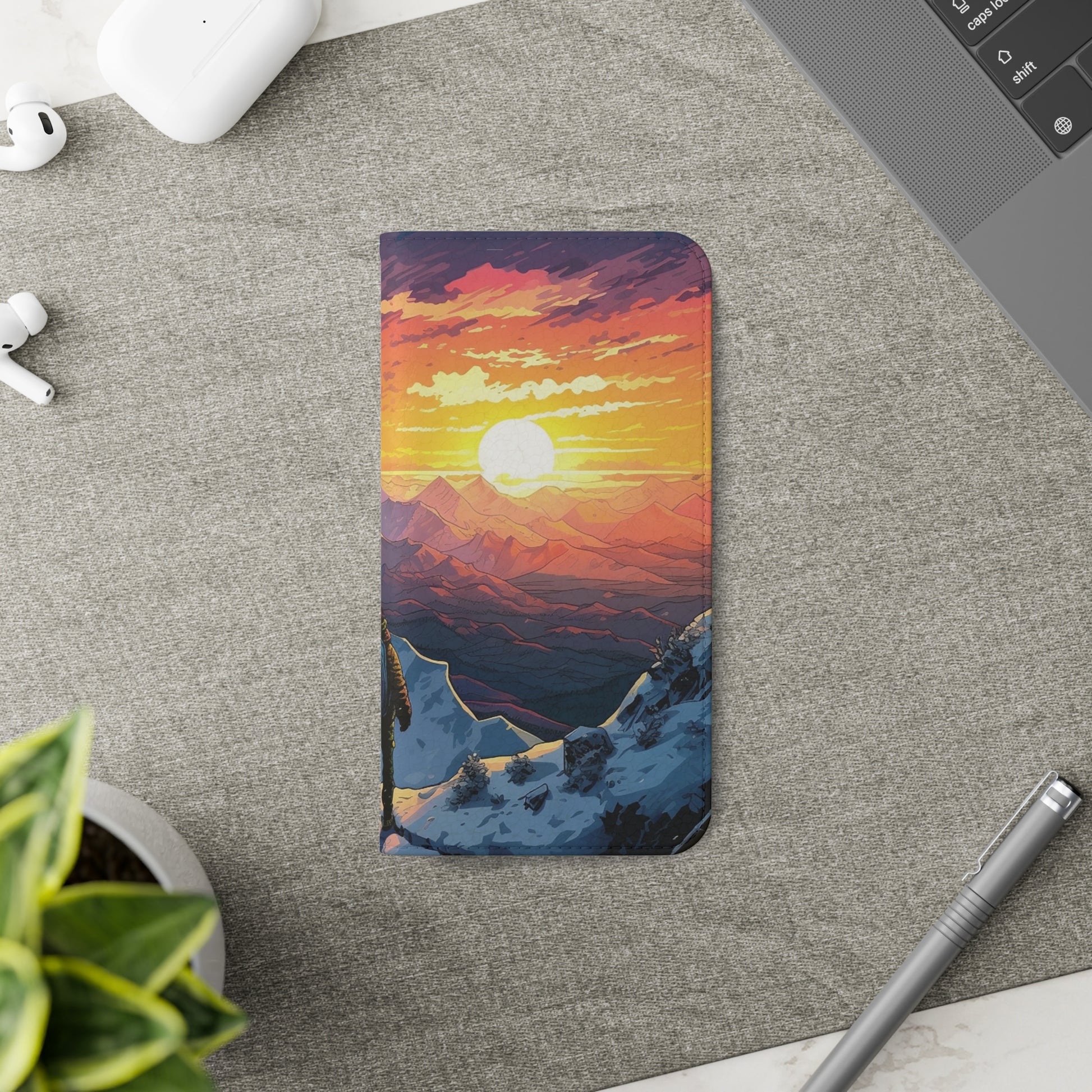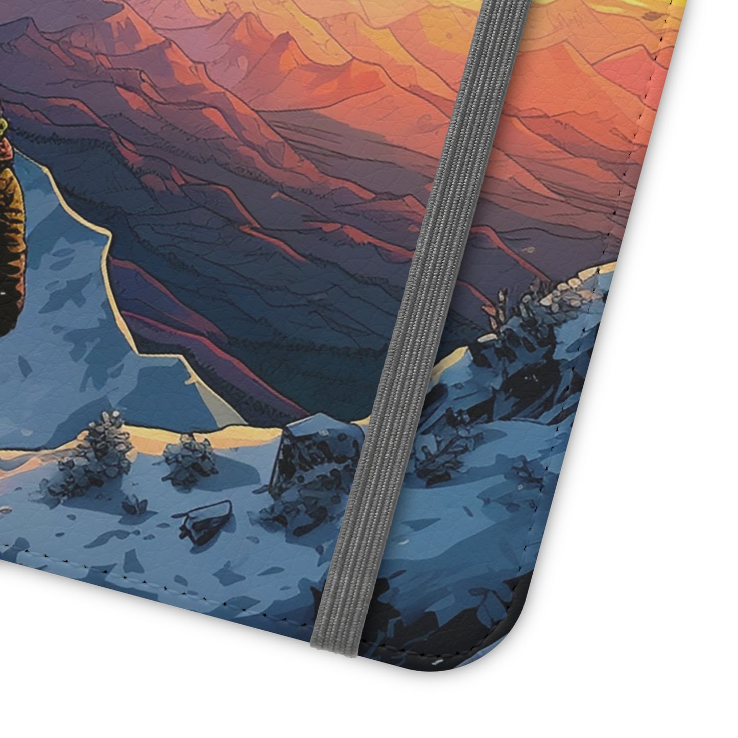 Keywords: Snowy mountain landscape phone case, sunset phone case, alpinist design, nature-inspired phone case, high-quality print, durable materials.