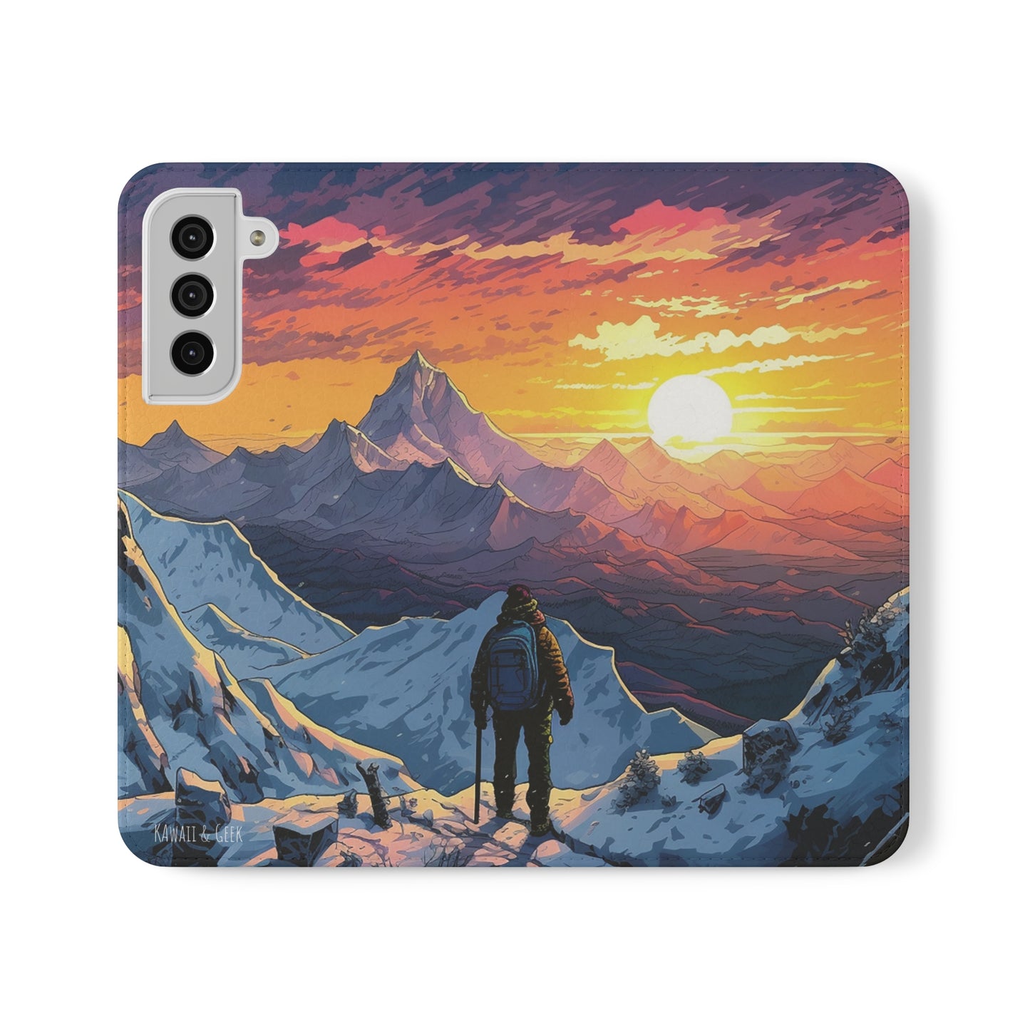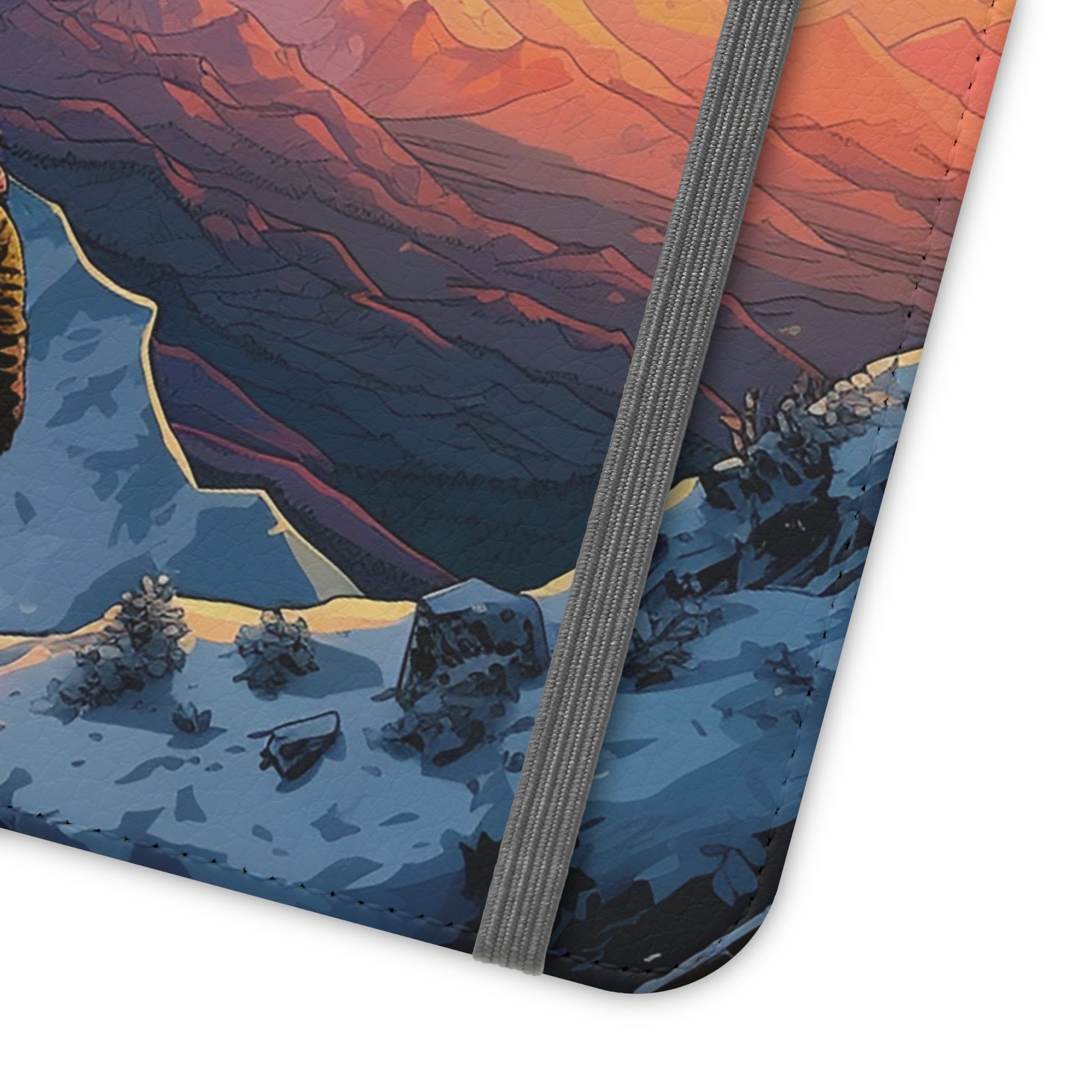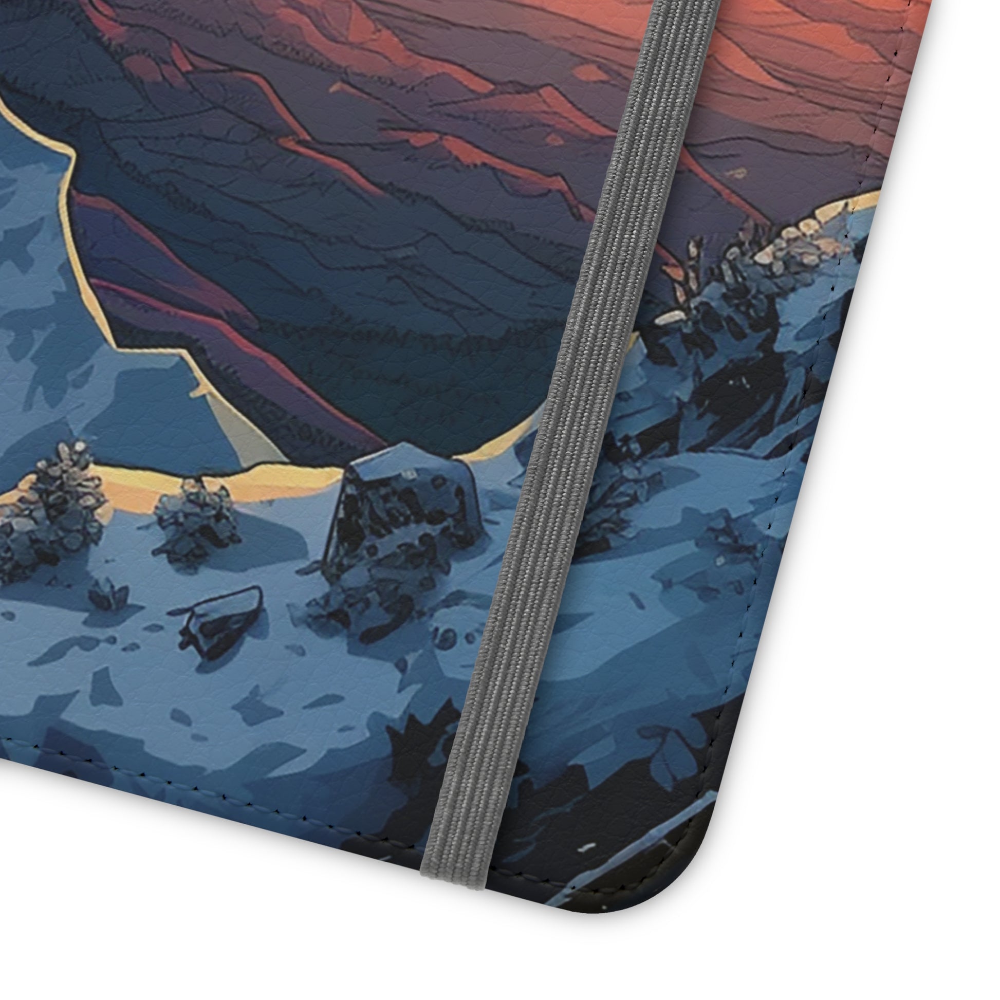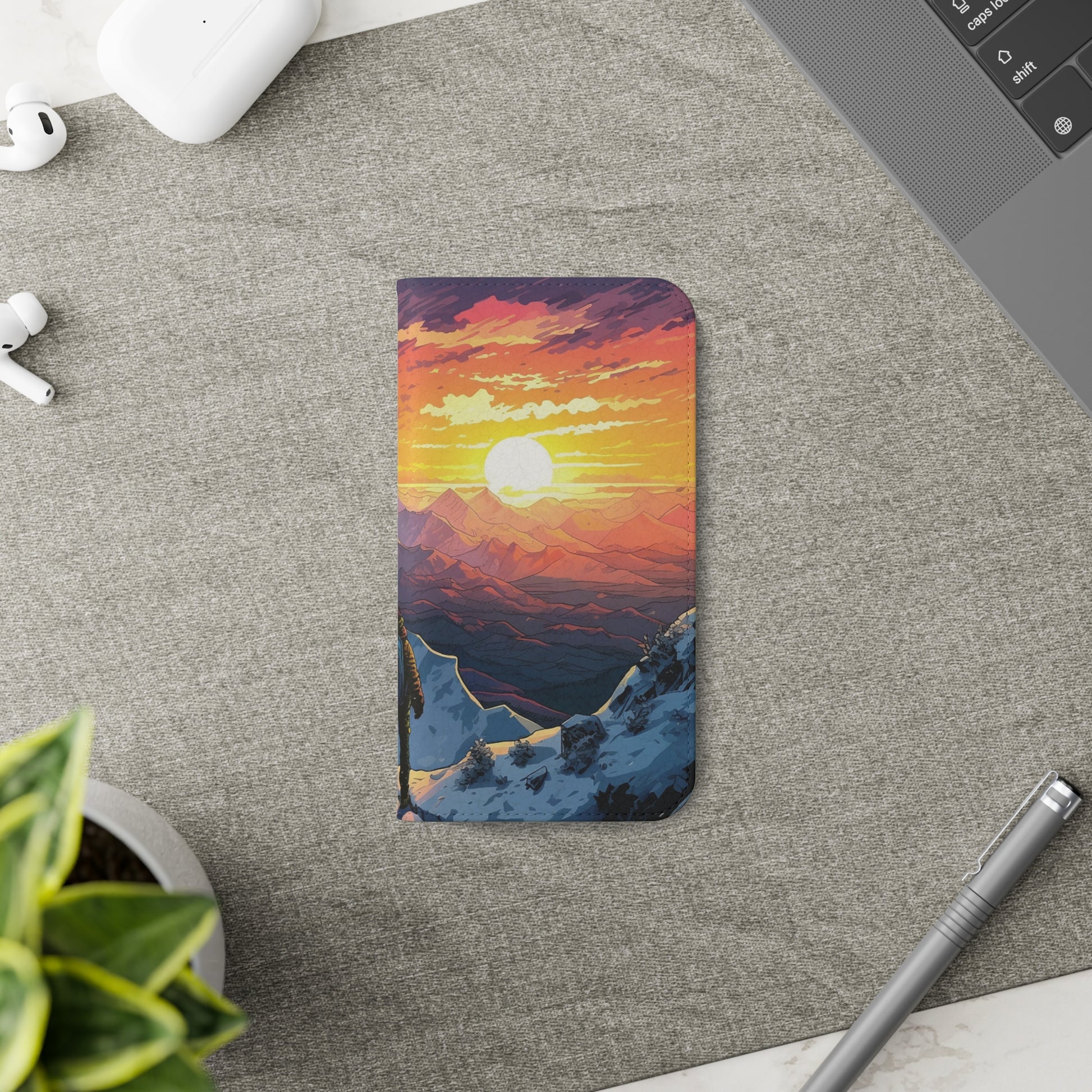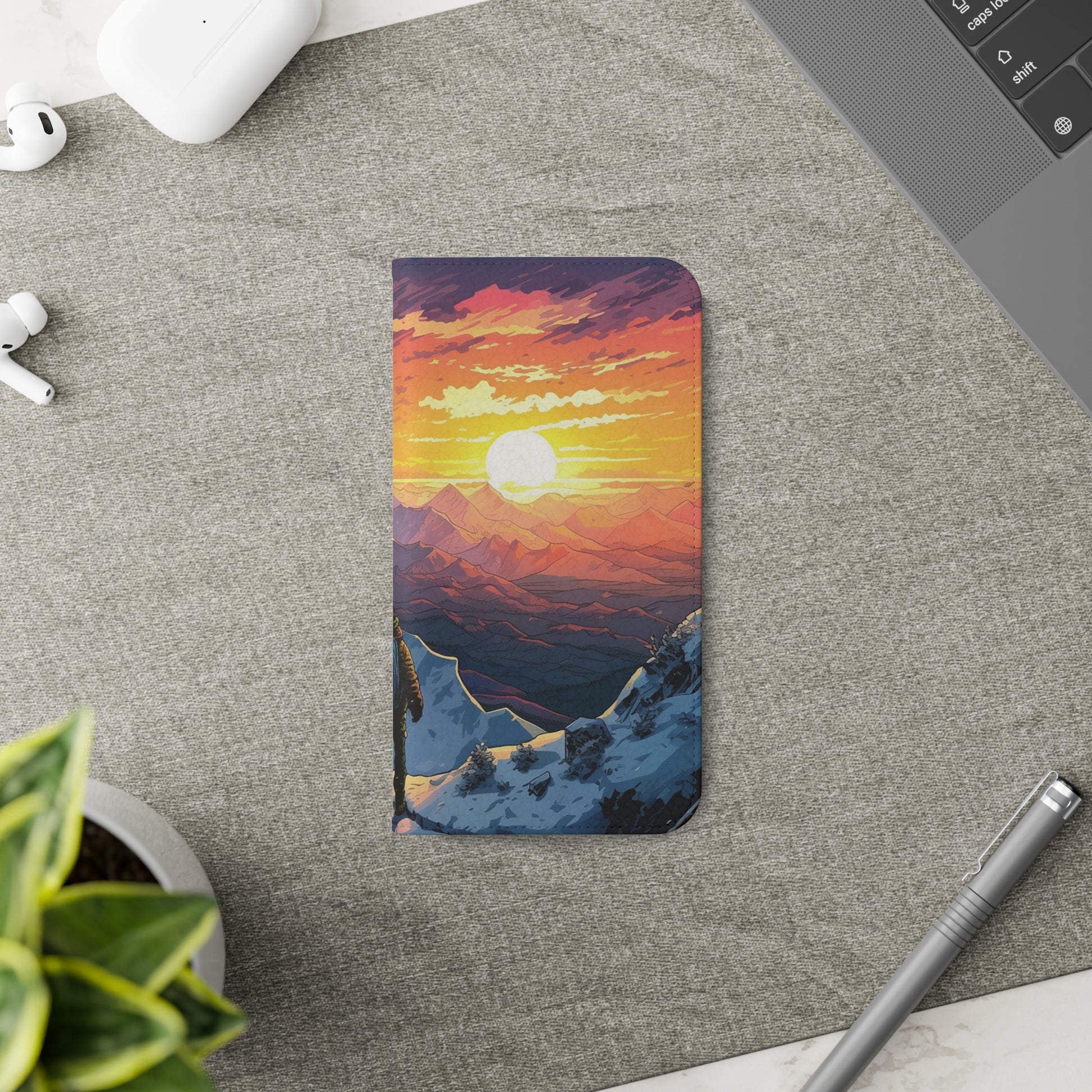 Keywords: Snowy mountain landscape phone case, sunset phone case, alpinist design, nature-inspired phone case, high-quality print, durable materials.