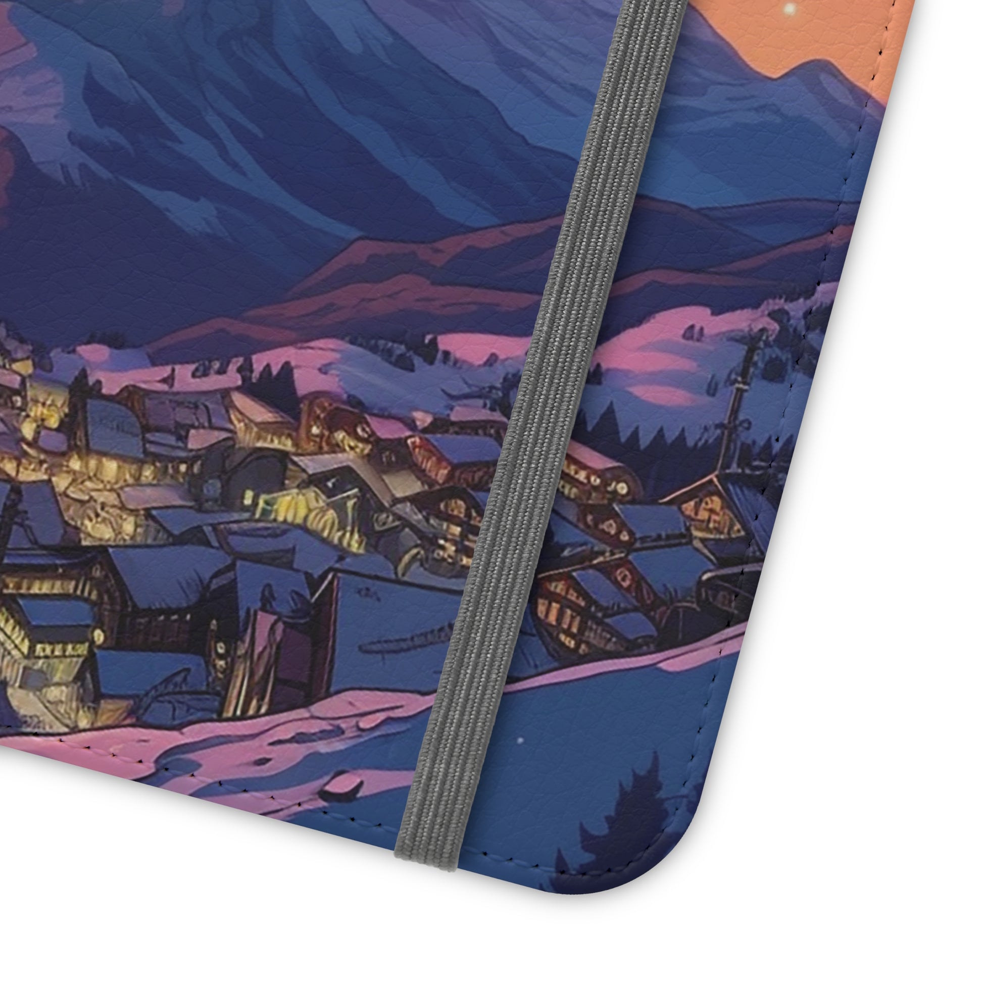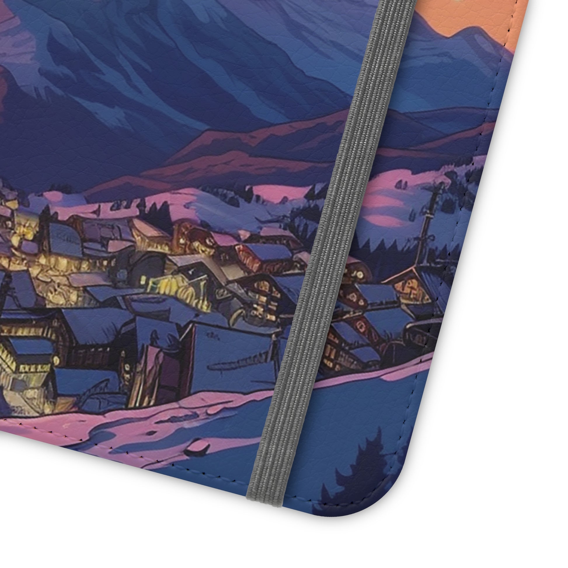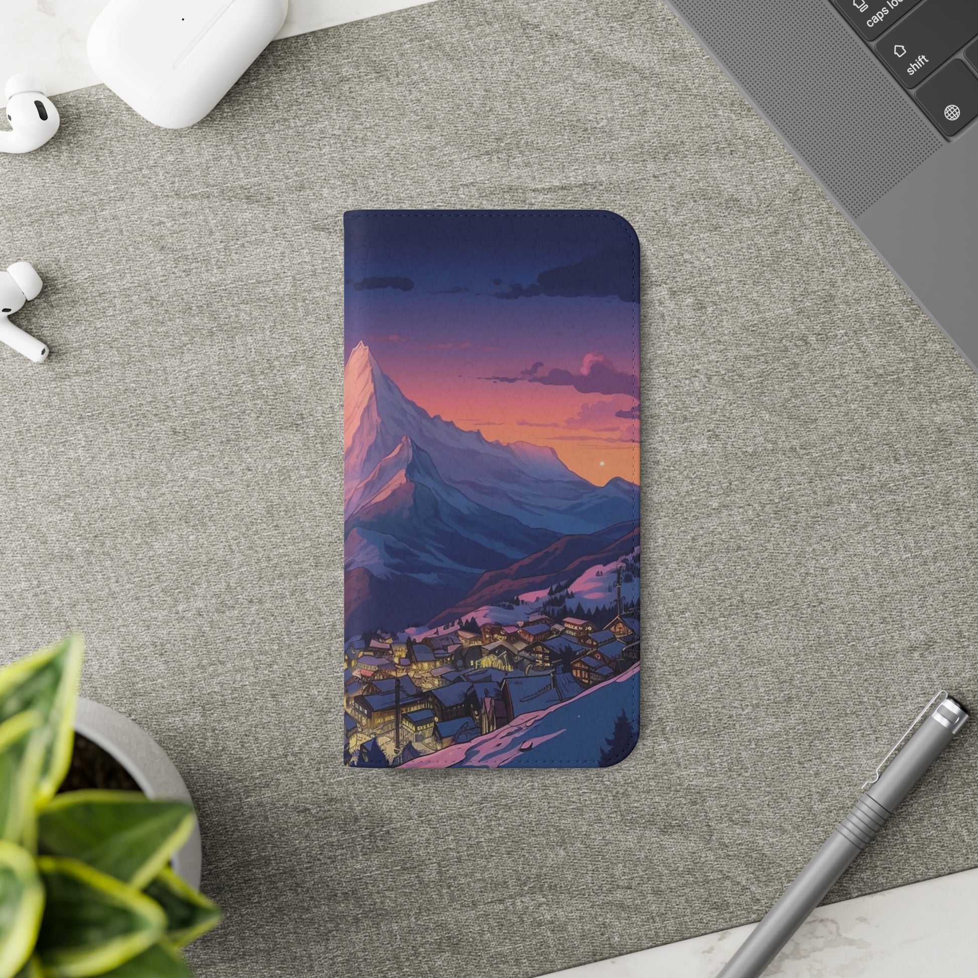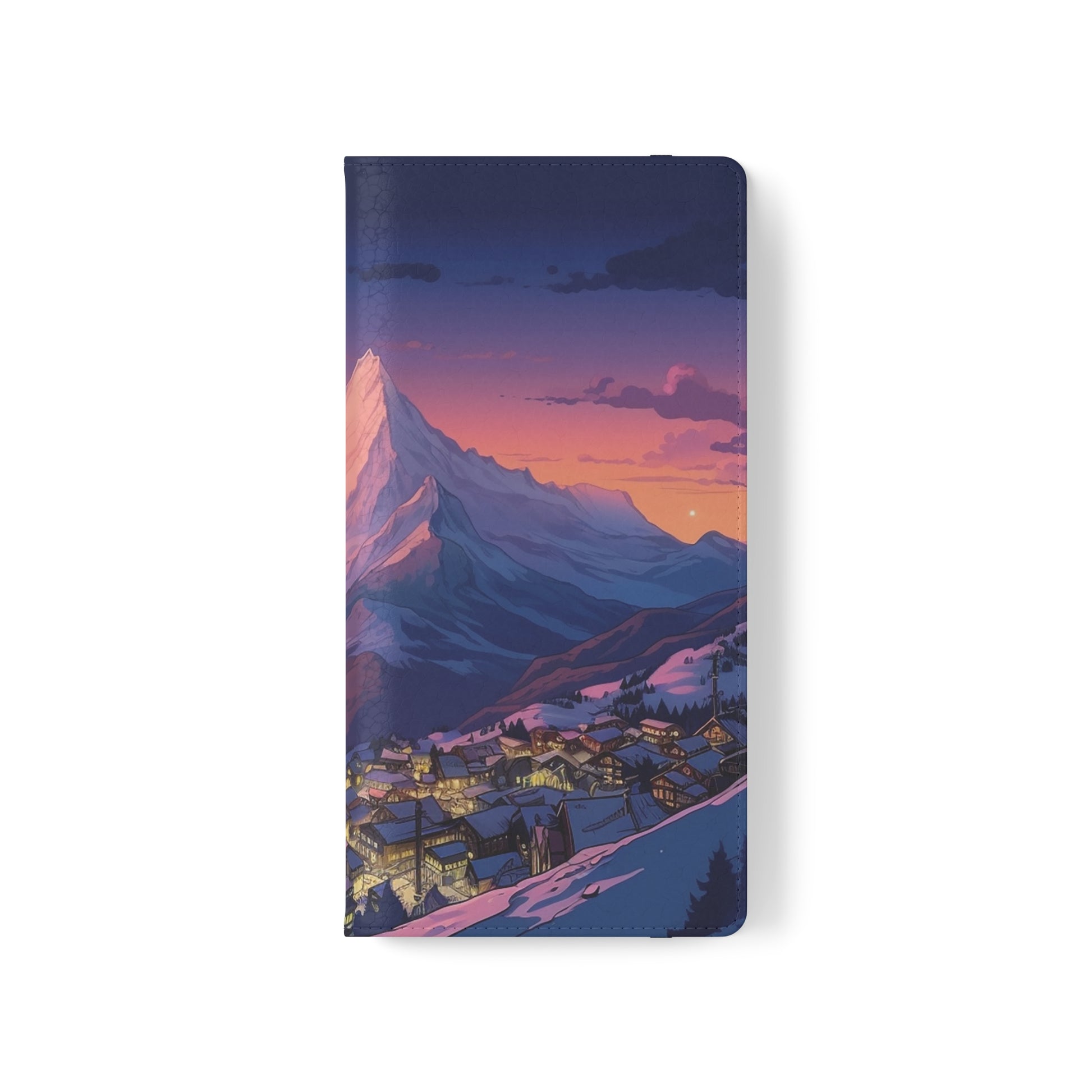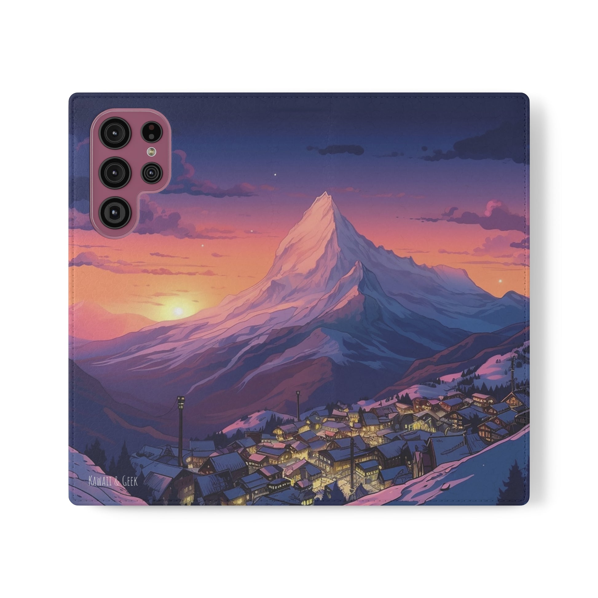 Snowy Mountain Landscape Sunset Flip Phone Case - Discover Serenity with a Charming Mountain Village