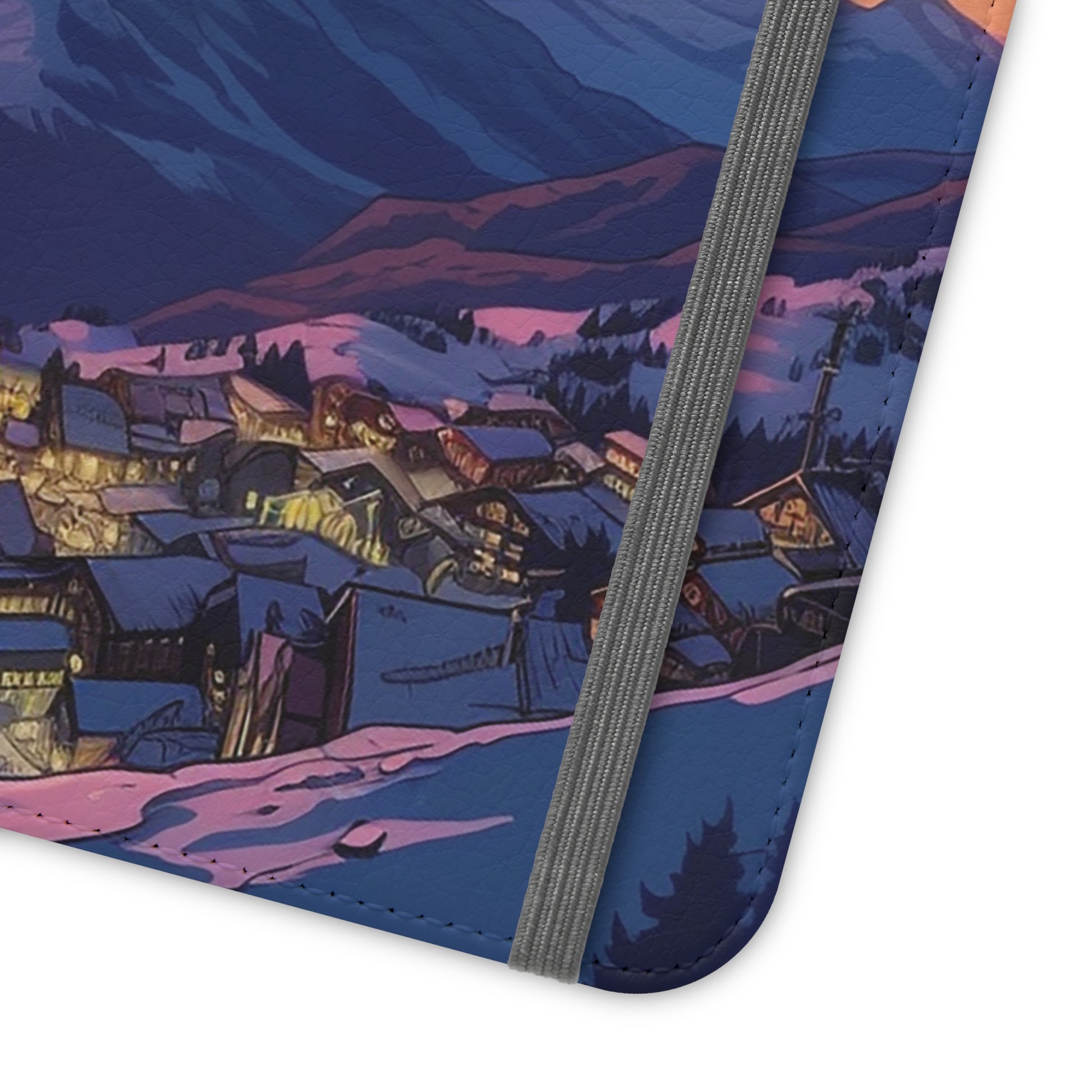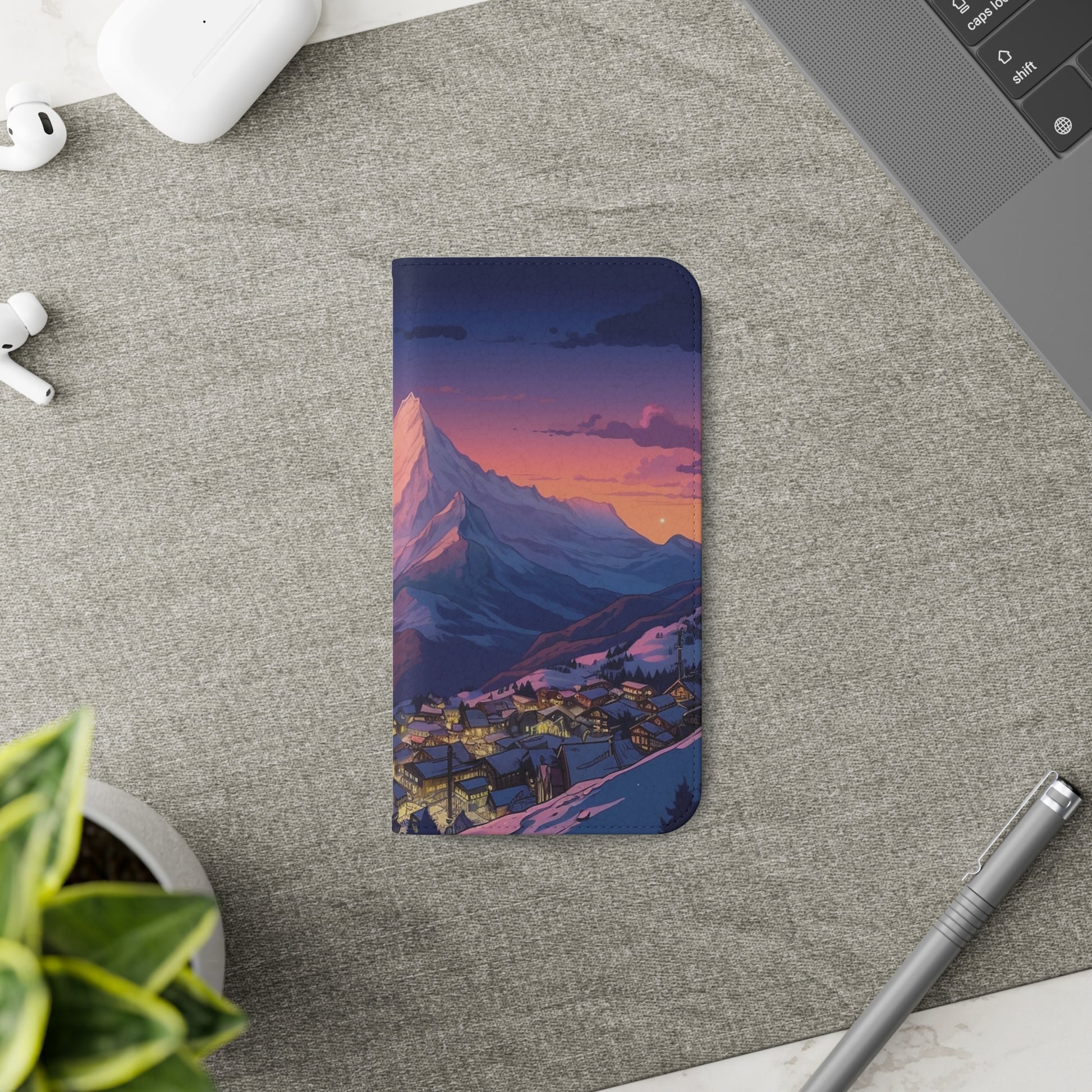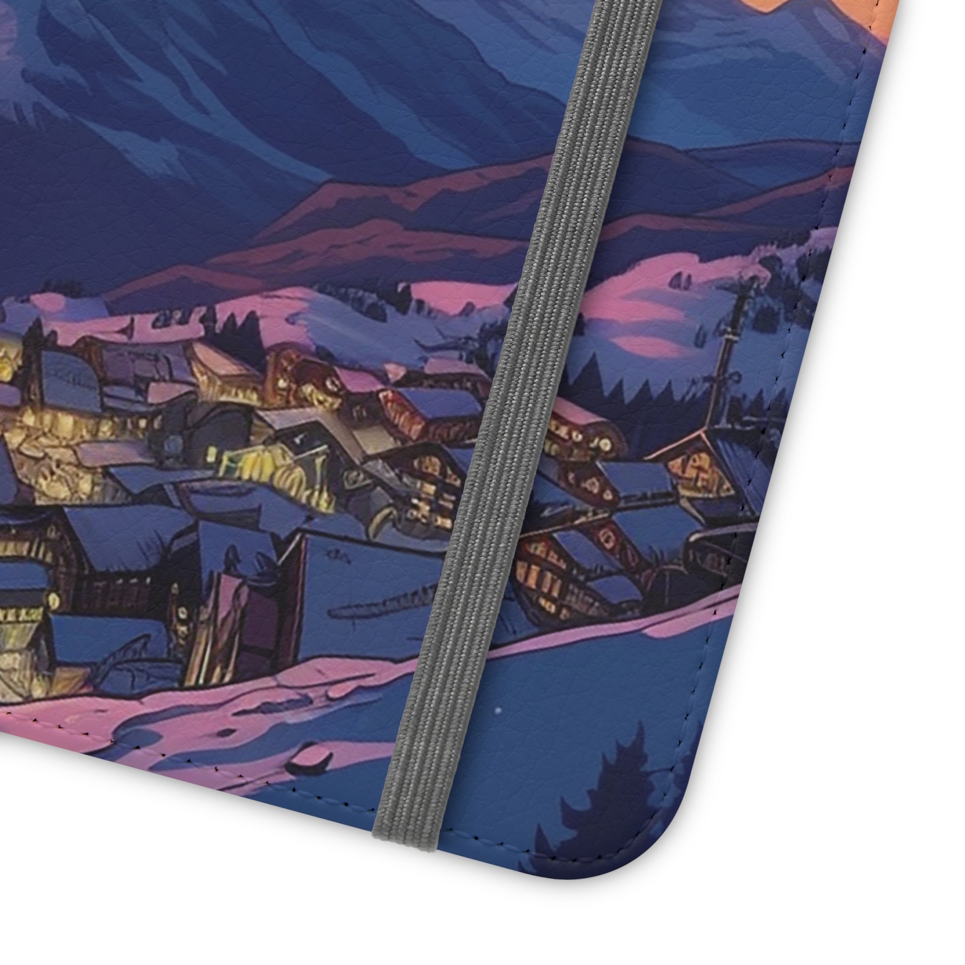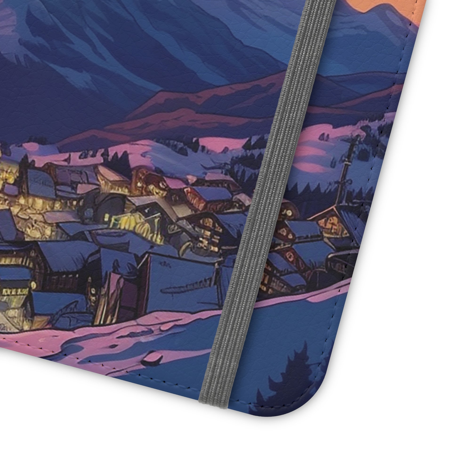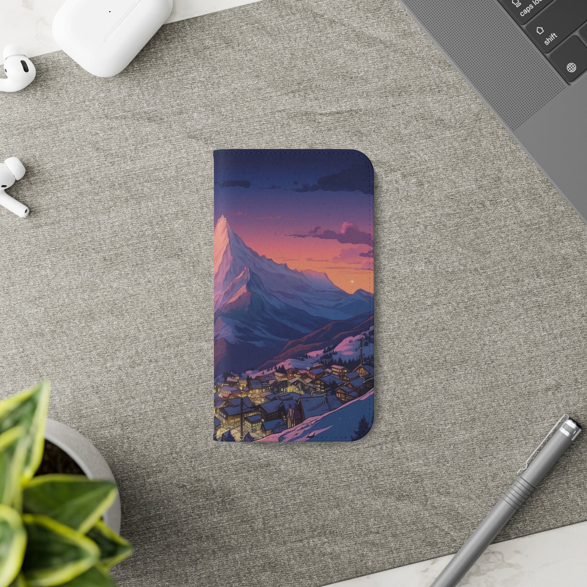 Snowy Mountain Landscape Sunset Flip Phone Case - Discover Serenity with a Charming Mountain Village